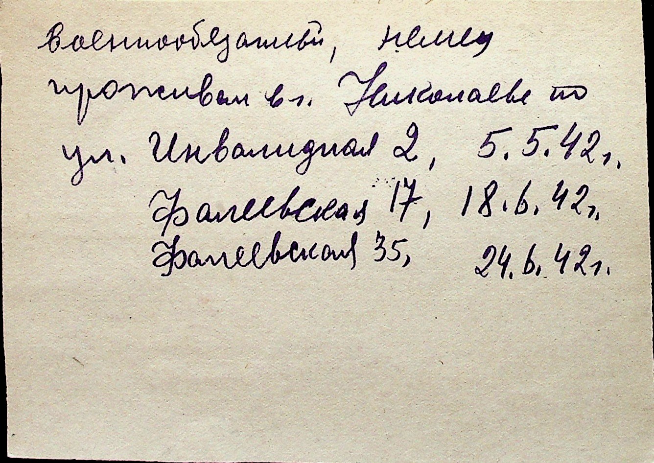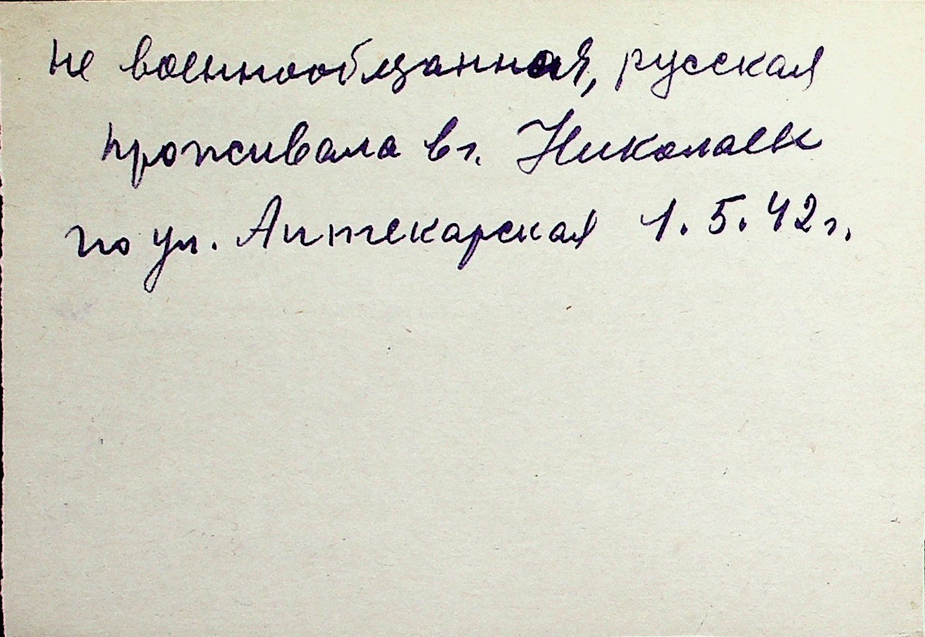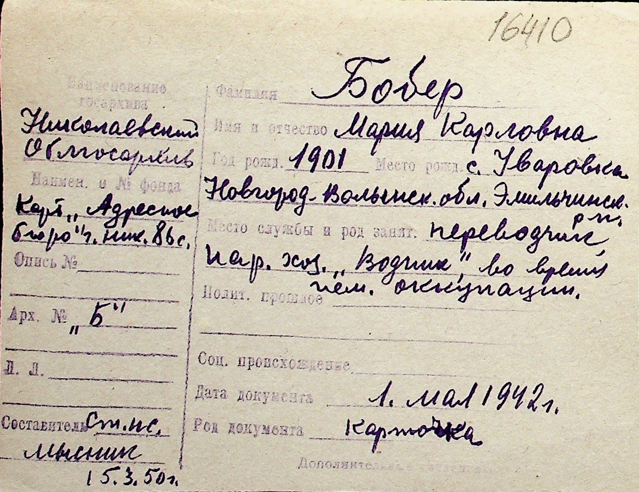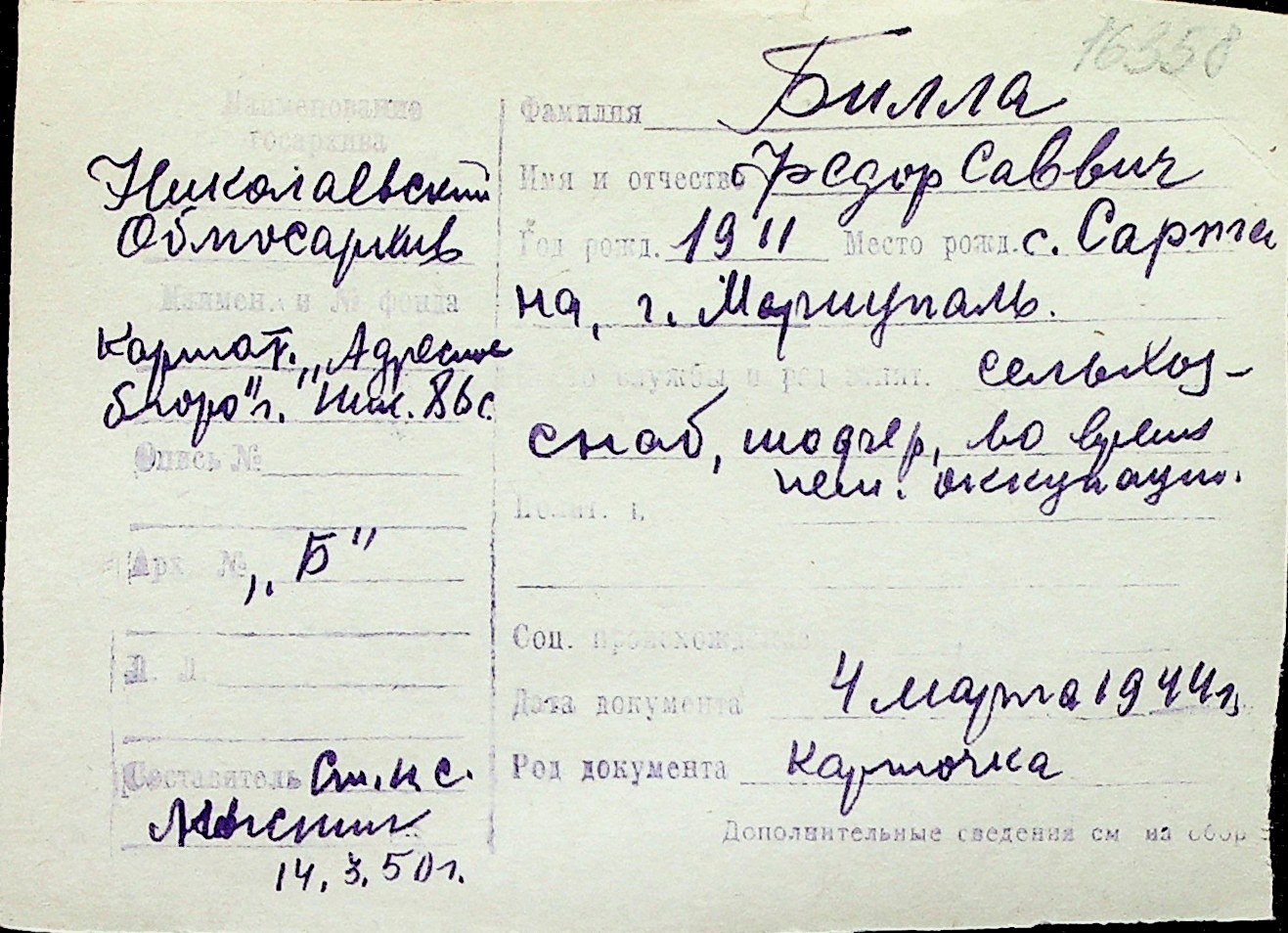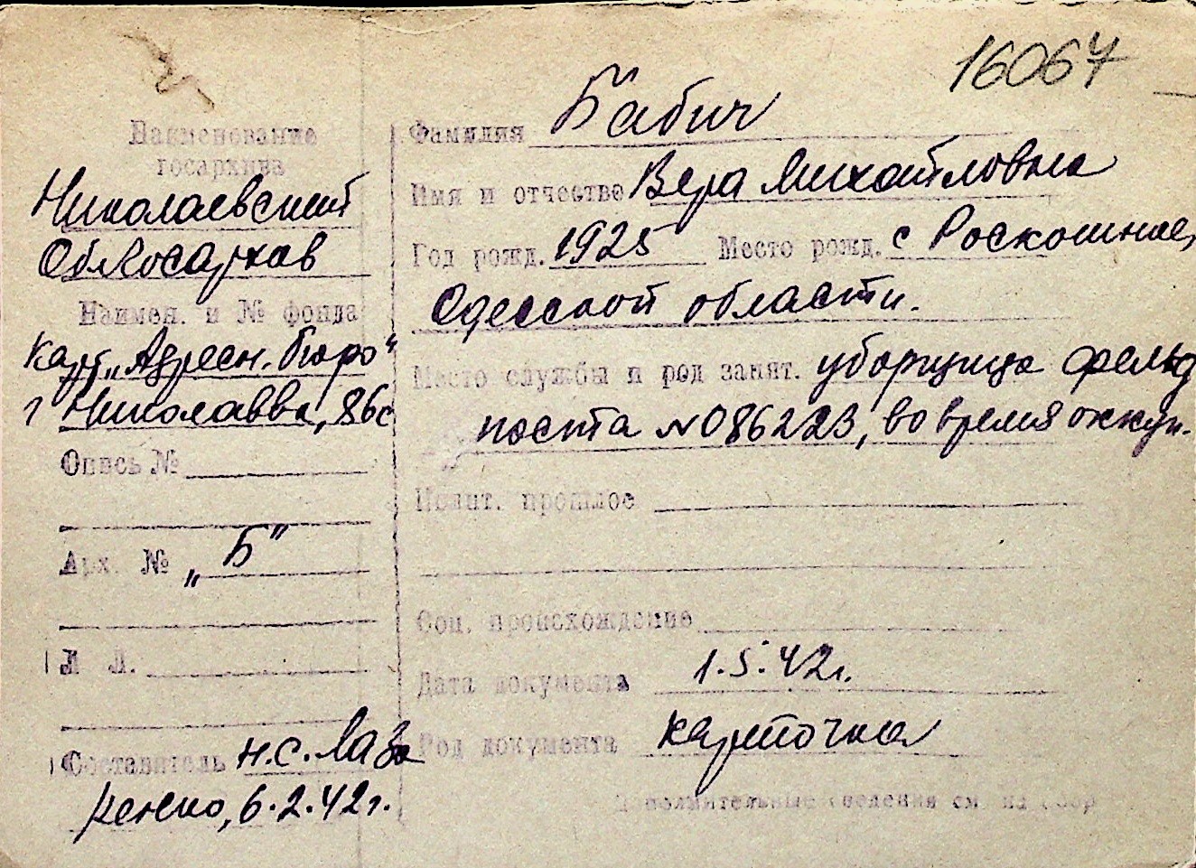 ◦ ◦ Перелік карток на осіб, які мешкали у м. Миколаїв у період окупації 1941–1944 років