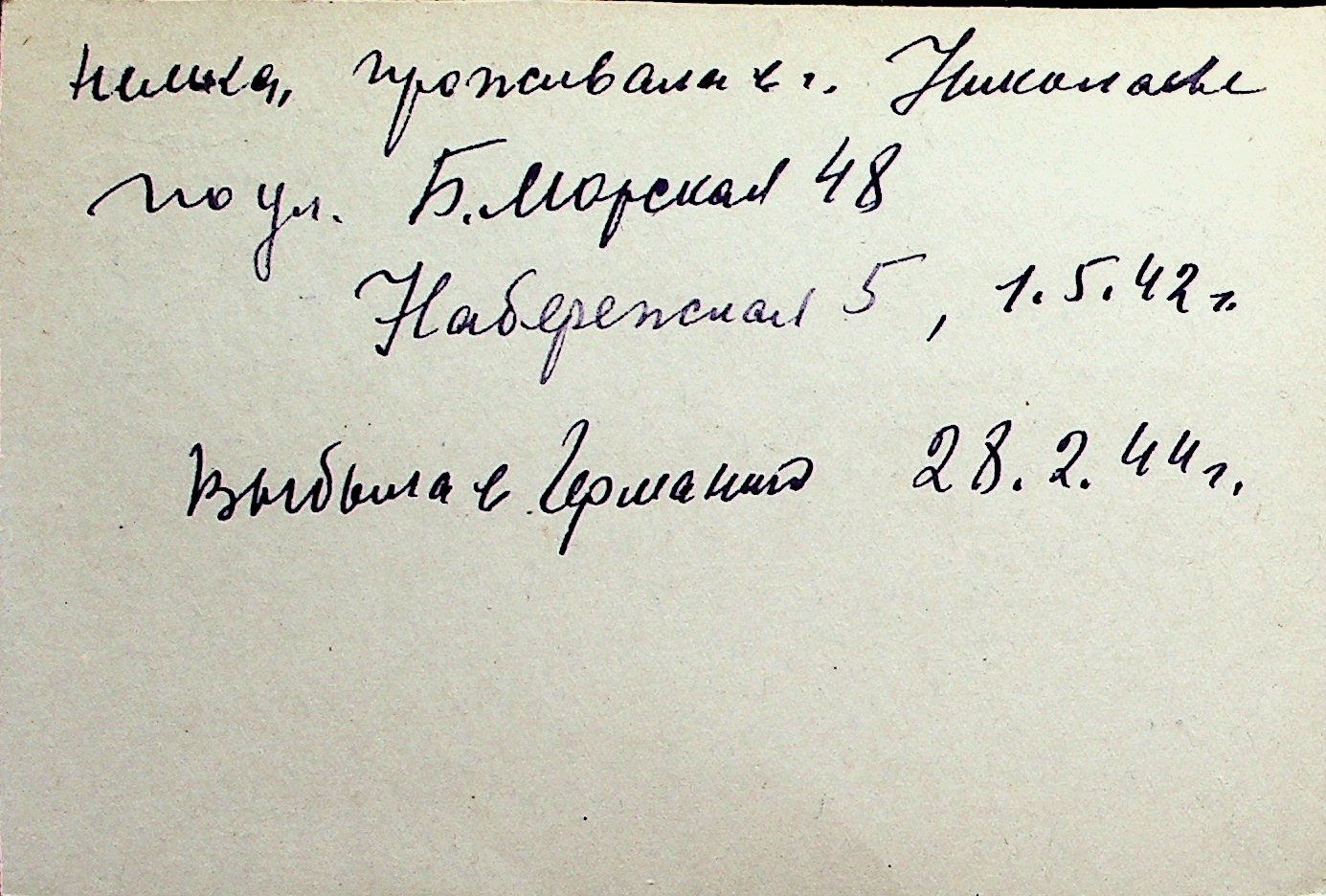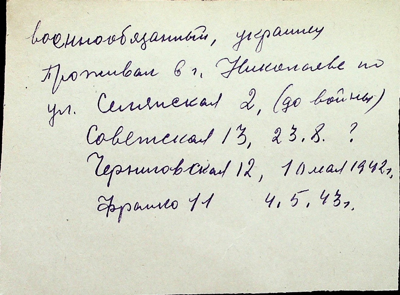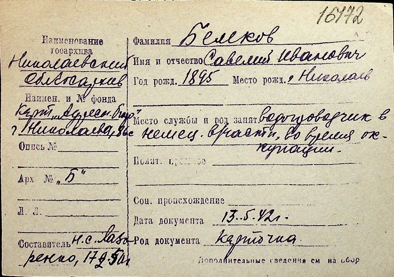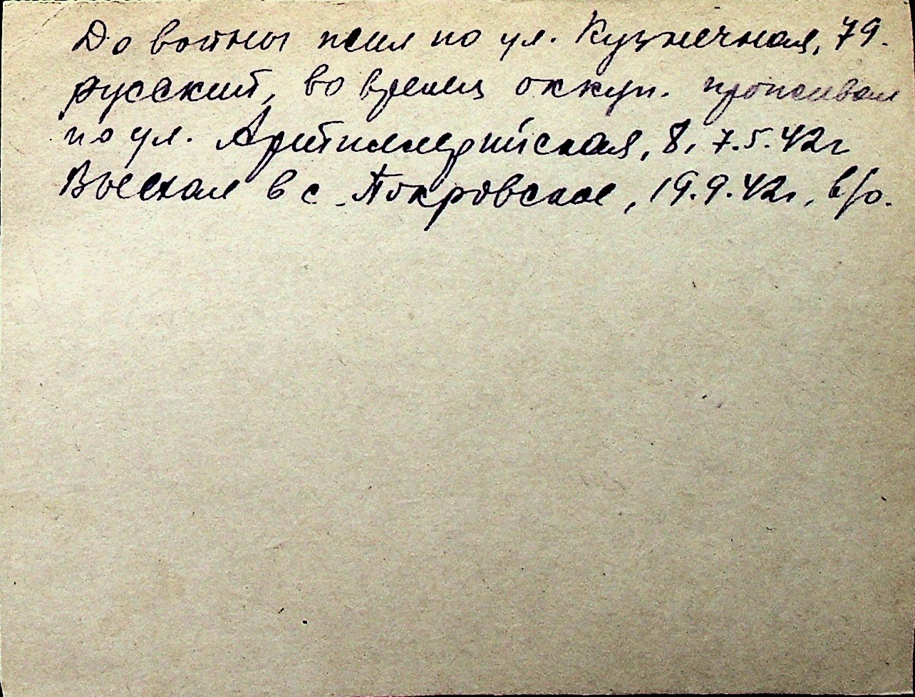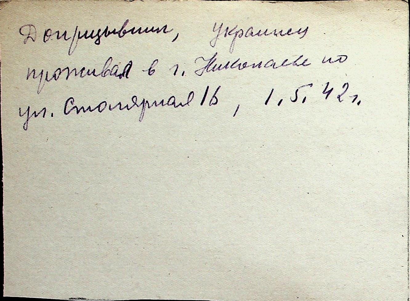 ◦ ◦ Перелік карток на осіб, які мешкали у м. Миколаїв у період окупації 1941–1944 років