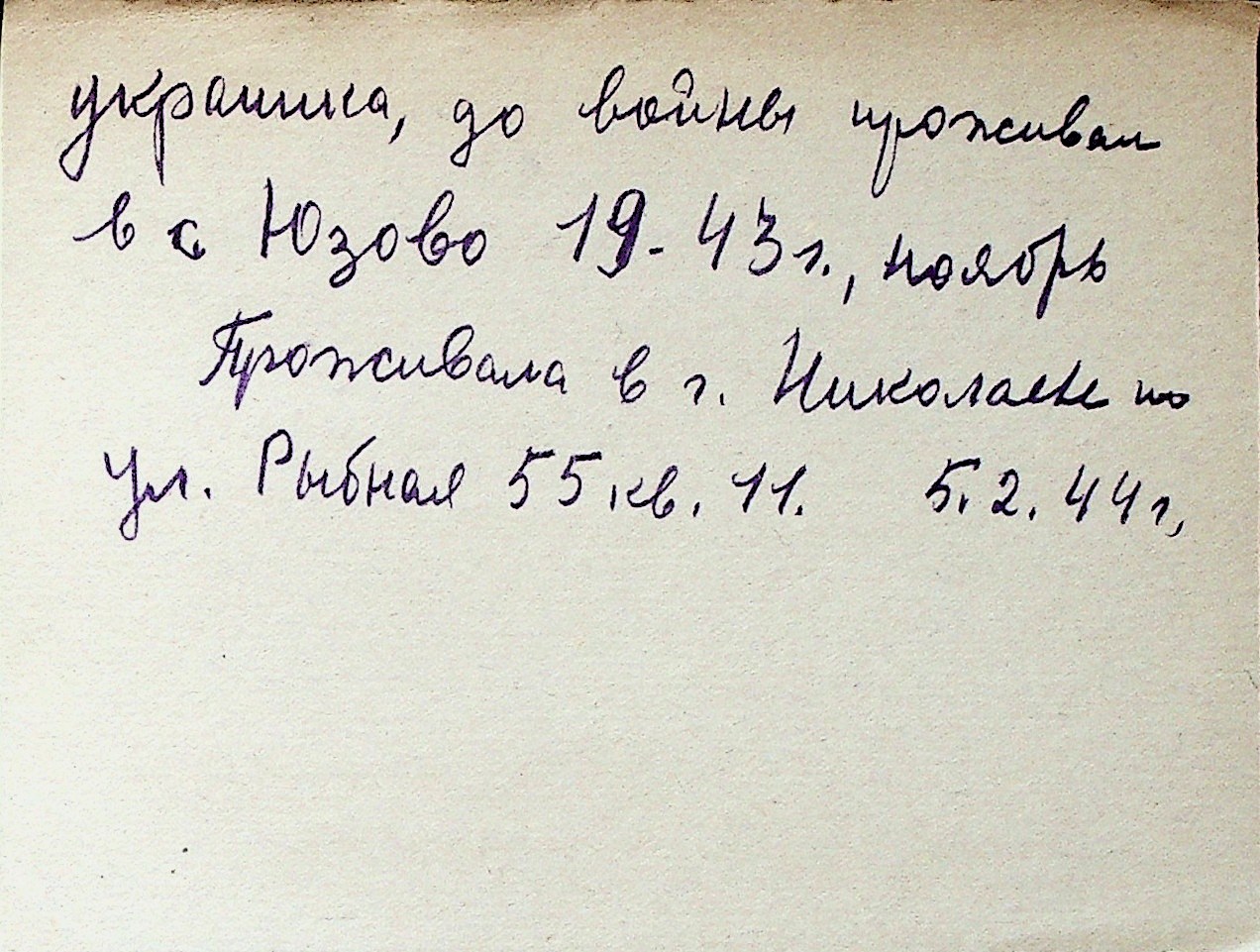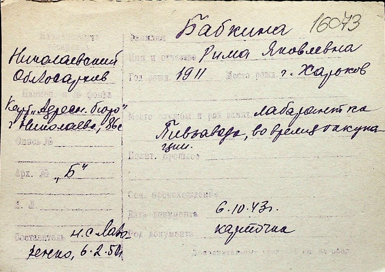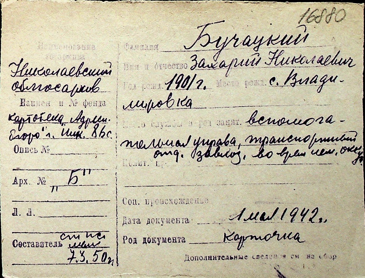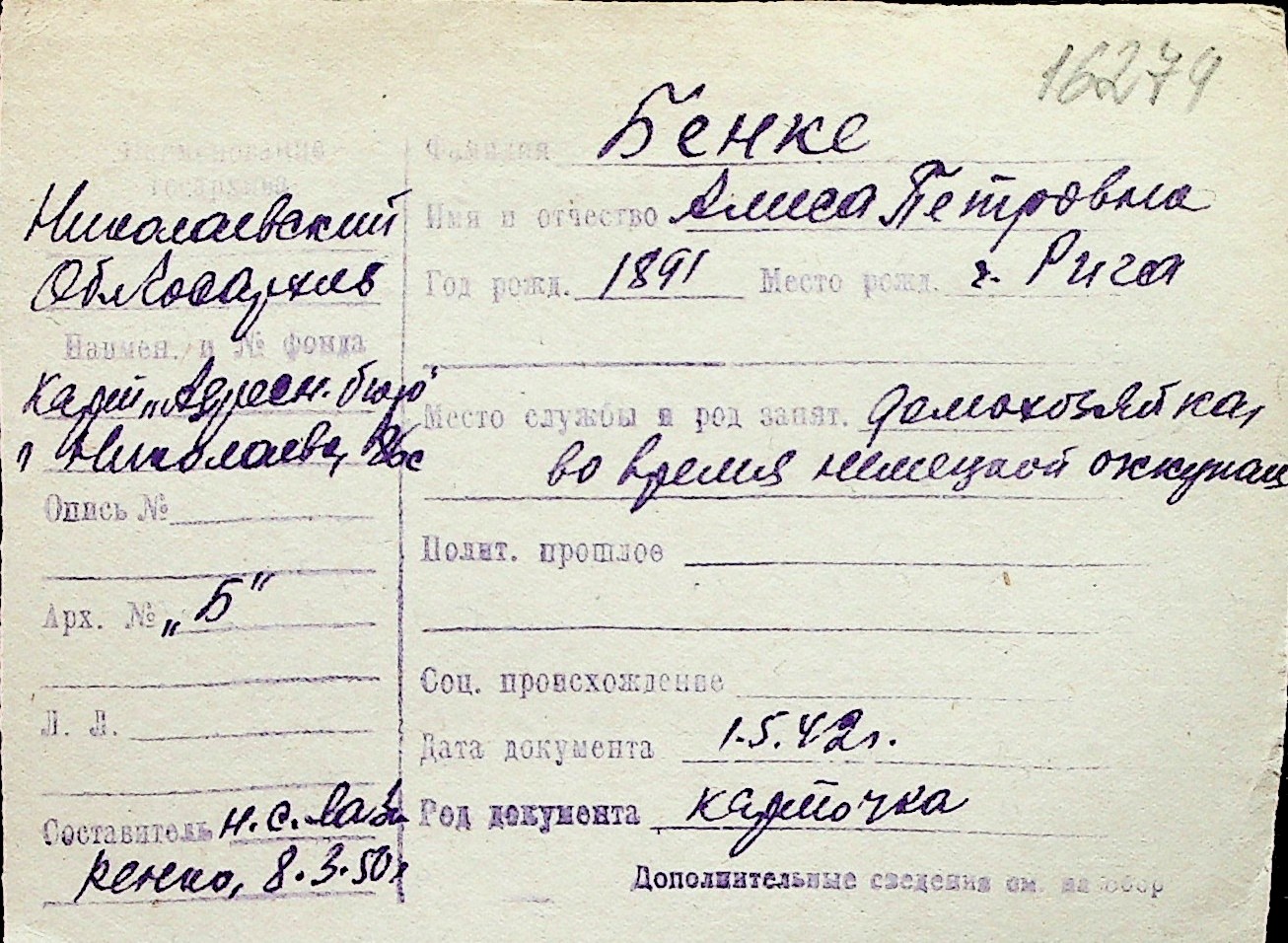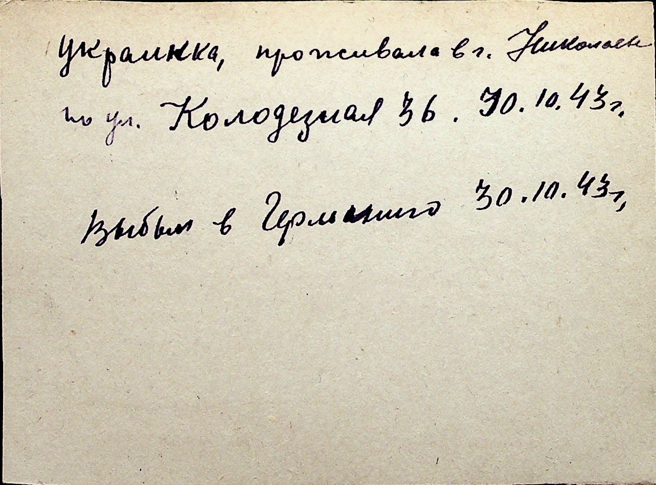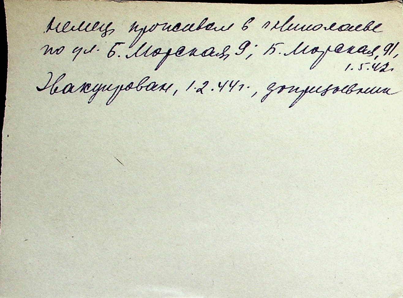◦ ◦ Перелік карток на осіб, які мешкали у м. Миколаїв у період окупації 1941–1944 років