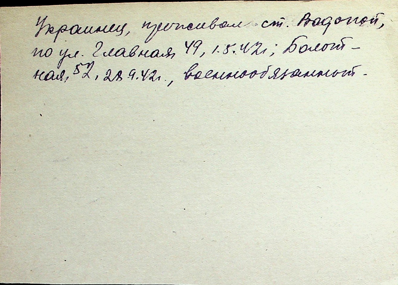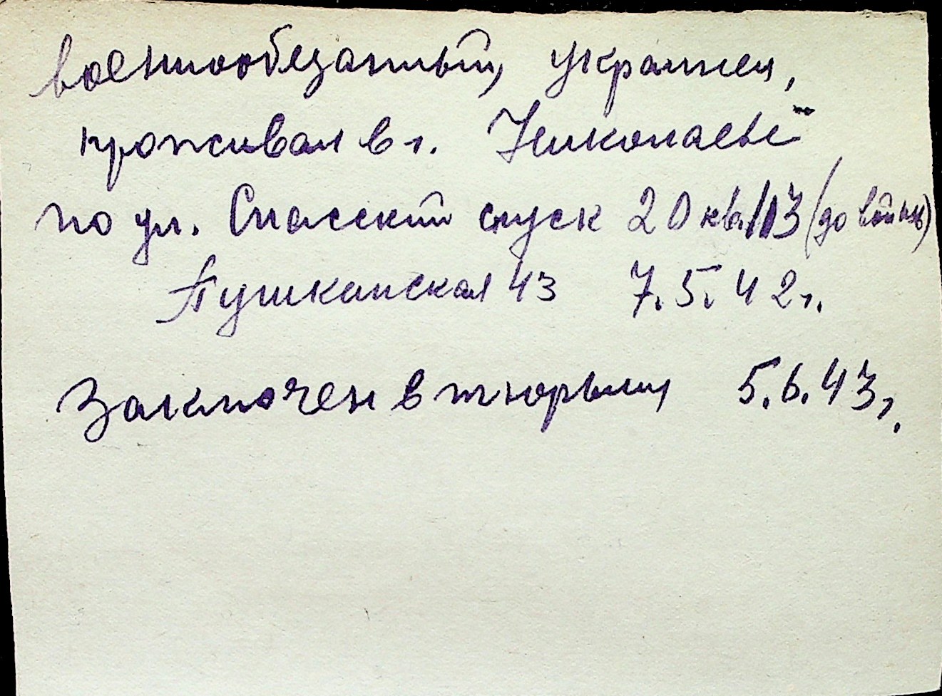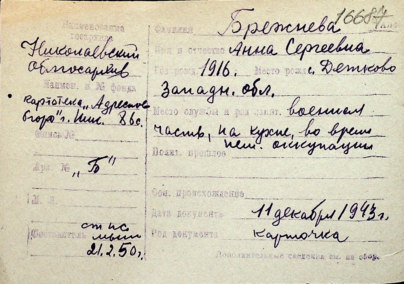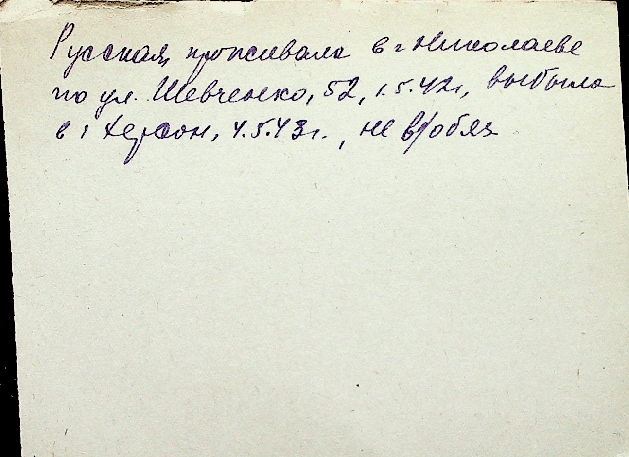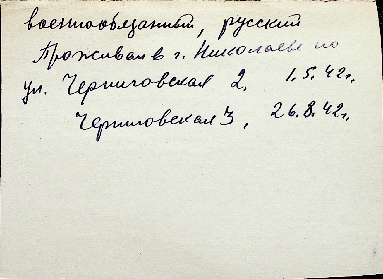 ◦ ◦ Перелік карток на осіб, які мешкали у м. Миколаїв у період окупації 1941–1944 років