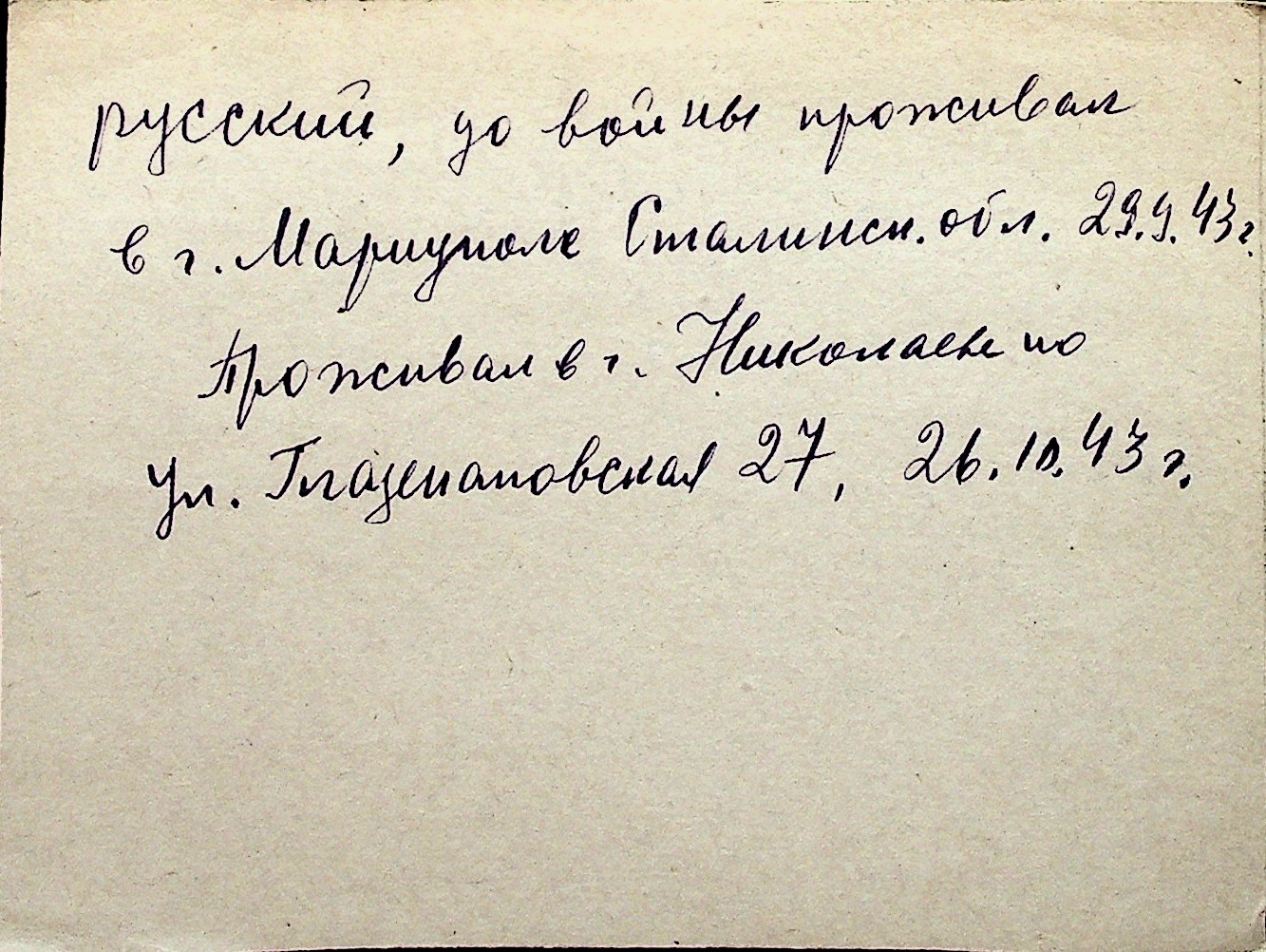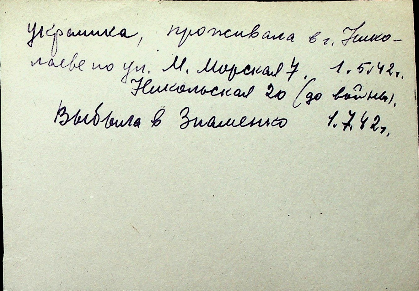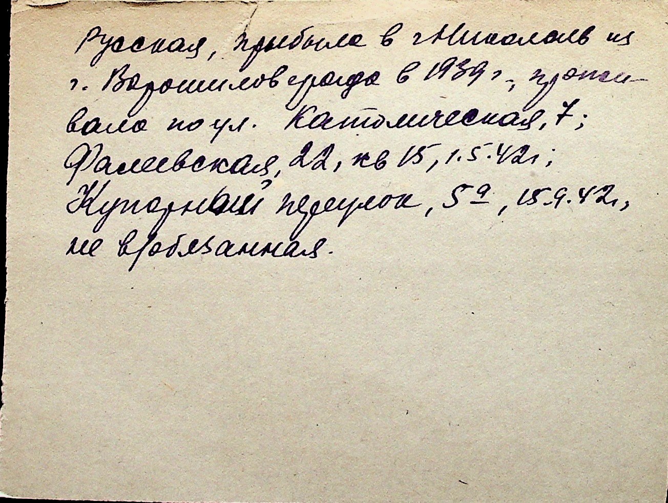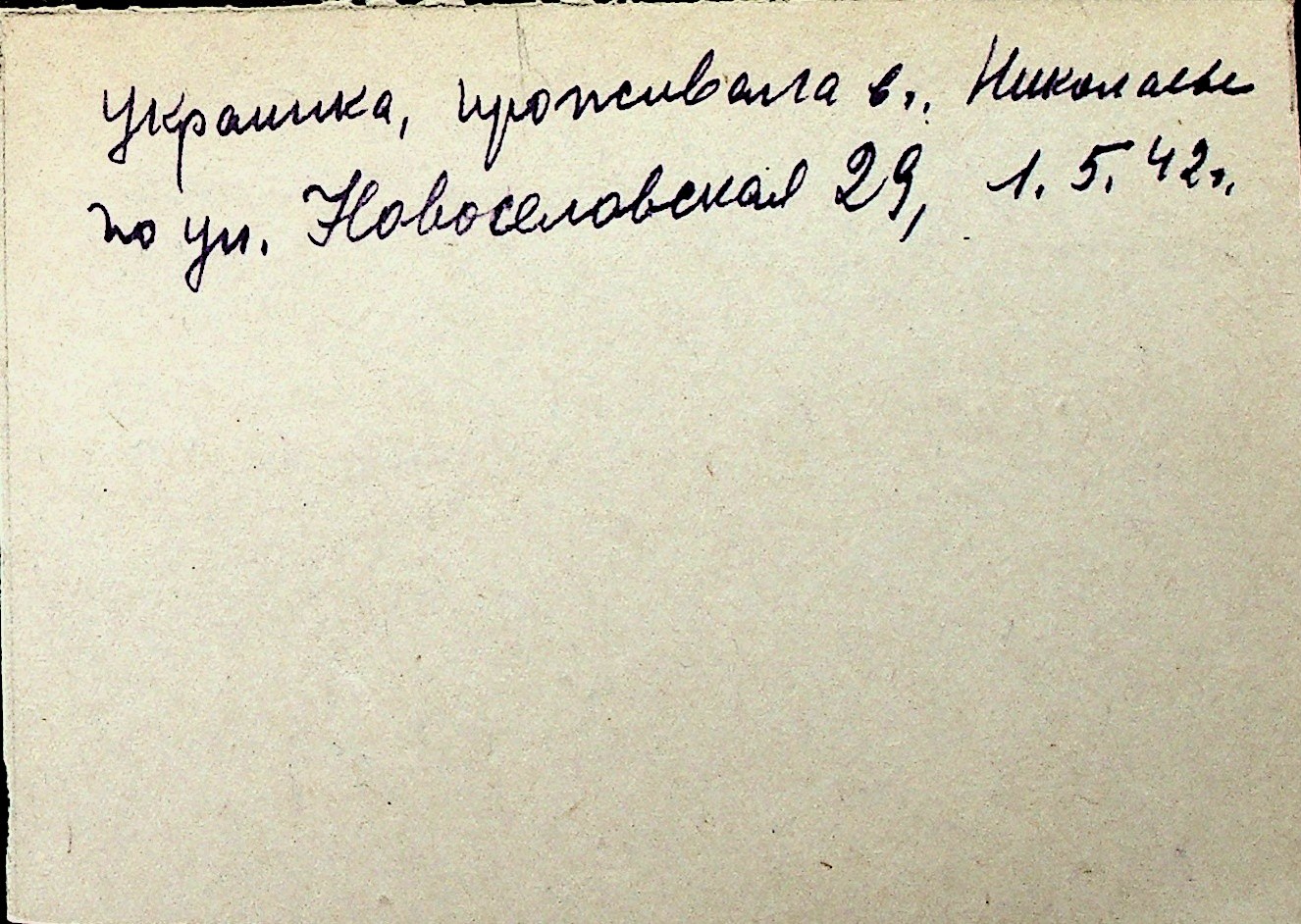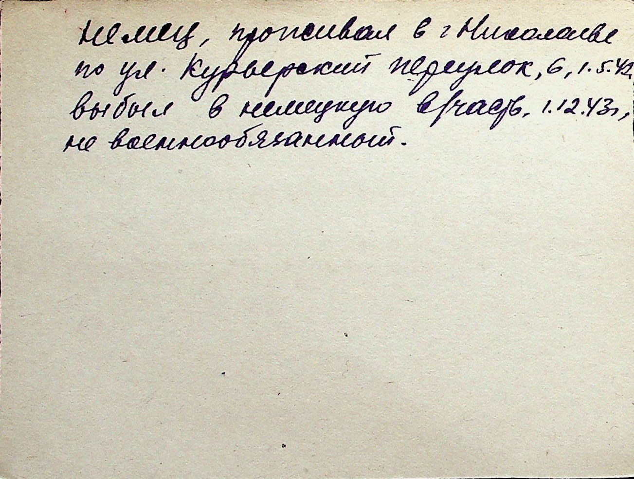 ◦ ◦ Перелік карток на осіб, які мешкали у м. Миколаїв у період окупації 1941–1944 років
