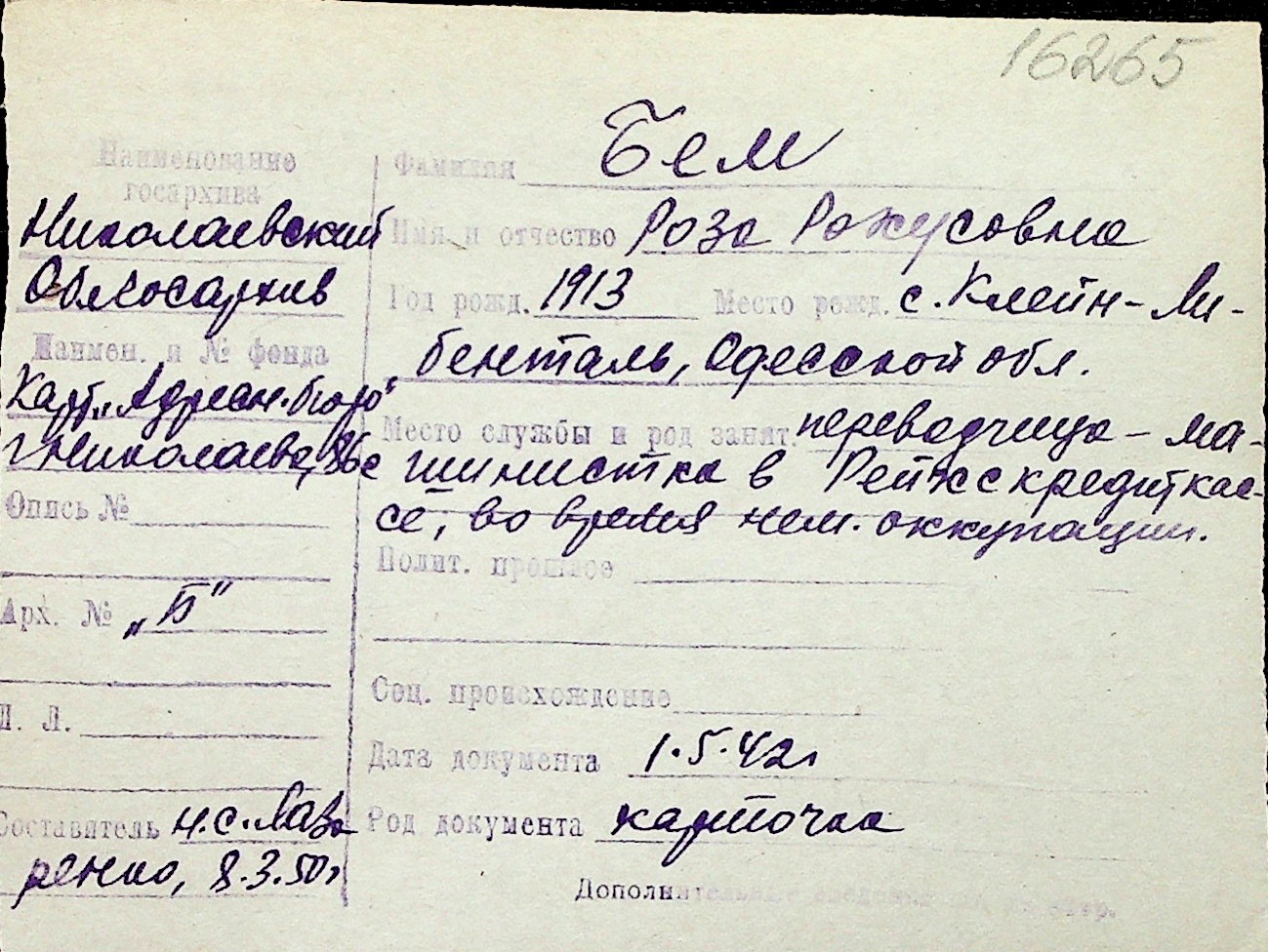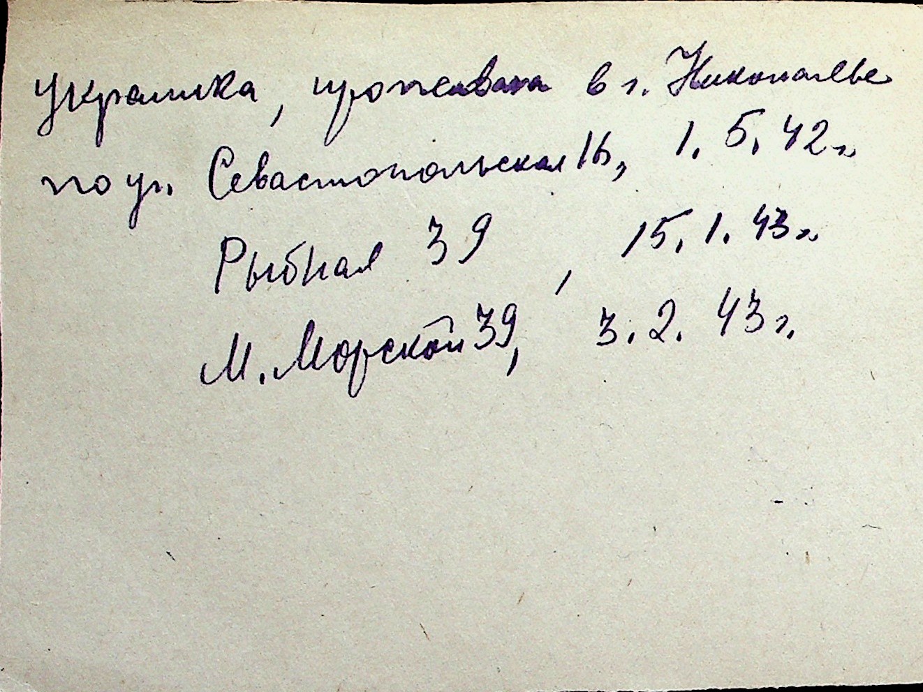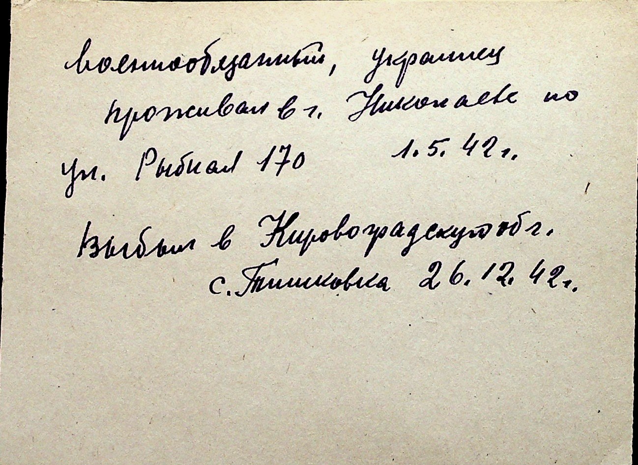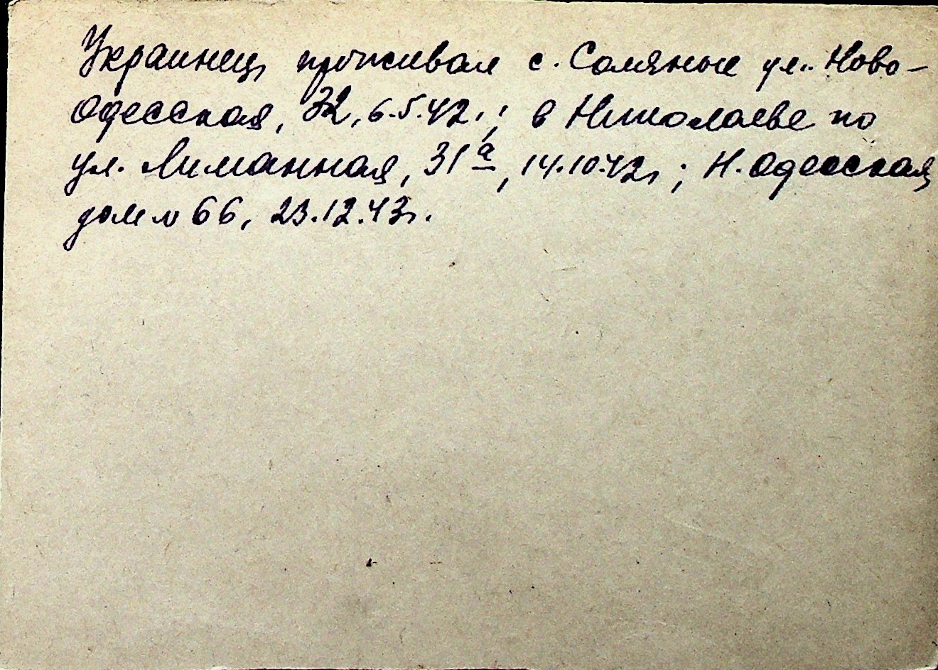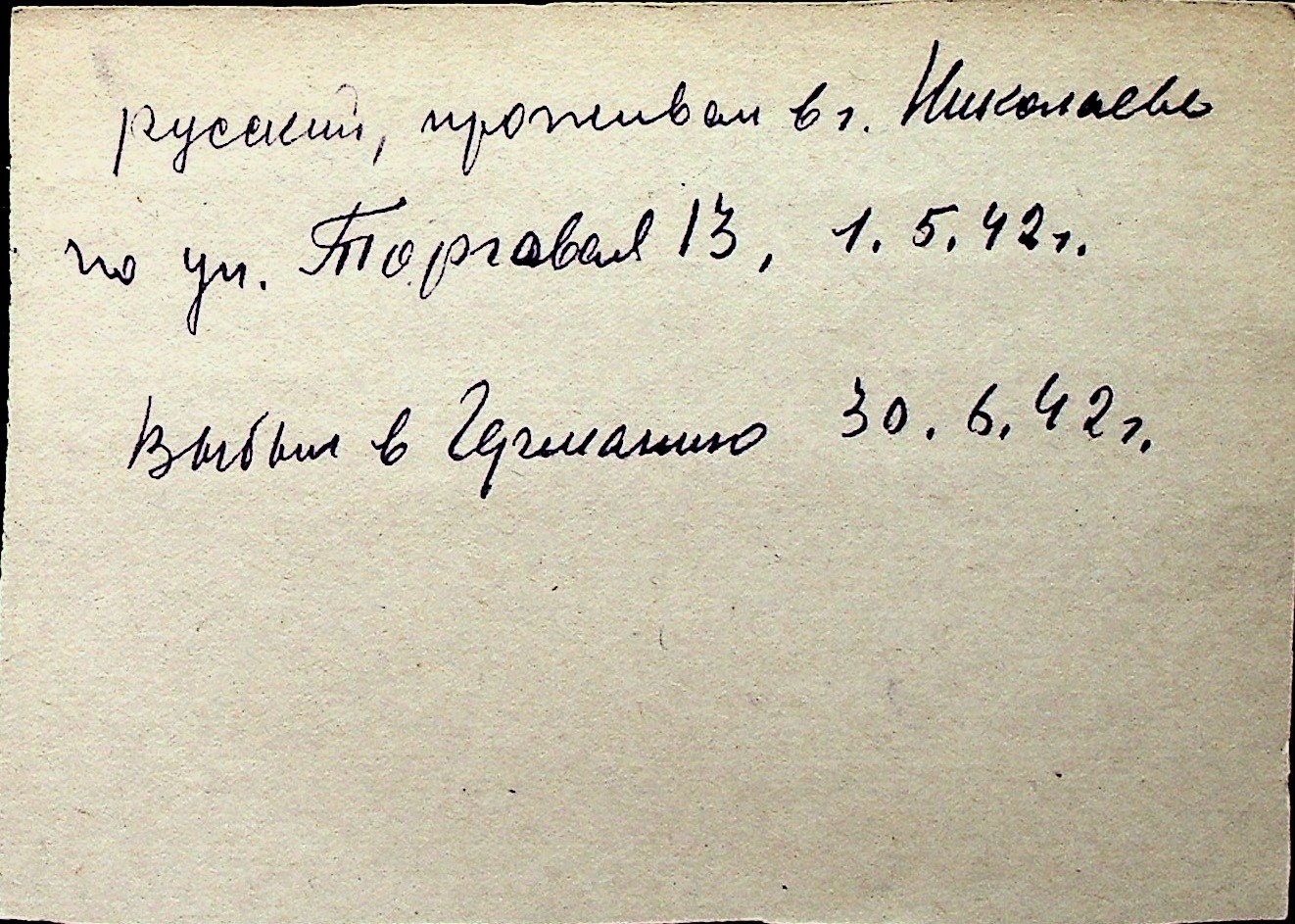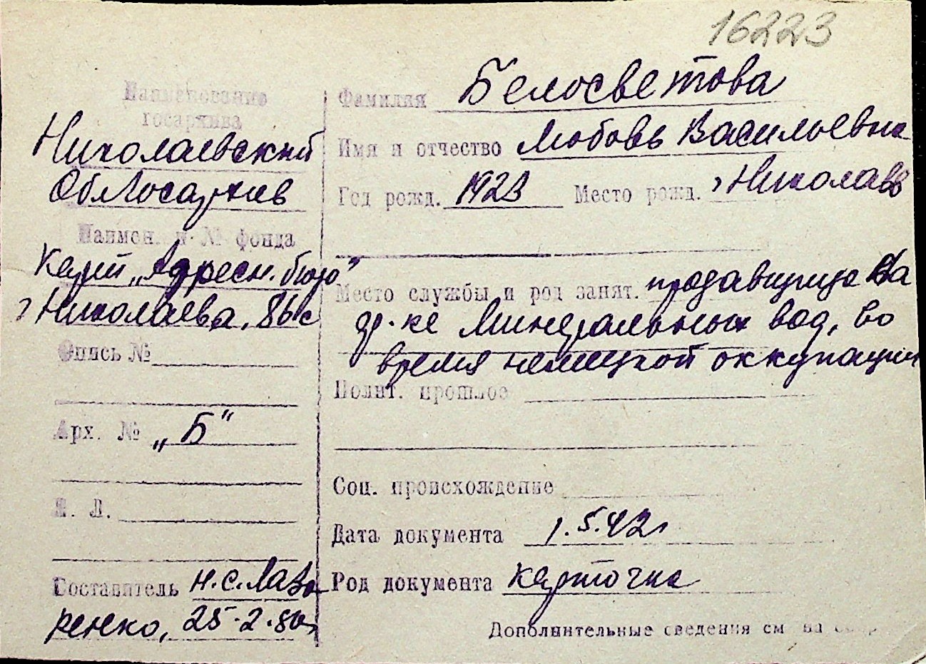 ◦ ◦ Перелік карток на осіб, які мешкали у м. Миколаїв у період окупації 1941–1944 років