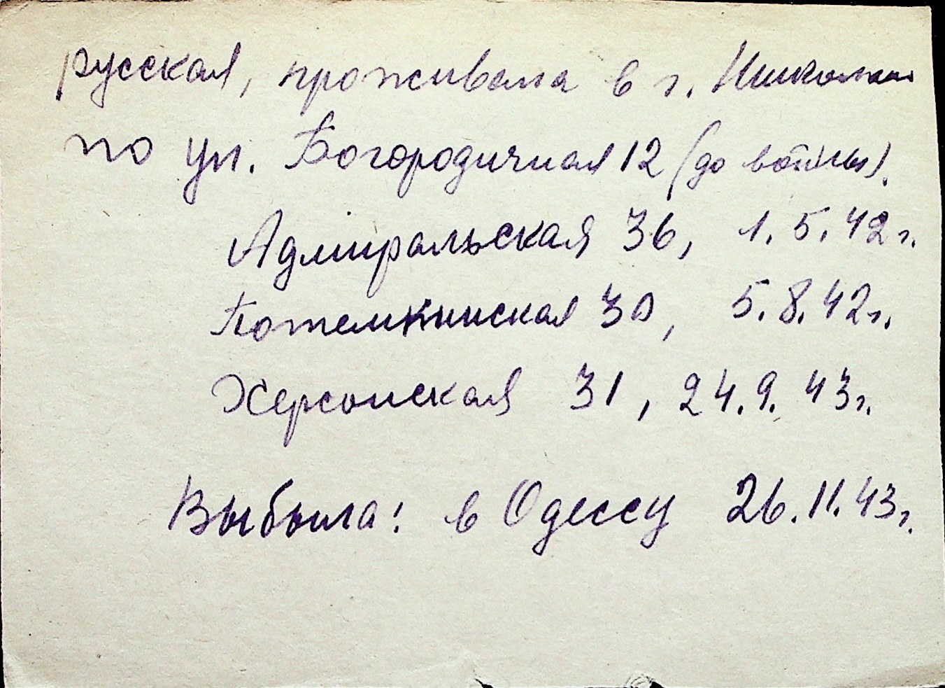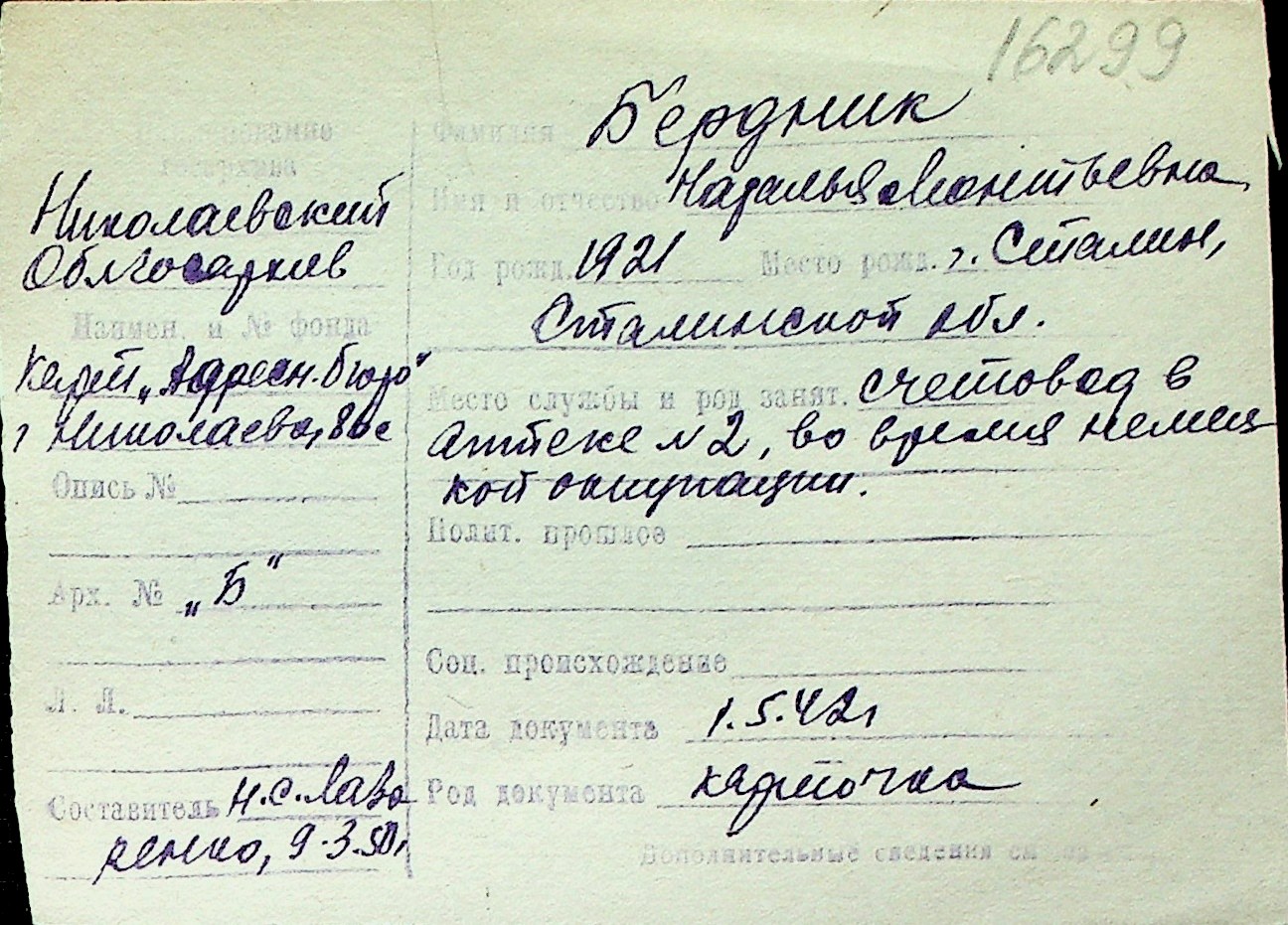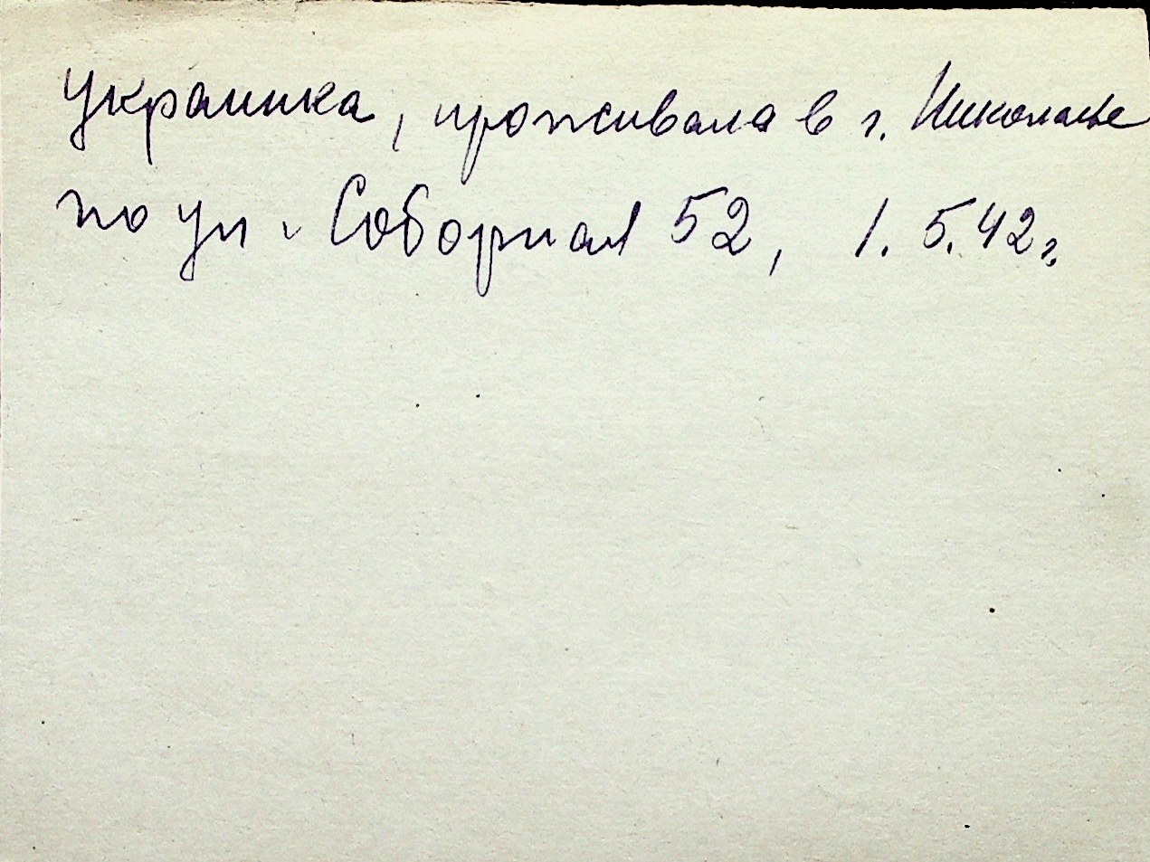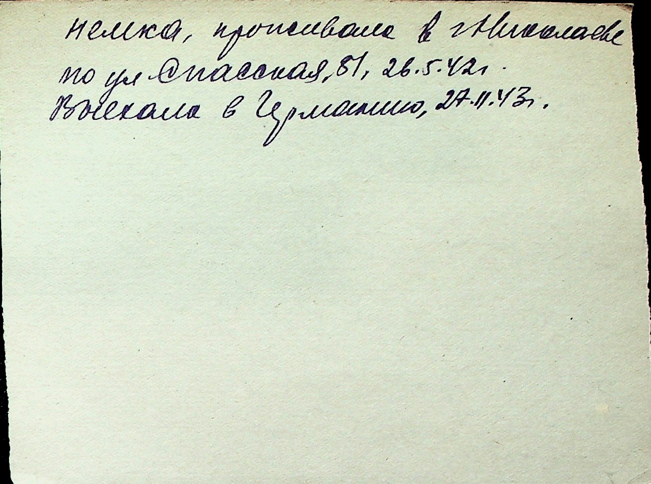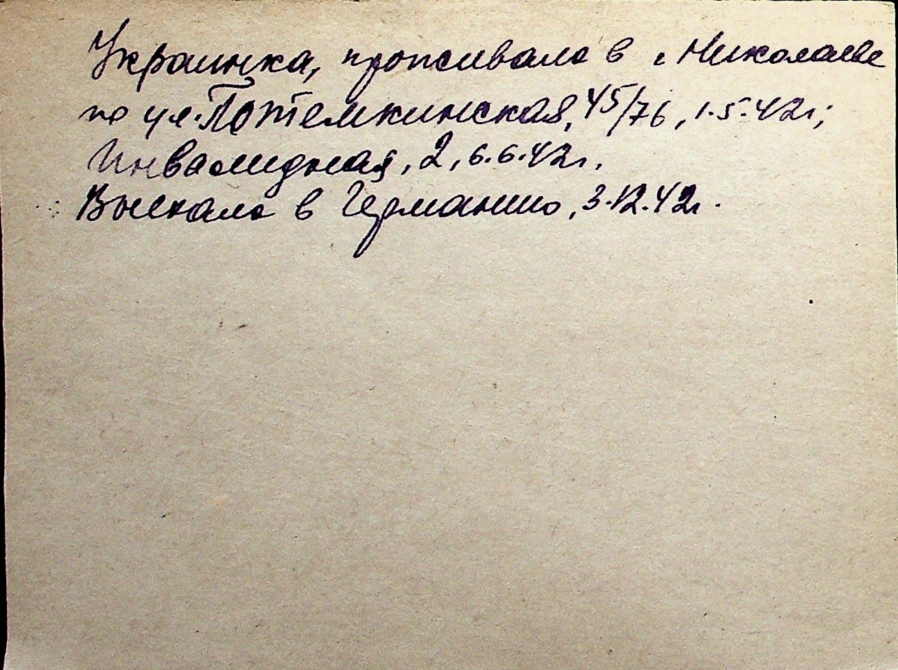 ◦ ◦ Перелік карток на осіб, які мешкали у м. Миколаїв у період окупації 1941–1944 років