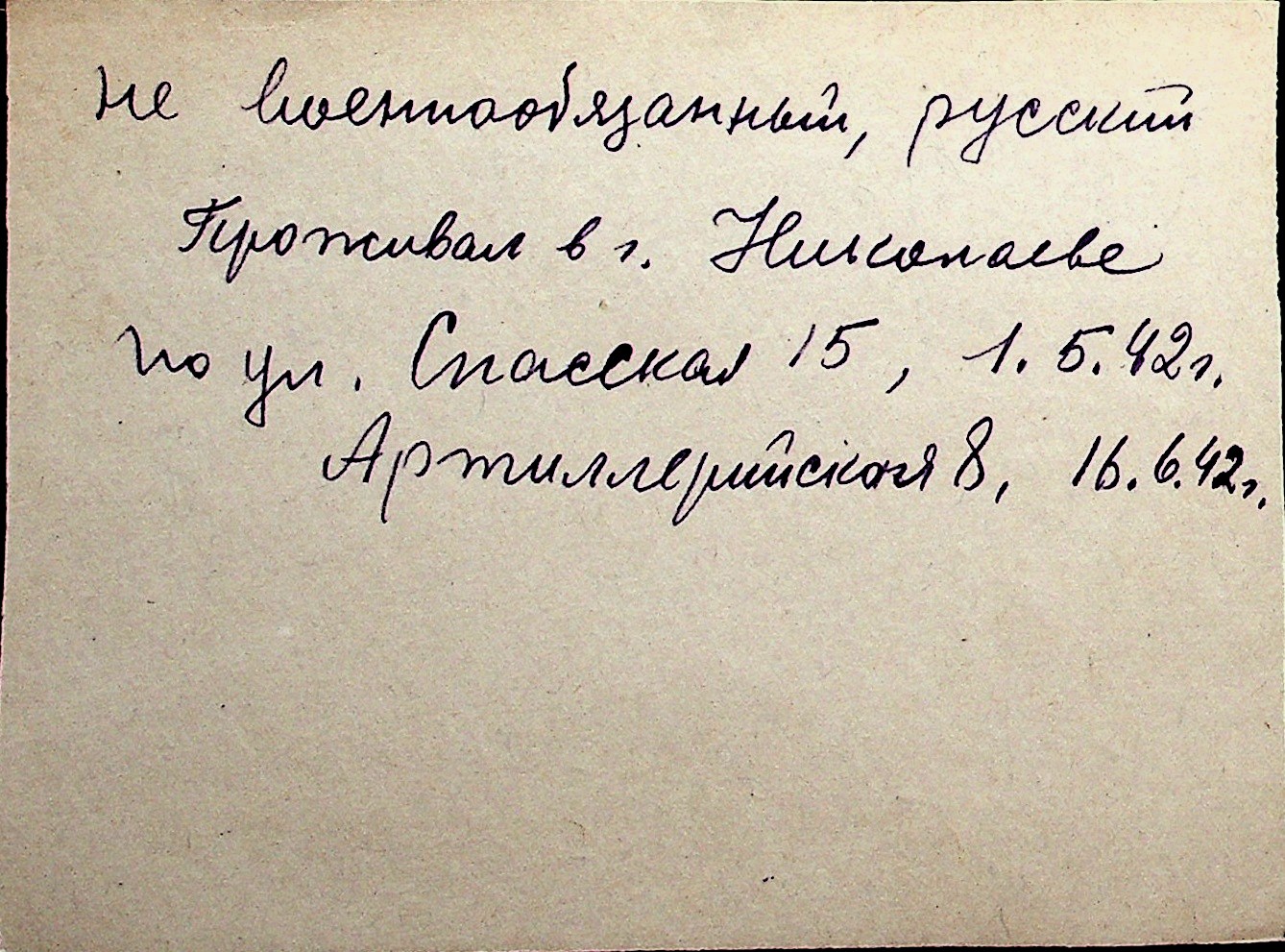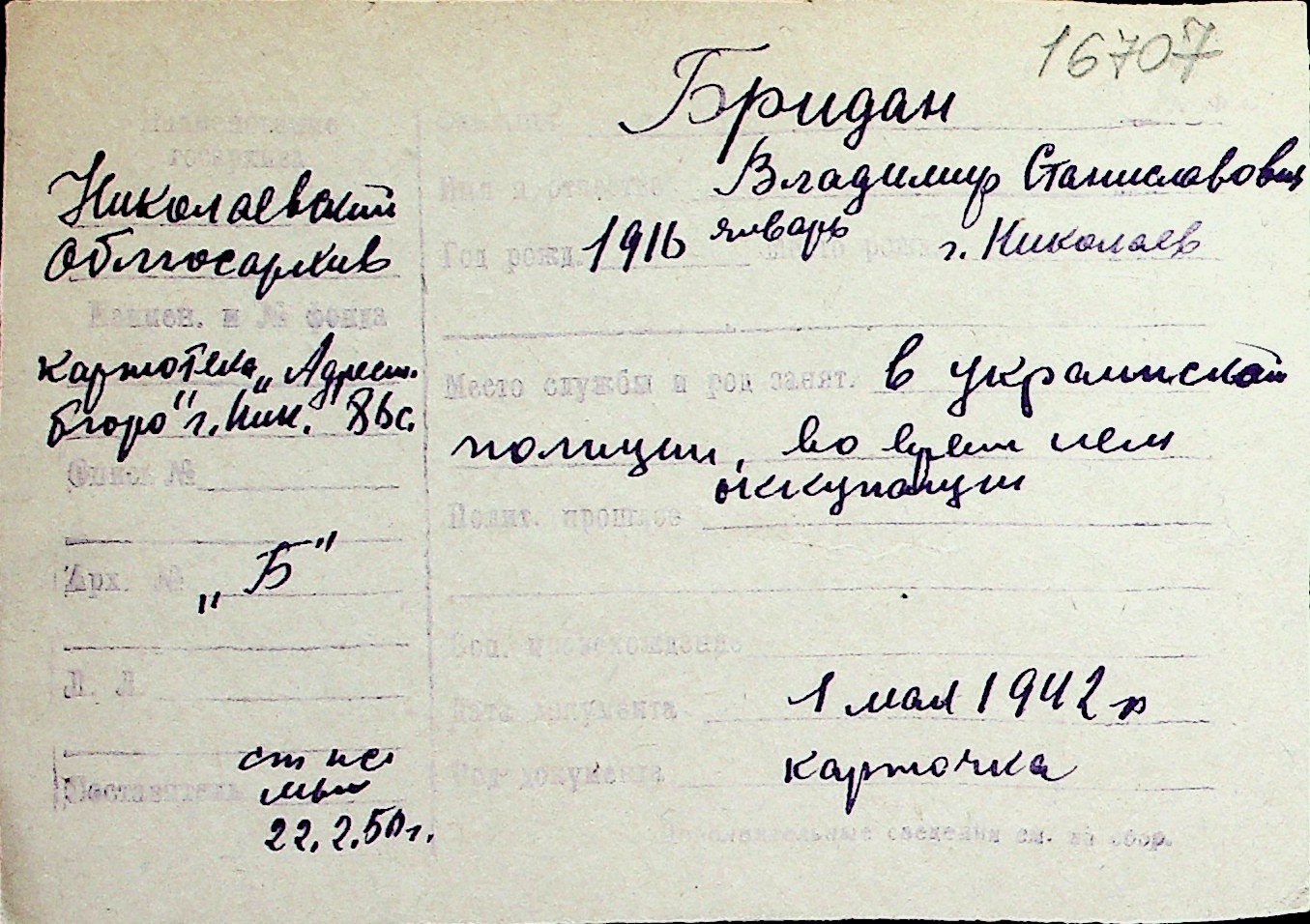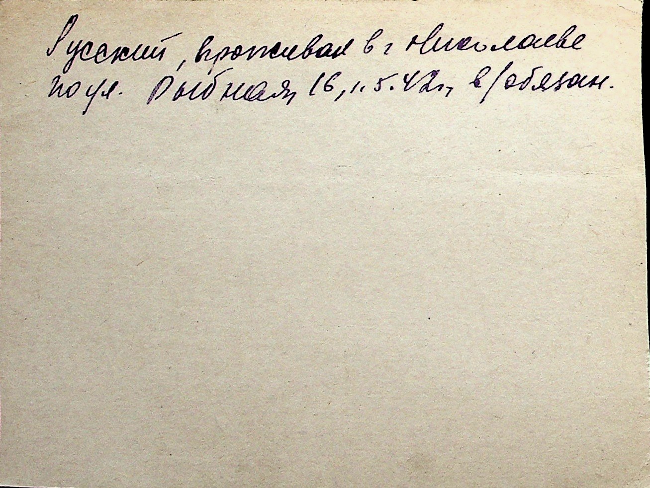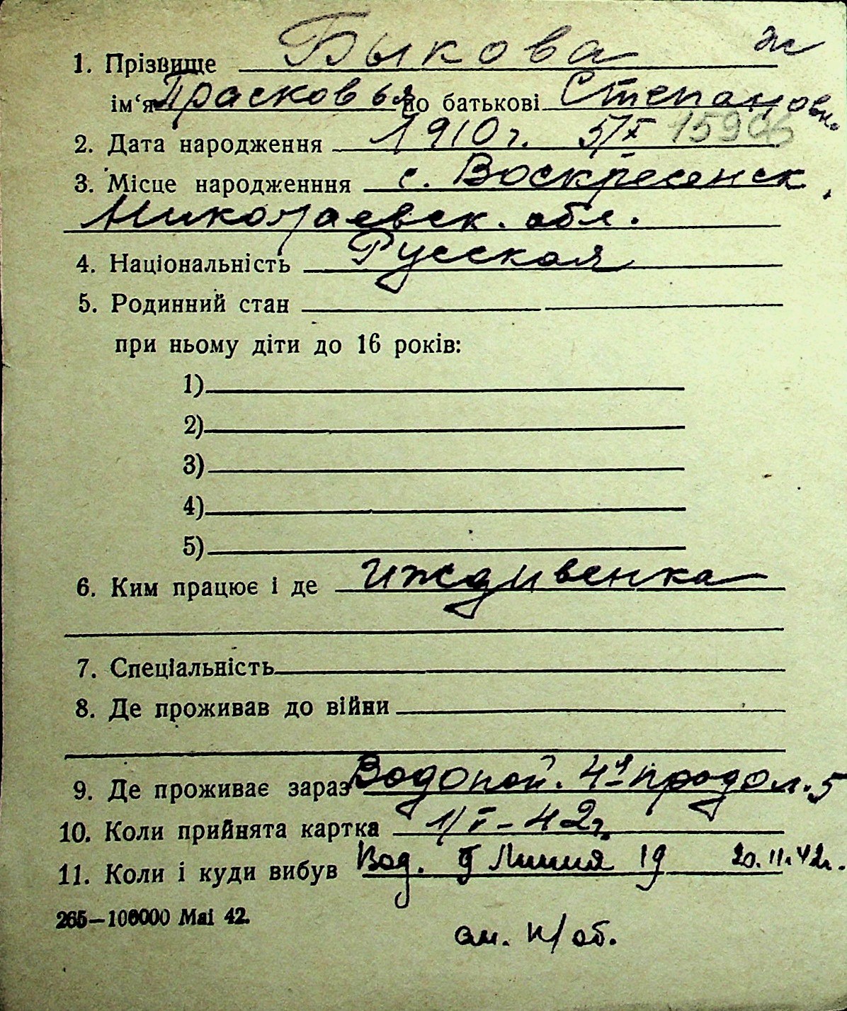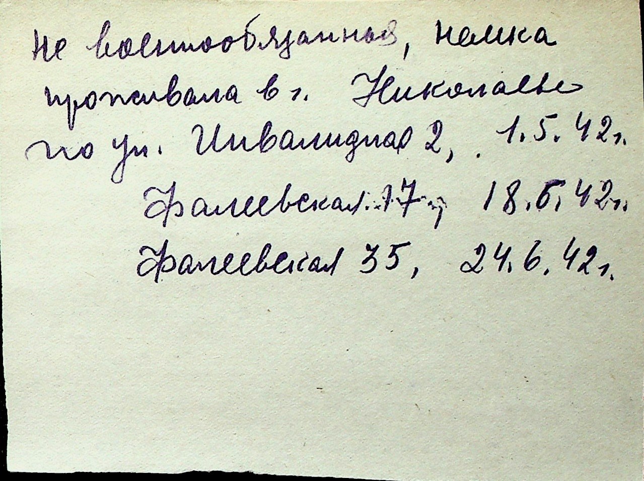 ◦ ◦ Перелік карток на осіб, які мешкали у м. Миколаїв у період окупації 1941–1944 років
