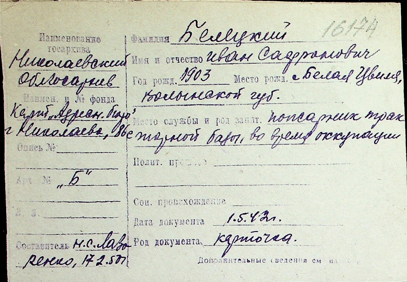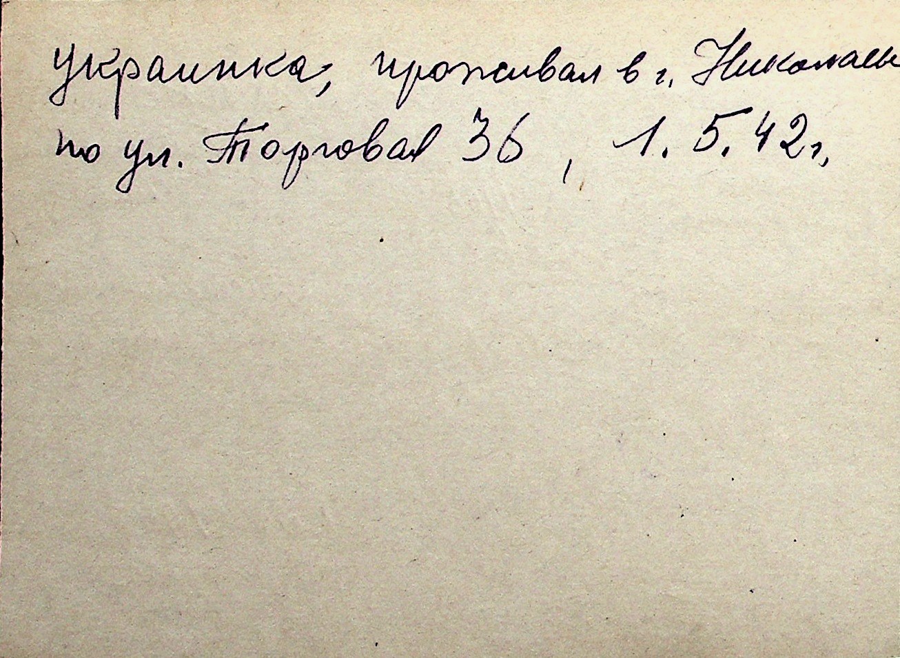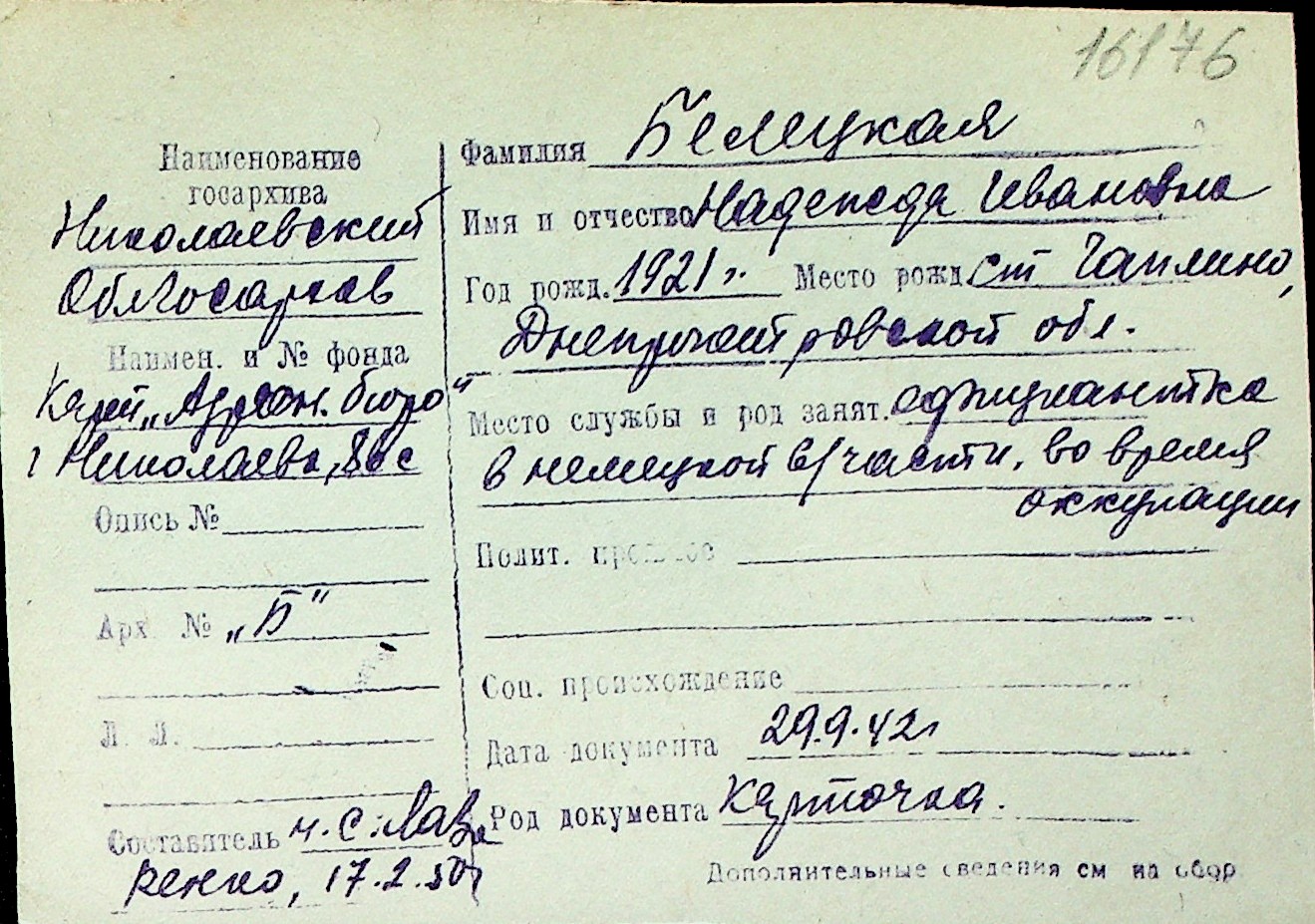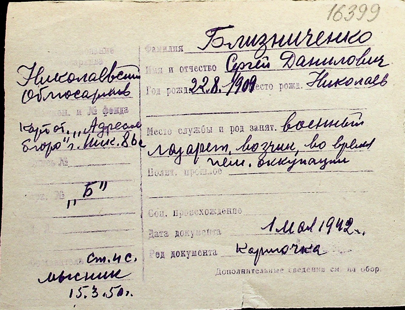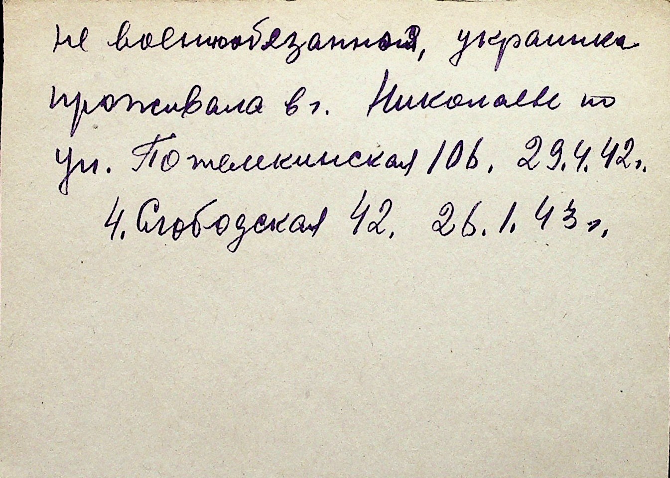 ◦ ◦ Перелік карток на осіб, які мешкали у м. Миколаїв у період окупації 1941–1944 років