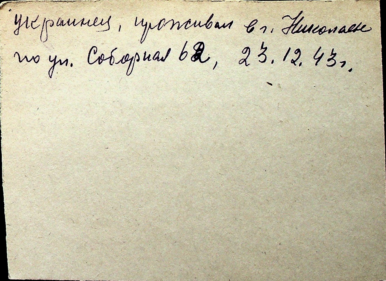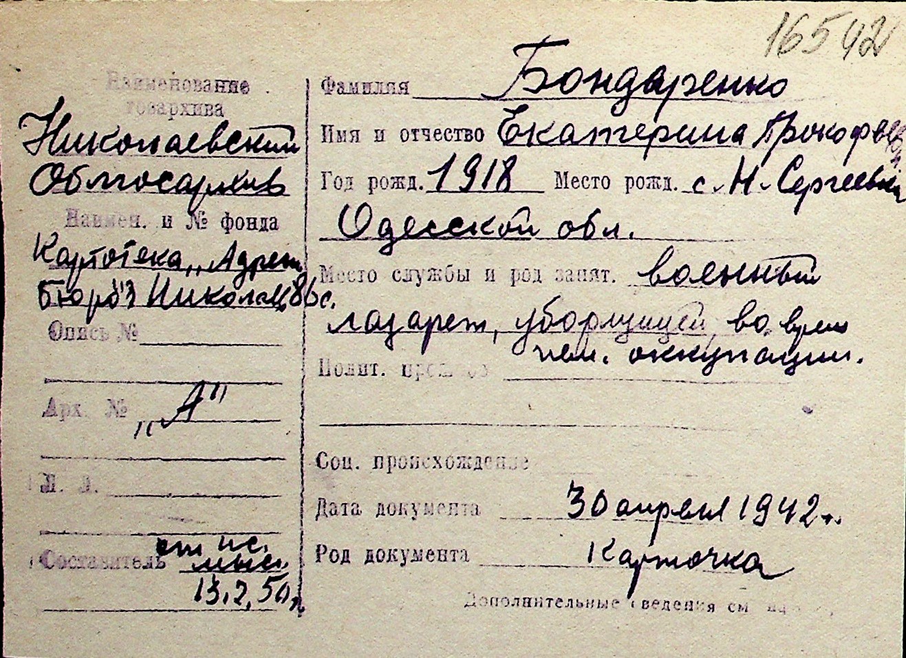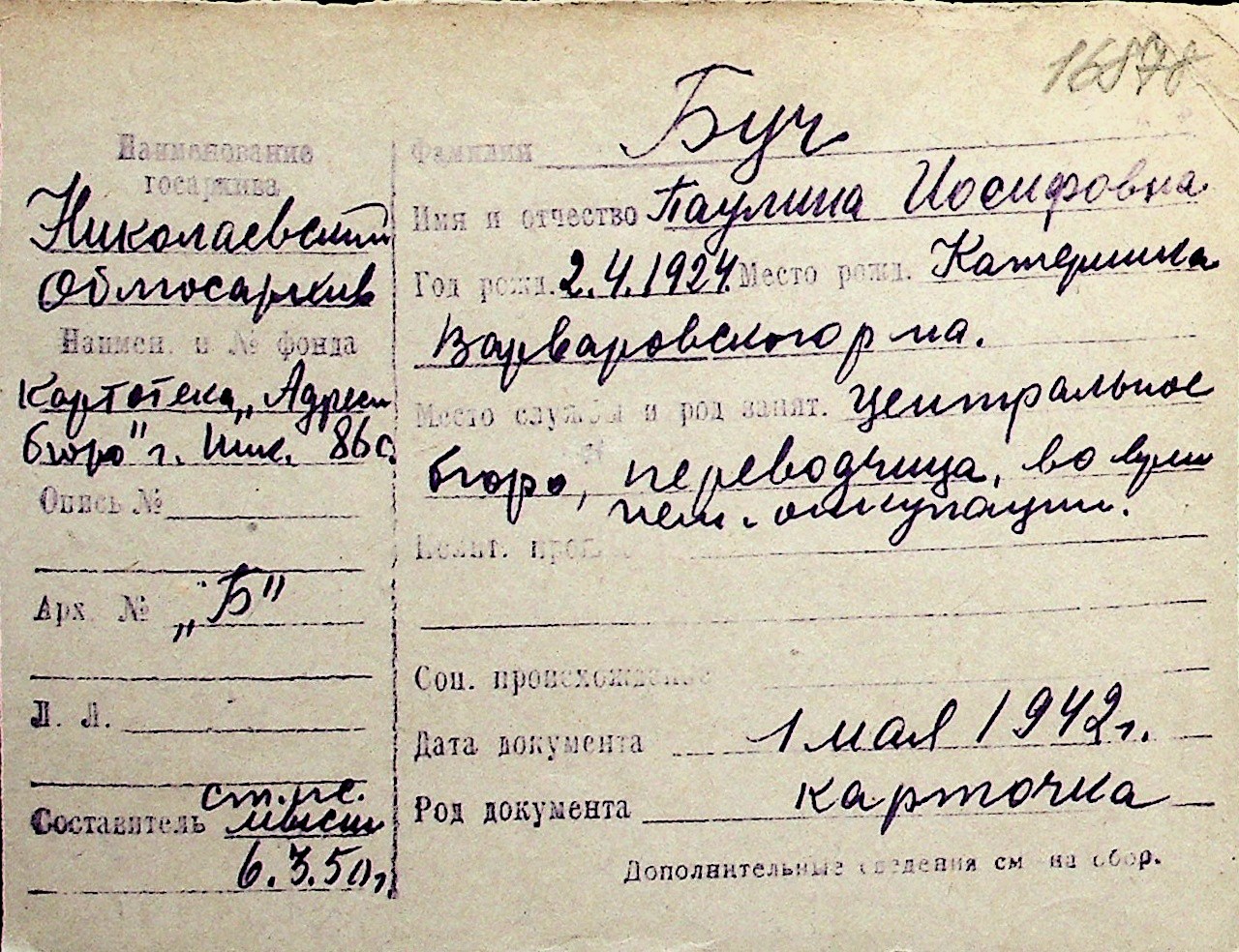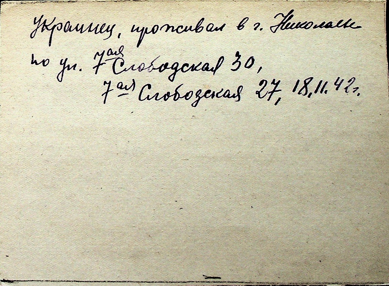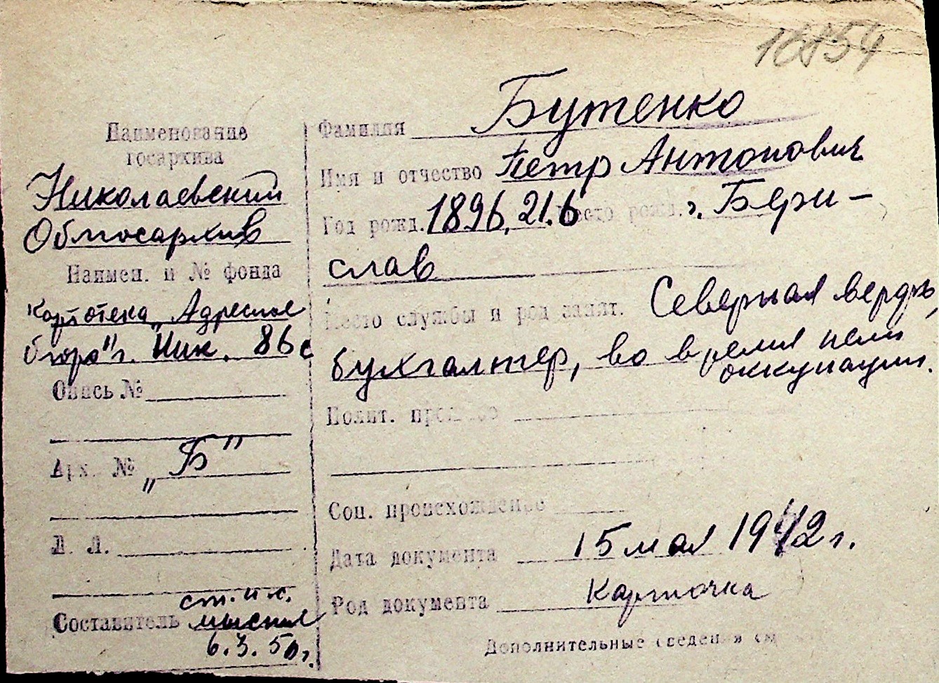 ◦ ◦ Перелік карток на осіб, які мешкали у м. Миколаїв у період окупації 1941–1944 років