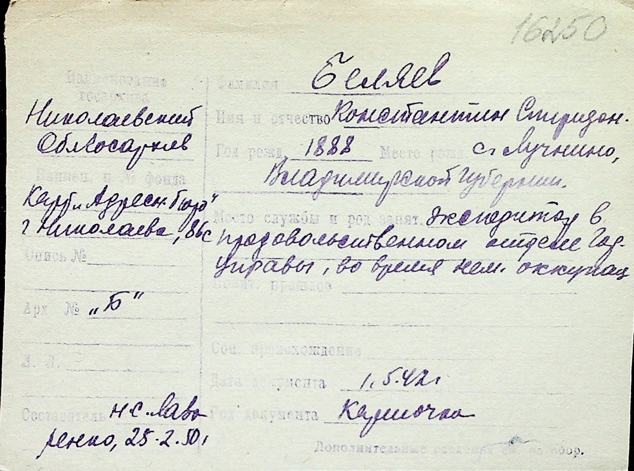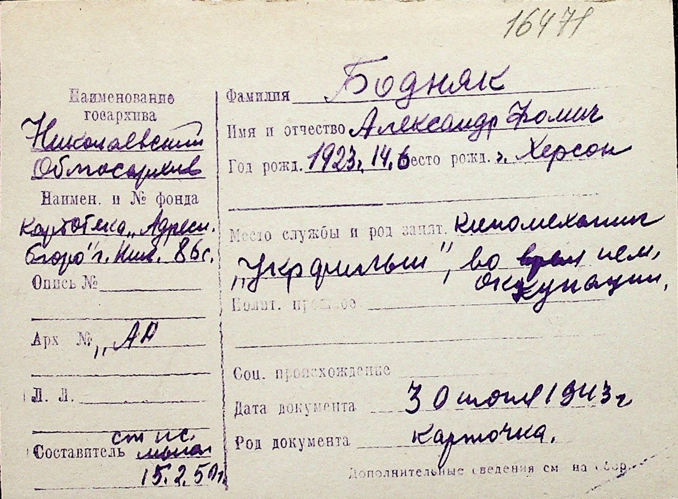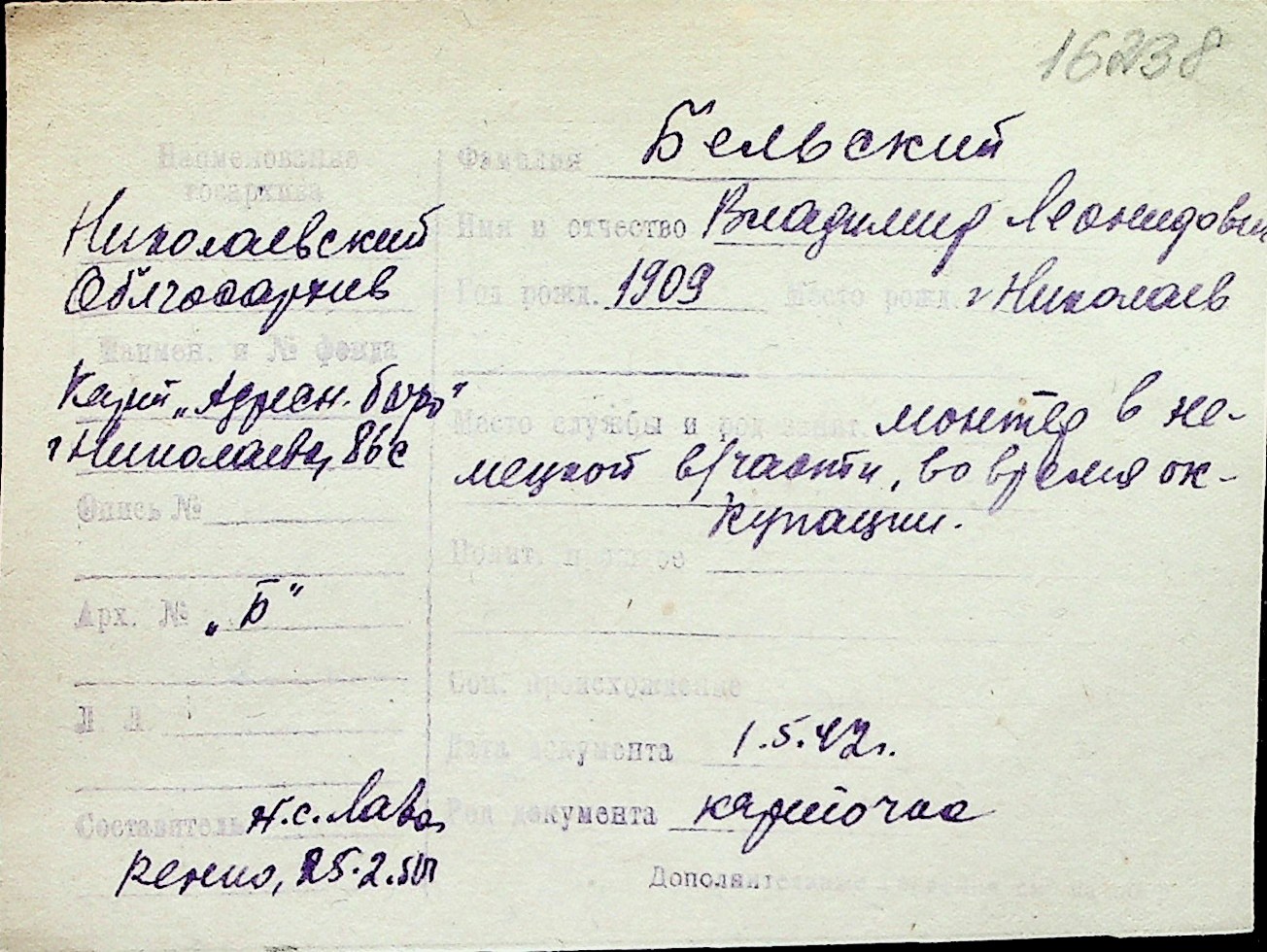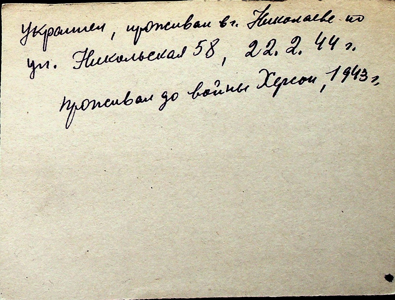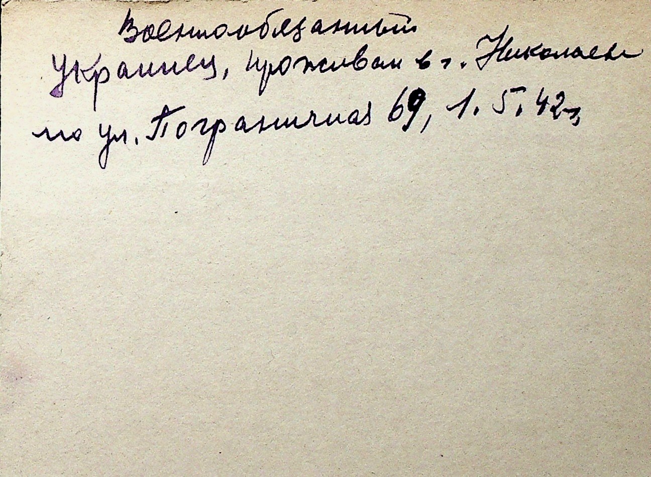 ◦ ◦ Перелік карток на осіб, які мешкали у м. Миколаїв у період окупації 1941–1944 років