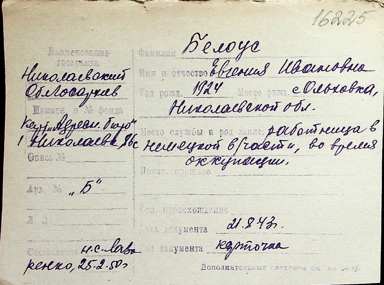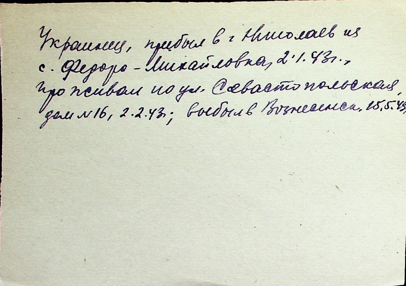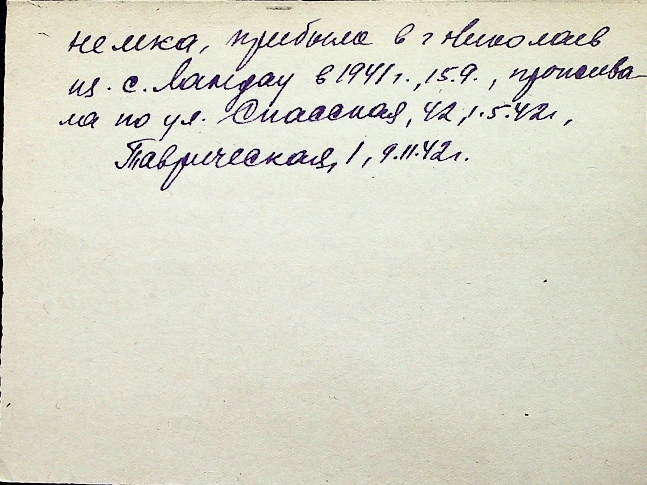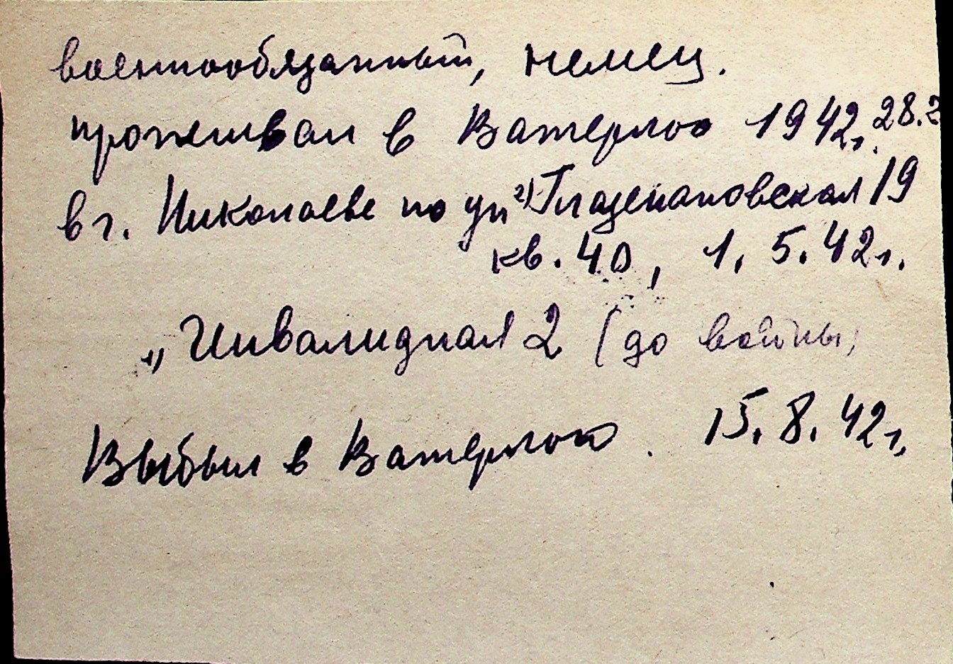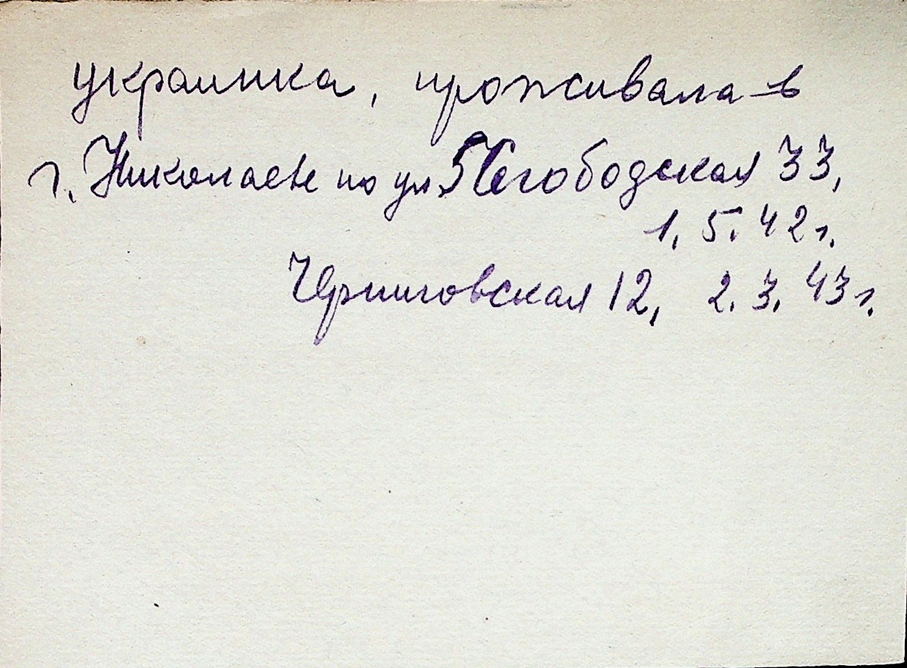 ◦ ◦ Перелік карток на осіб, які мешкали у м. Миколаїв у період окупації 1941–1944 років