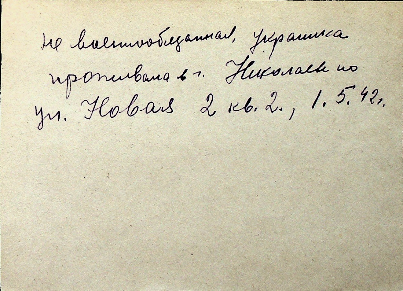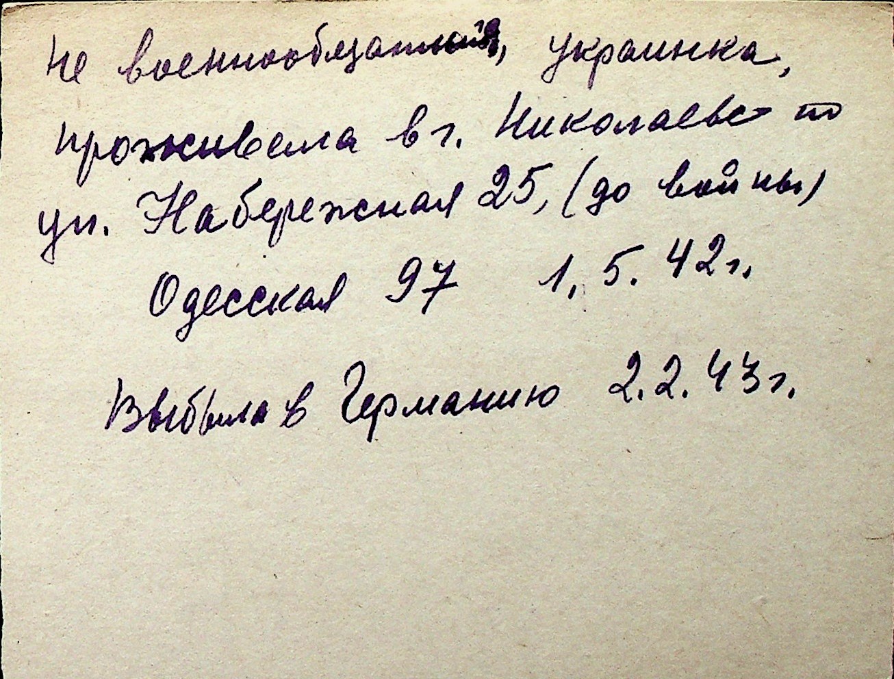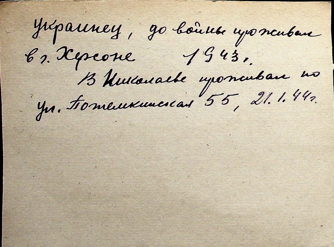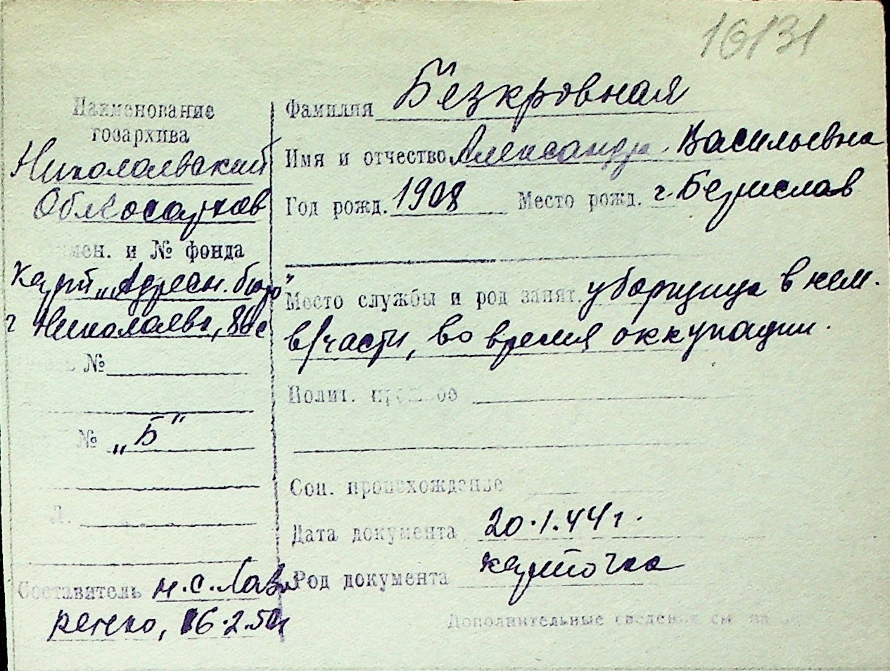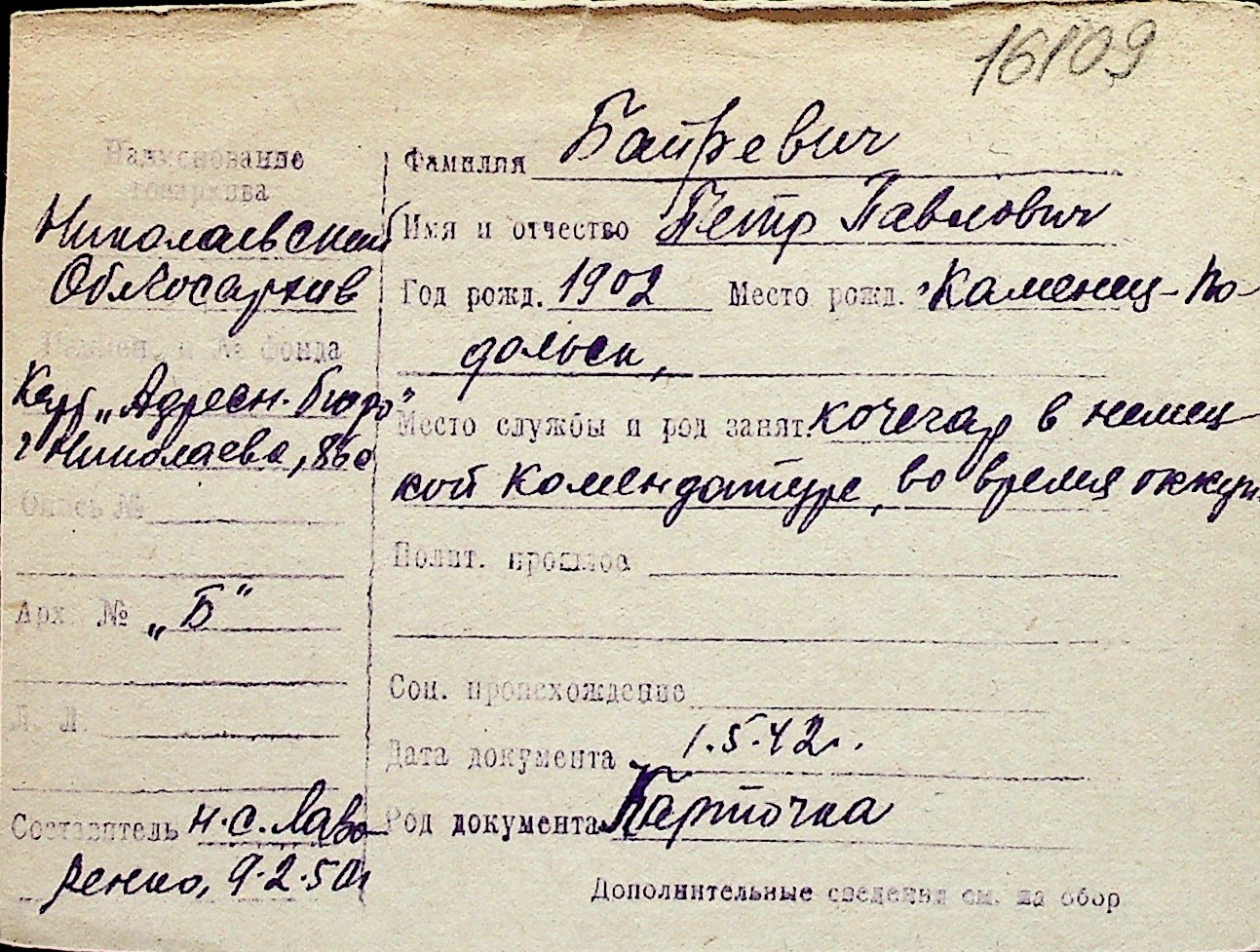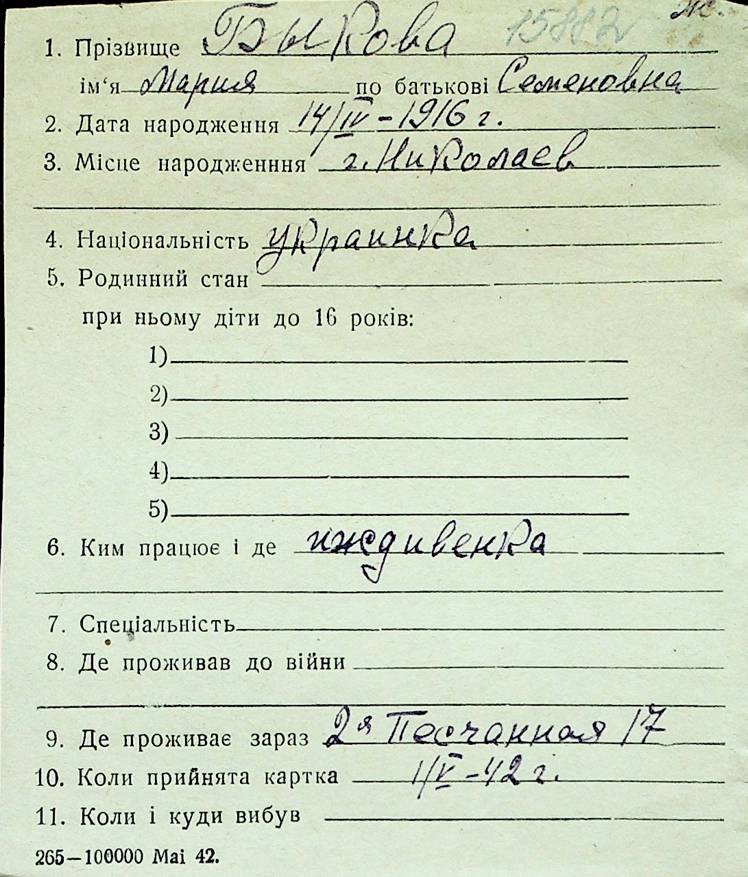 ◦ ◦ Перелік карток на осіб, які мешкали у м. Миколаїв у період окупації 1941–1944 років