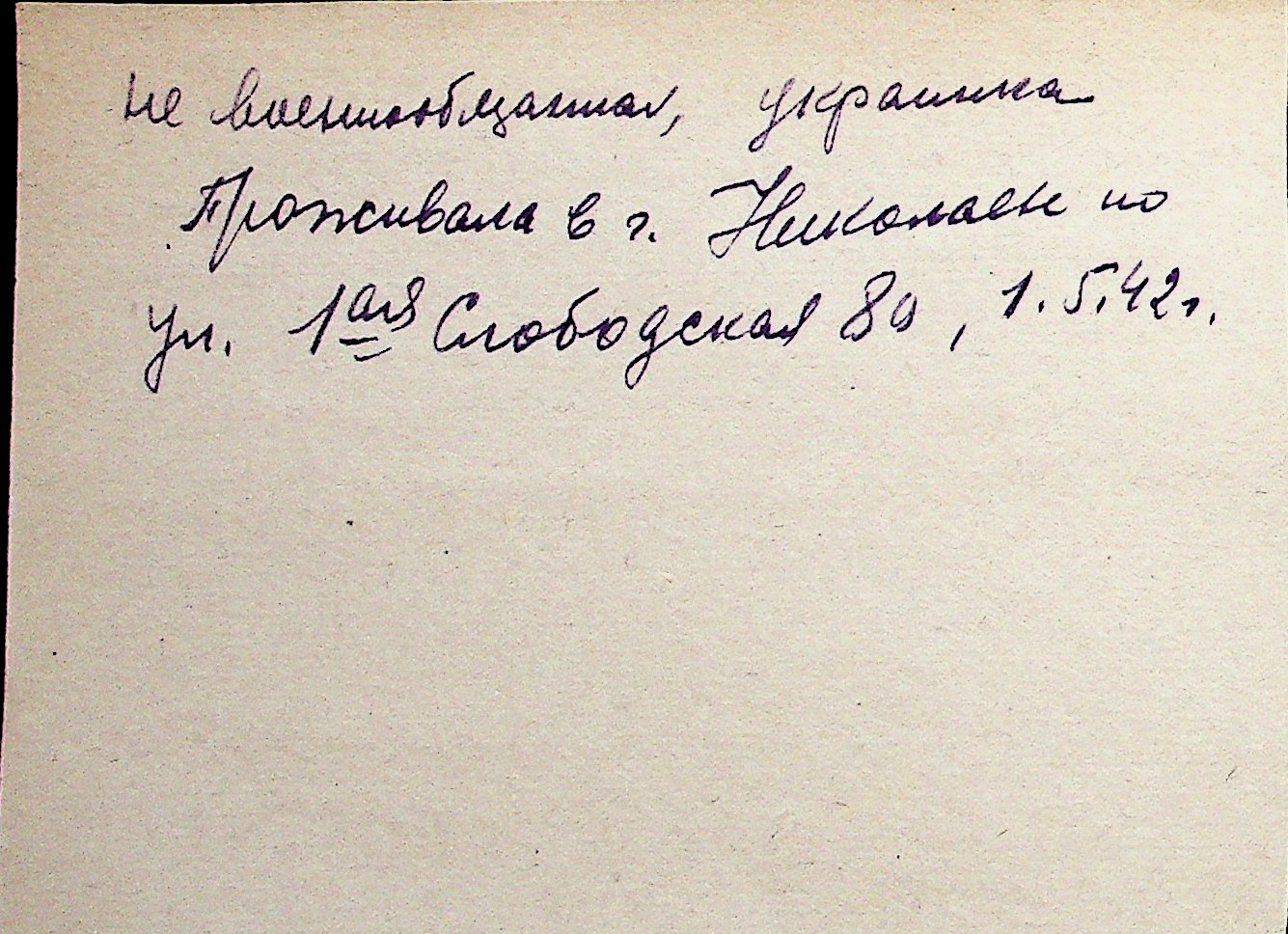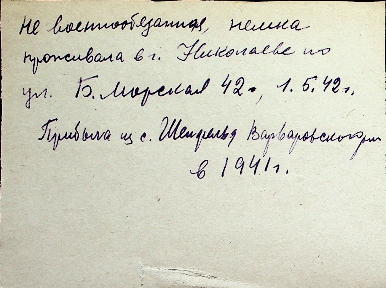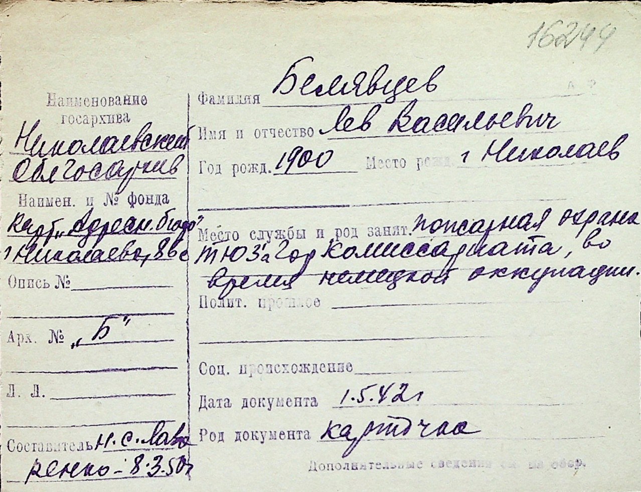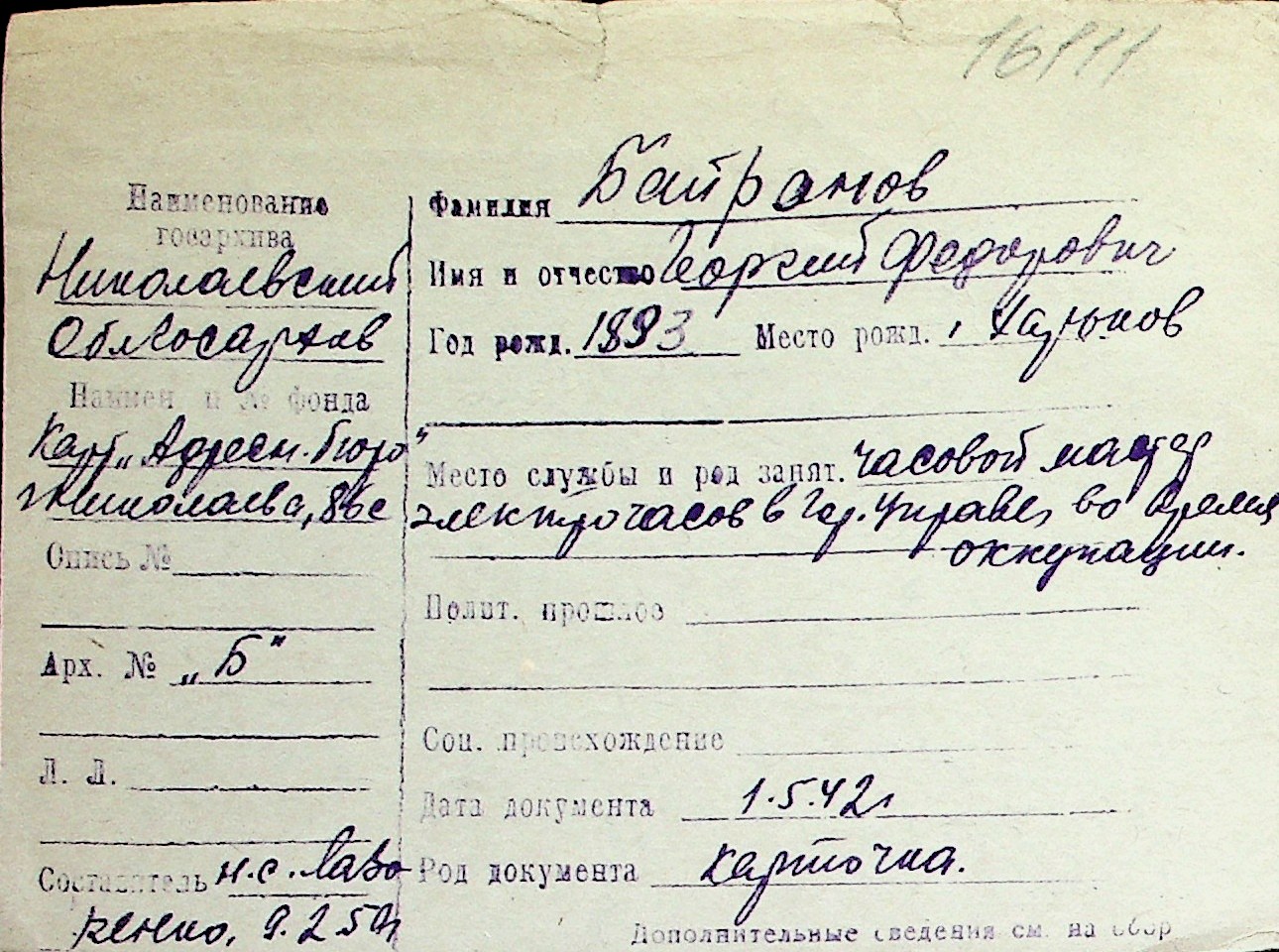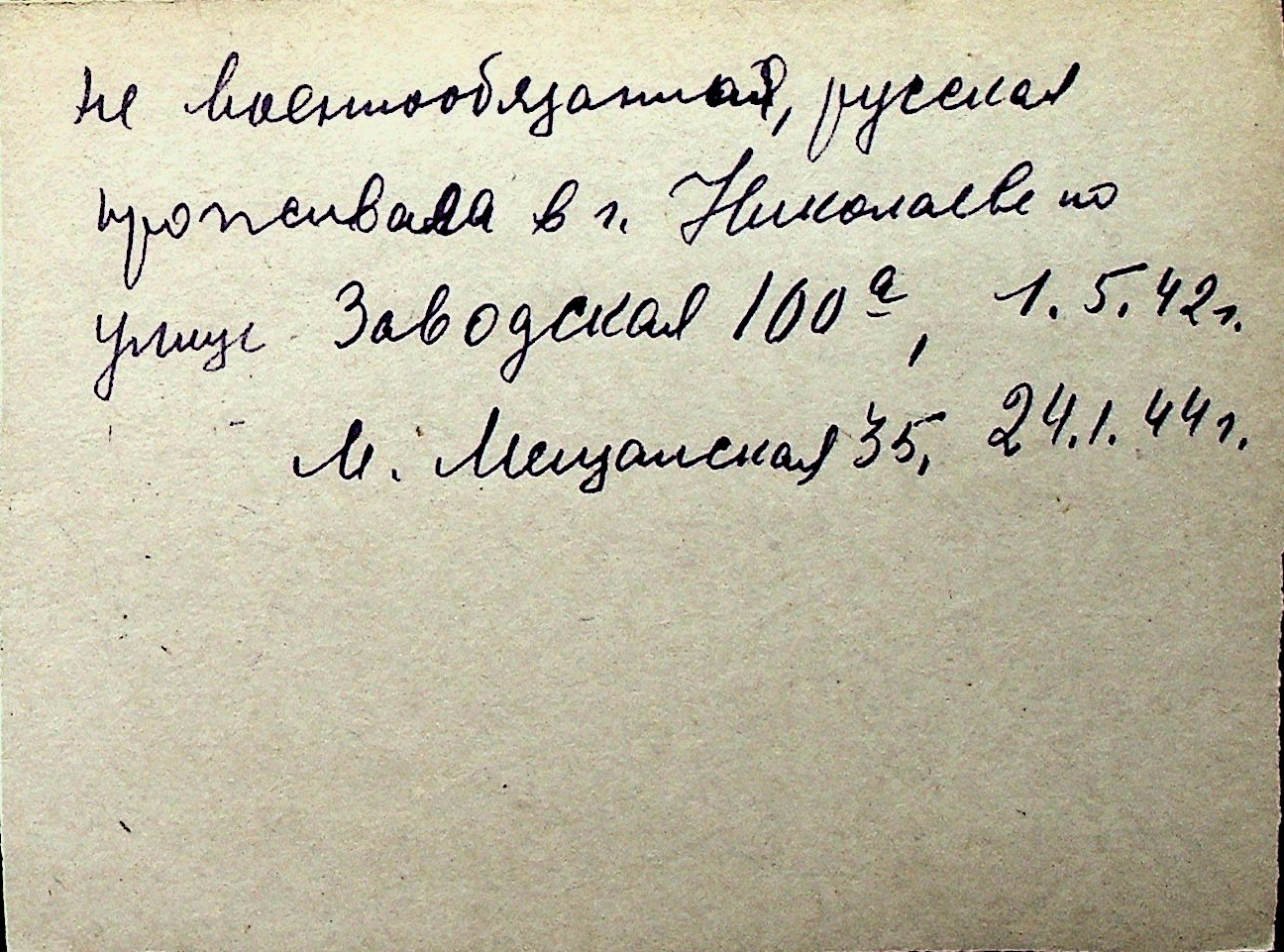 ◦ ◦ Перелік карток на осіб, які мешкали у м. Миколаїв у період окупації 1941–1944 років