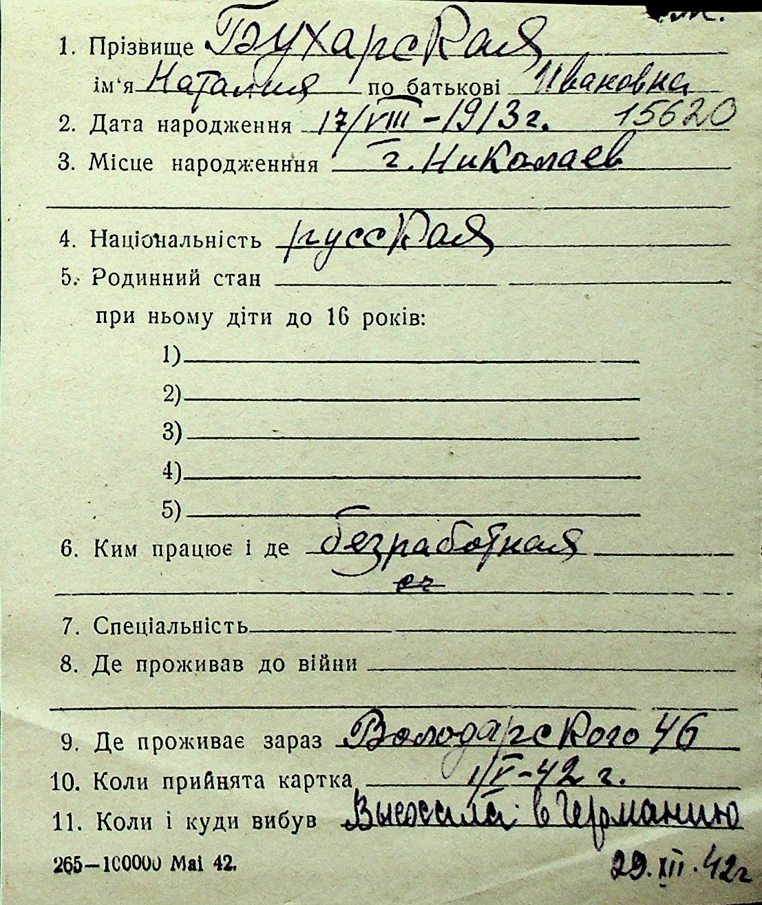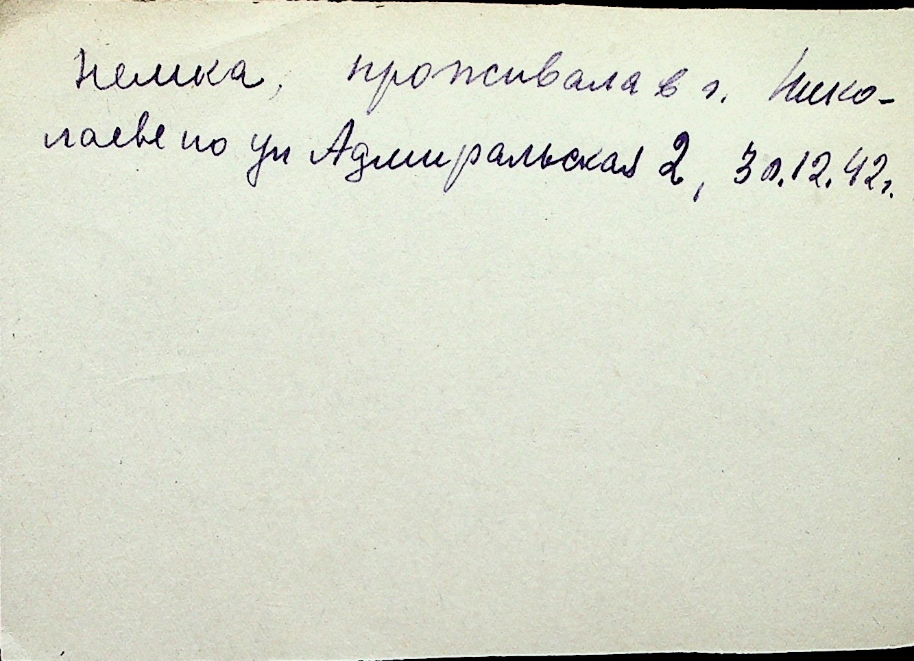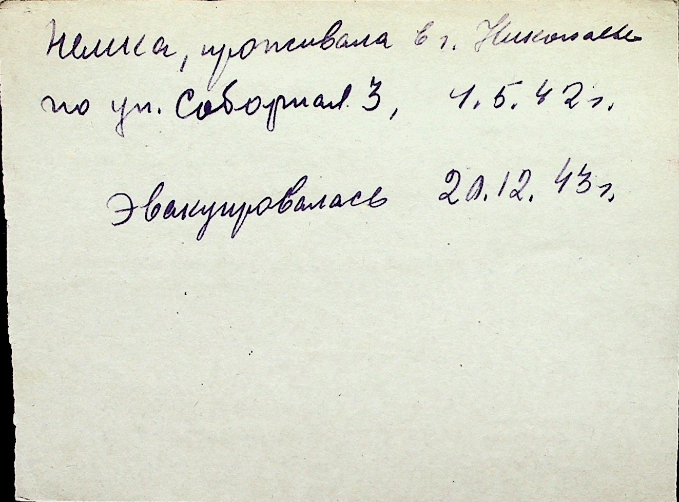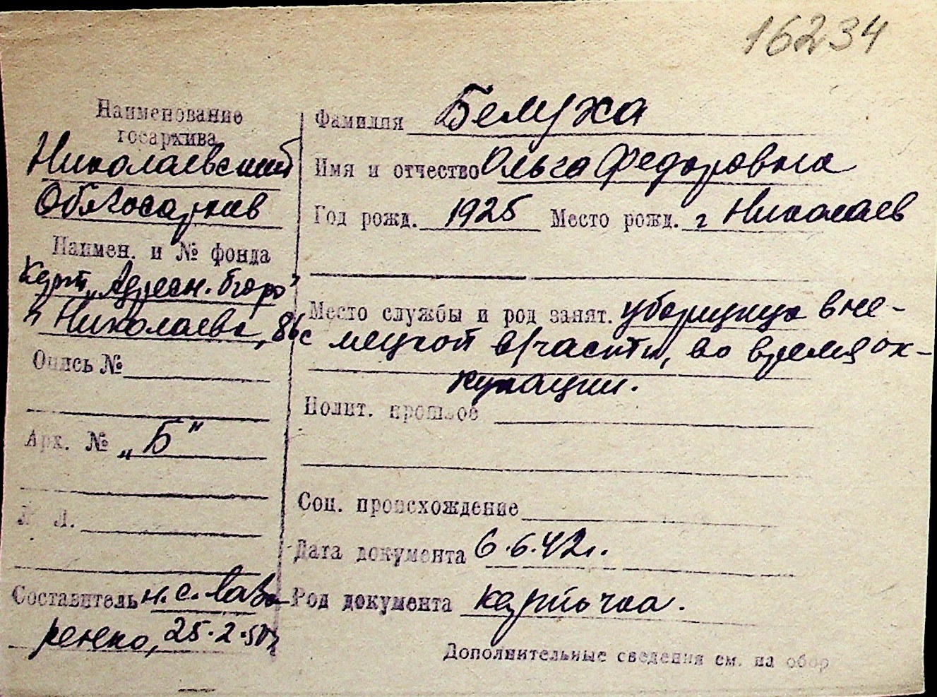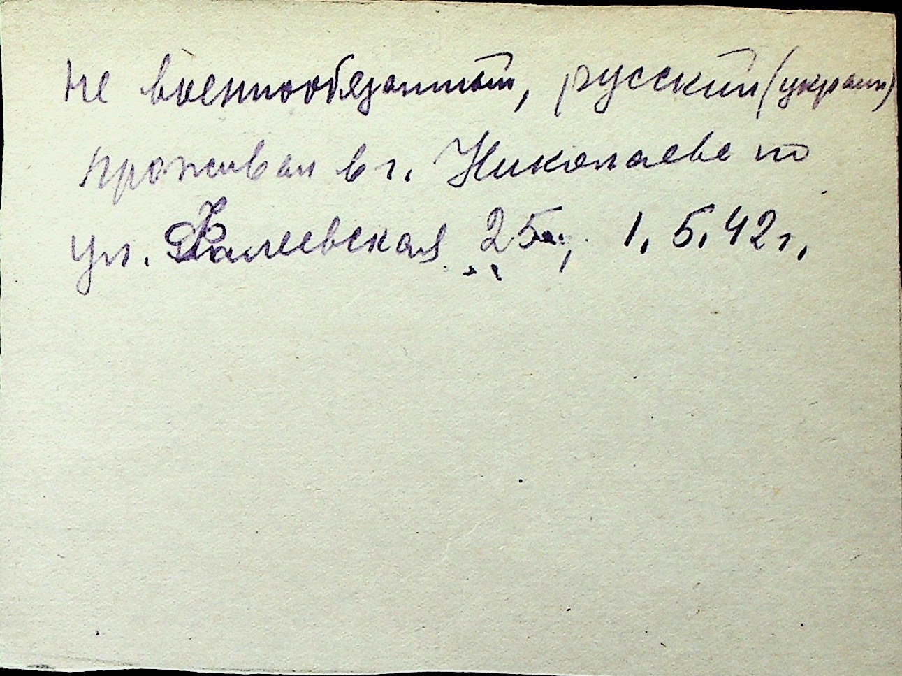 ◦ ◦ Перелік карток на осіб, які мешкали у м. Миколаїв у період окупації 1941–1944 років