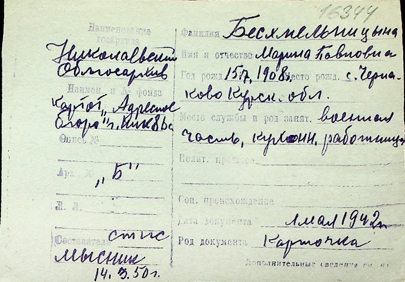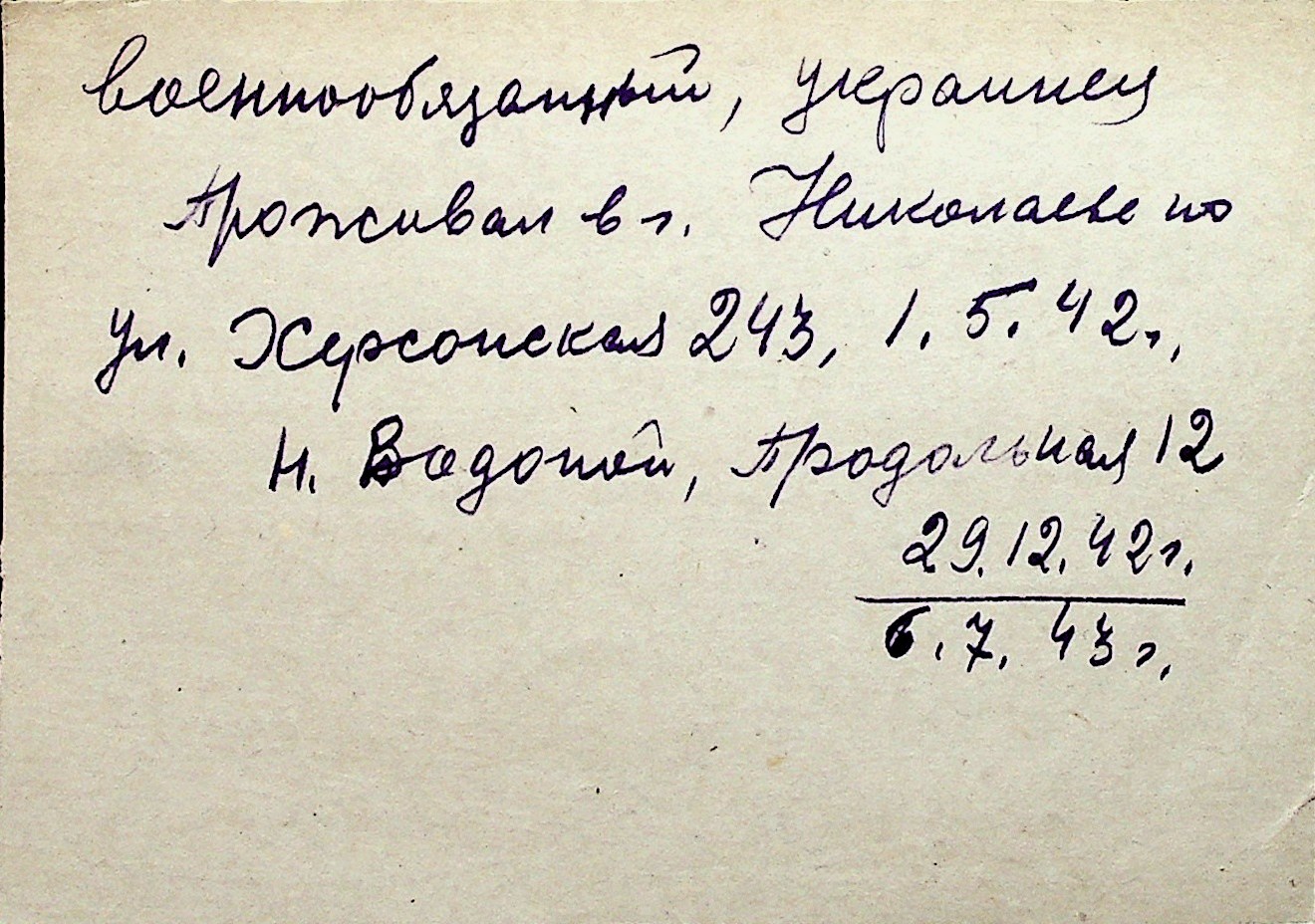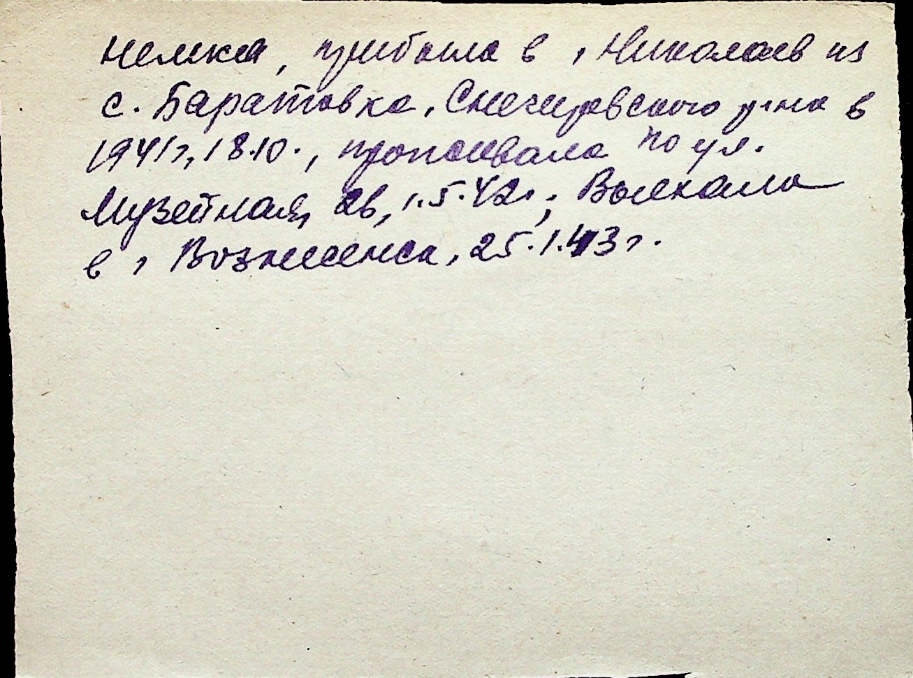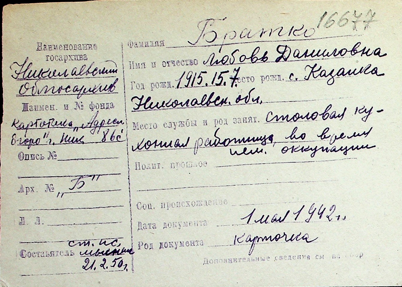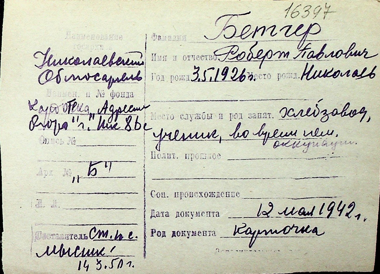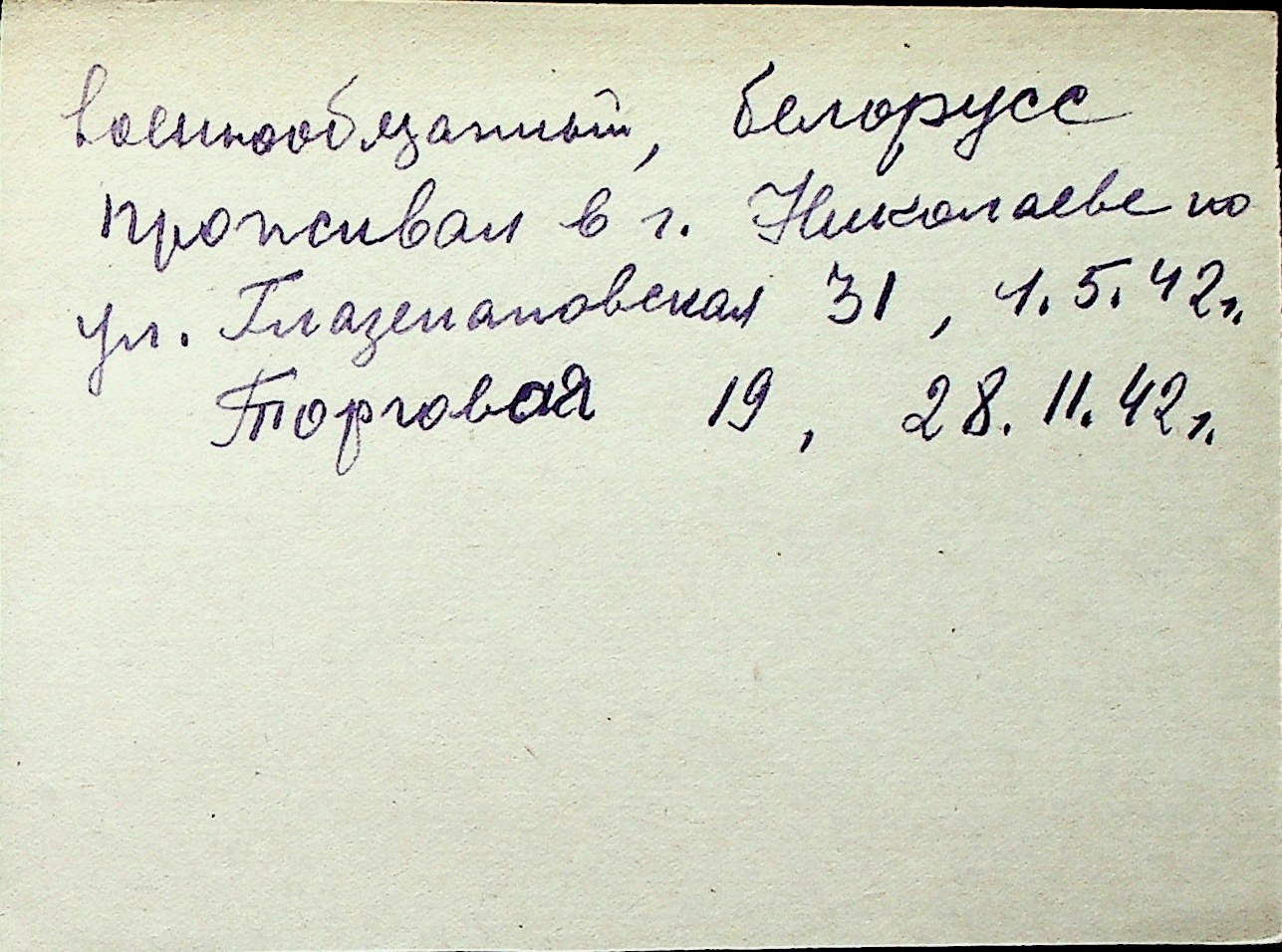 ◦ ◦ Перелік карток на осіб, які мешкали у м. Миколаїв у період окупації 1941–1944 років