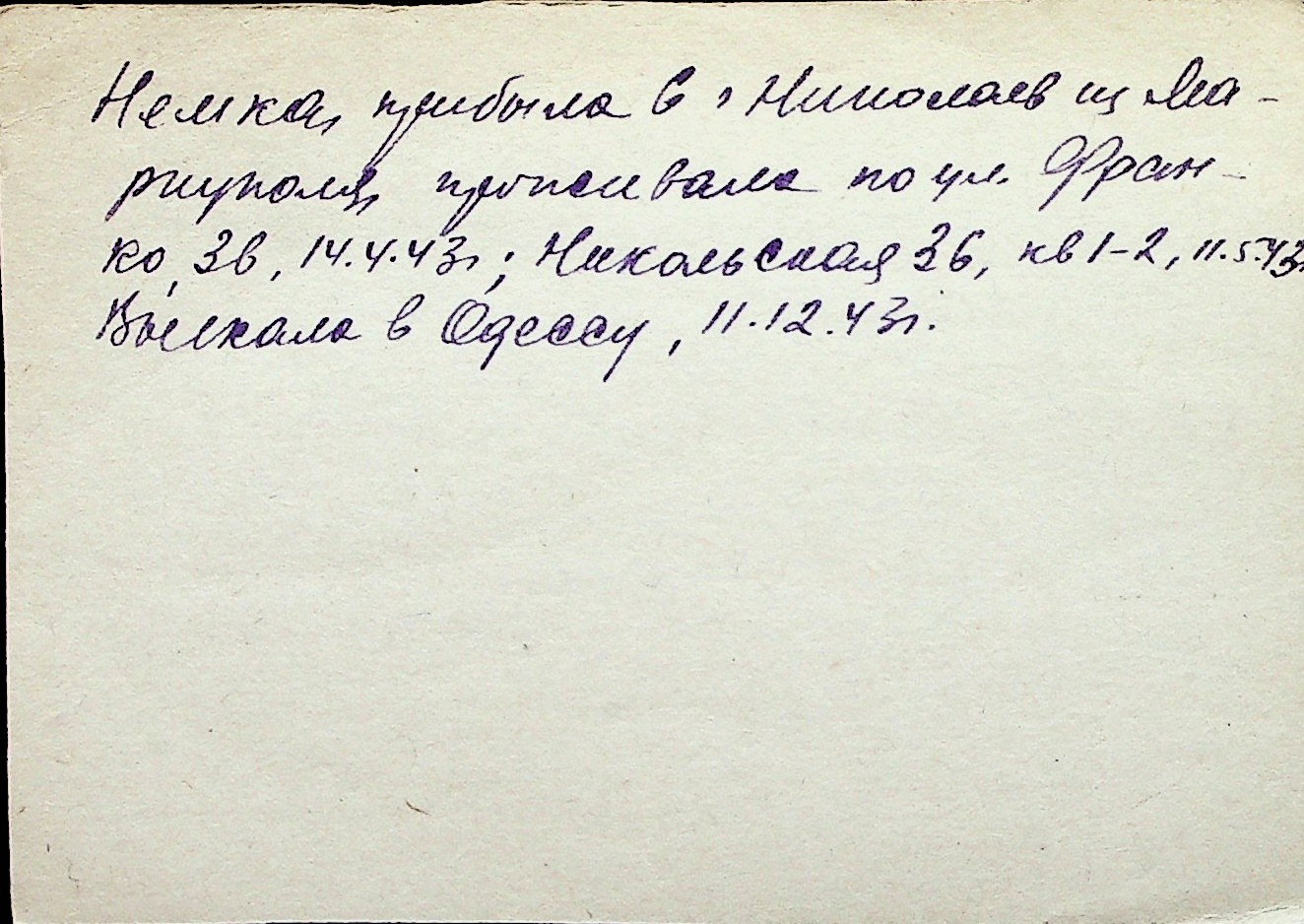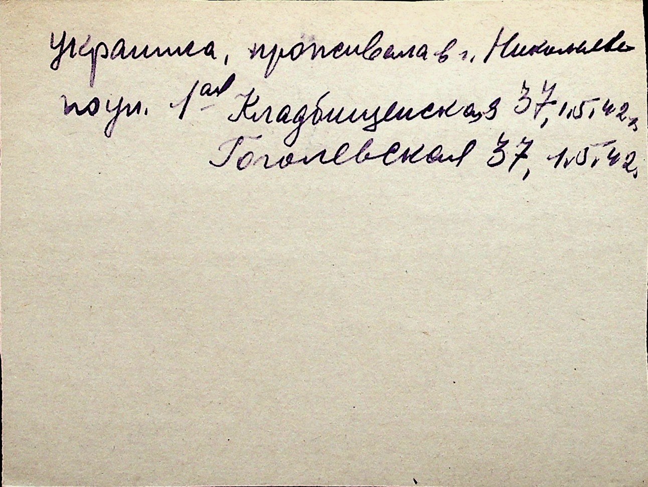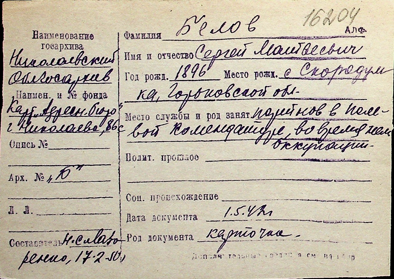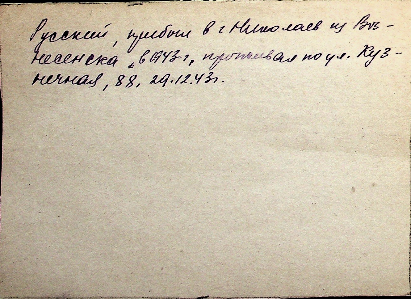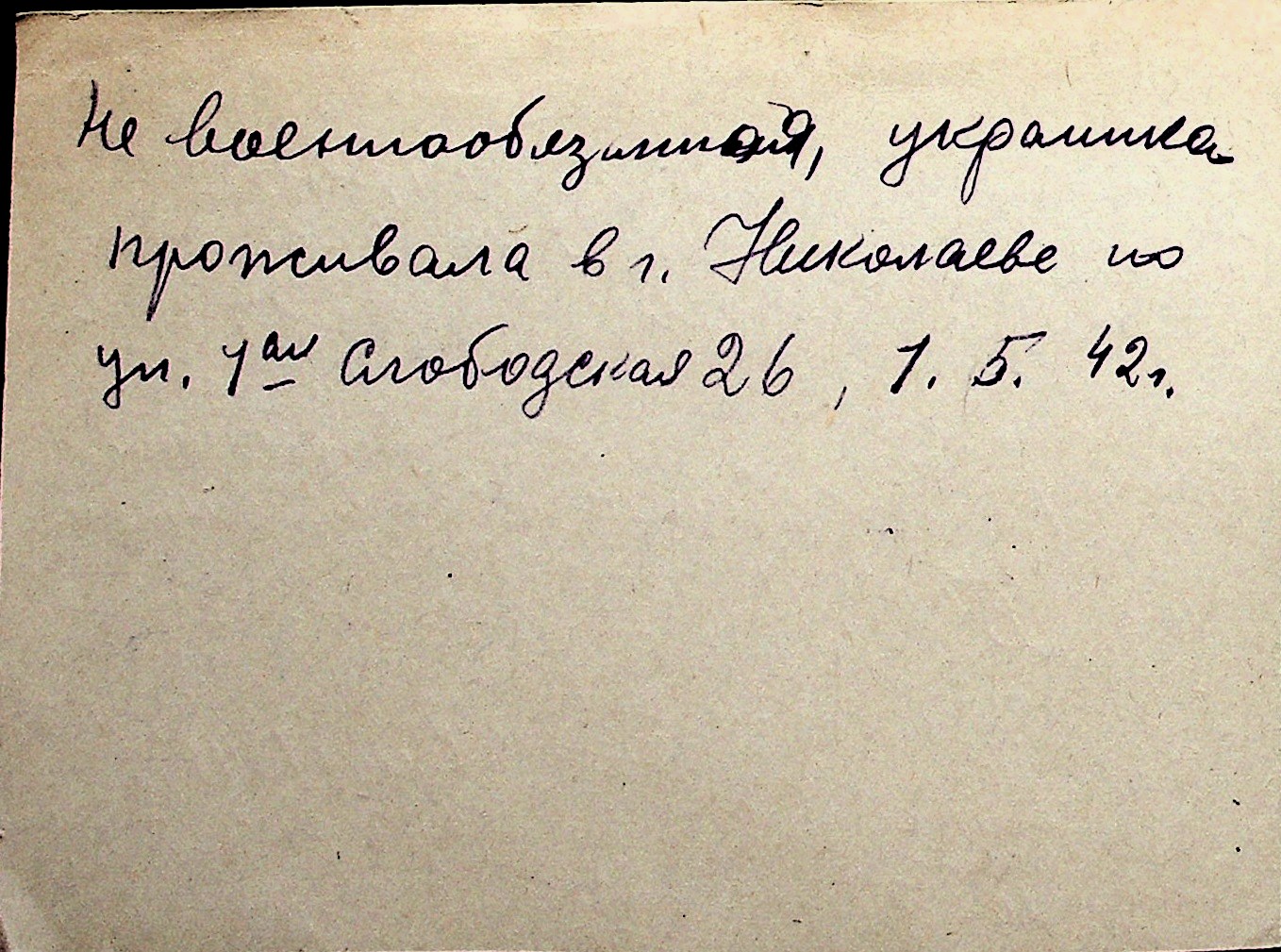 ◦ ◦ Перелік карток на осіб, які мешкали у м. Миколаїв у період окупації 1941–1944 років