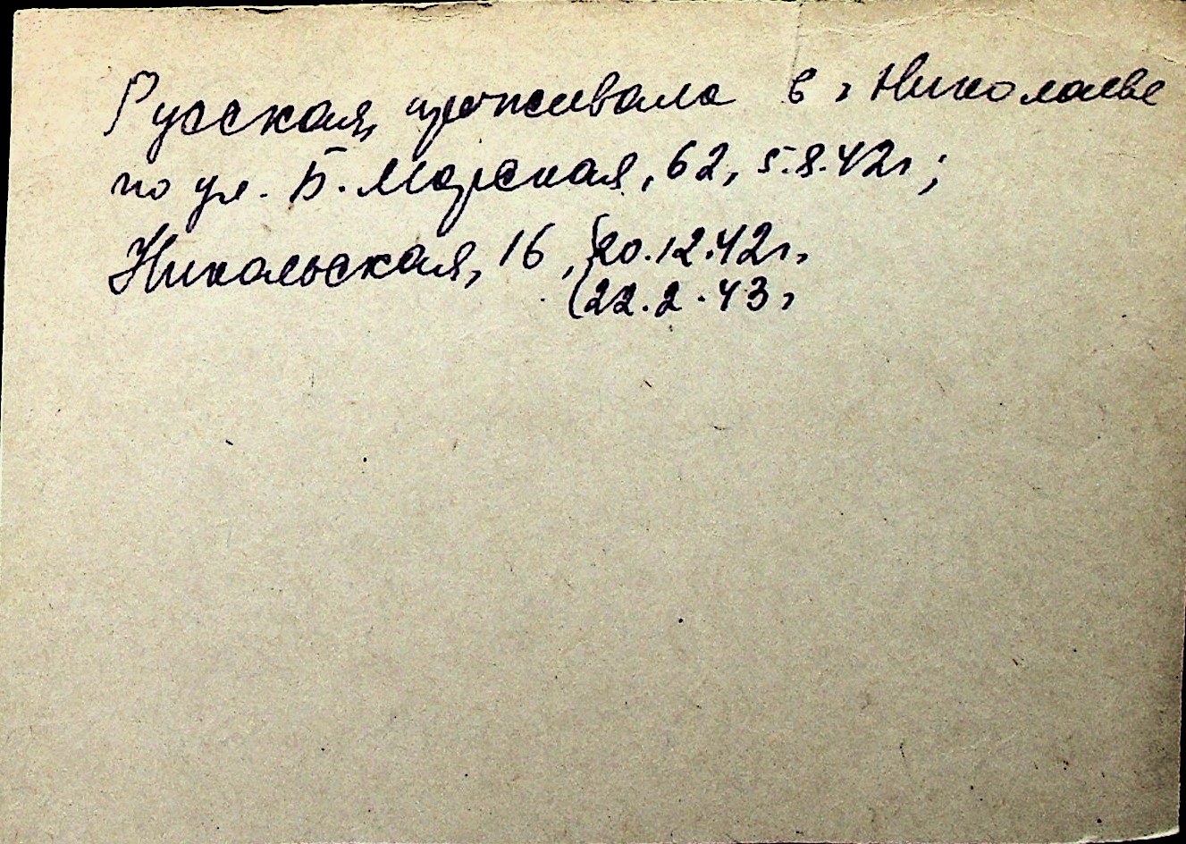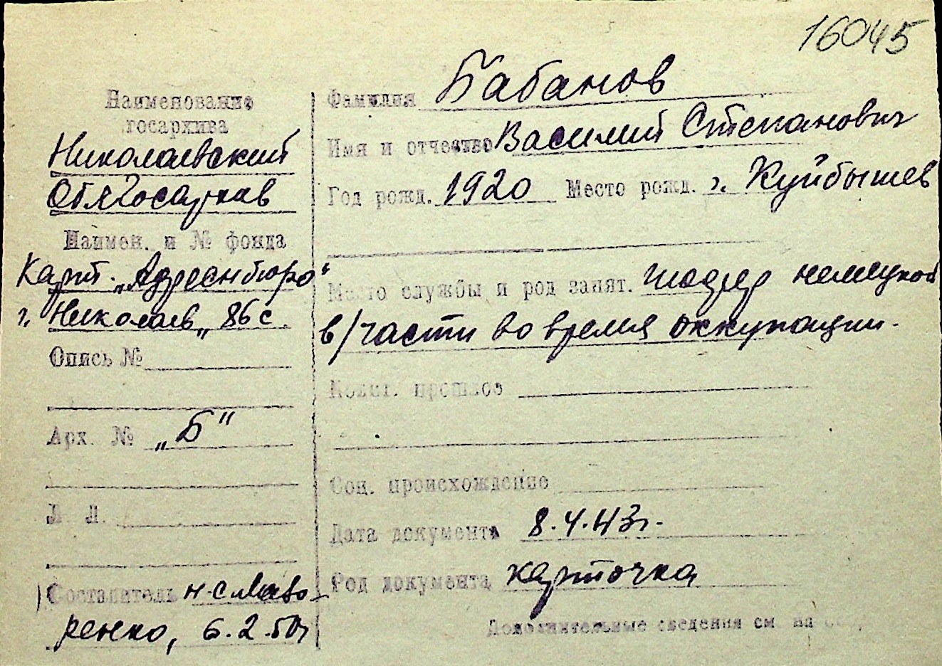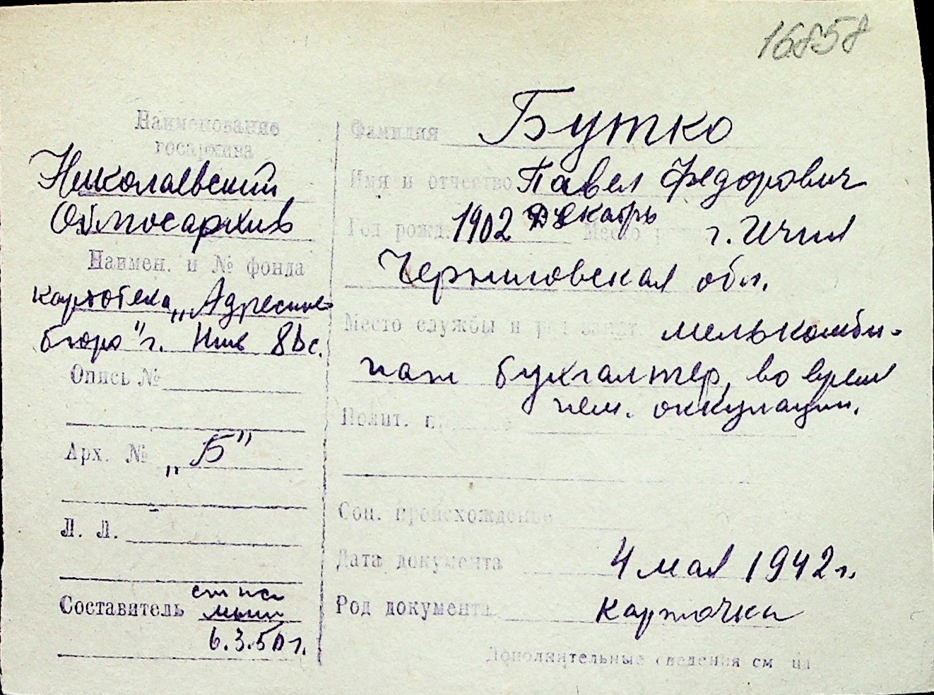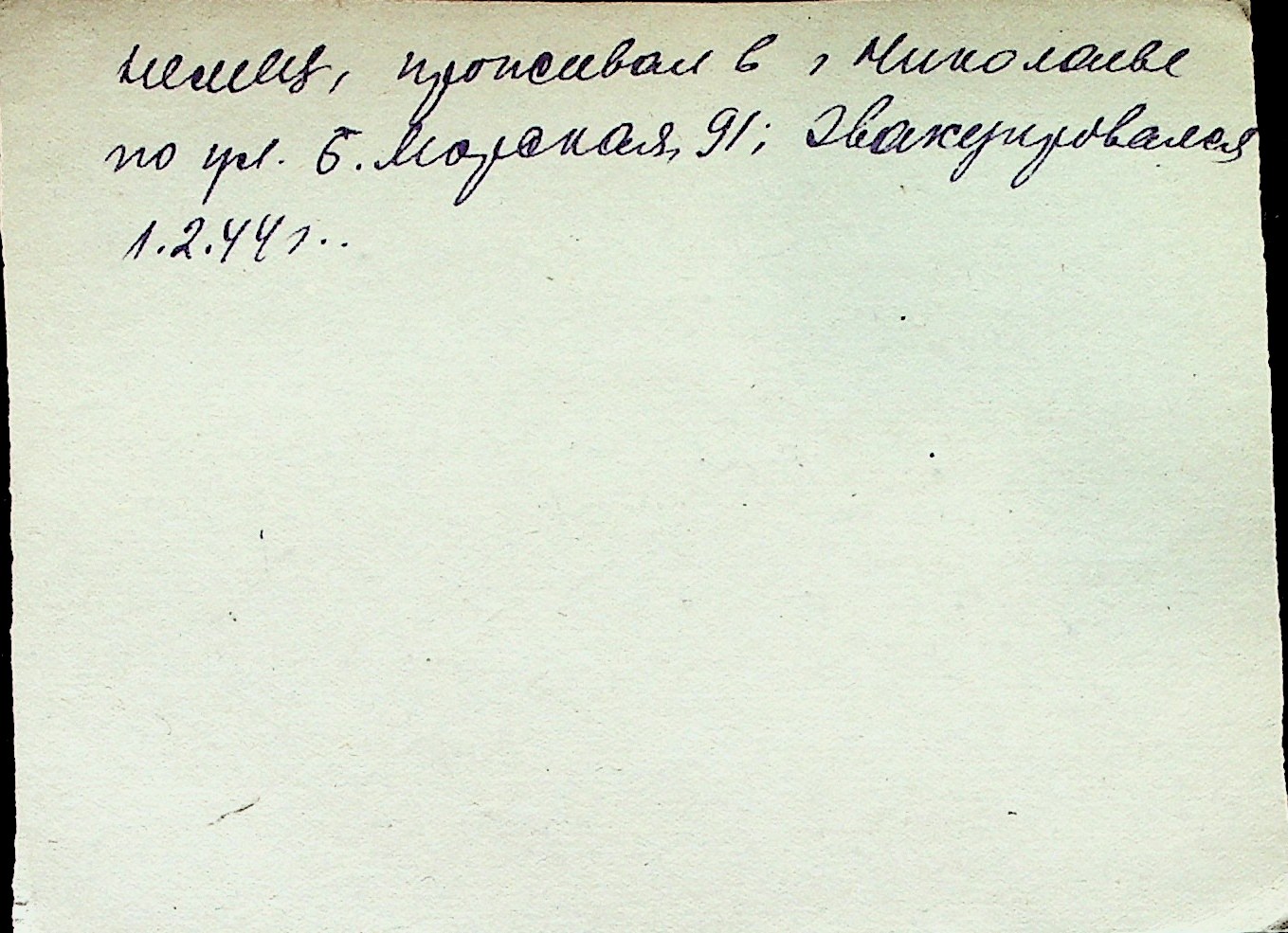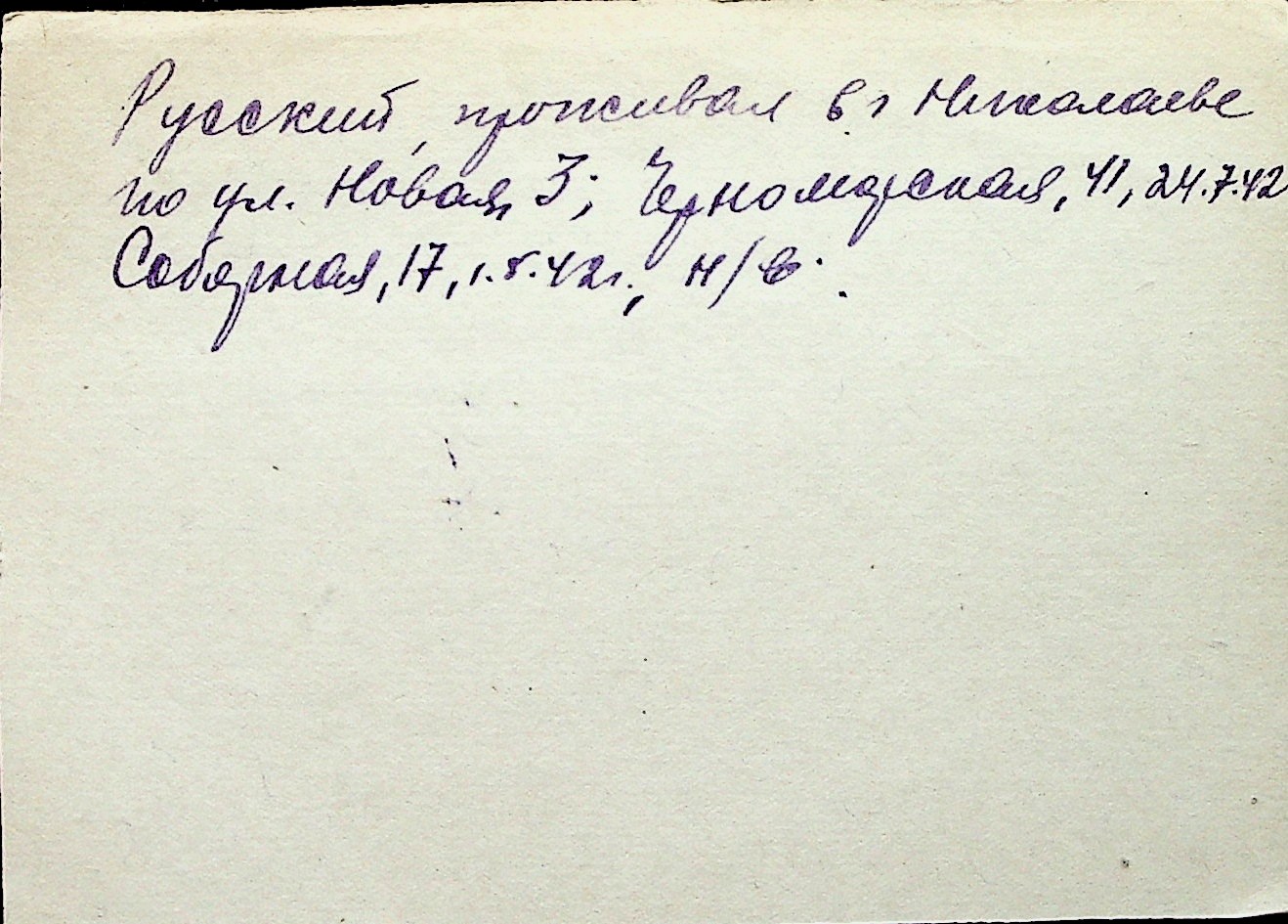 ◦ ◦ Перелік карток на осіб, які мешкали у м. Миколаїв у період окупації 1941–1944 років
