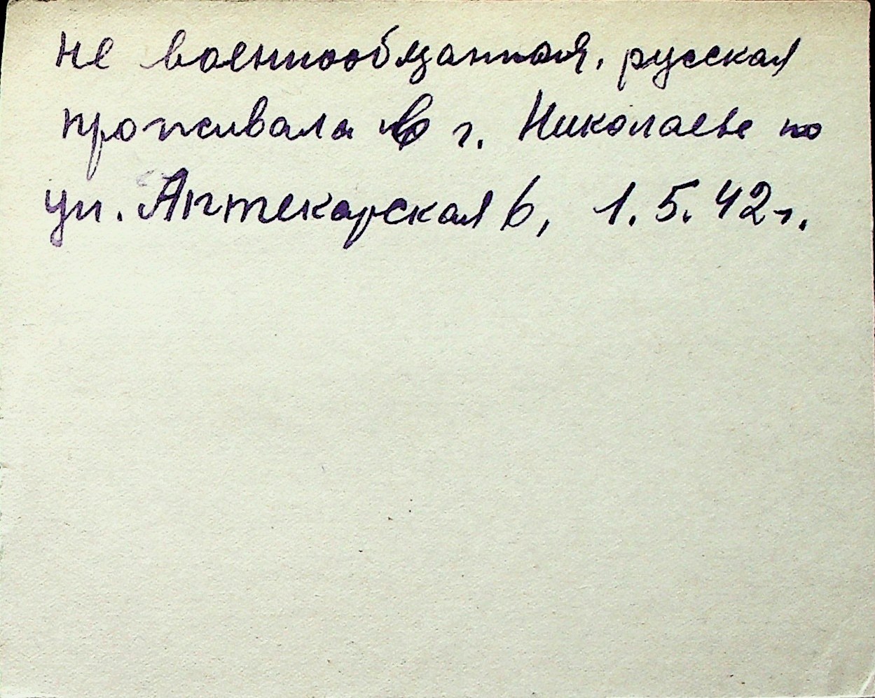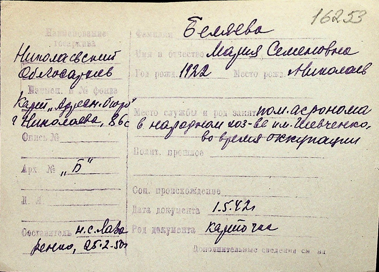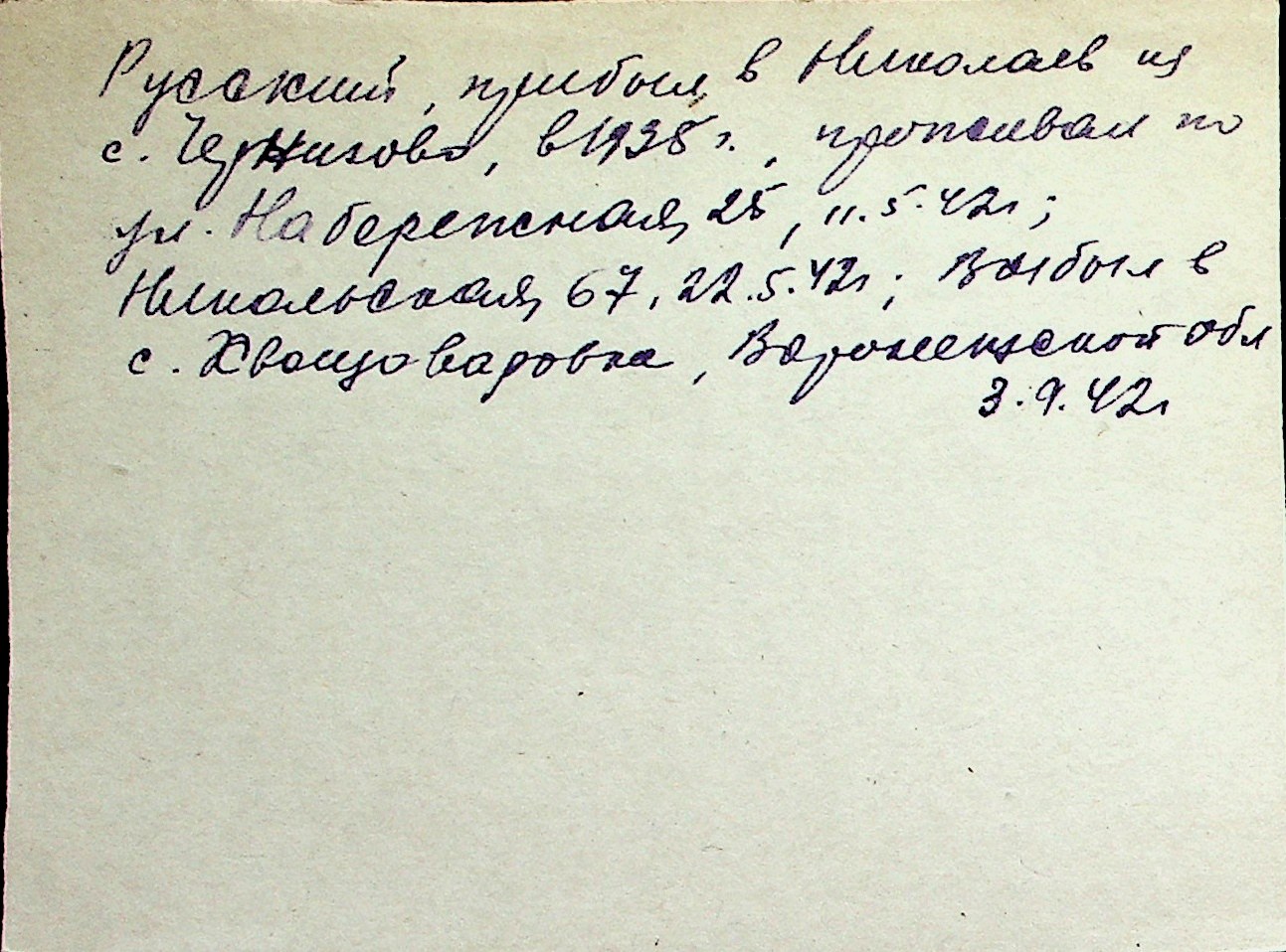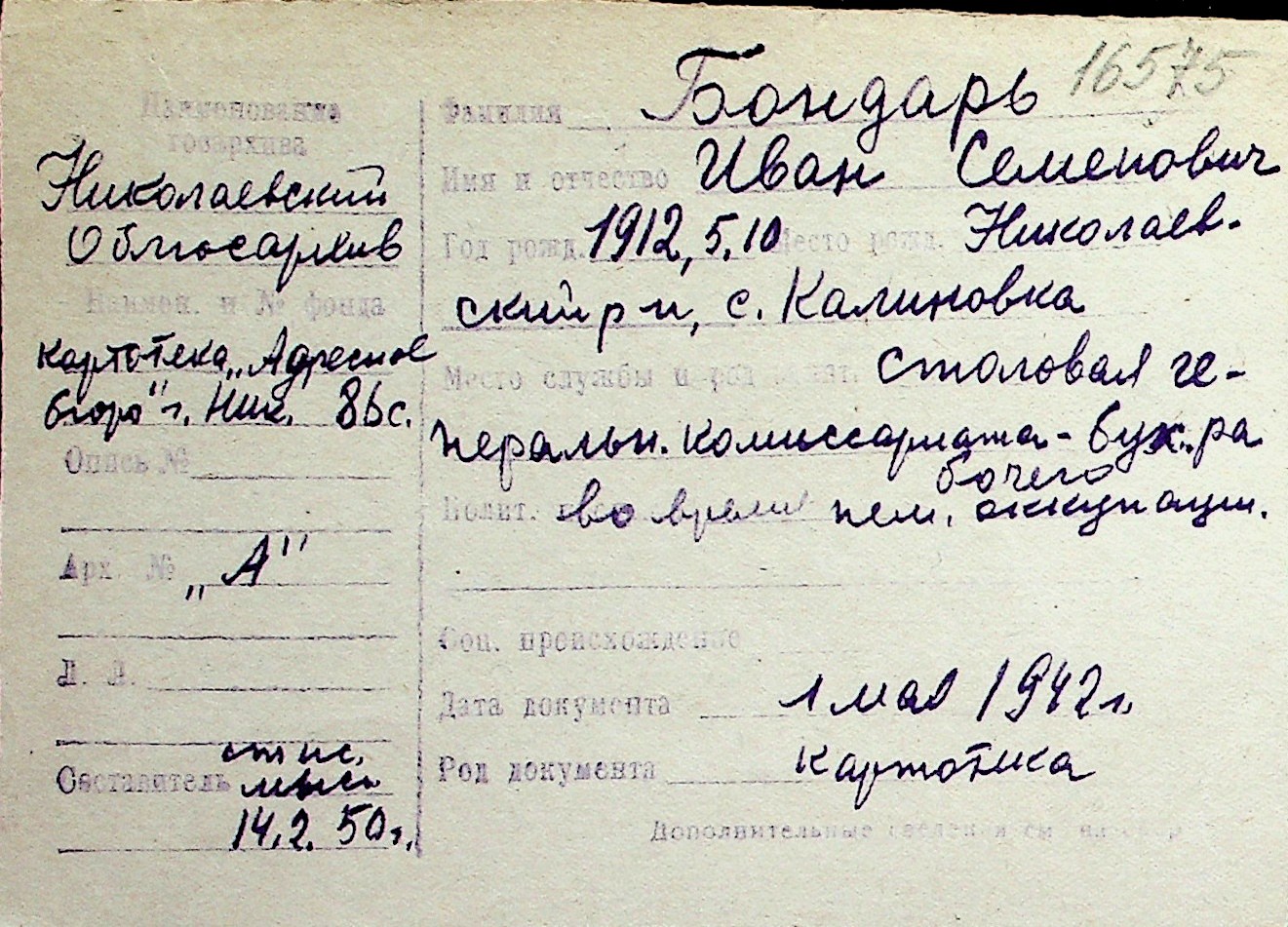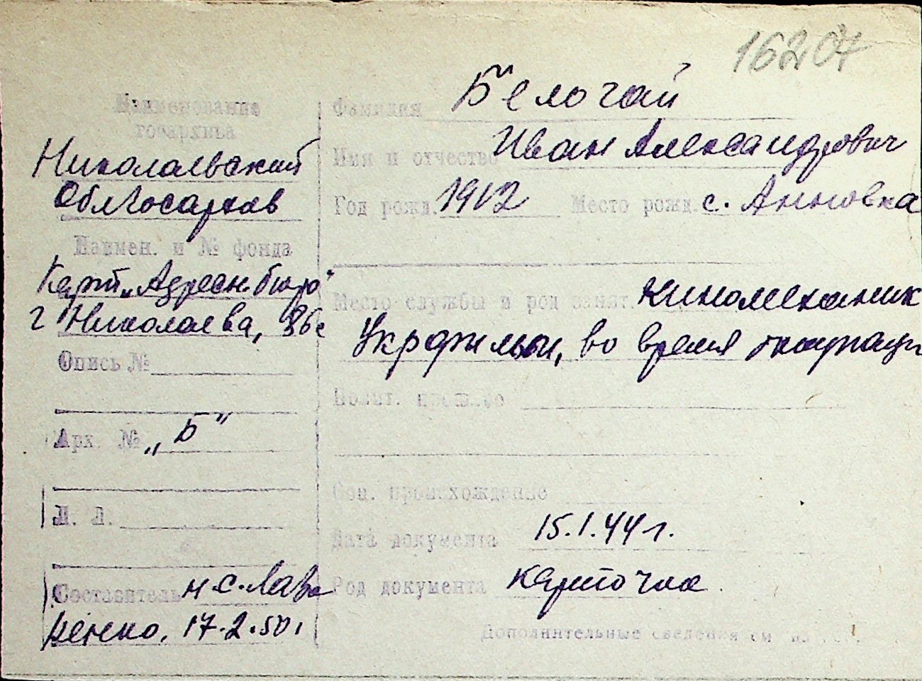 ◦ ◦ Перелік карток на осіб, які мешкали у м. Миколаїв у період окупації 1941–1944 років
