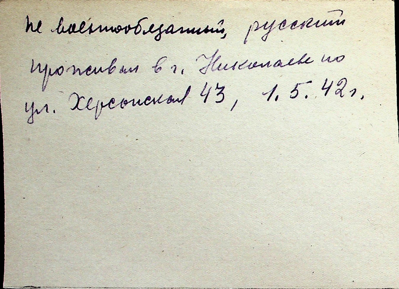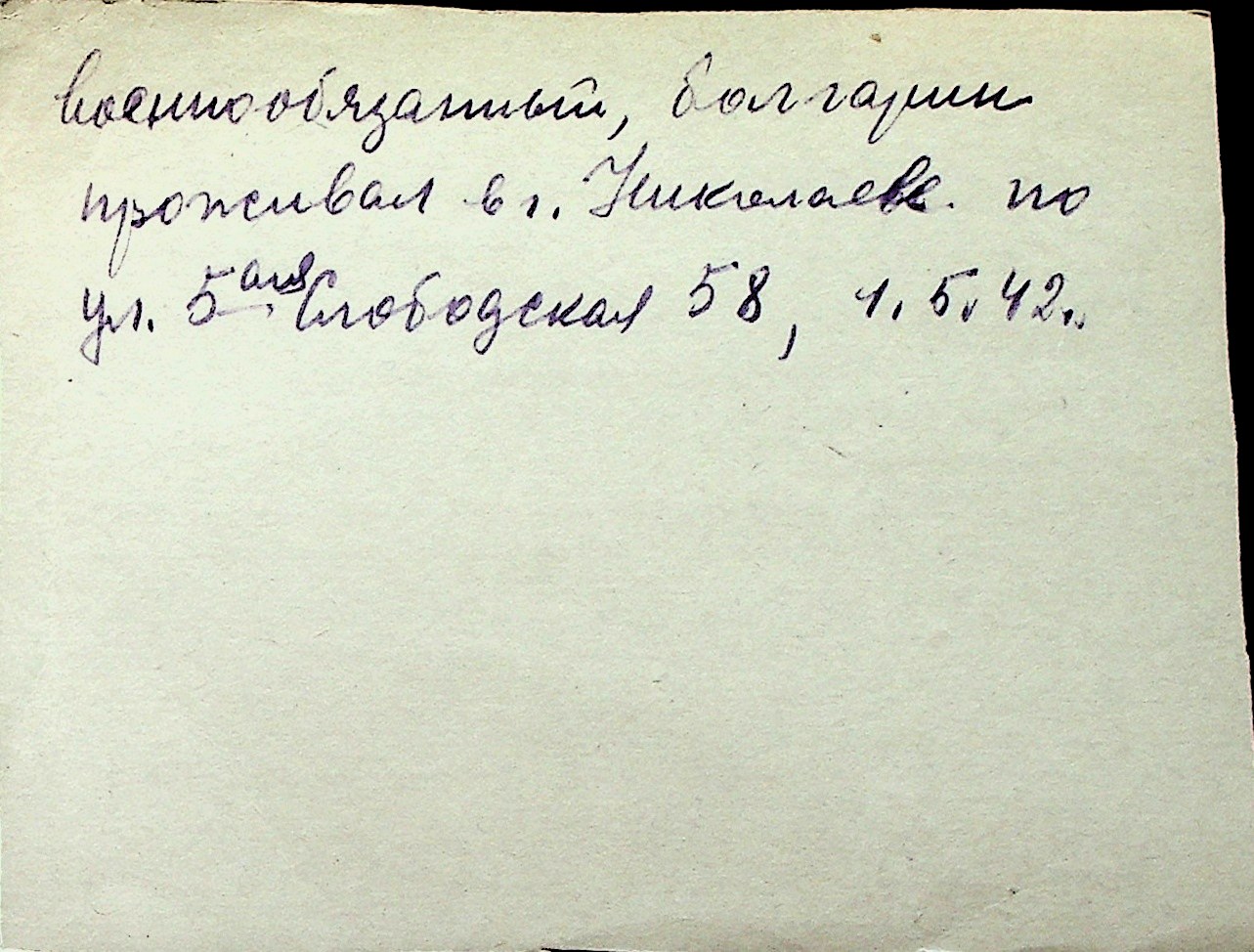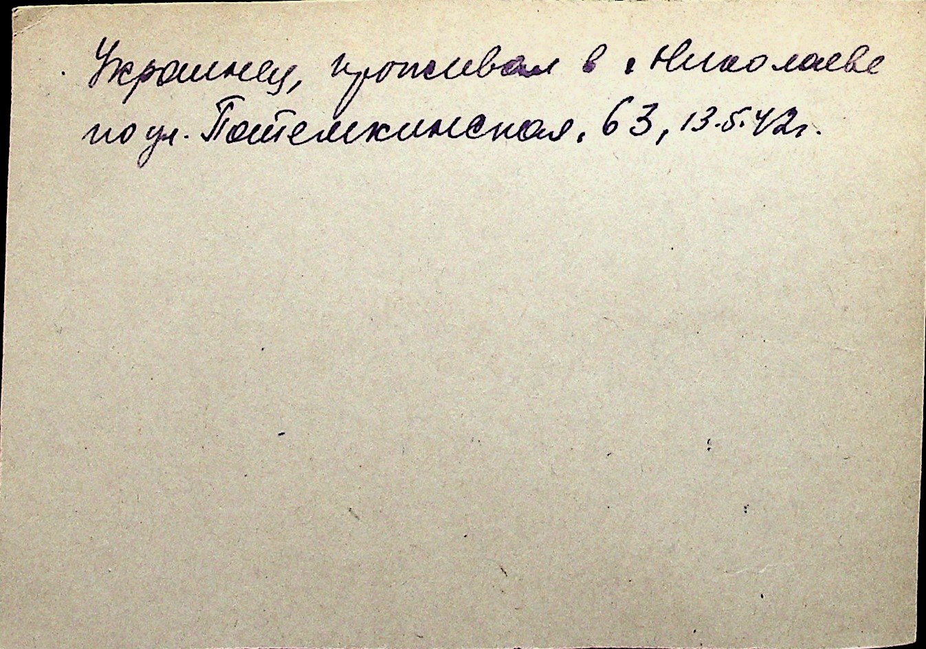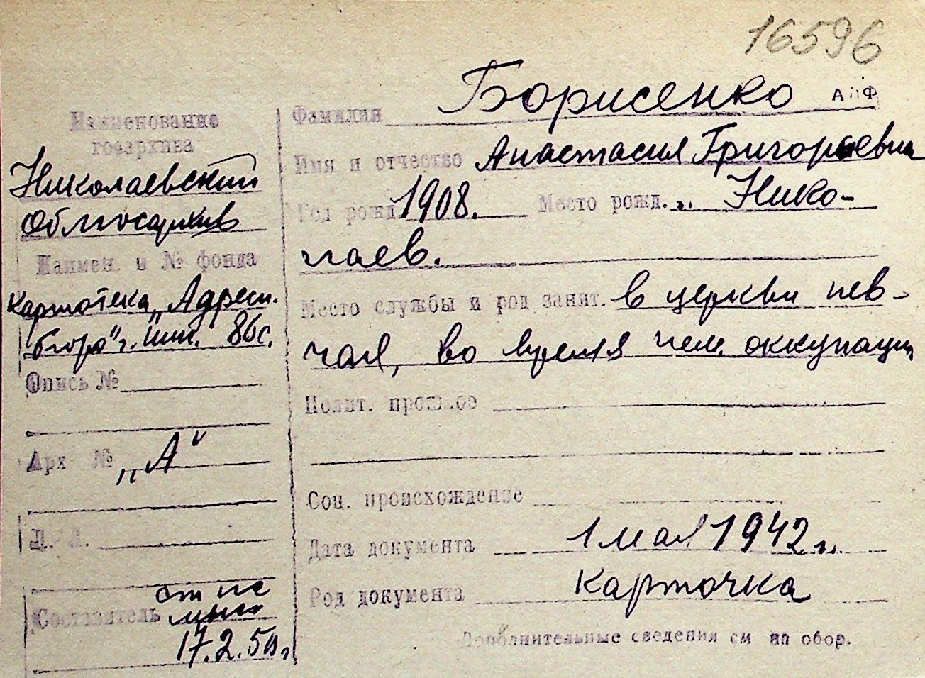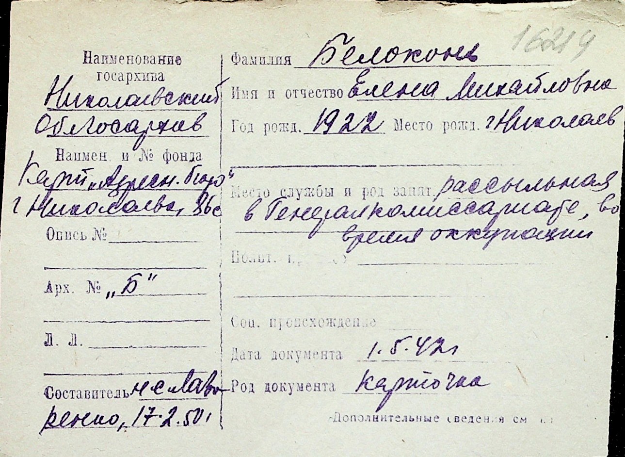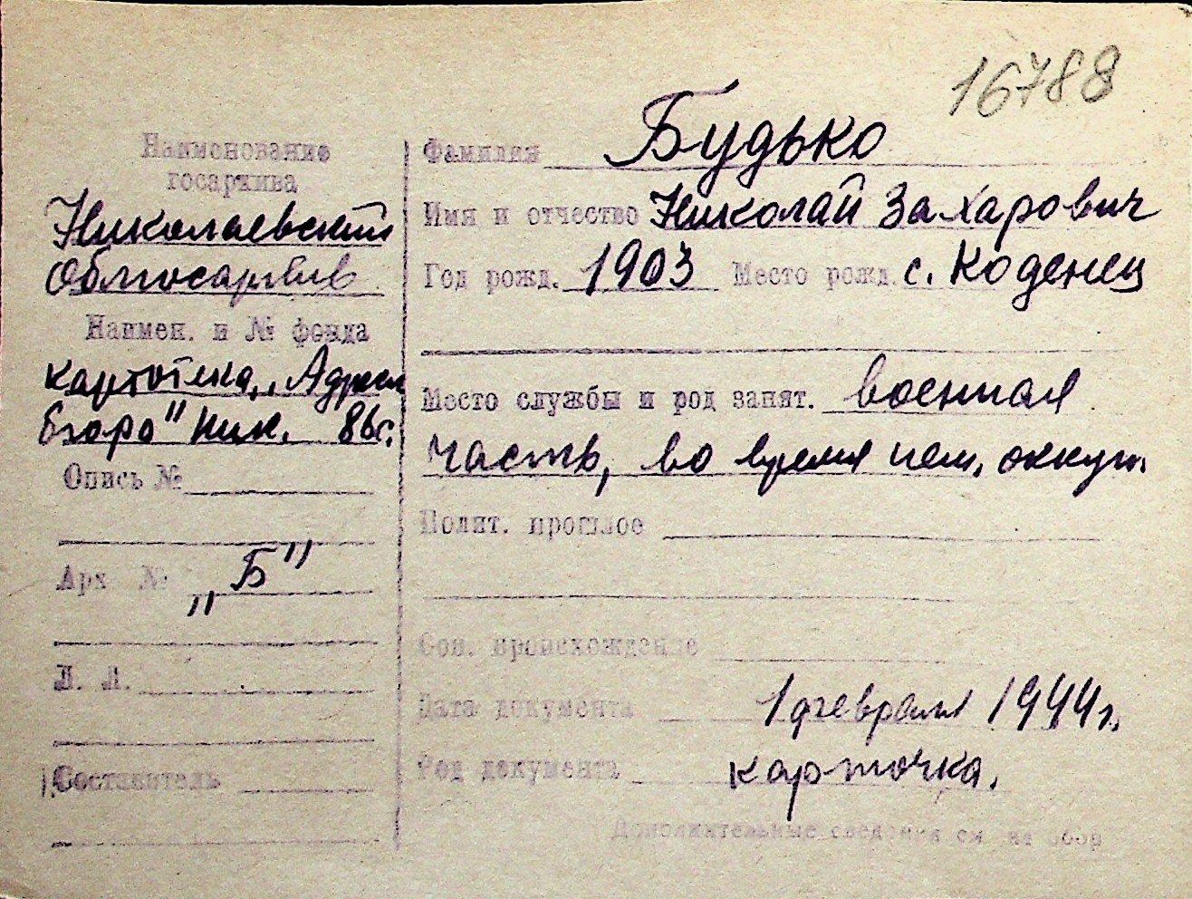 ◦ ◦ Перелік карток на осіб, які мешкали у м. Миколаїв у період окупації 1941–1944 років