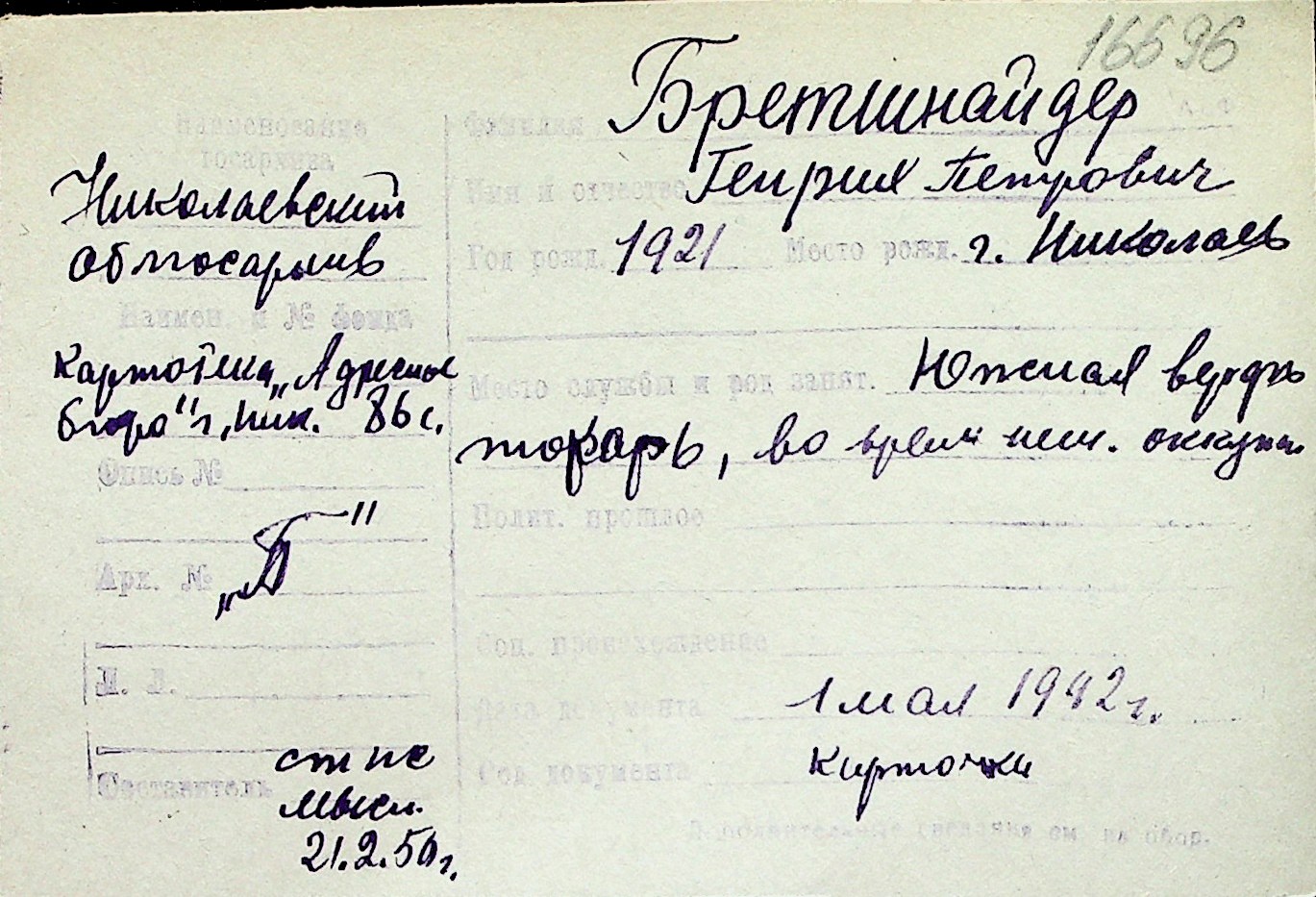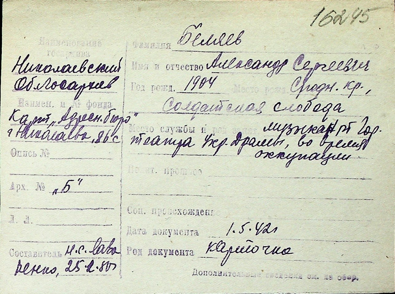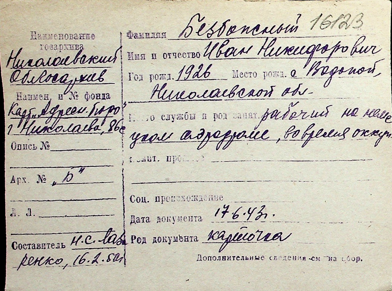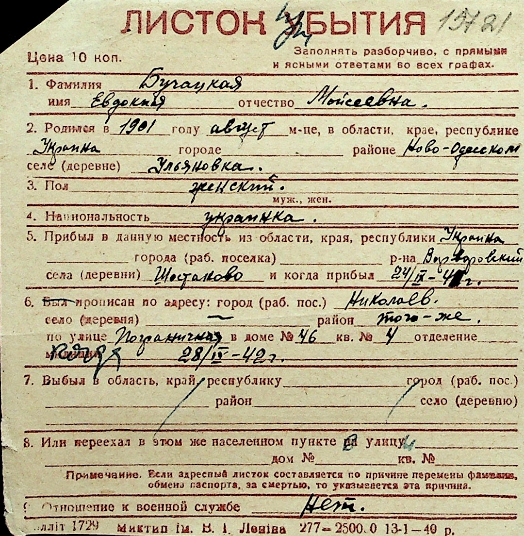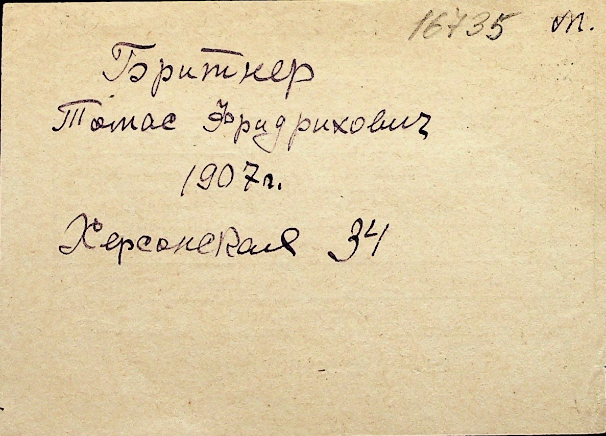 ◦ ◦ Перелік карток на осіб, які мешкали у м. Миколаїв у період окупації 1941–1944 років