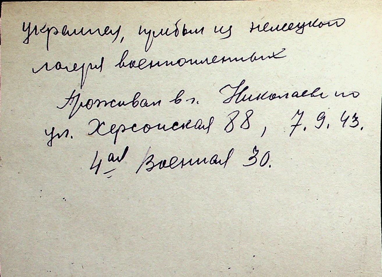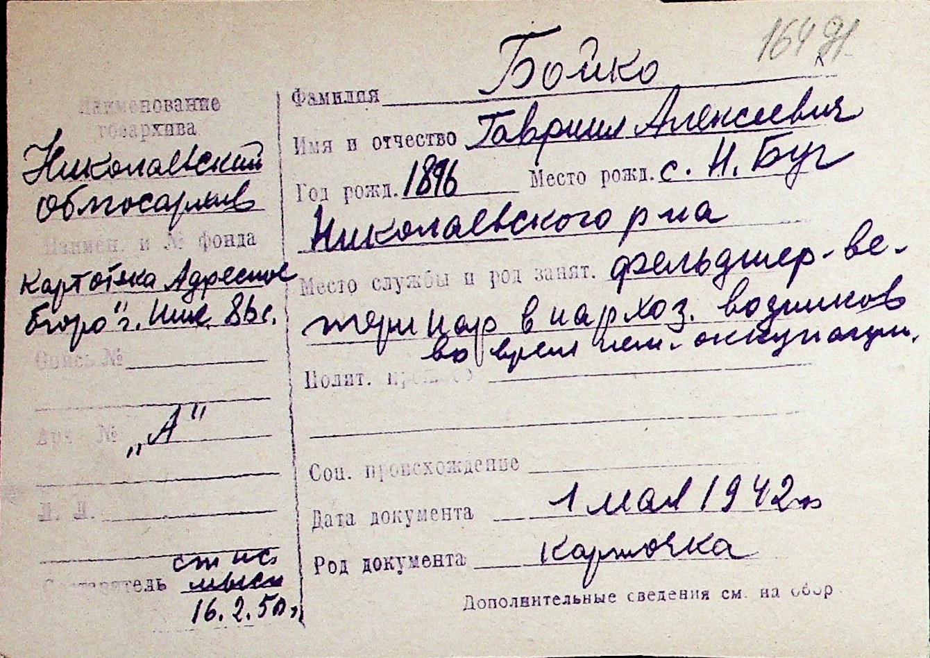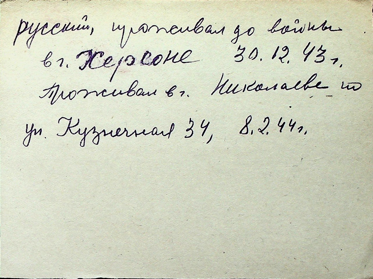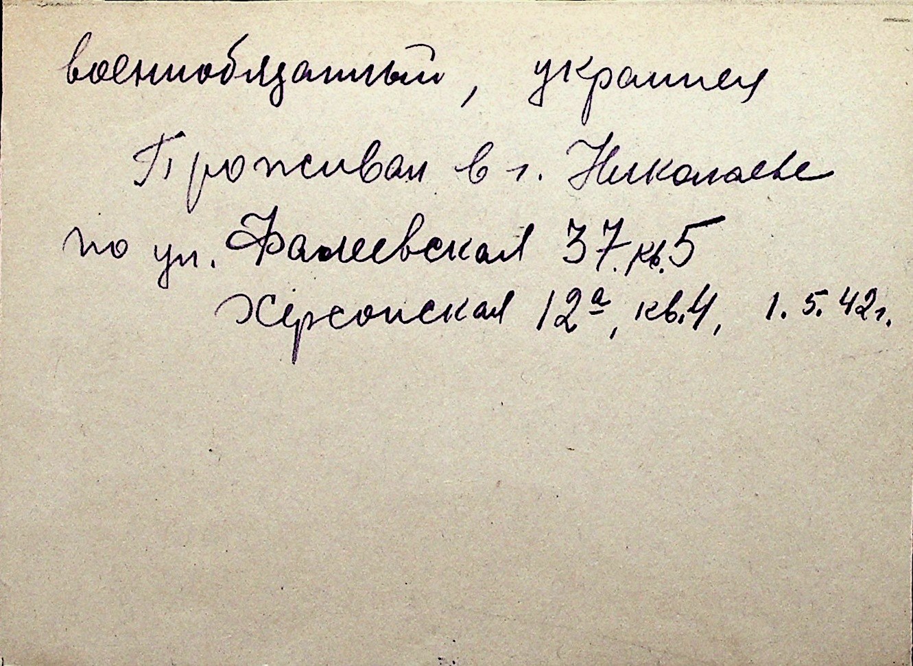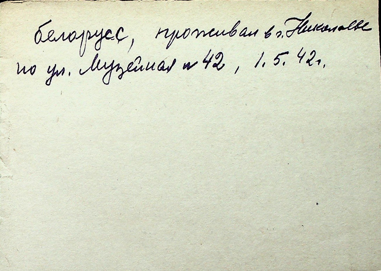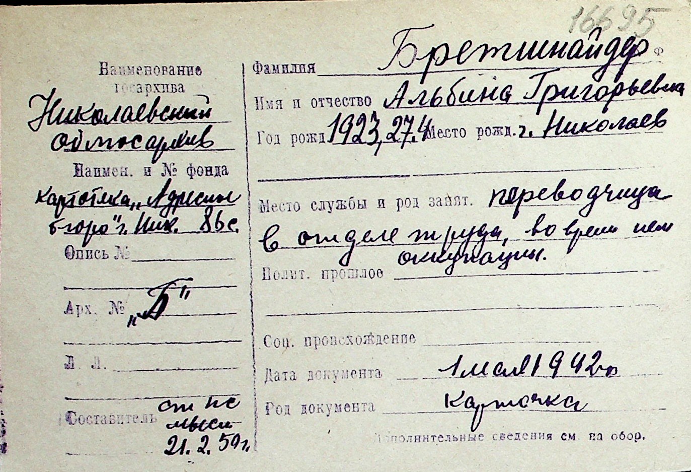 ◦ ◦ Перелік карток на осіб, які мешкали у м. Миколаїв у період окупації 1941–1944 років