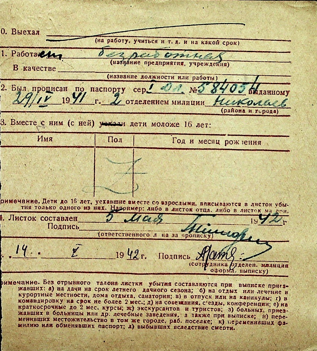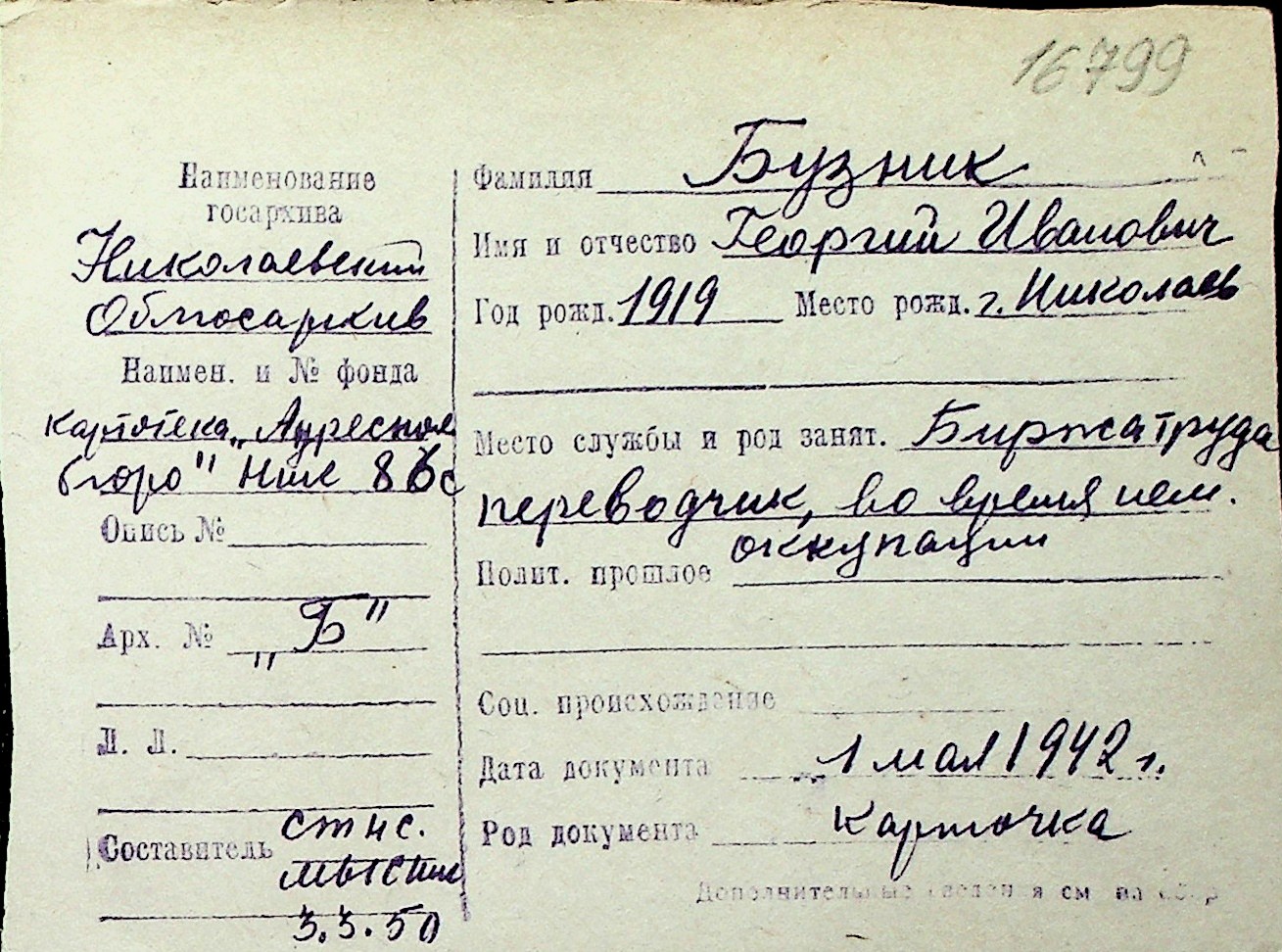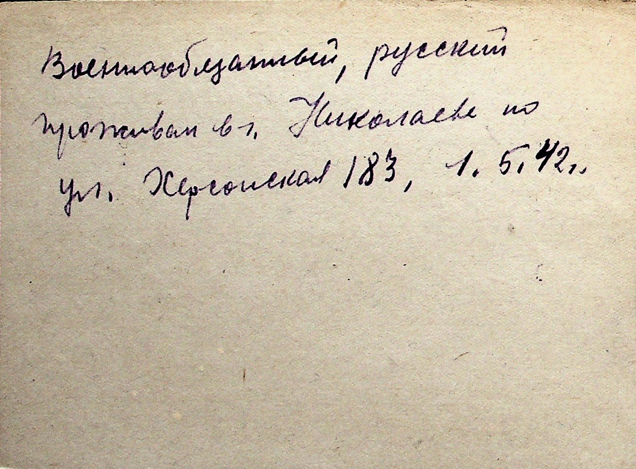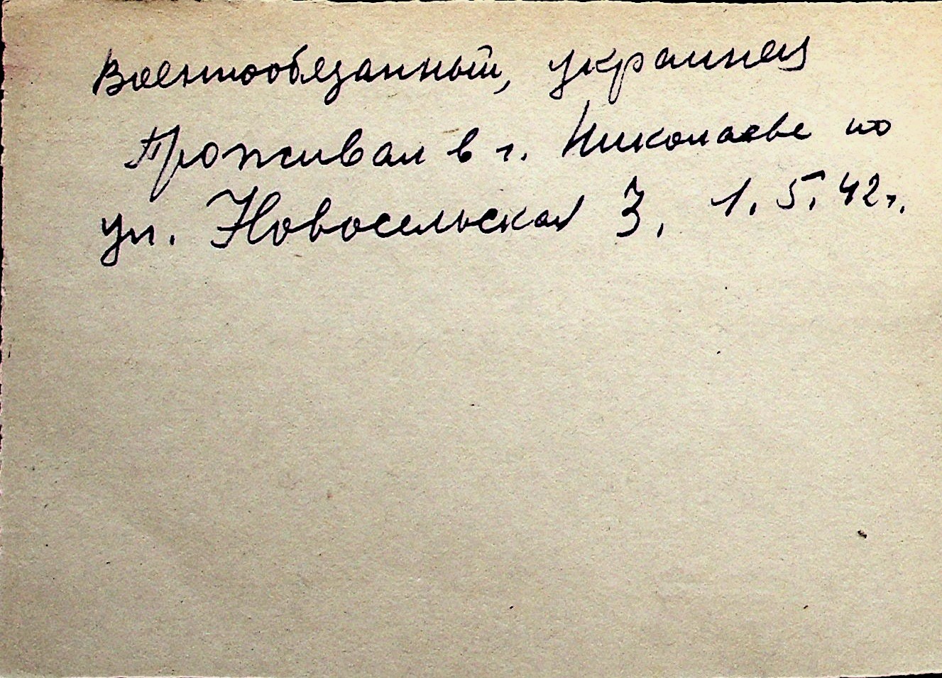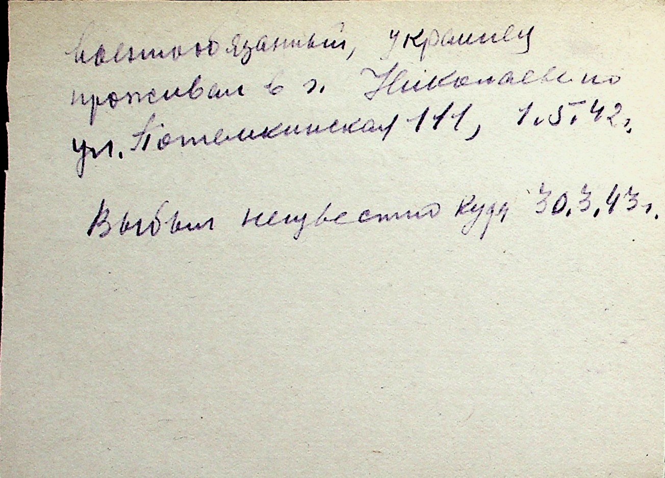 ◦ ◦ Перелік карток на осіб, які мешкали у м. Миколаїв у період окупації 1941–1944 років