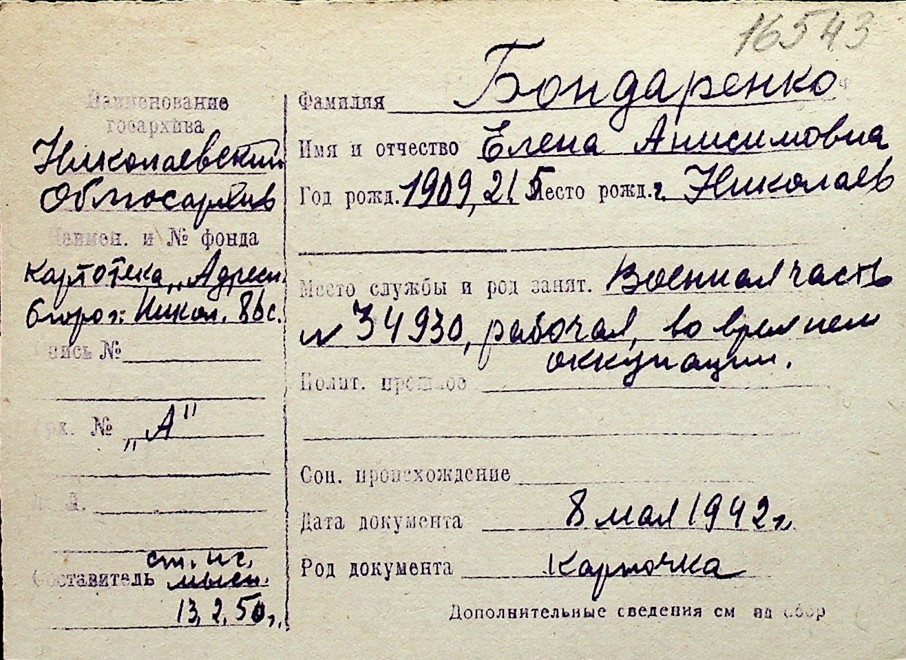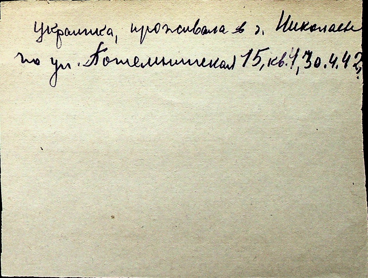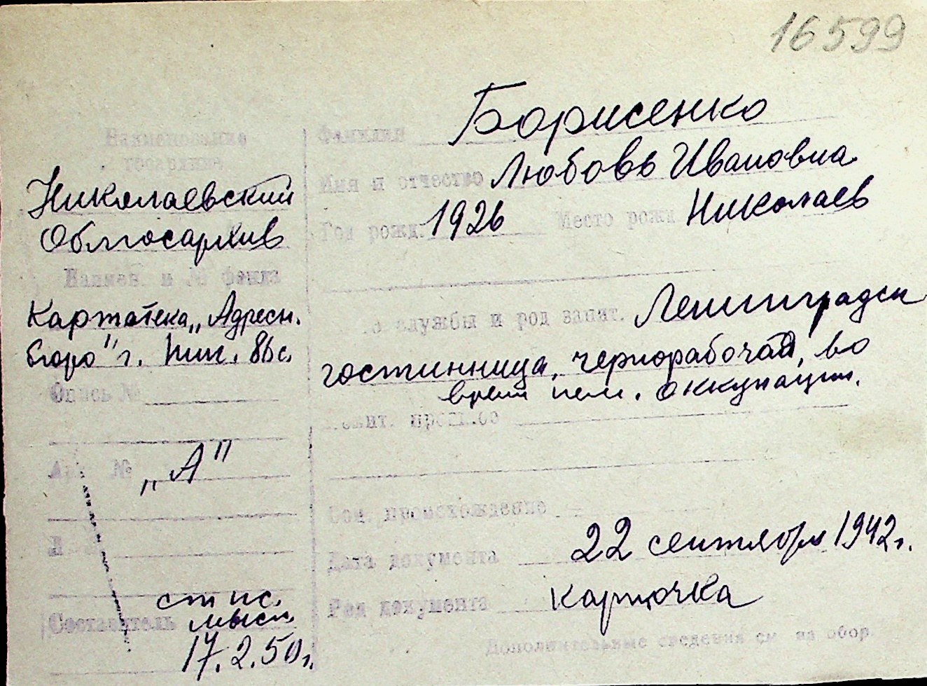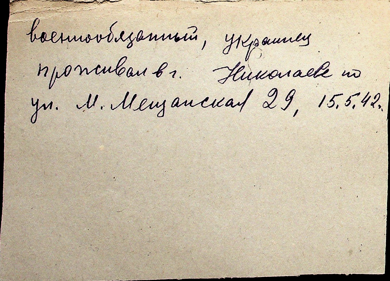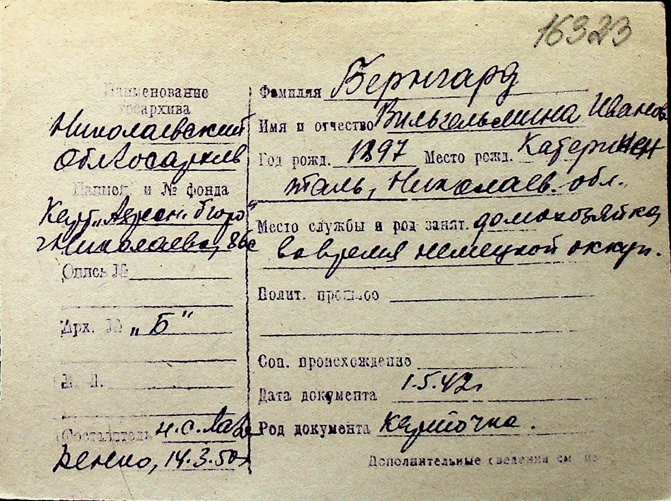 ◦ ◦ Перелік карток на осіб, які мешкали у м. Миколаїв у період окупації 1941–1944 років