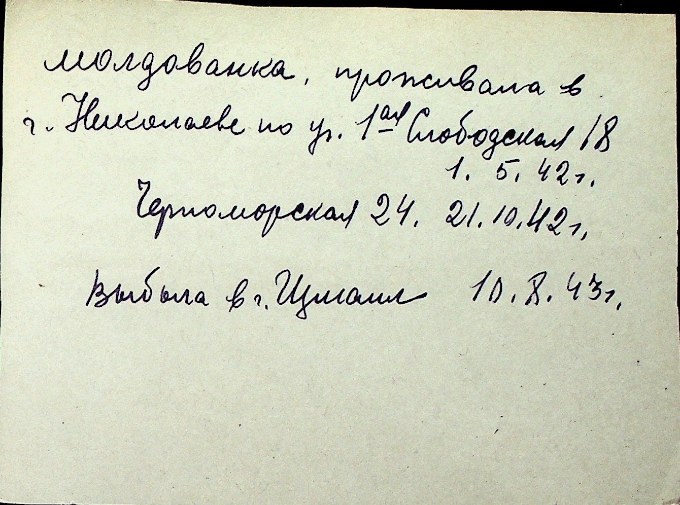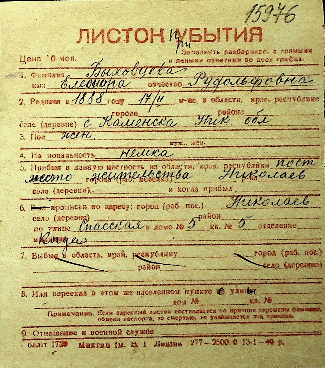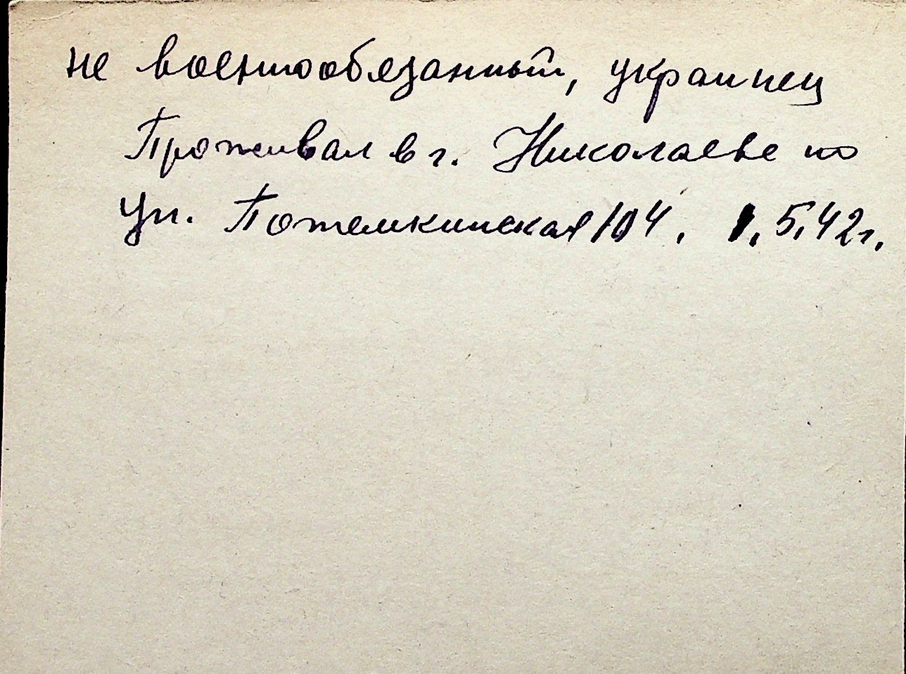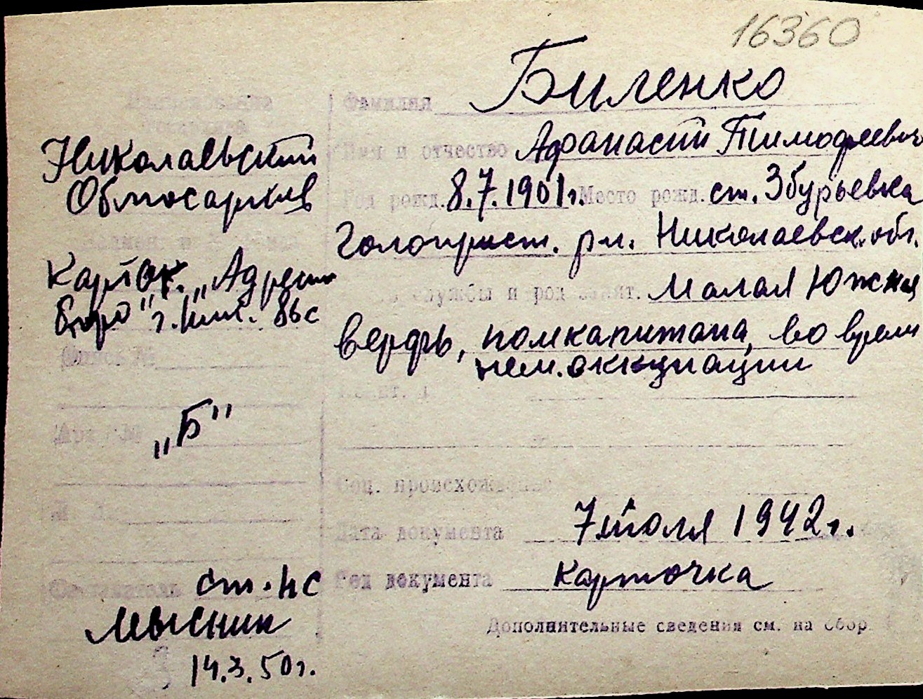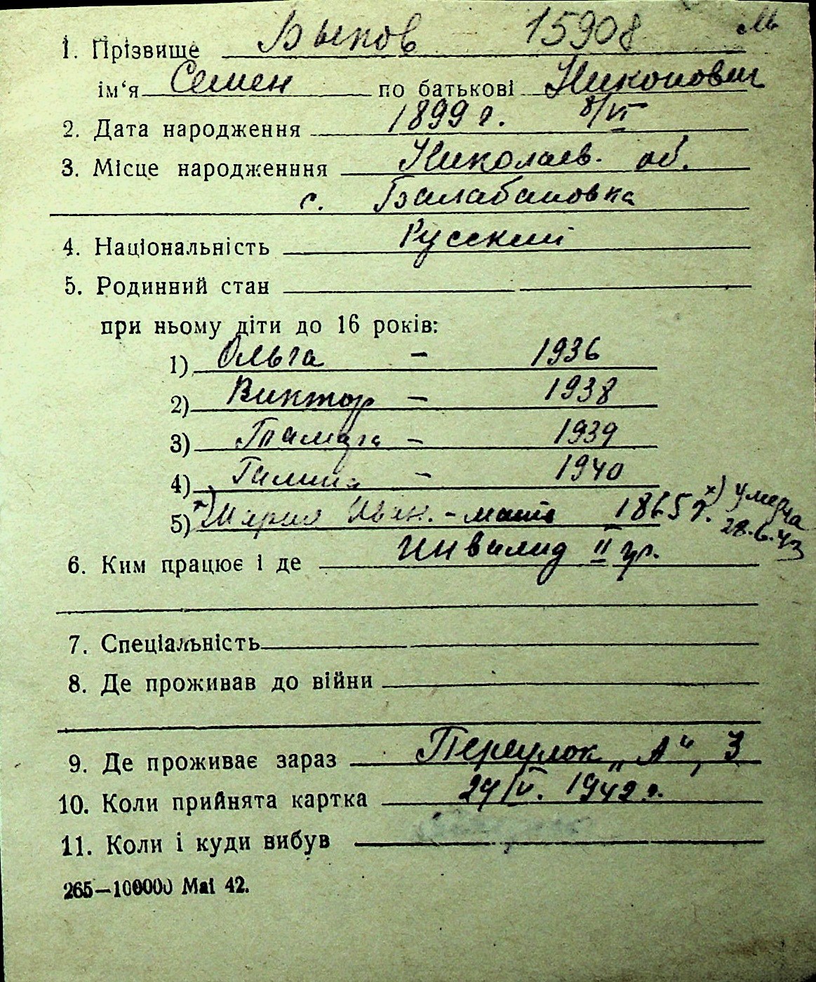 ◦ ◦ Перелік карток на осіб, які мешкали у м. Миколаїв у період окупації 1941–1944 років