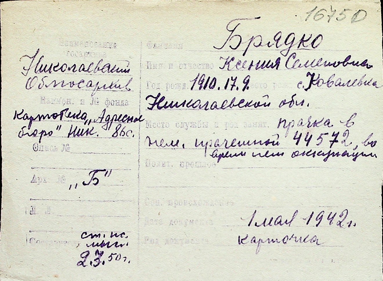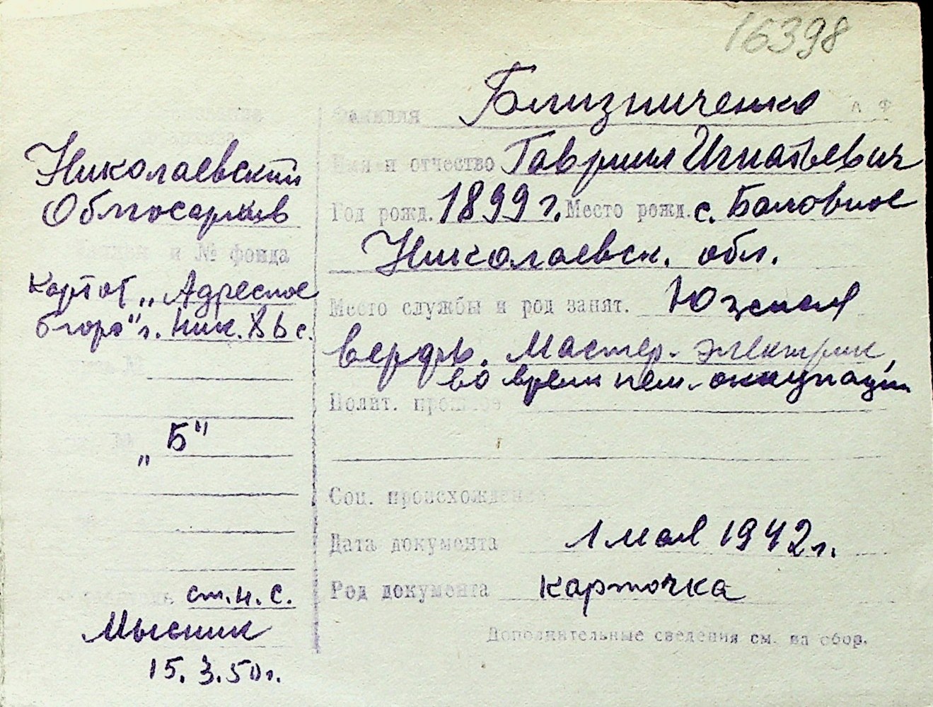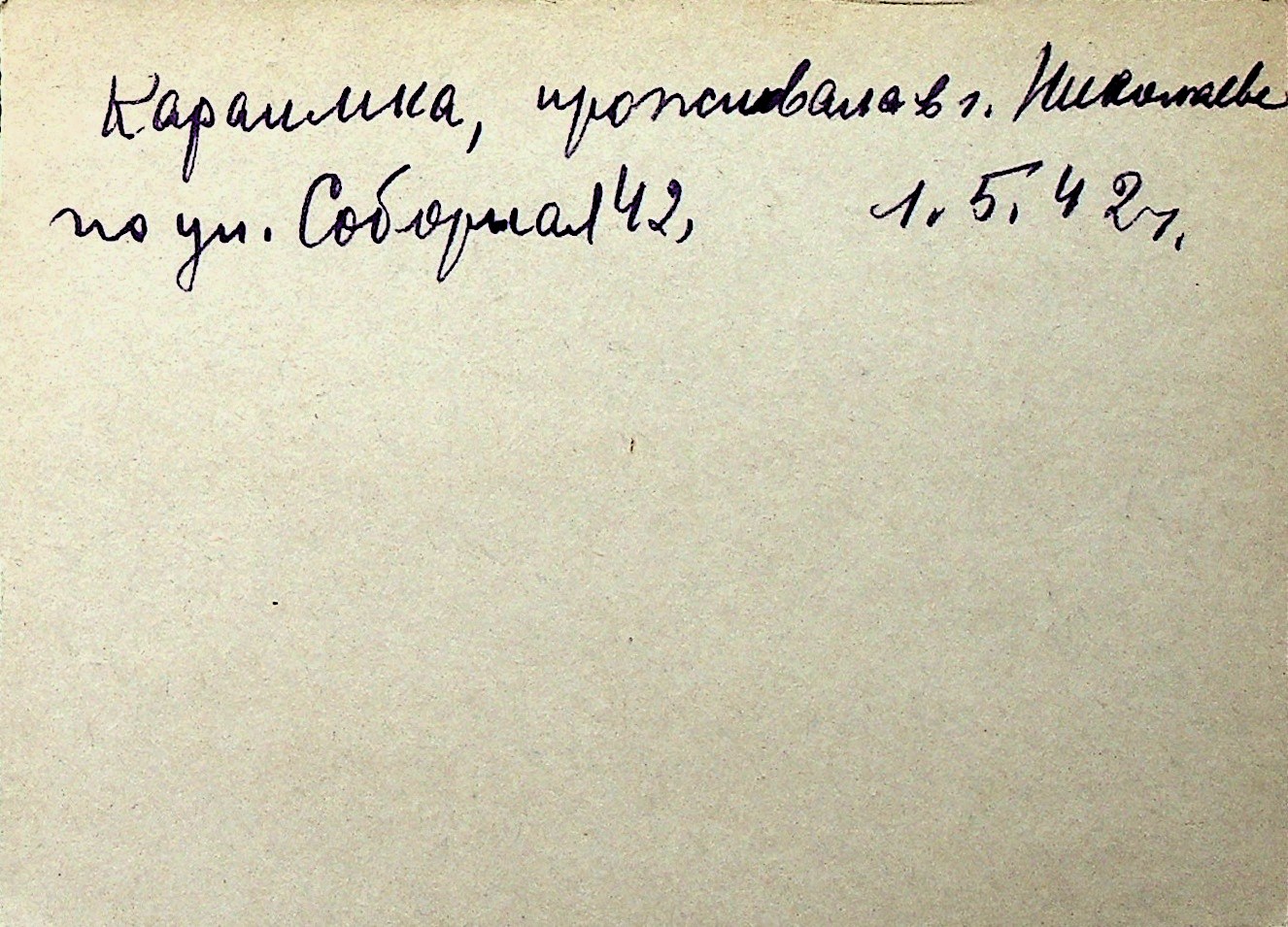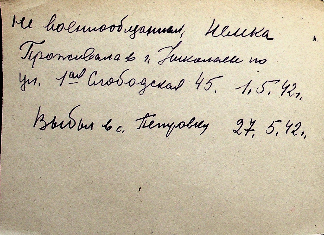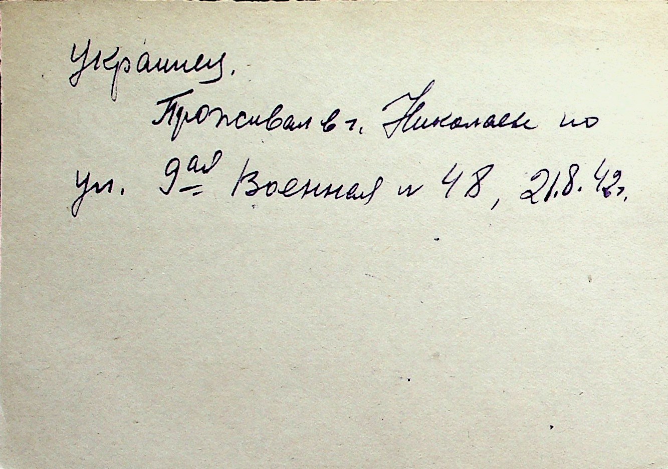 ◦ ◦ Перелік карток на осіб, які мешкали у м. Миколаїв у період окупації 1941–1944 років