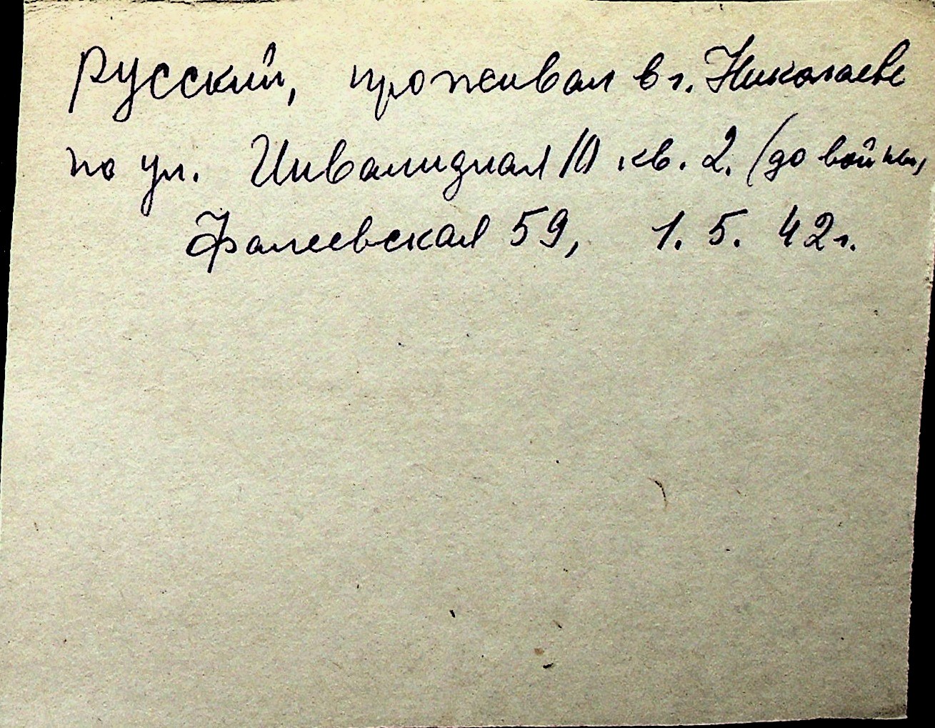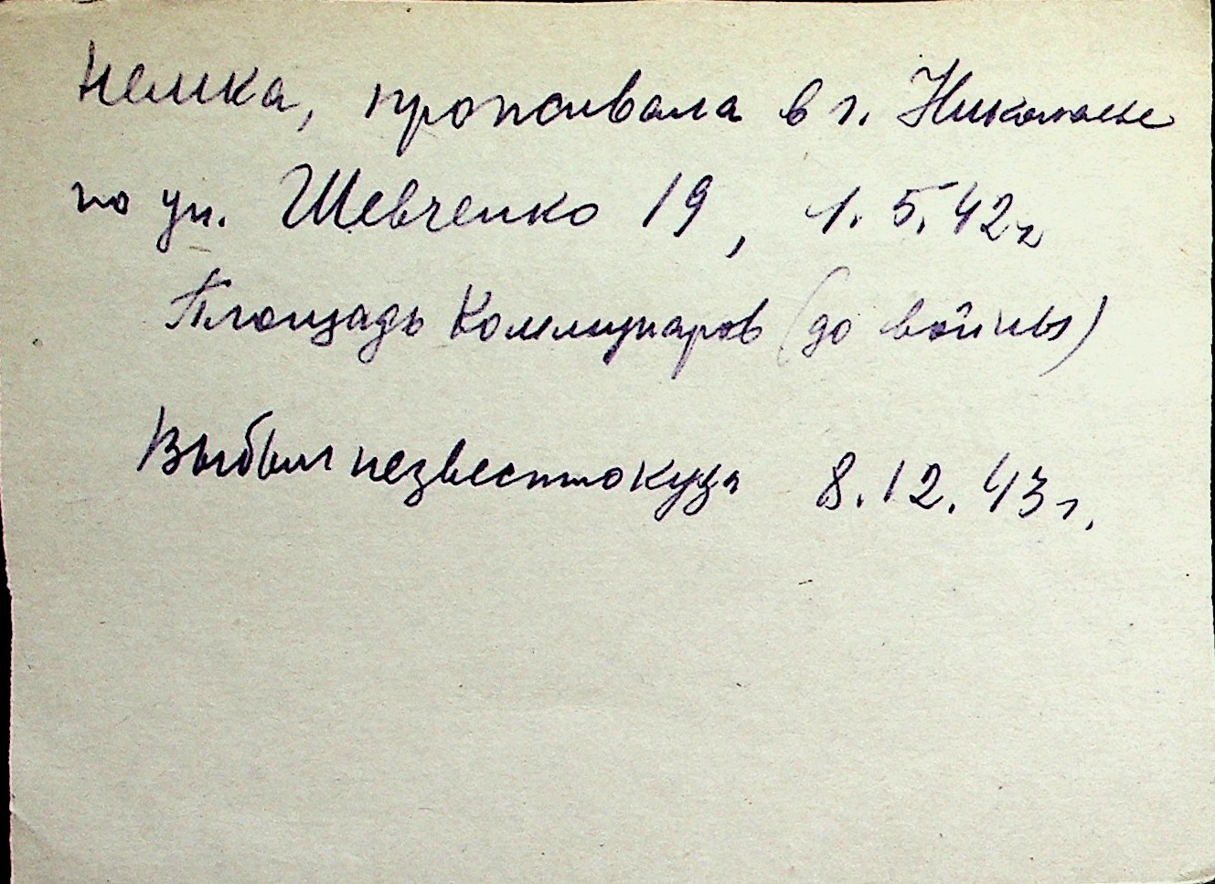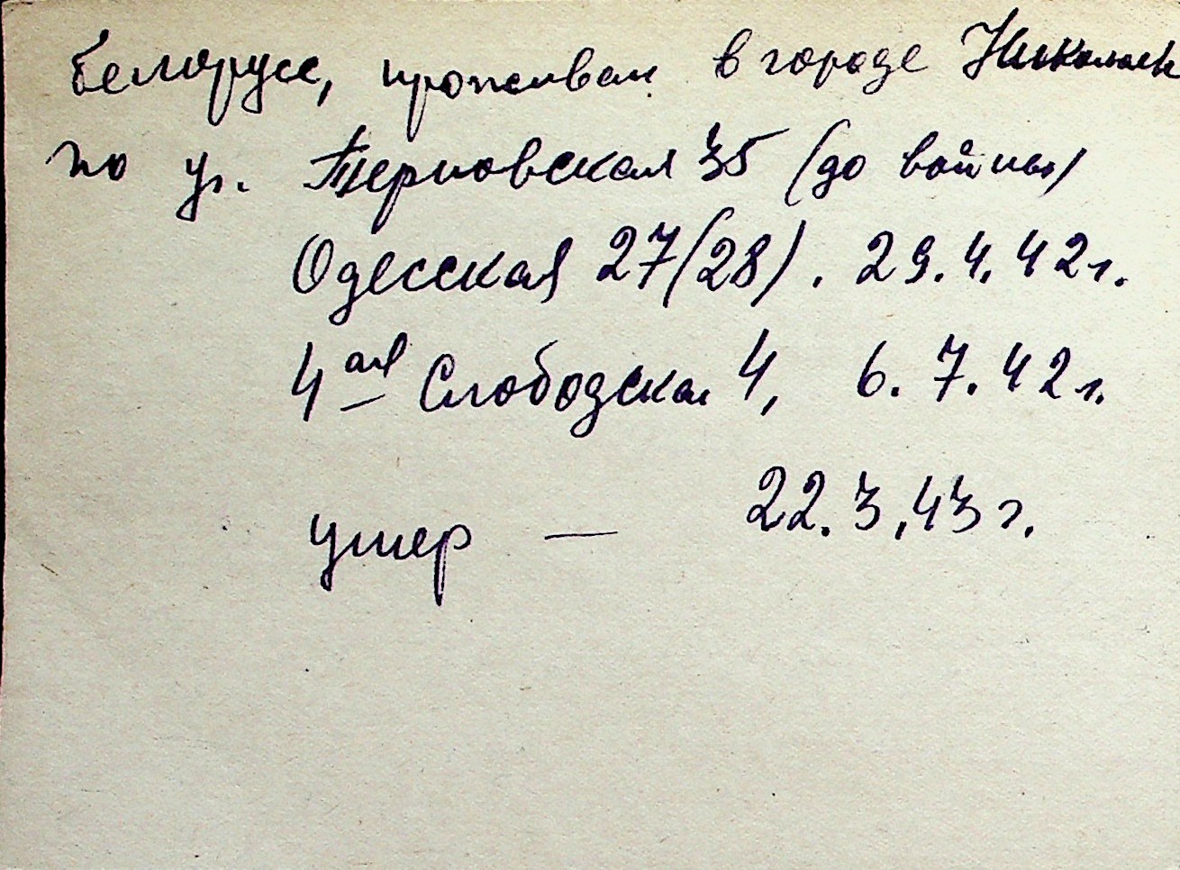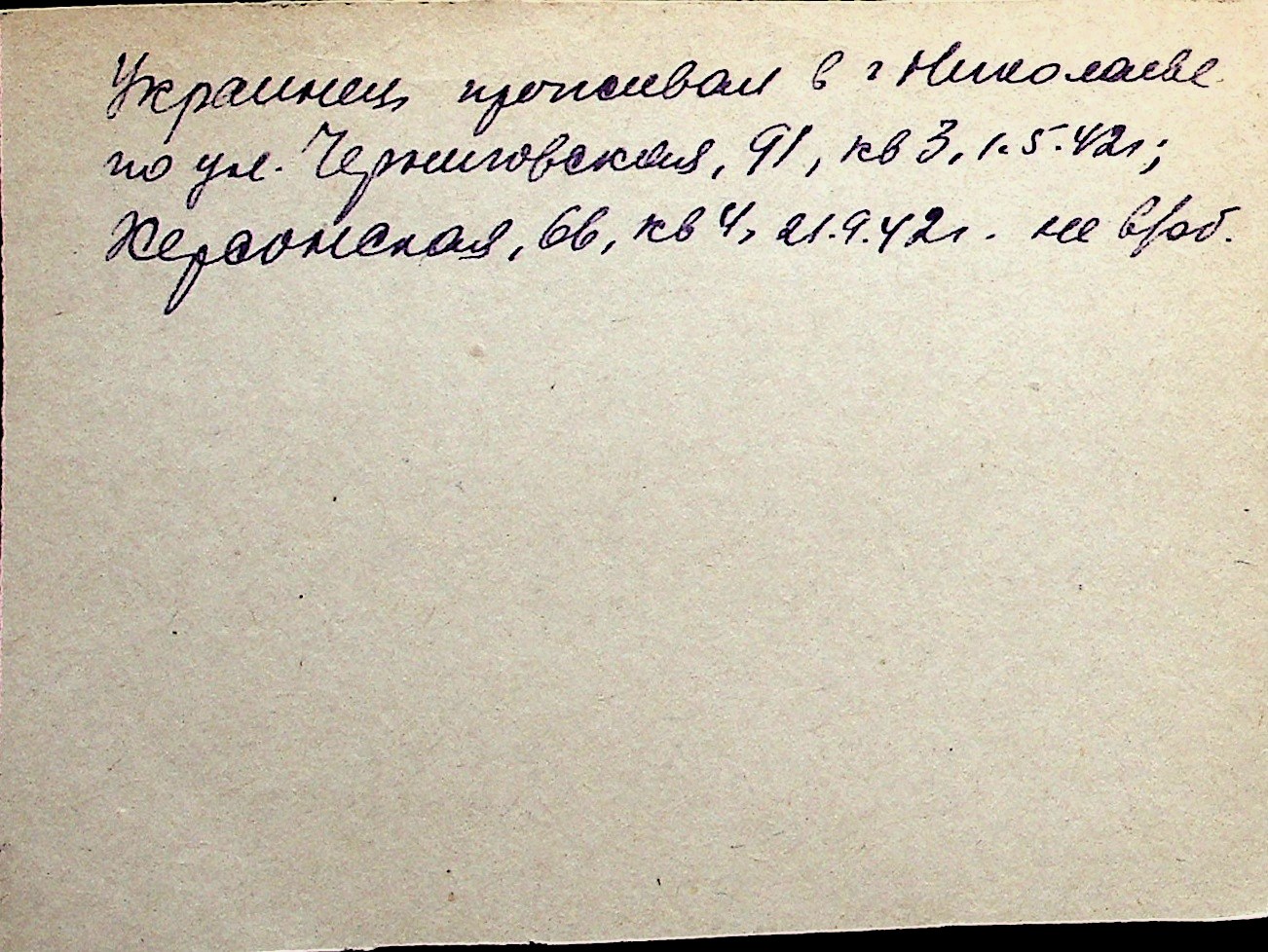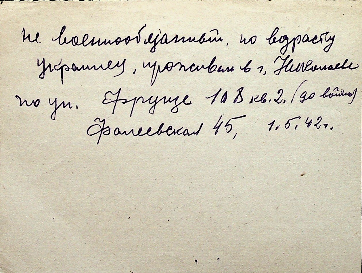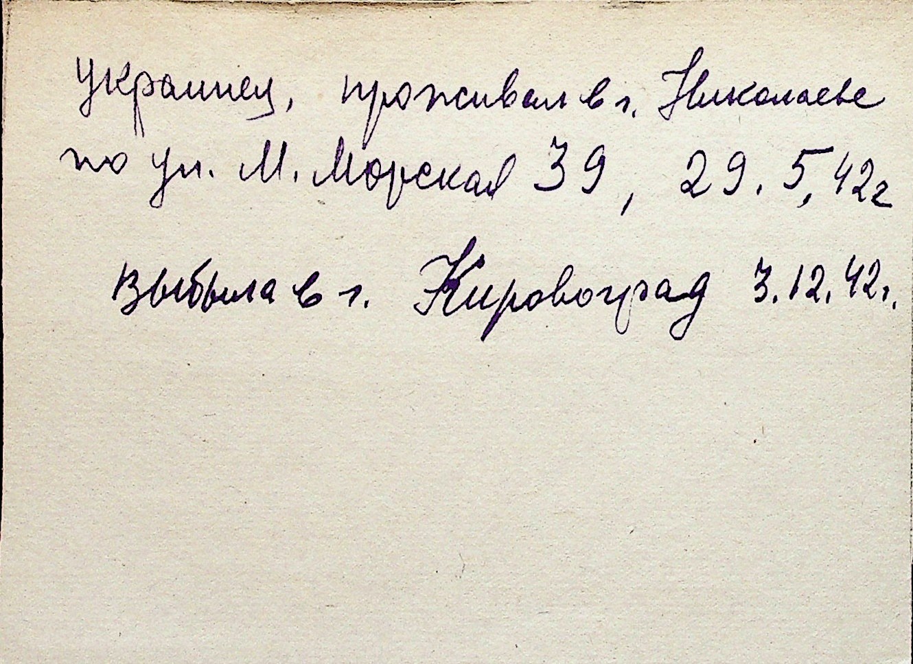 ◦ ◦ Перелік карток на осіб, які мешкали у м. Миколаїв у період окупації 1941–1944 років