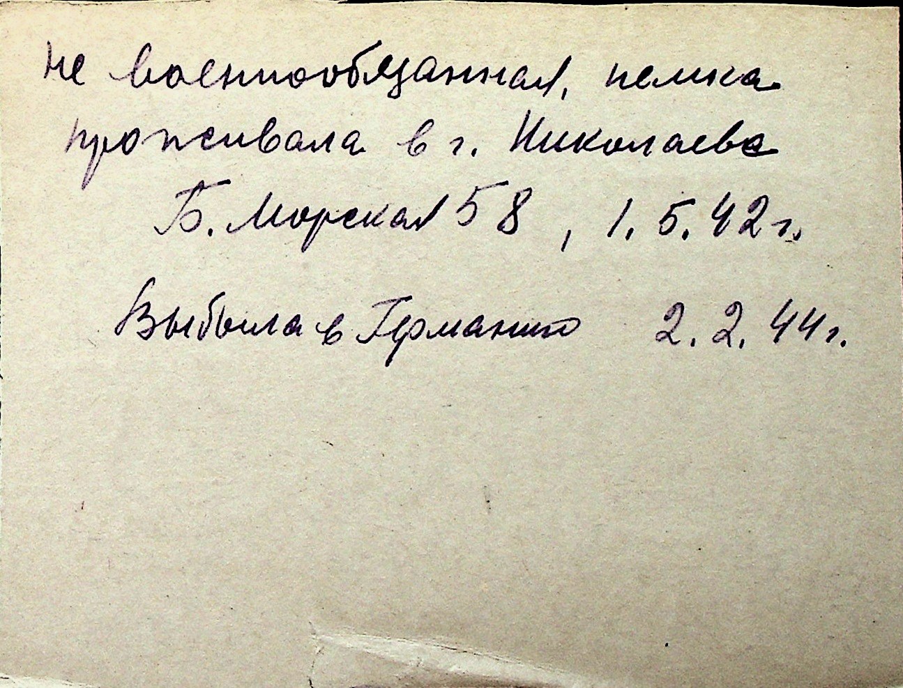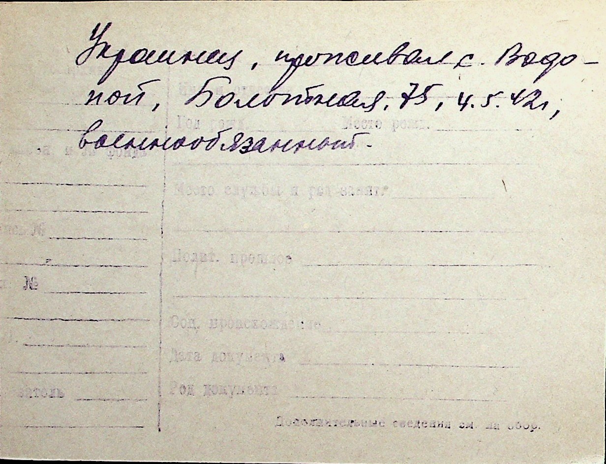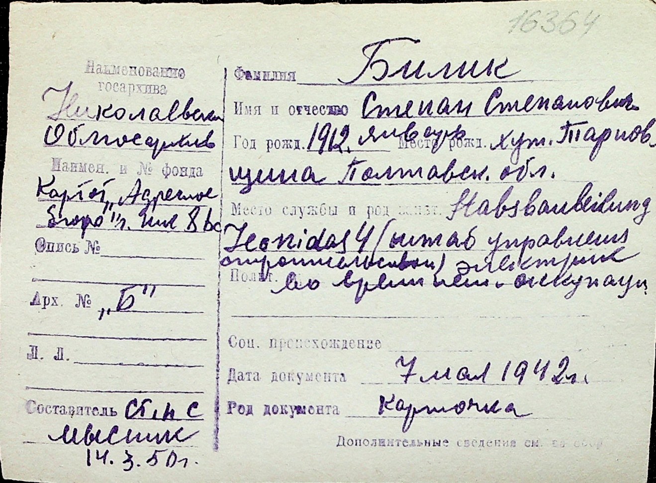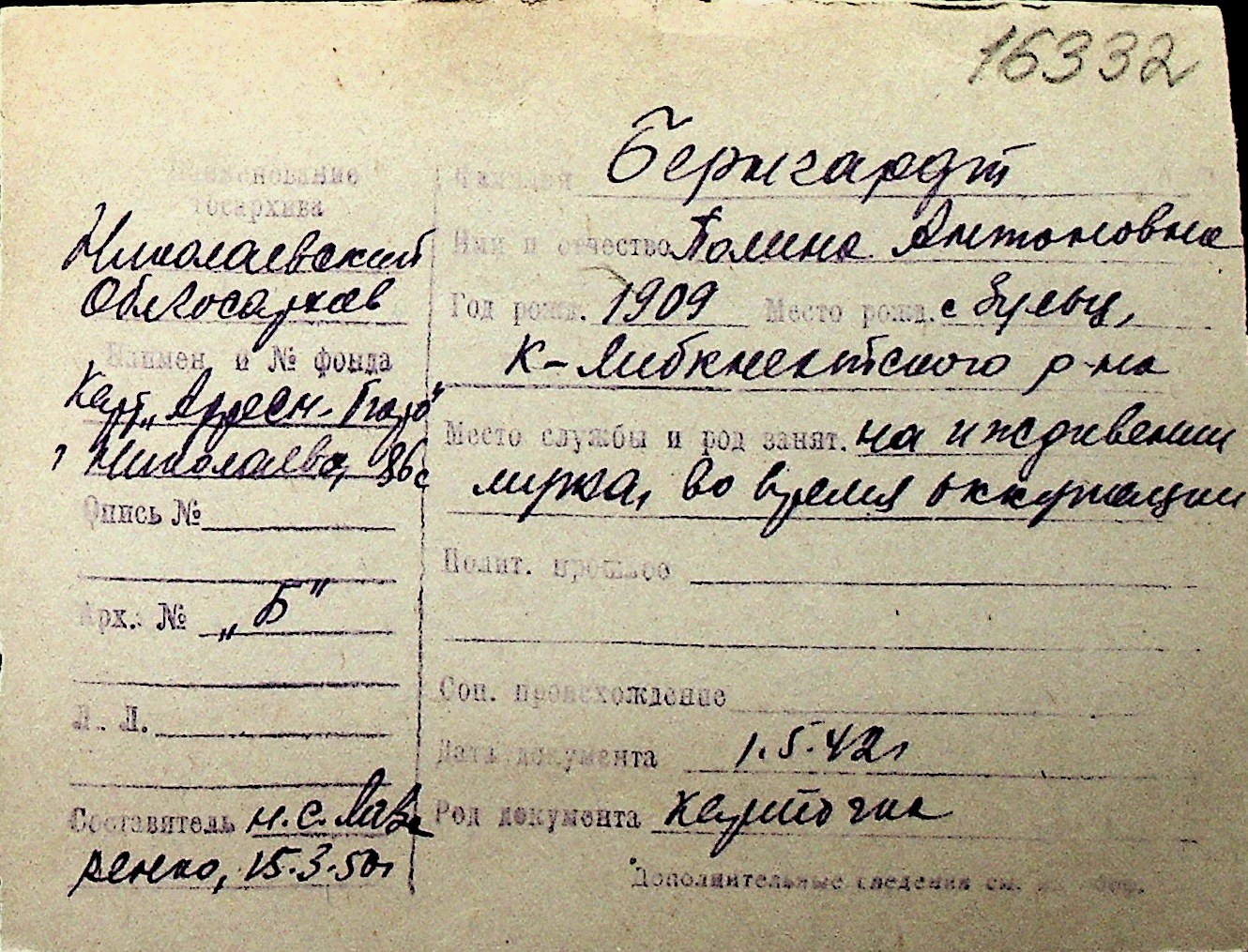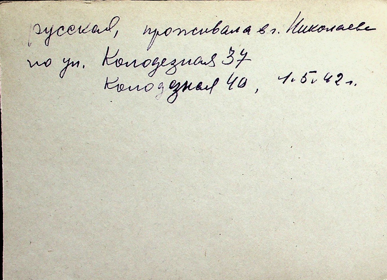 ◦ ◦ Перелік карток на осіб, які мешкали у м. Миколаїв у період окупації 1941–1944 років