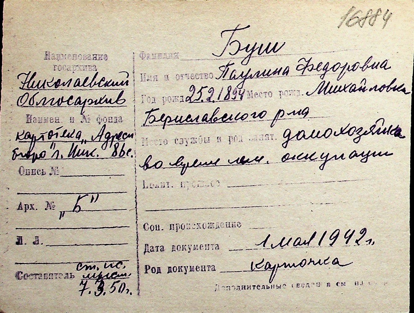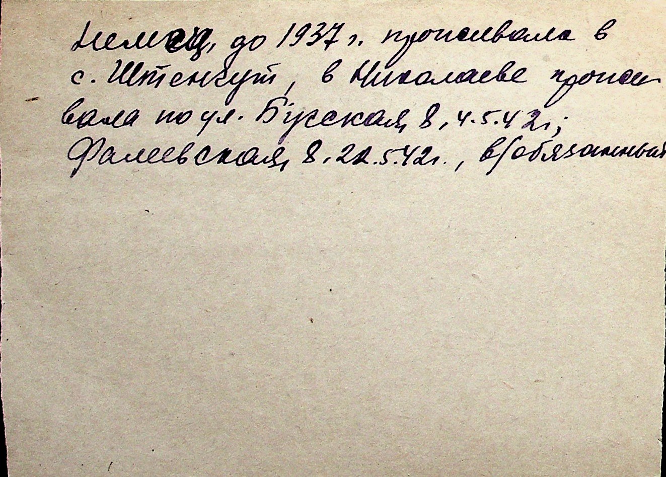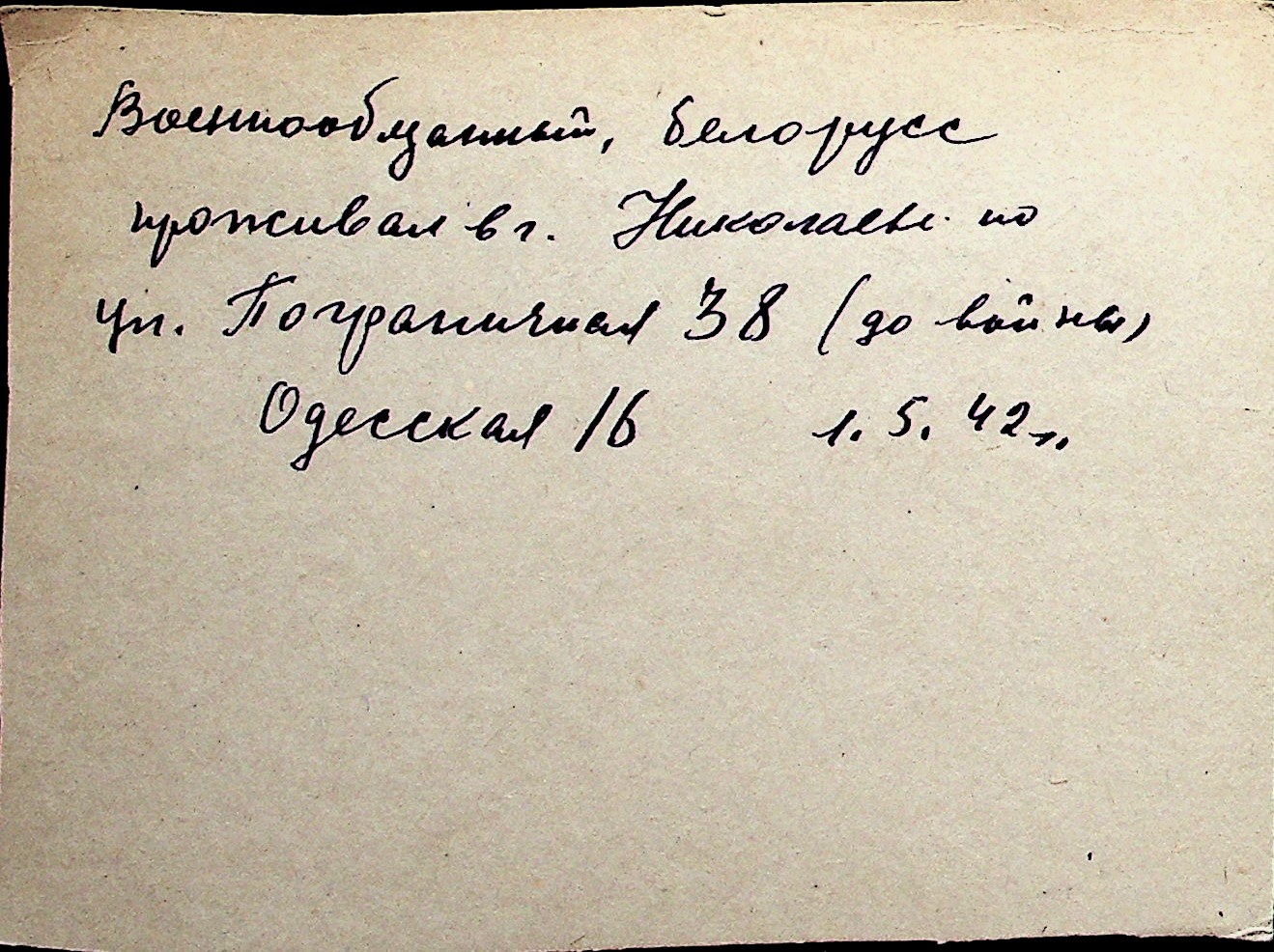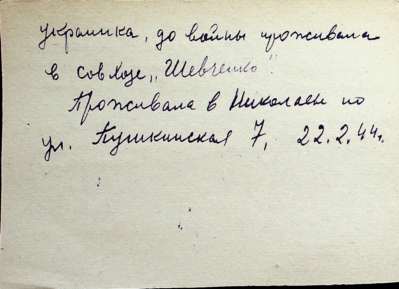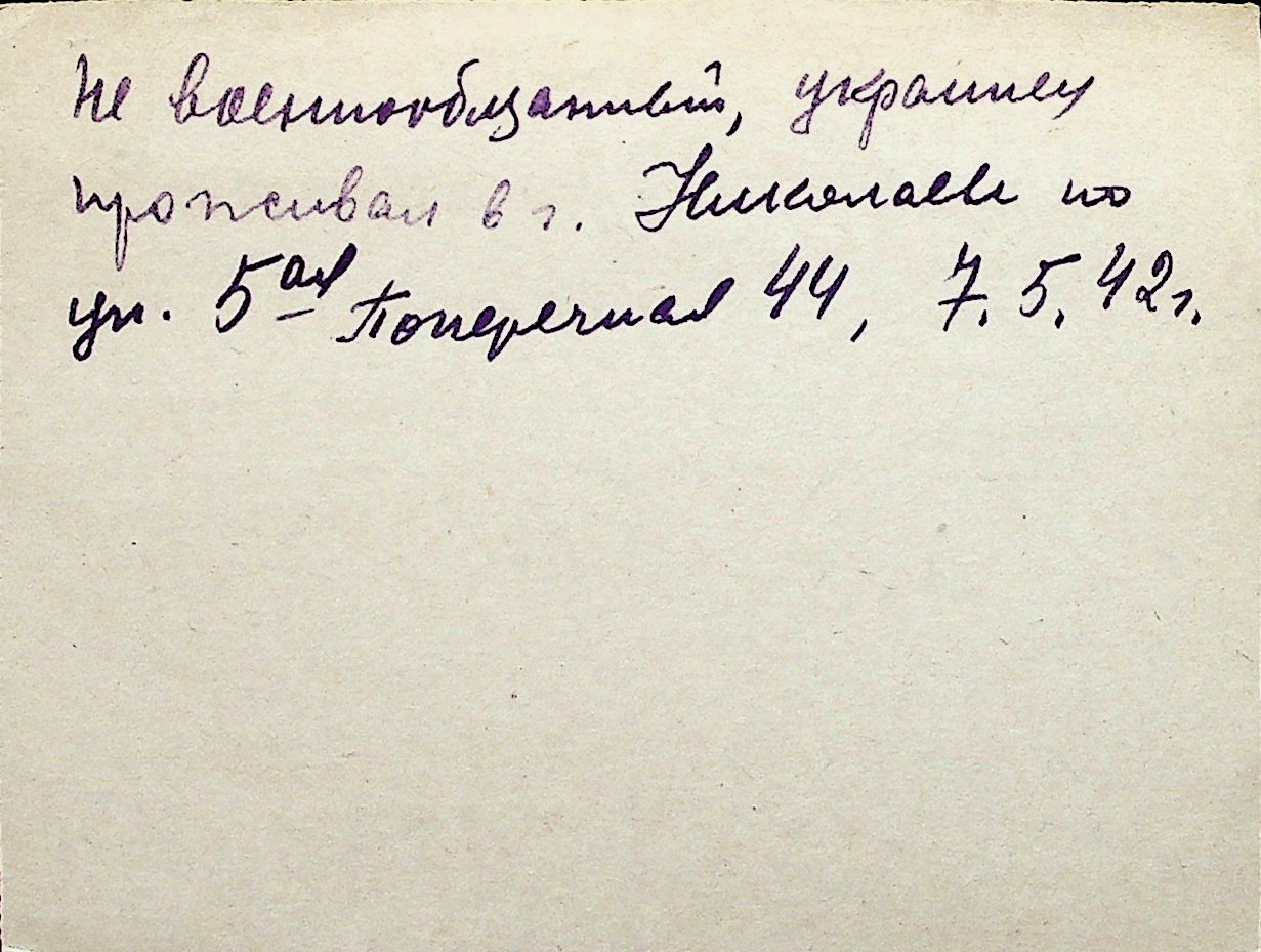 ◦ ◦ Перелік карток на осіб, які мешкали у м. Миколаїв у період окупації 1941–1944 років