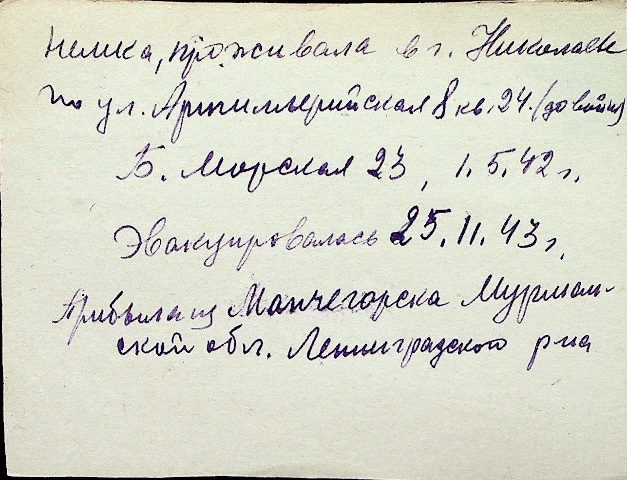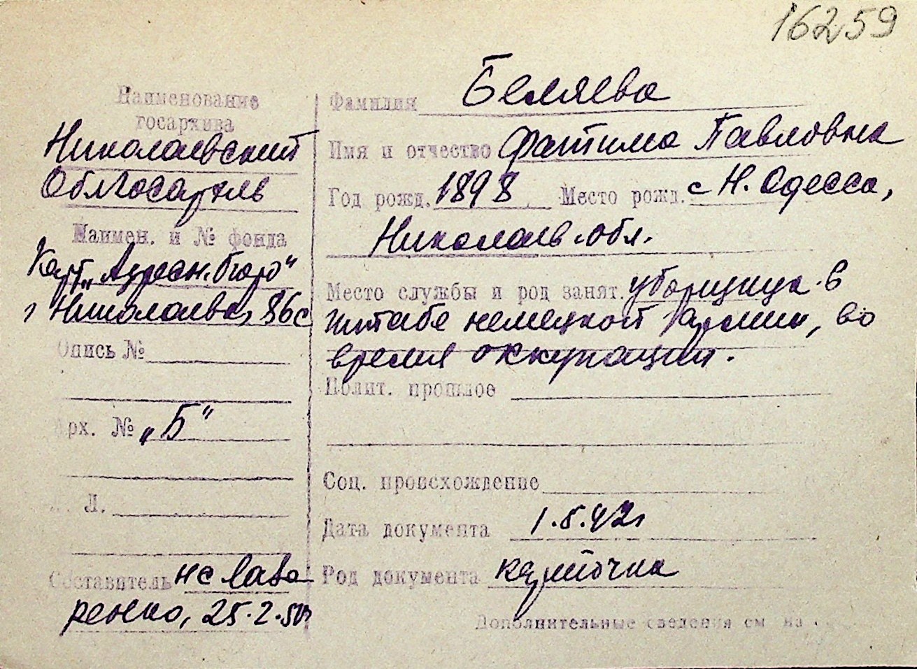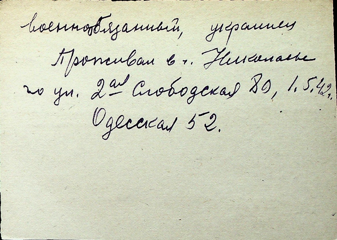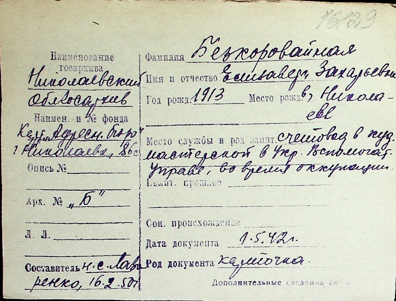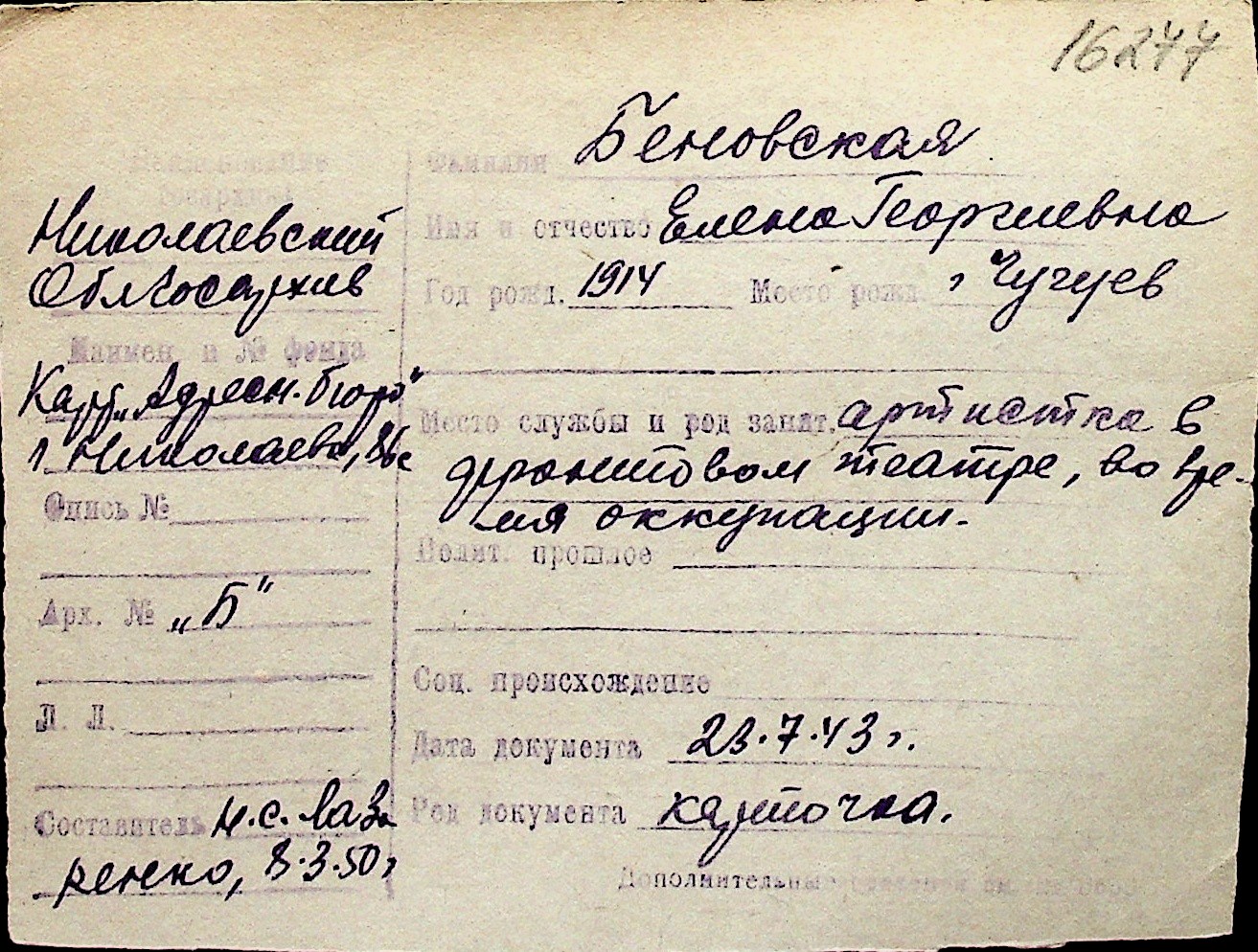 ◦ ◦ Перелік карток на осіб, які мешкали у м. Миколаїв у період окупації 1941–1944 років