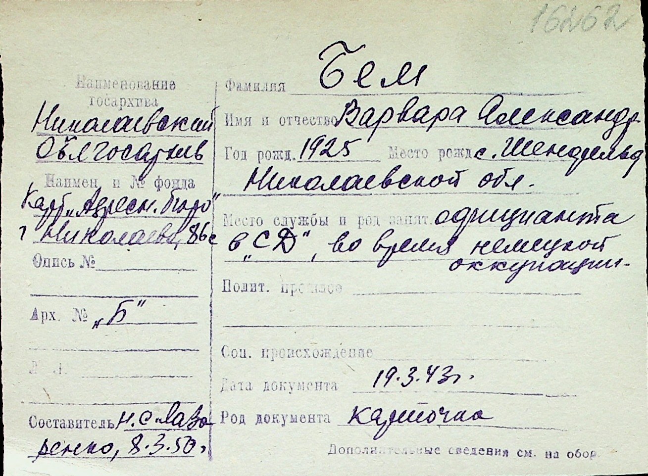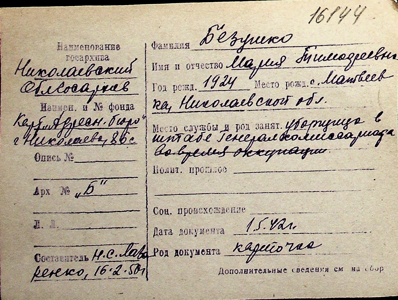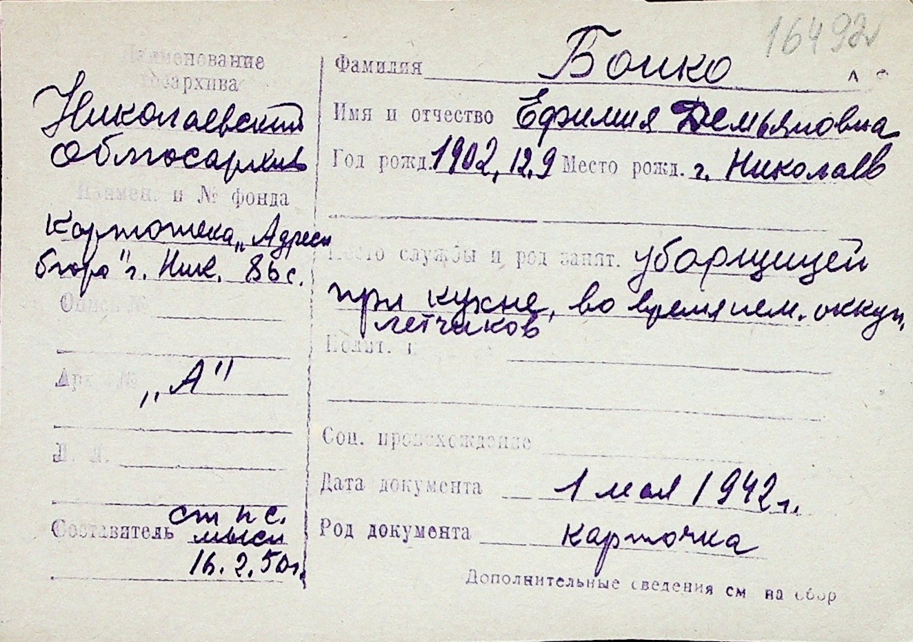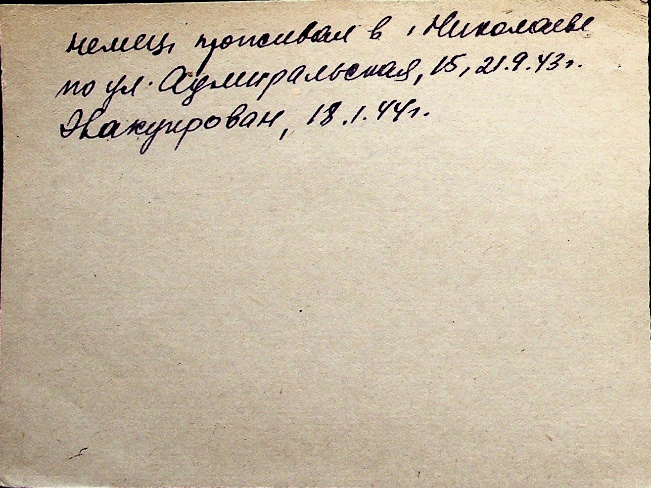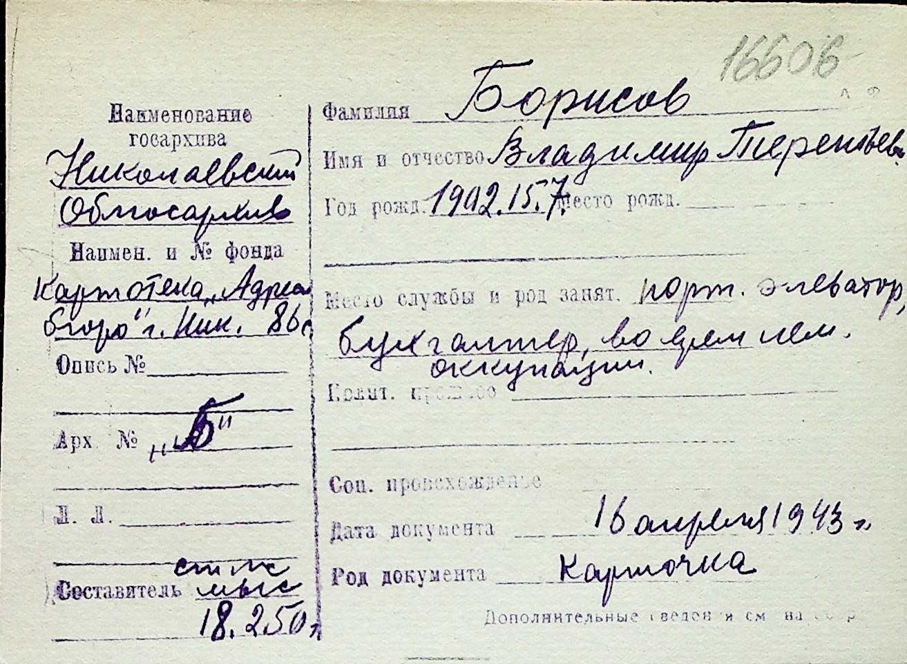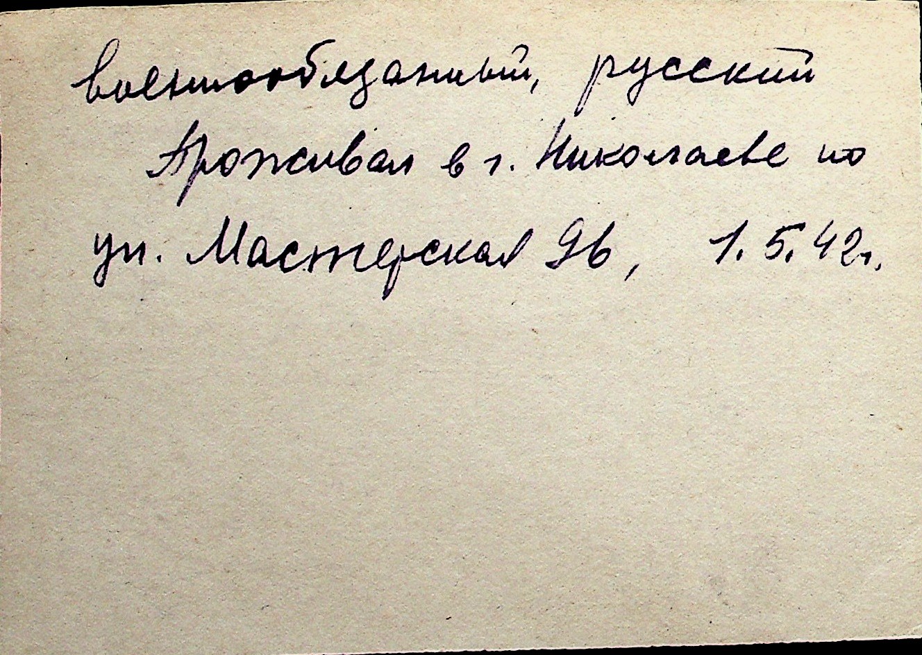 ◦ ◦ Перелік карток на осіб, які мешкали у м. Миколаїв у період окупації 1941–1944 років