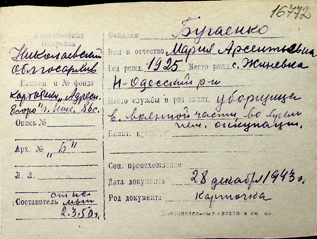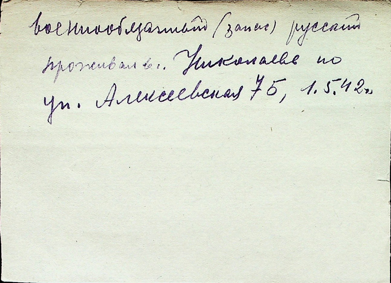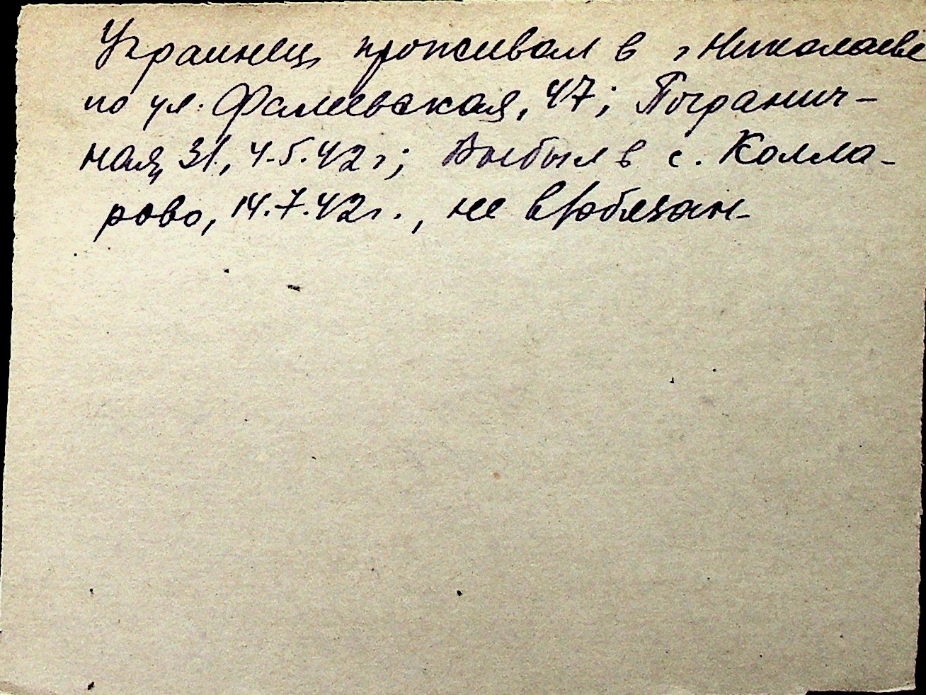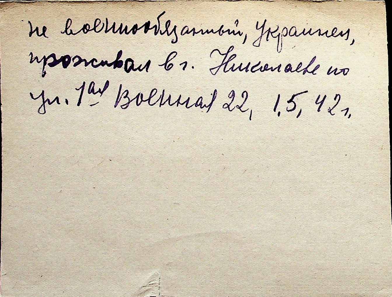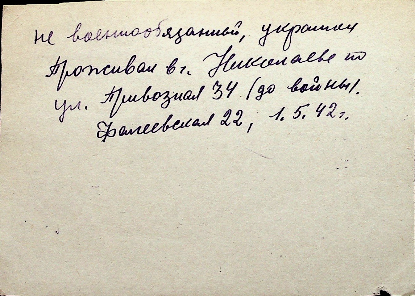 ◦ ◦ Перелік карток на осіб, які мешкали у м. Миколаїв у період окупації 1941–1944 років
