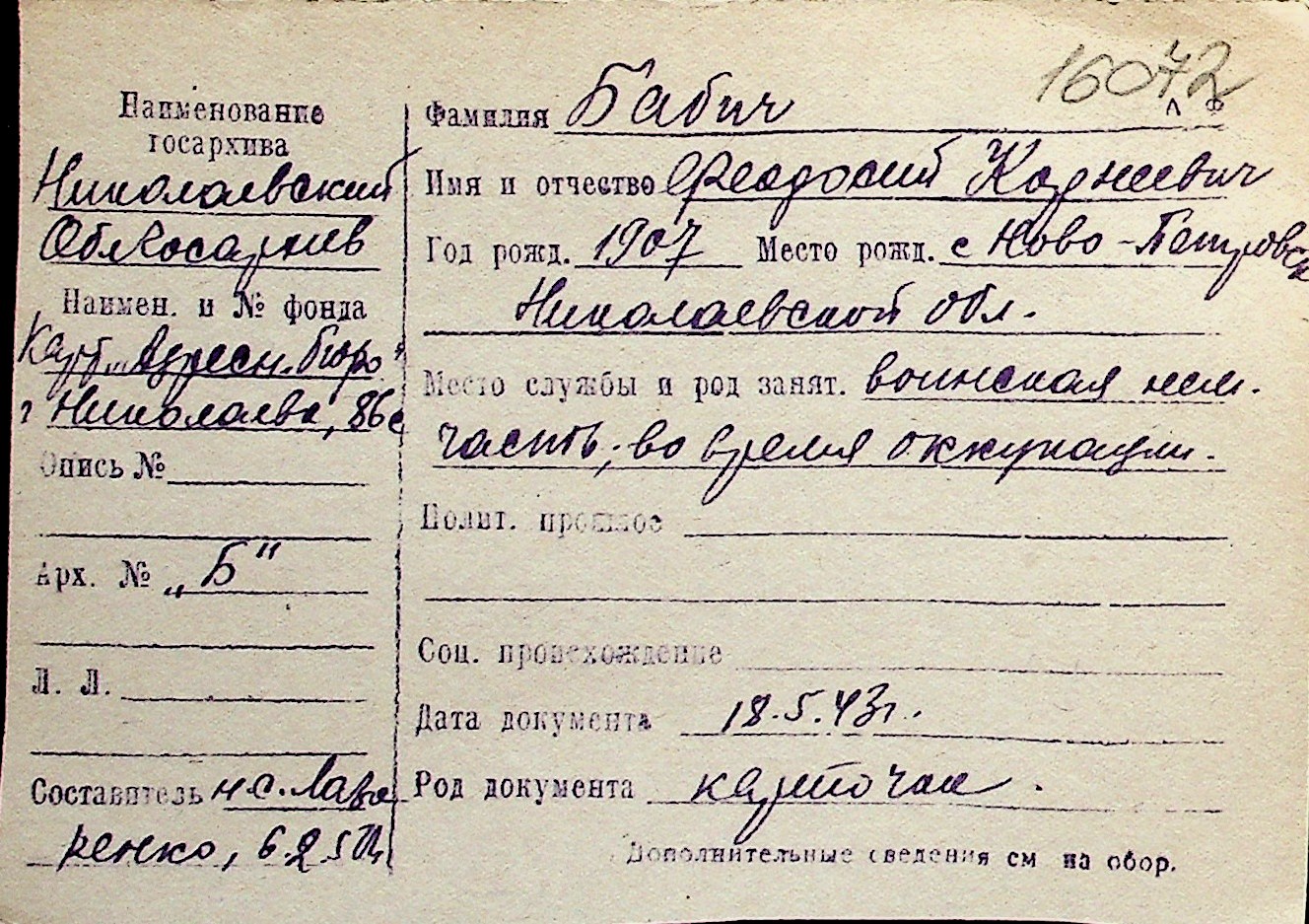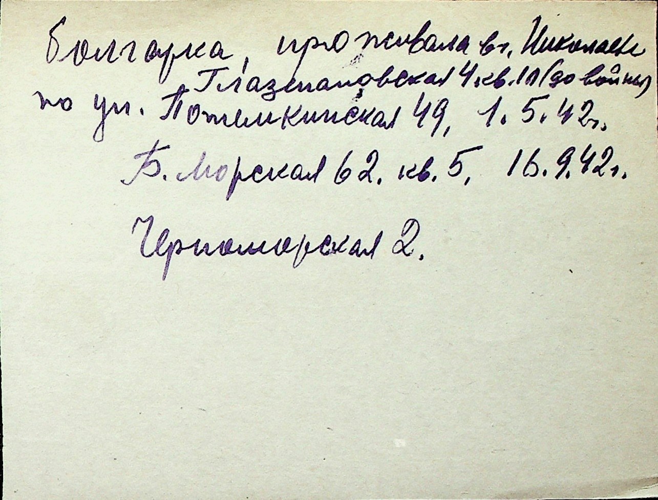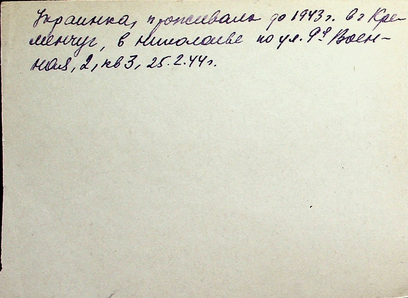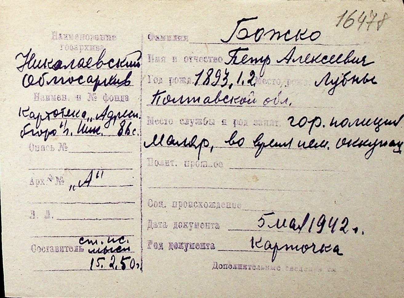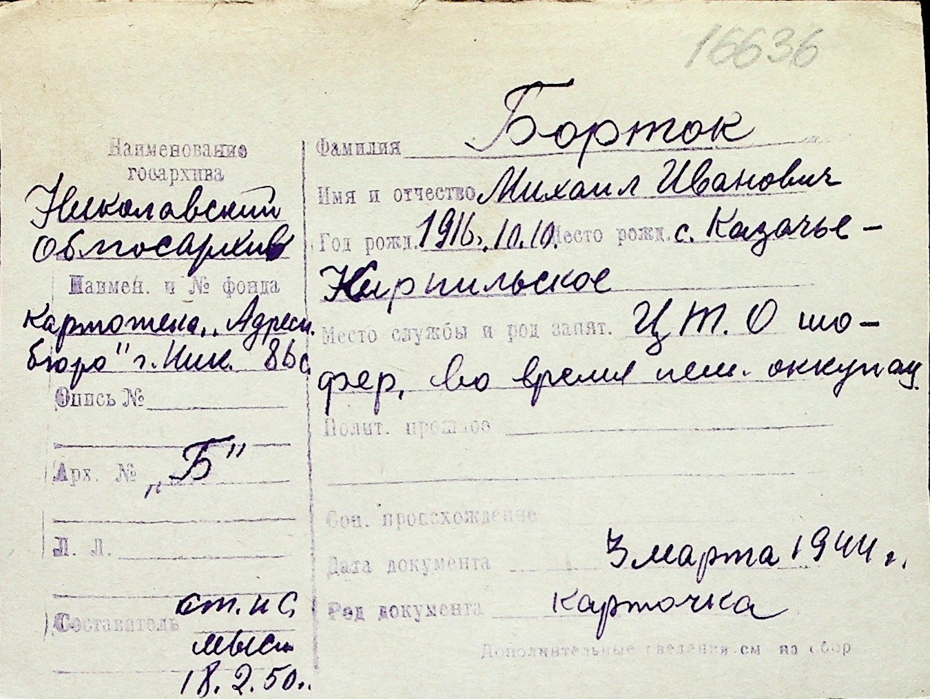 ◦ ◦ Перелік карток на осіб, які мешкали у м. Миколаїв у період окупації 1941–1944 років