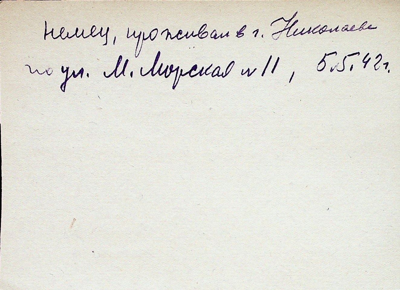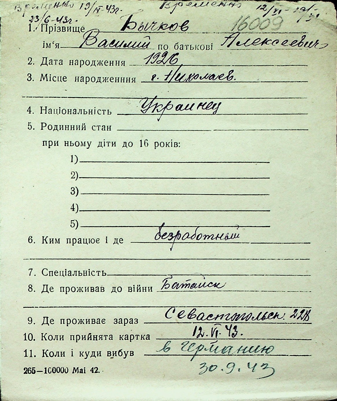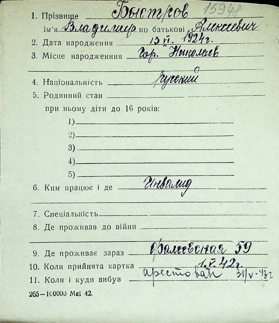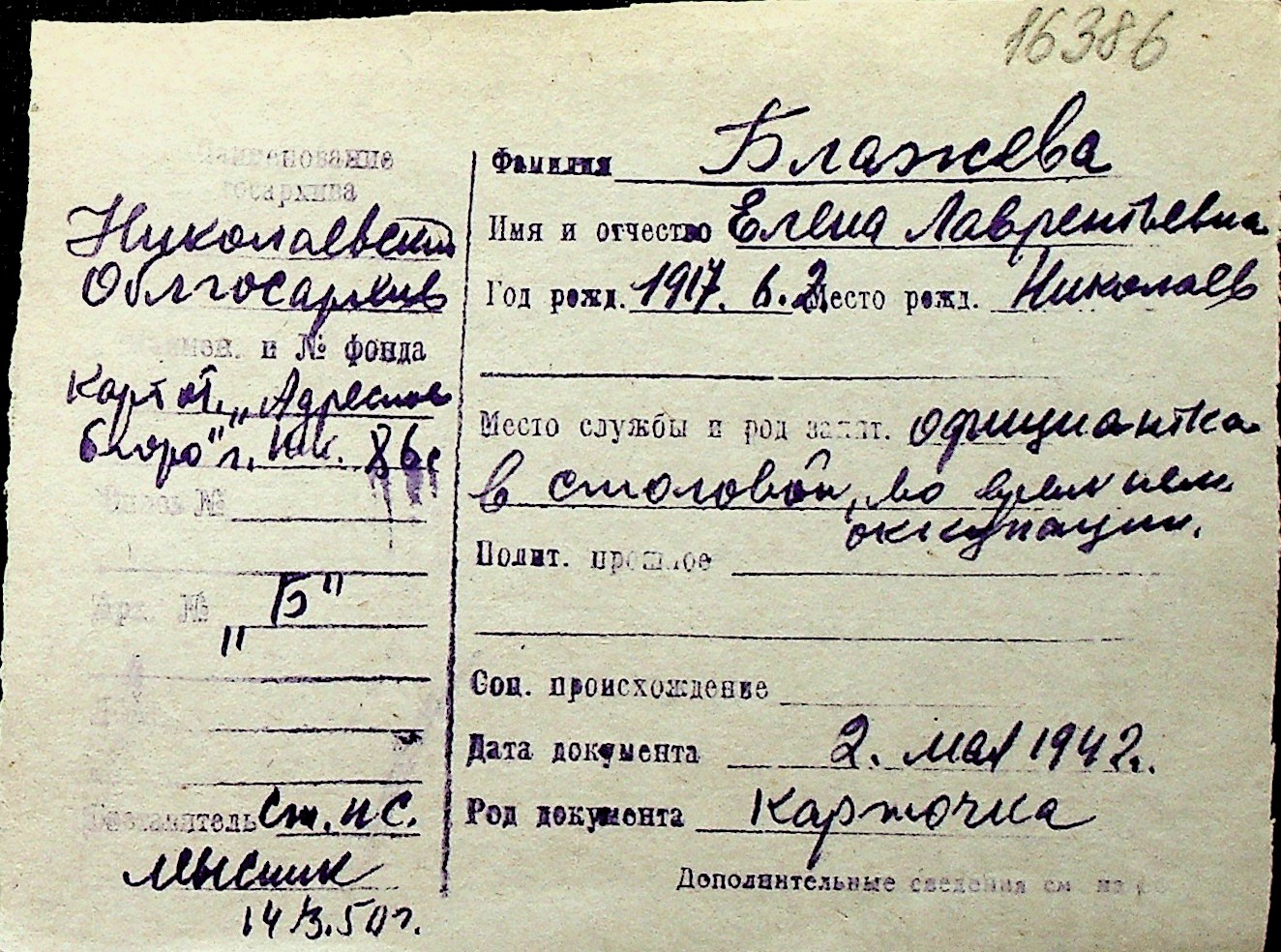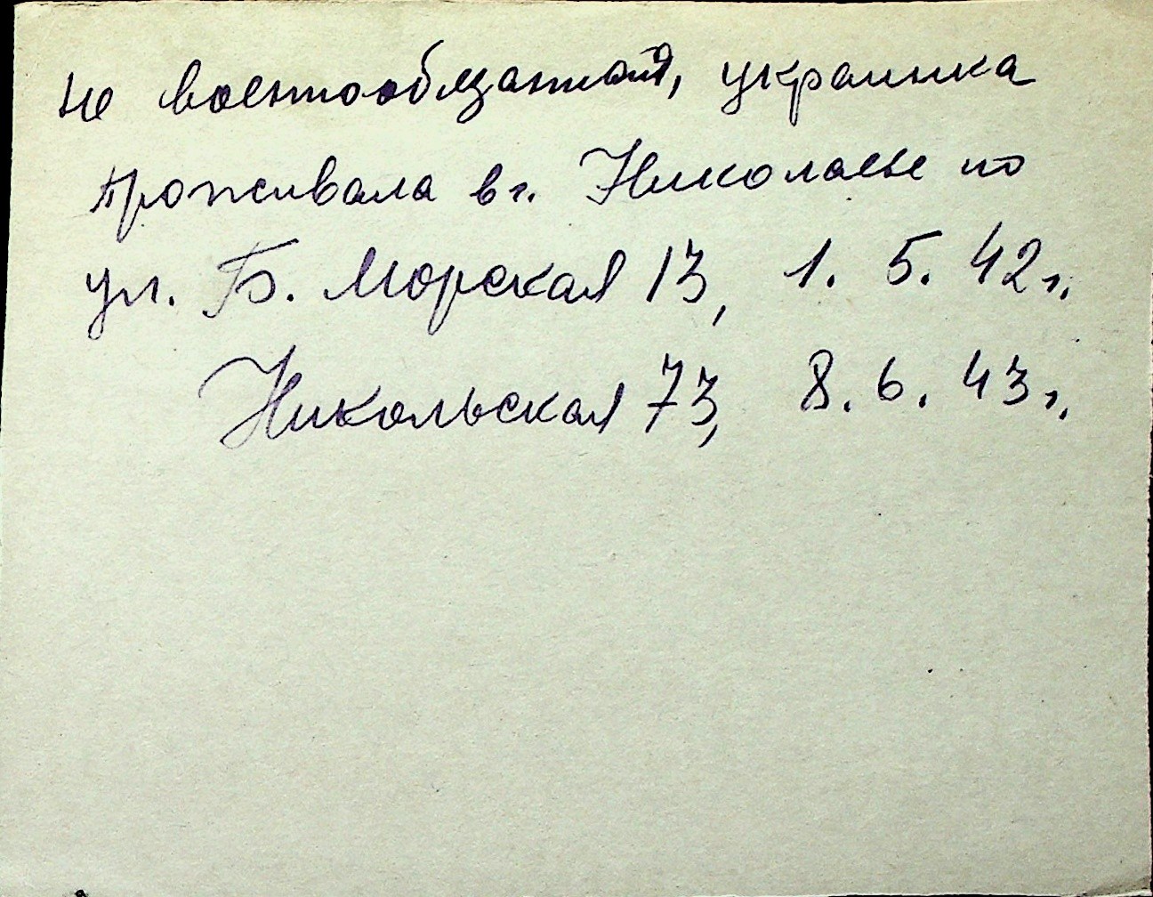 ◦ ◦ Перелік карток на осіб, які мешкали у м. Миколаїв у період окупації 1941–1944 років