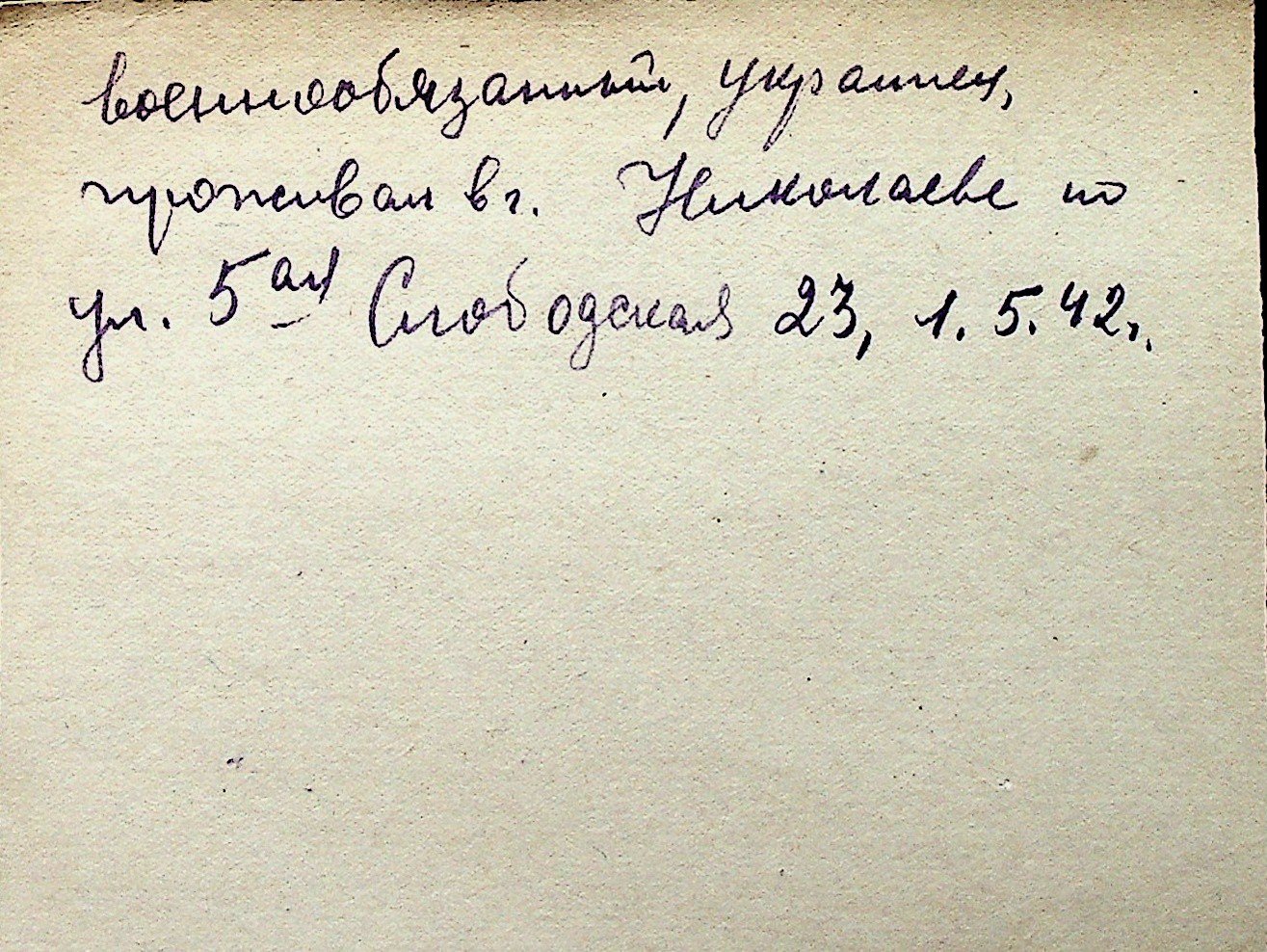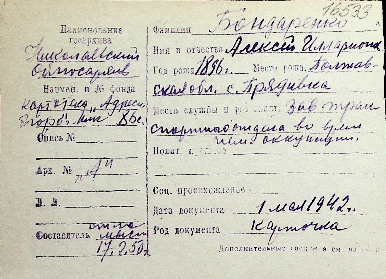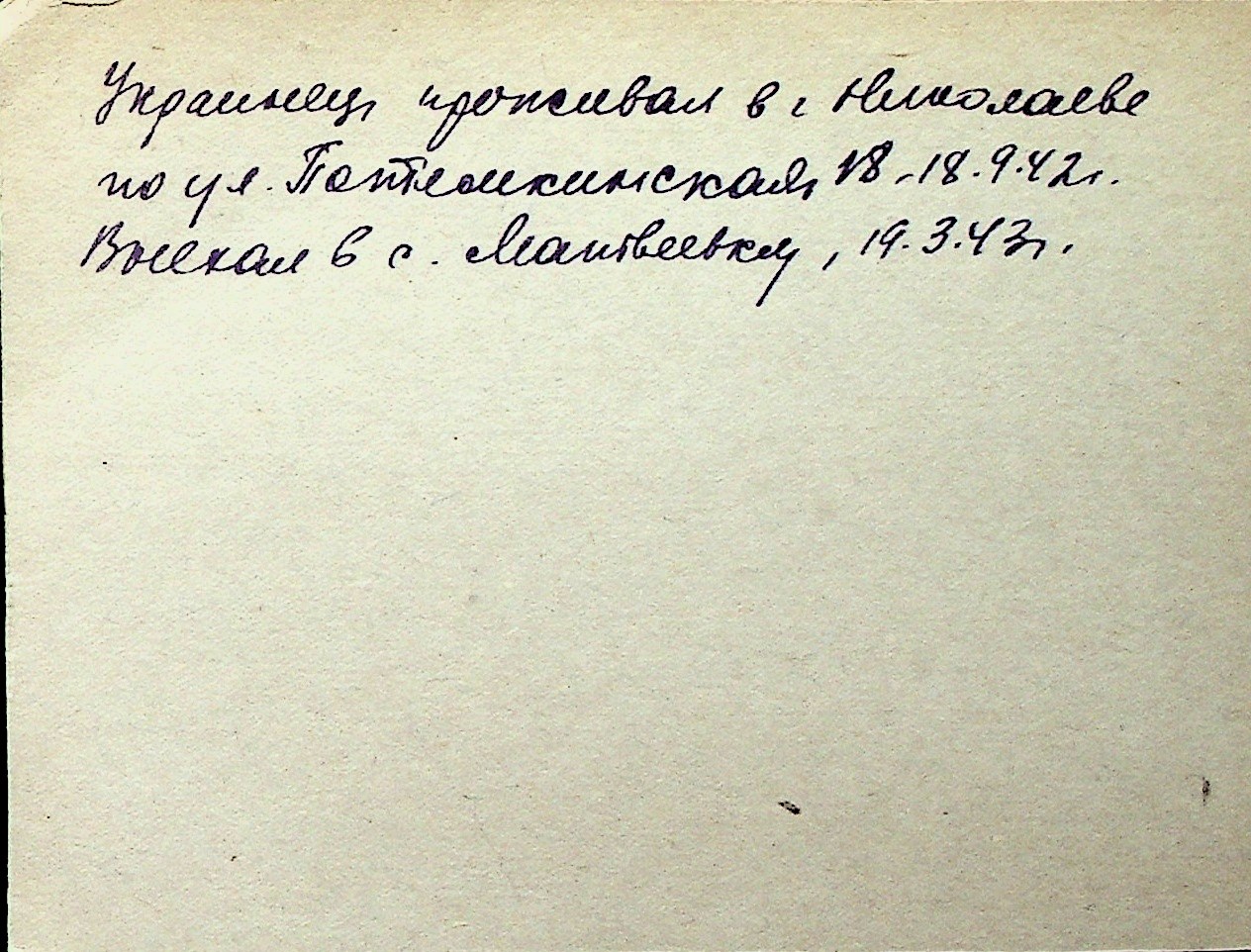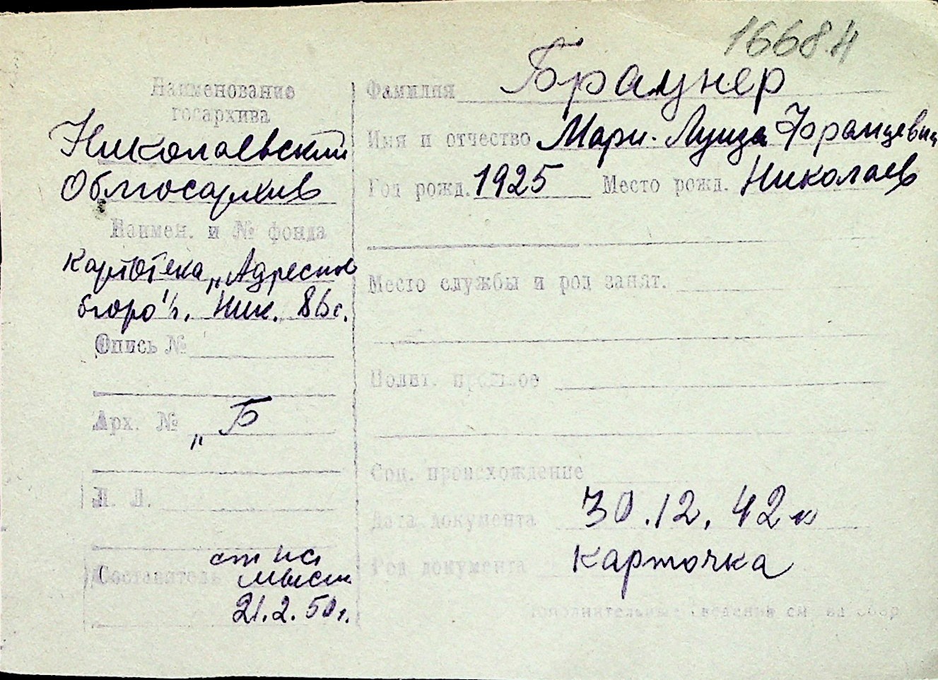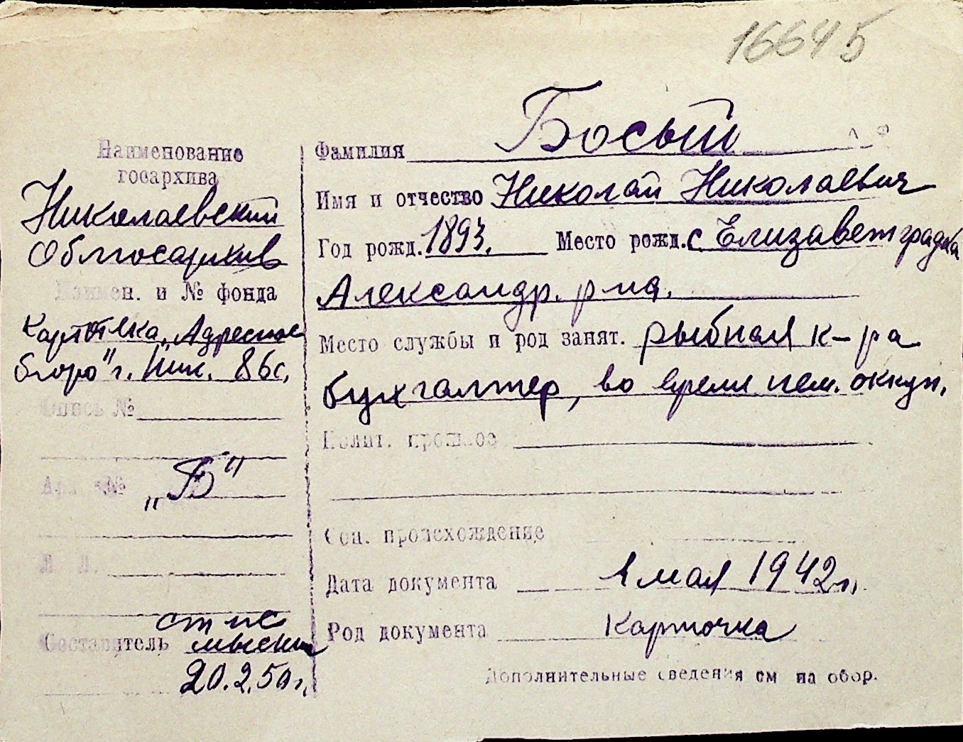 ◦ ◦ Перелік карток на осіб, які мешкали у м. Миколаїв у період окупації 1941–1944 років