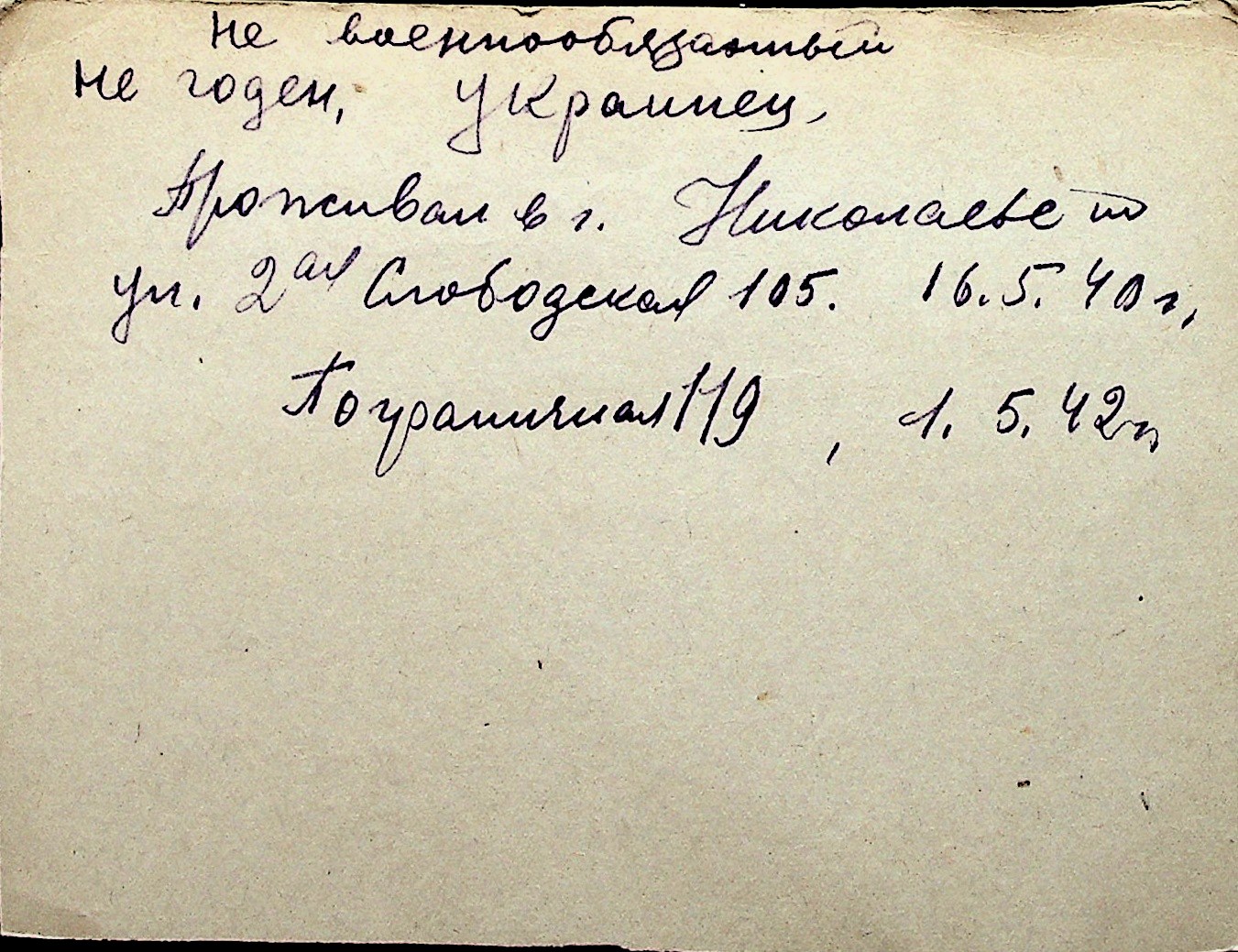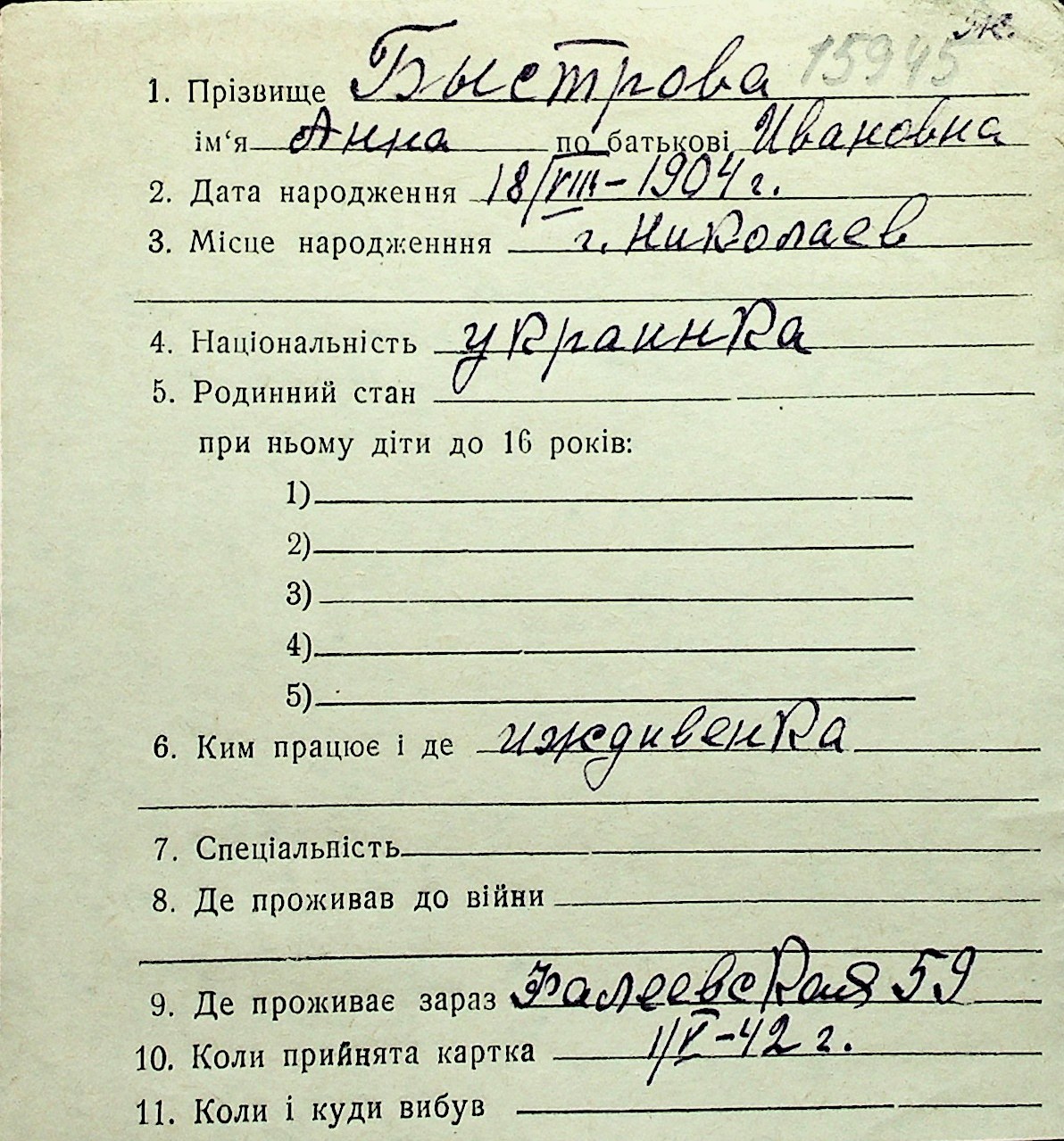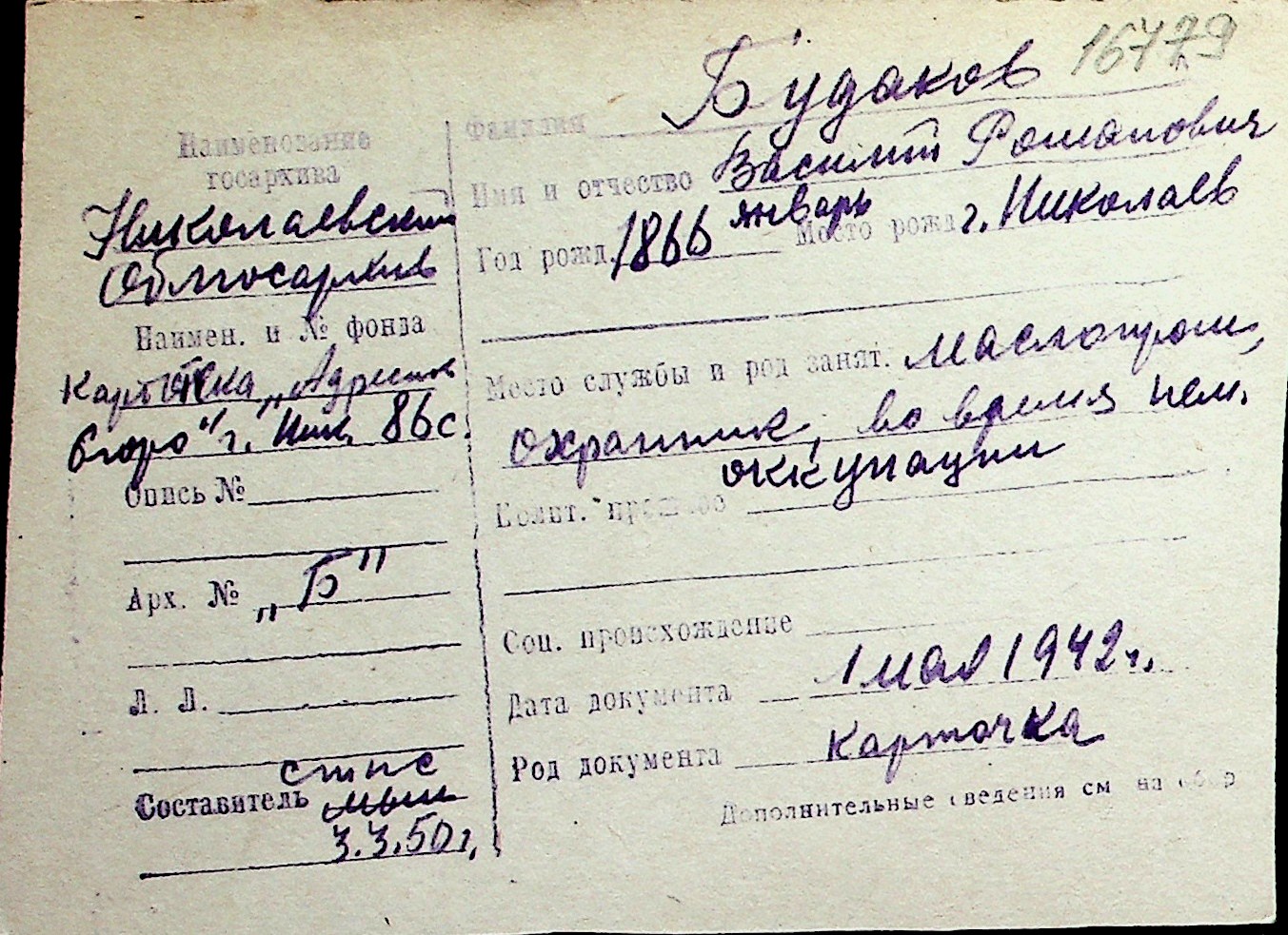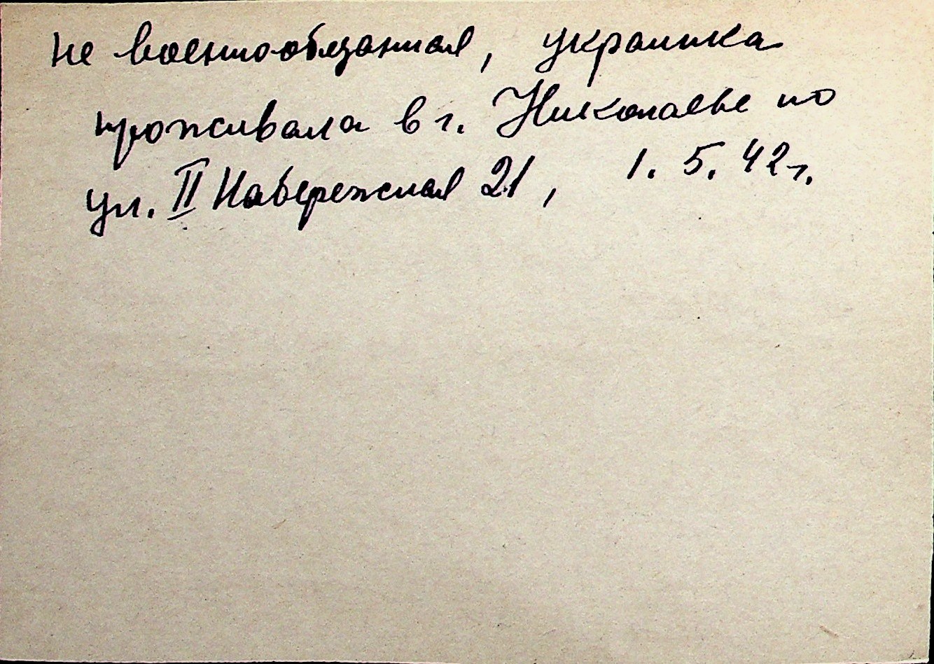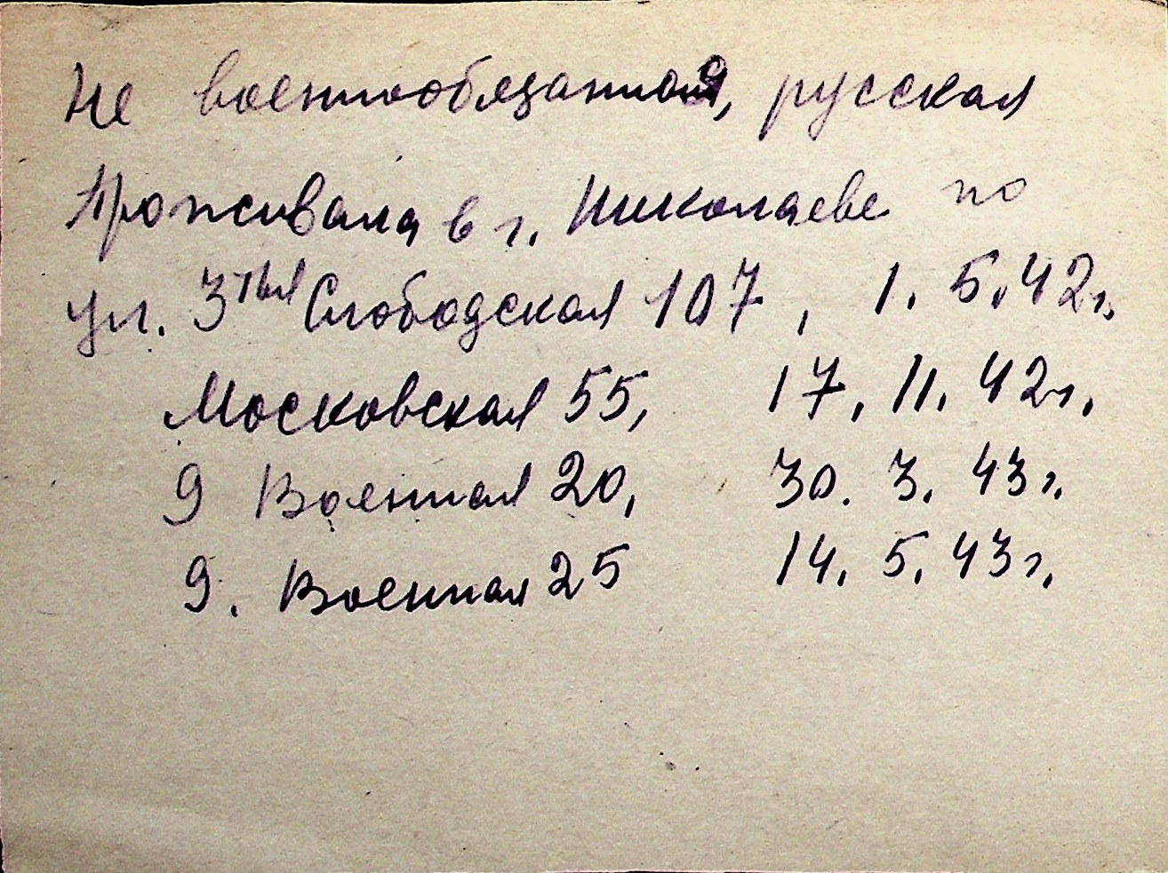 ◦ ◦ Перелік карток на осіб, які мешкали у м. Миколаїв у період окупації 1941–1944 років