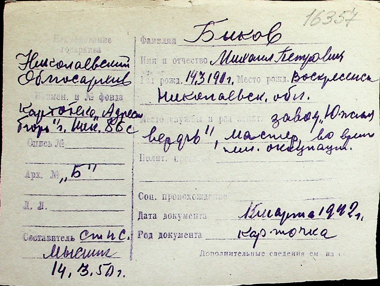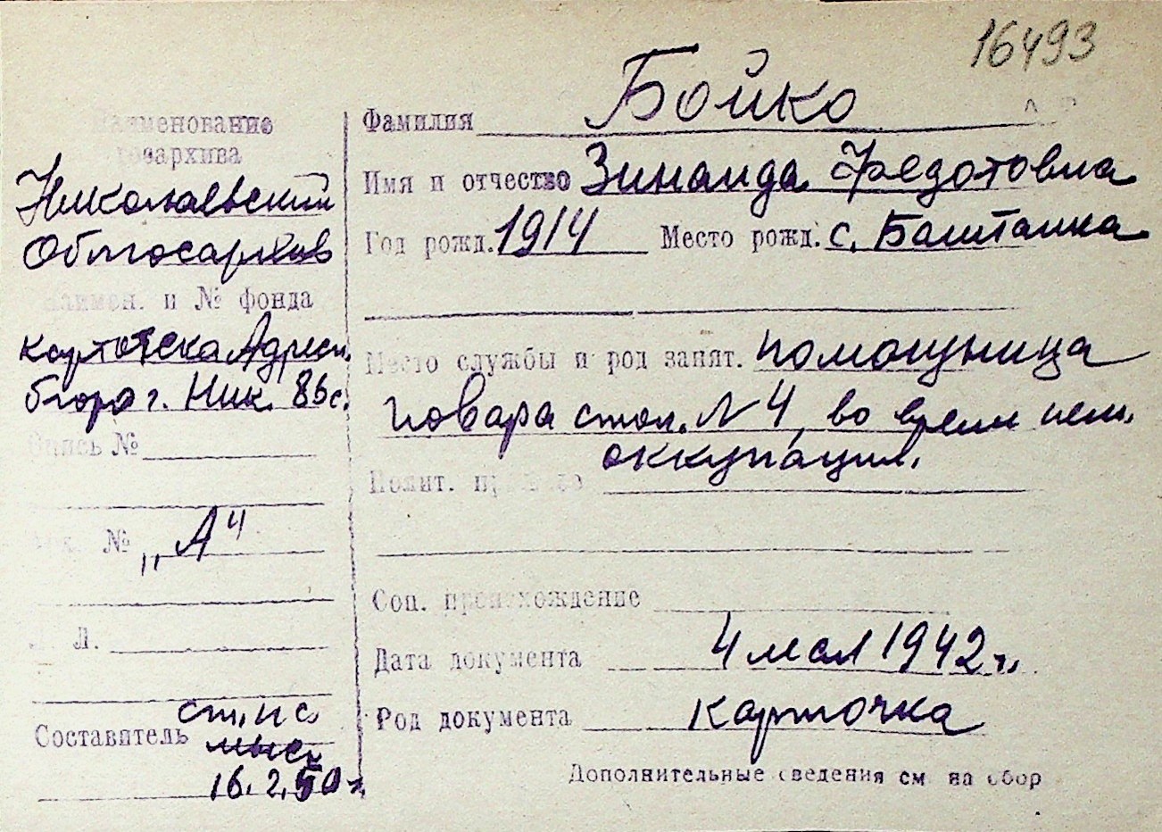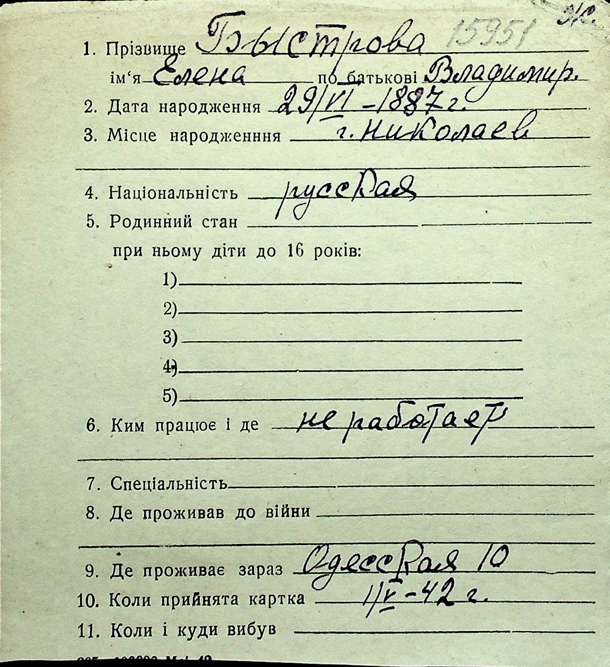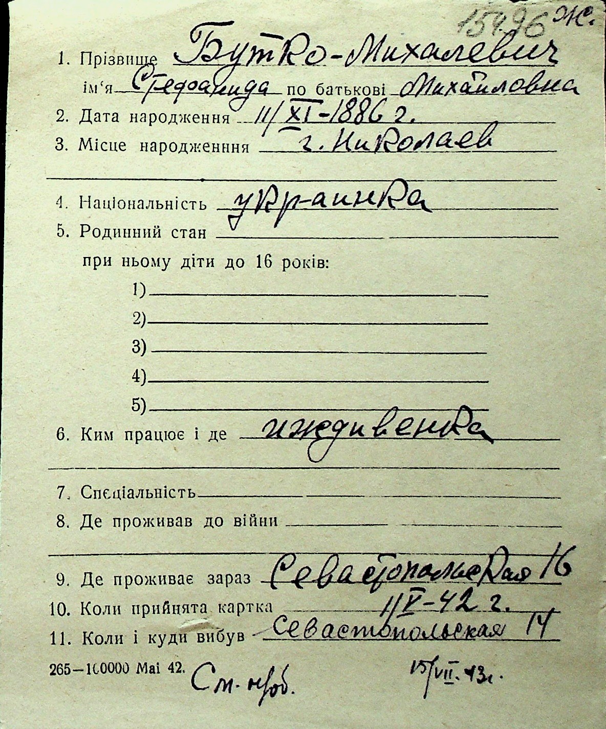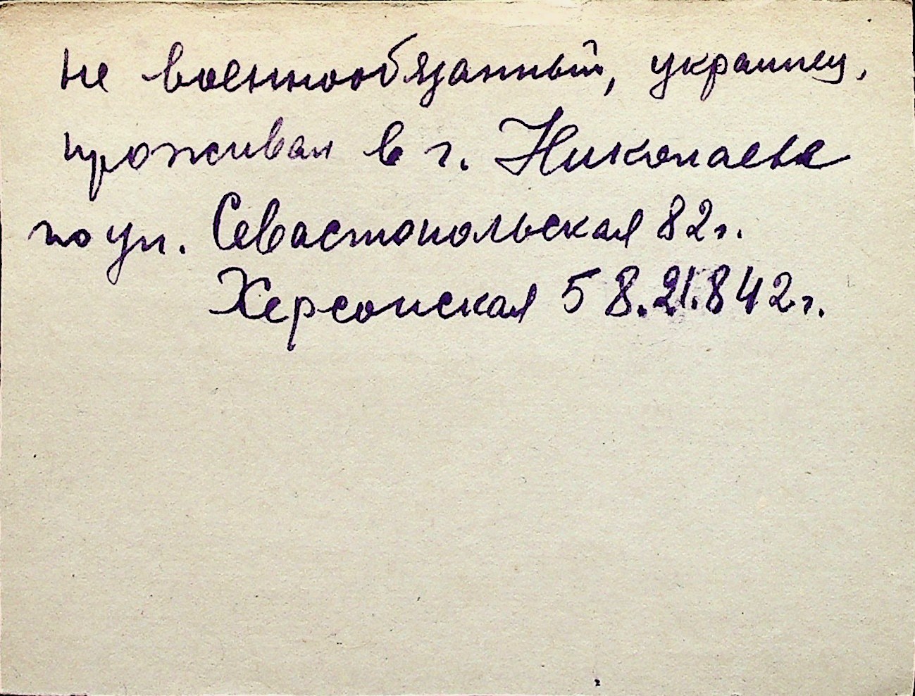 ◦ ◦ Перелік карток на осіб, які мешкали у м. Миколаїв у період окупації 1941–1944 років