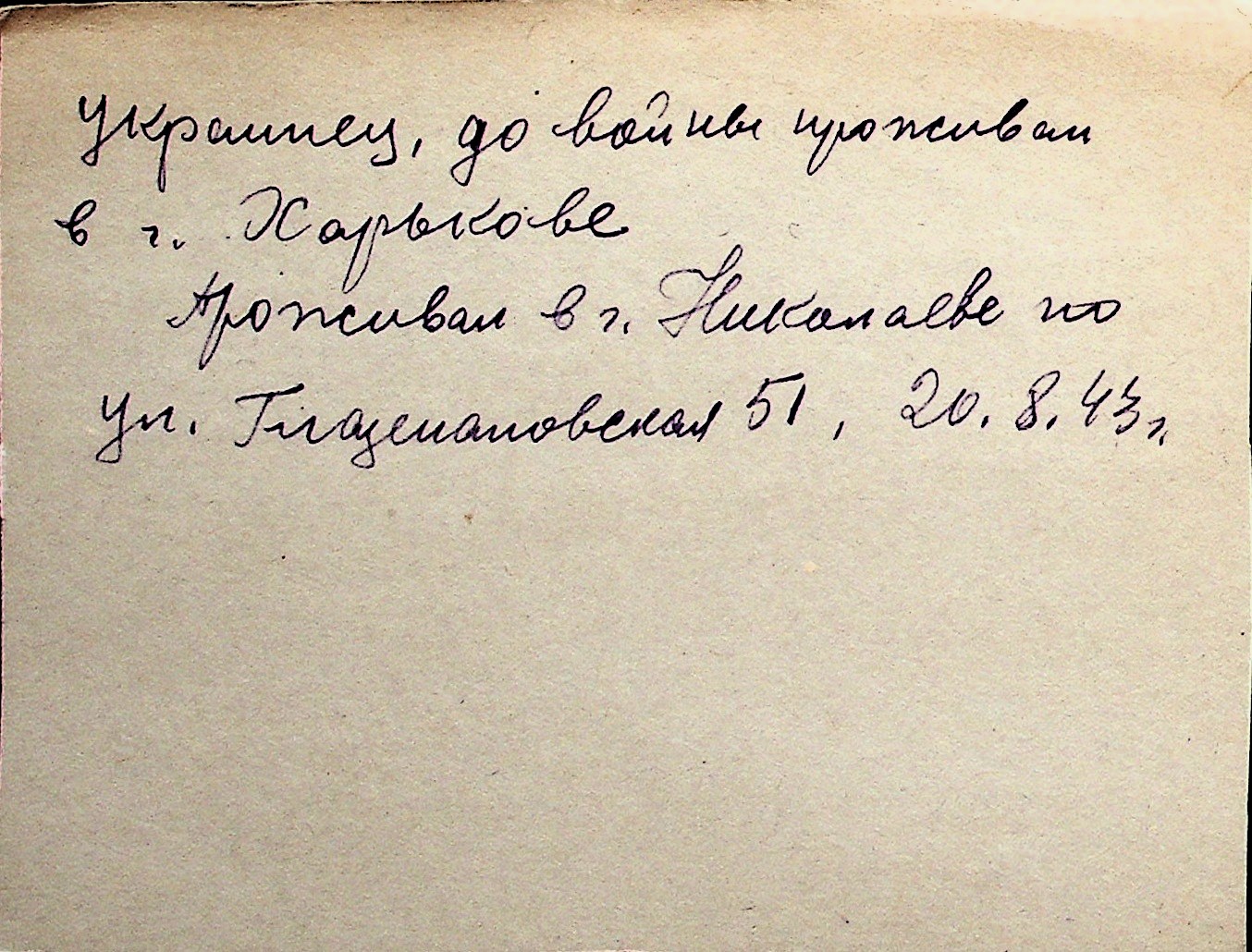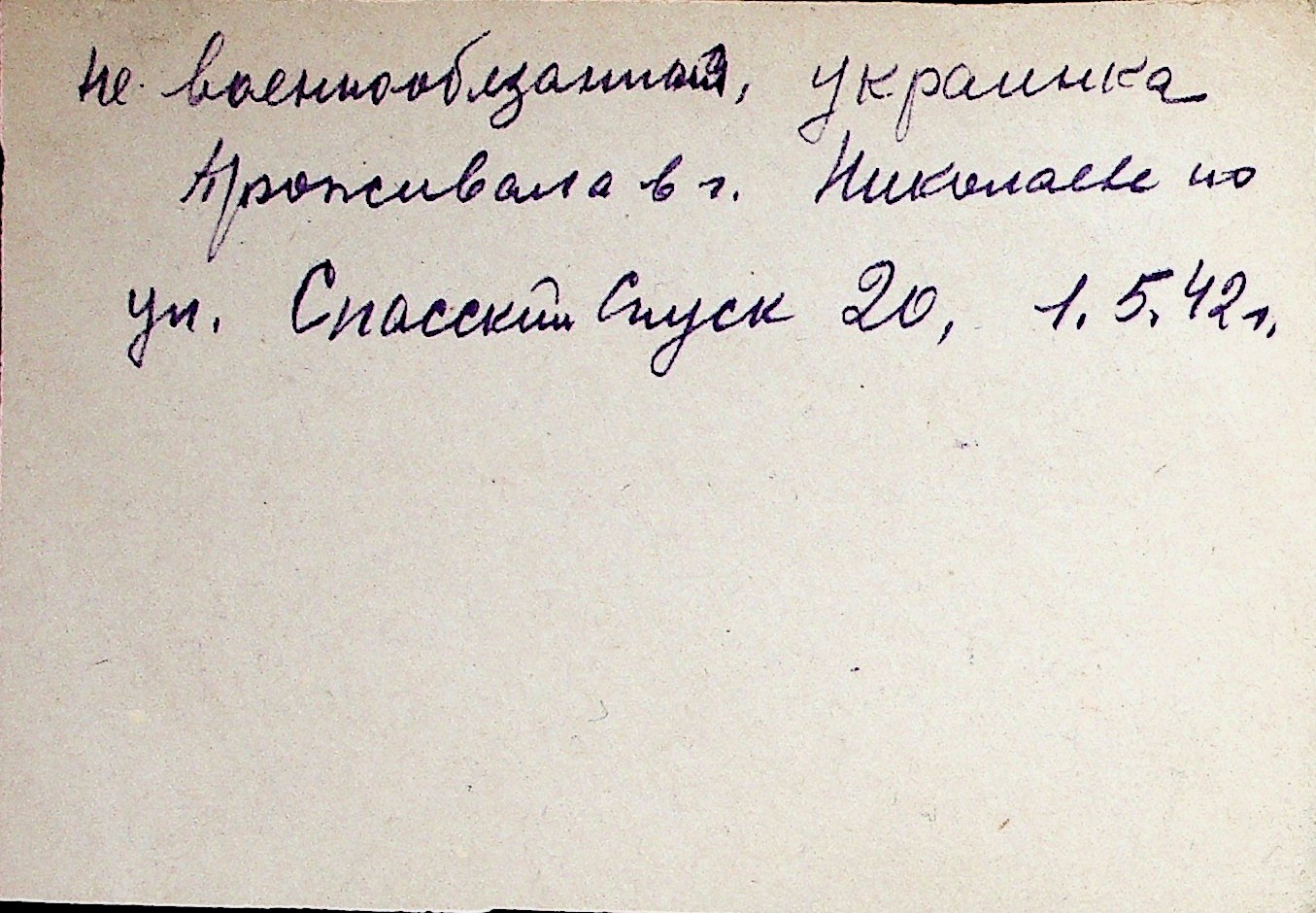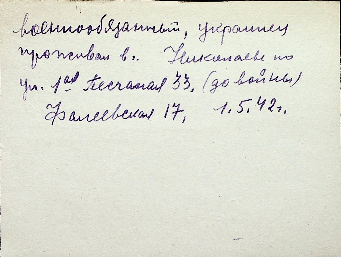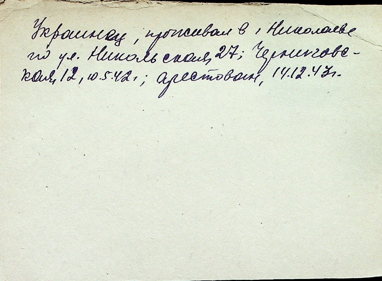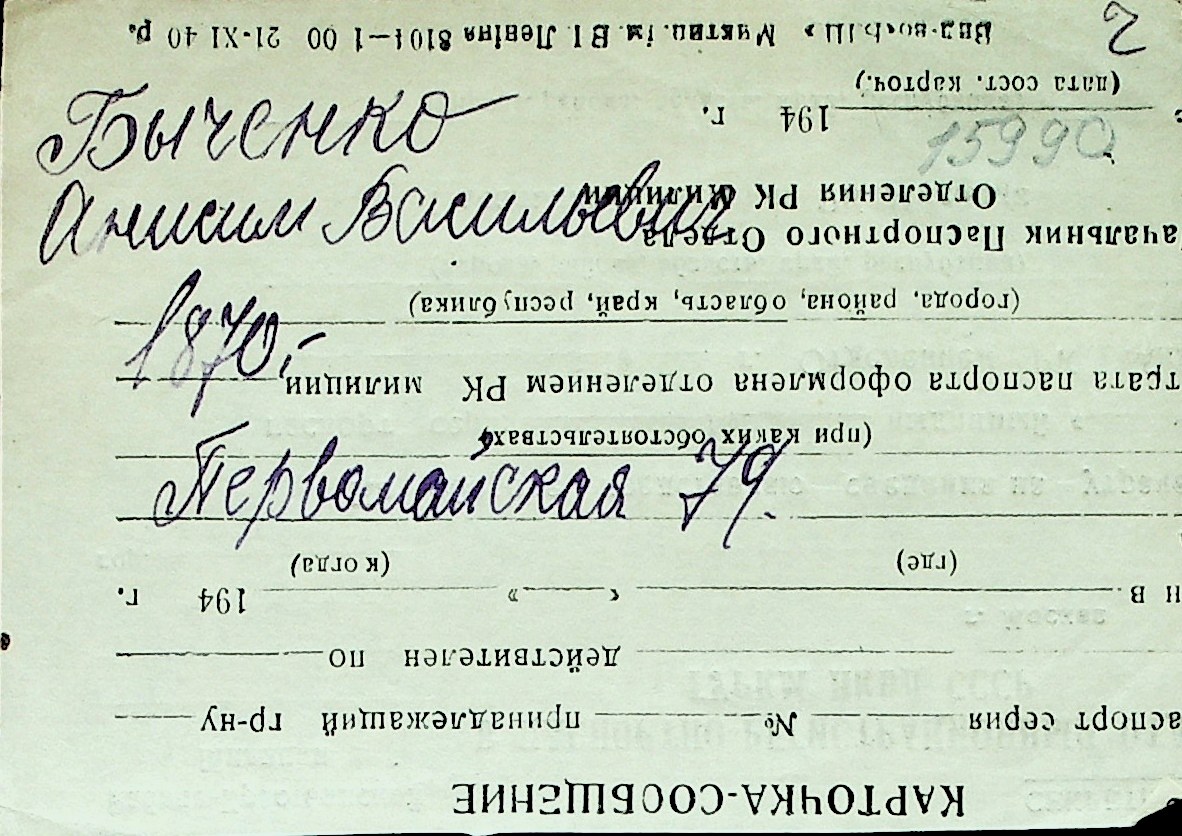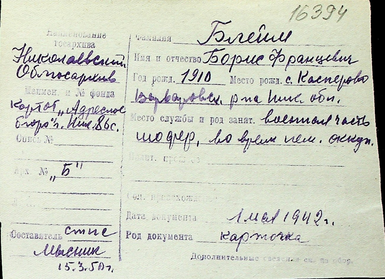 ◦ ◦ Перелік карток на осіб, які мешкали у м. Миколаїв у період окупації 1941–1944 років