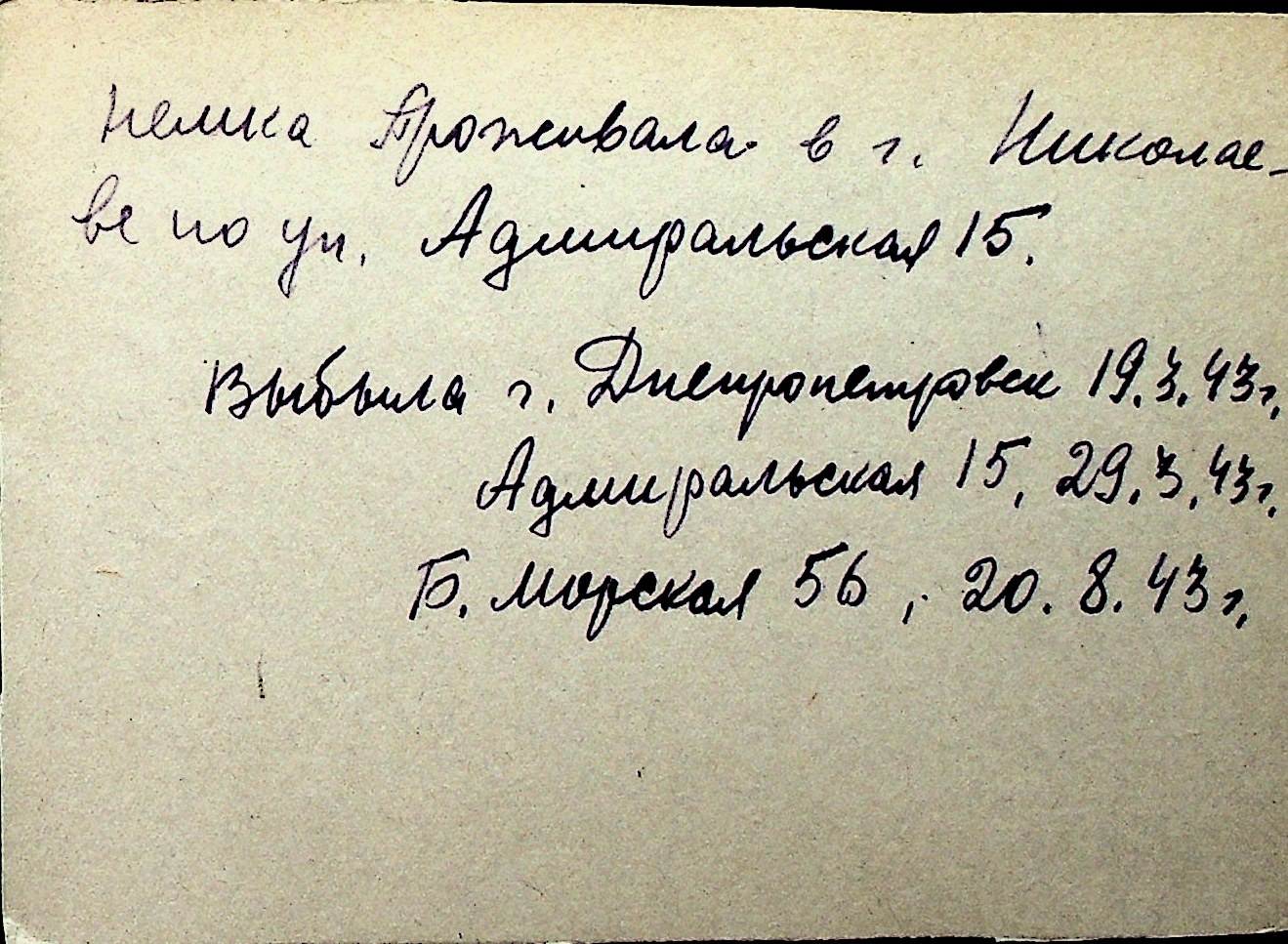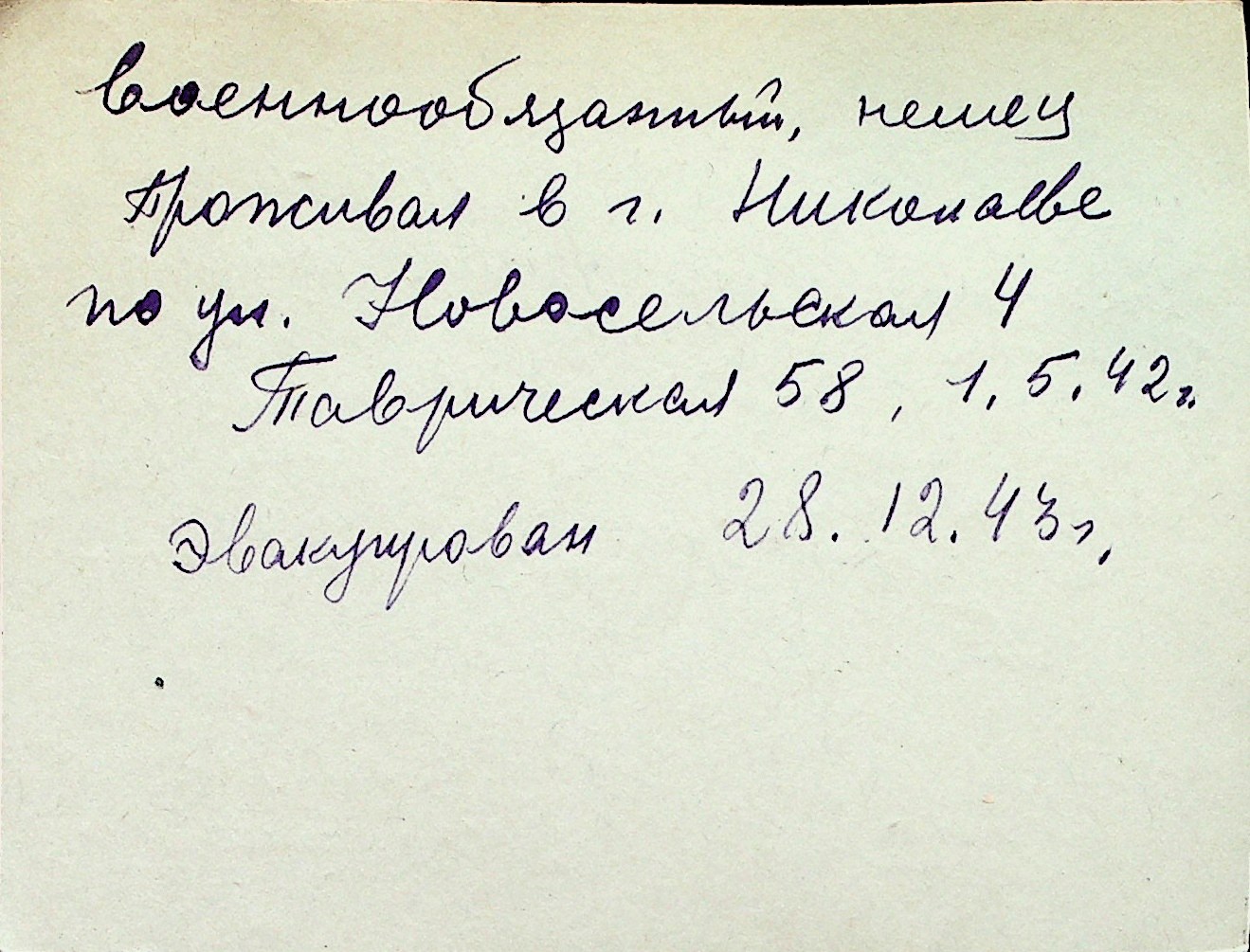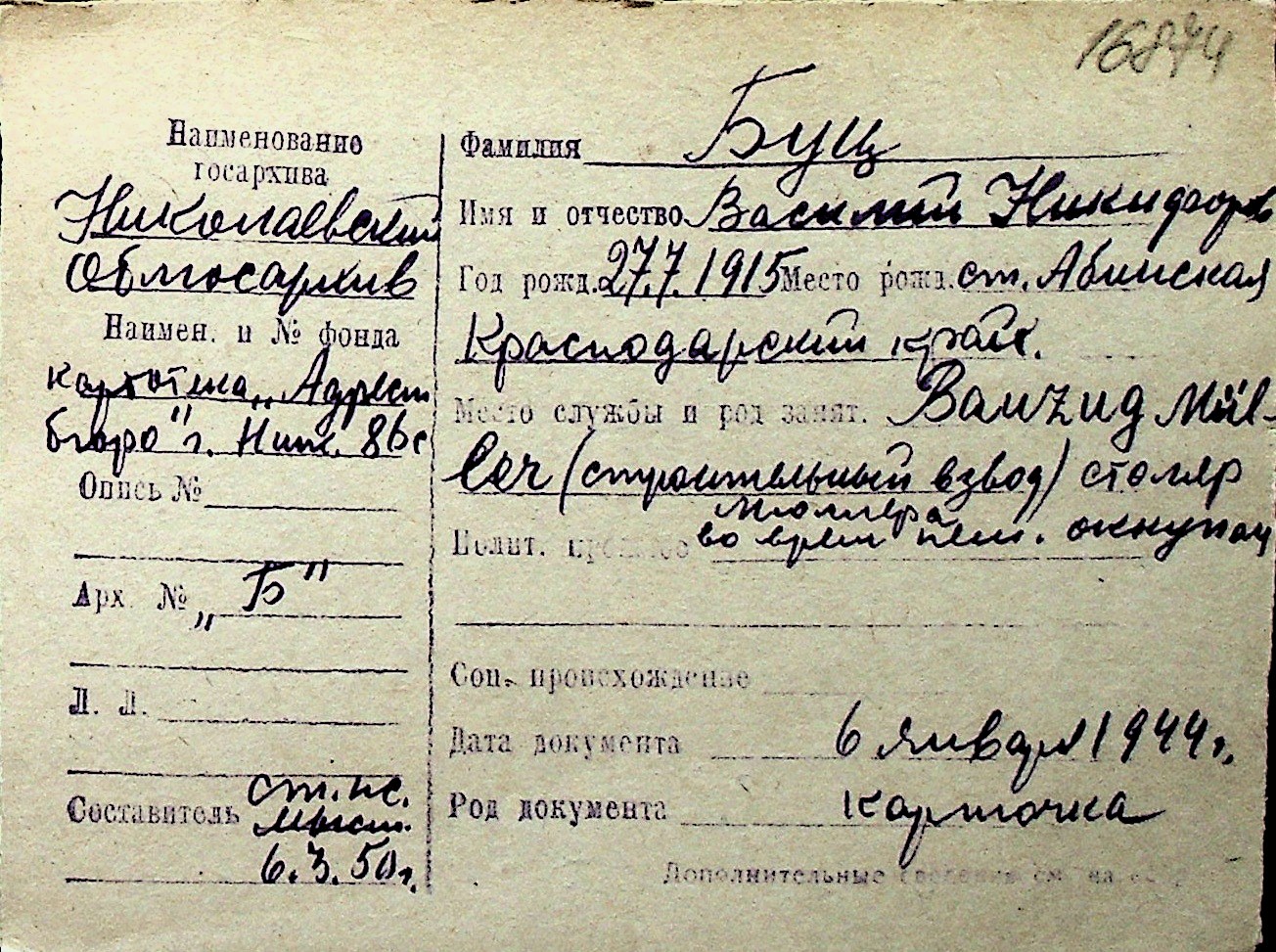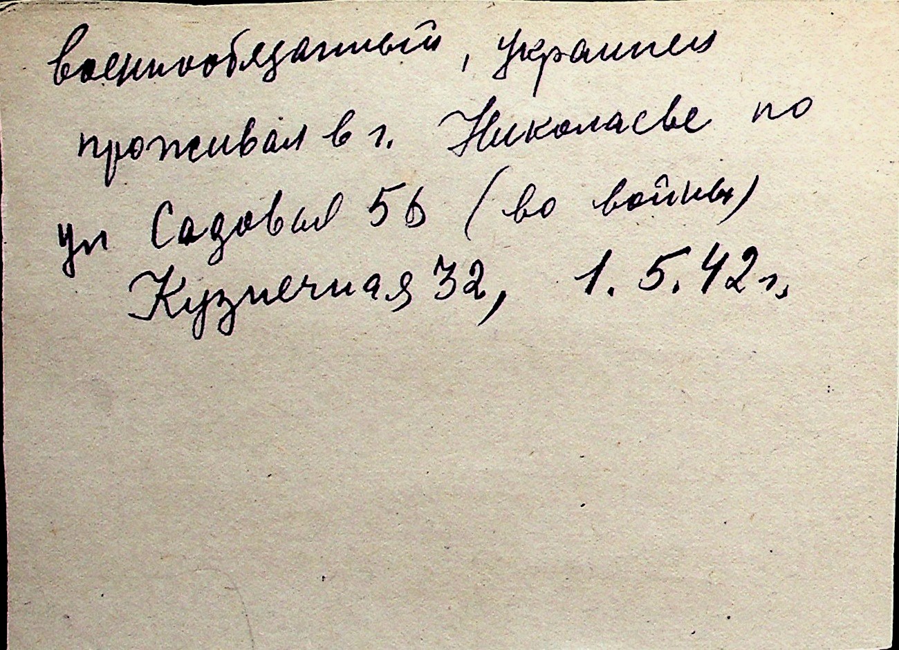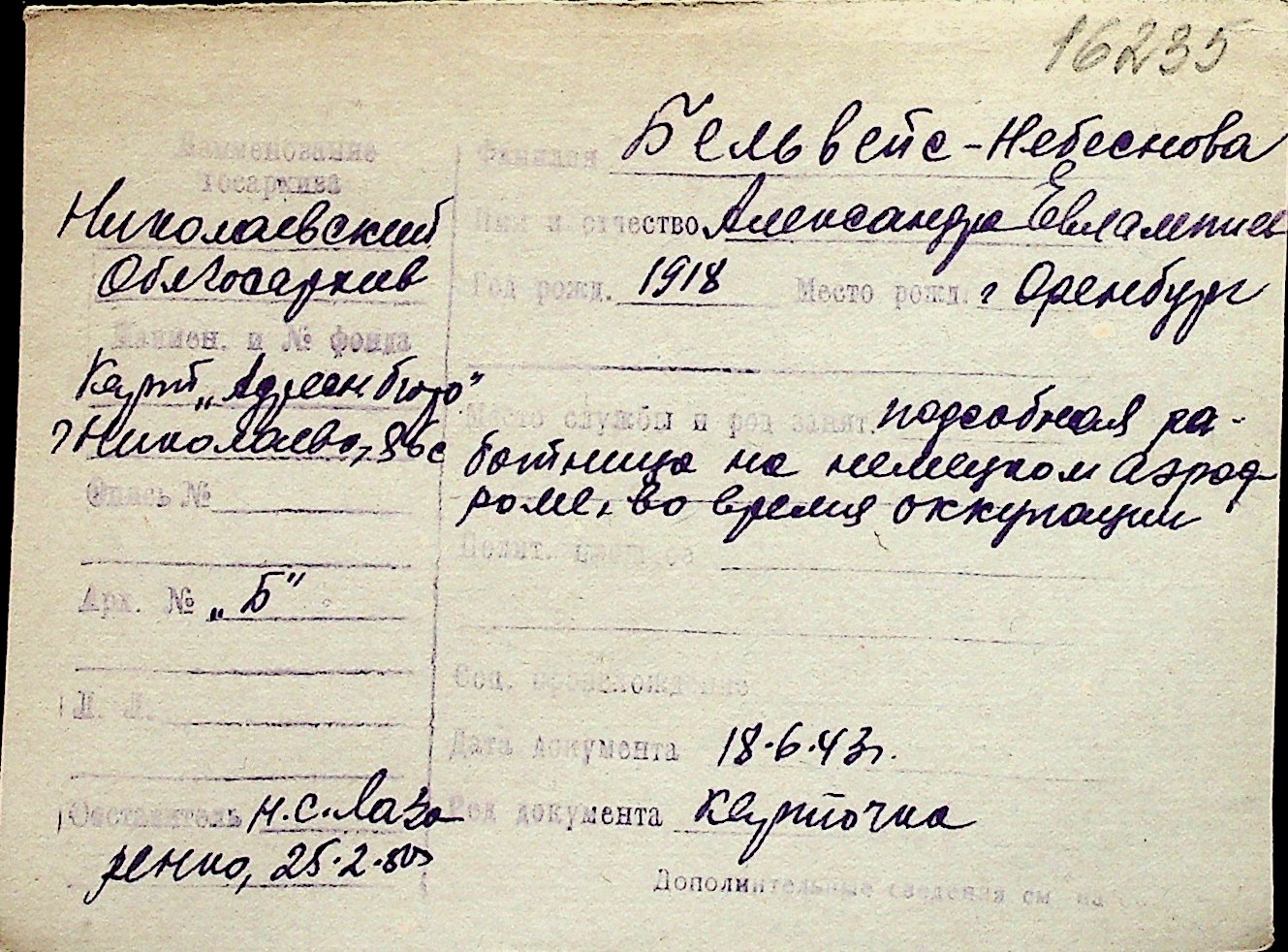 ◦ ◦ Перелік карток на осіб, які мешкали у м. Миколаїв у період окупації 1941–1944 років