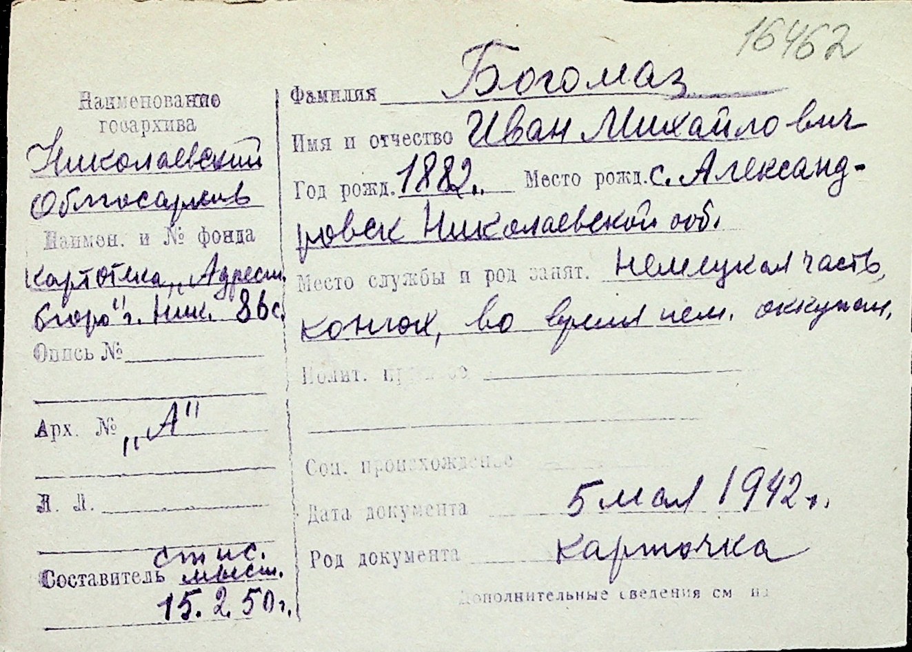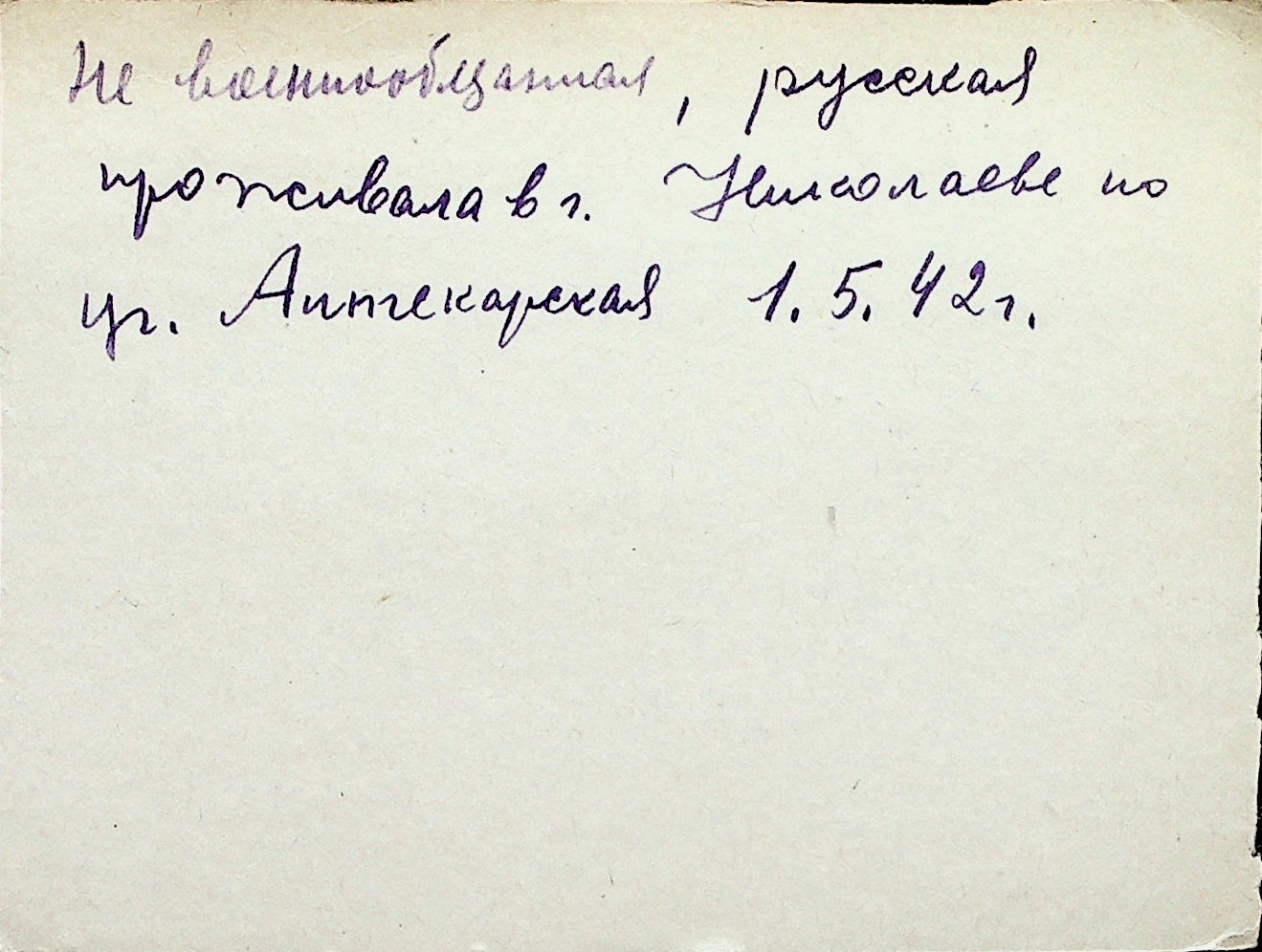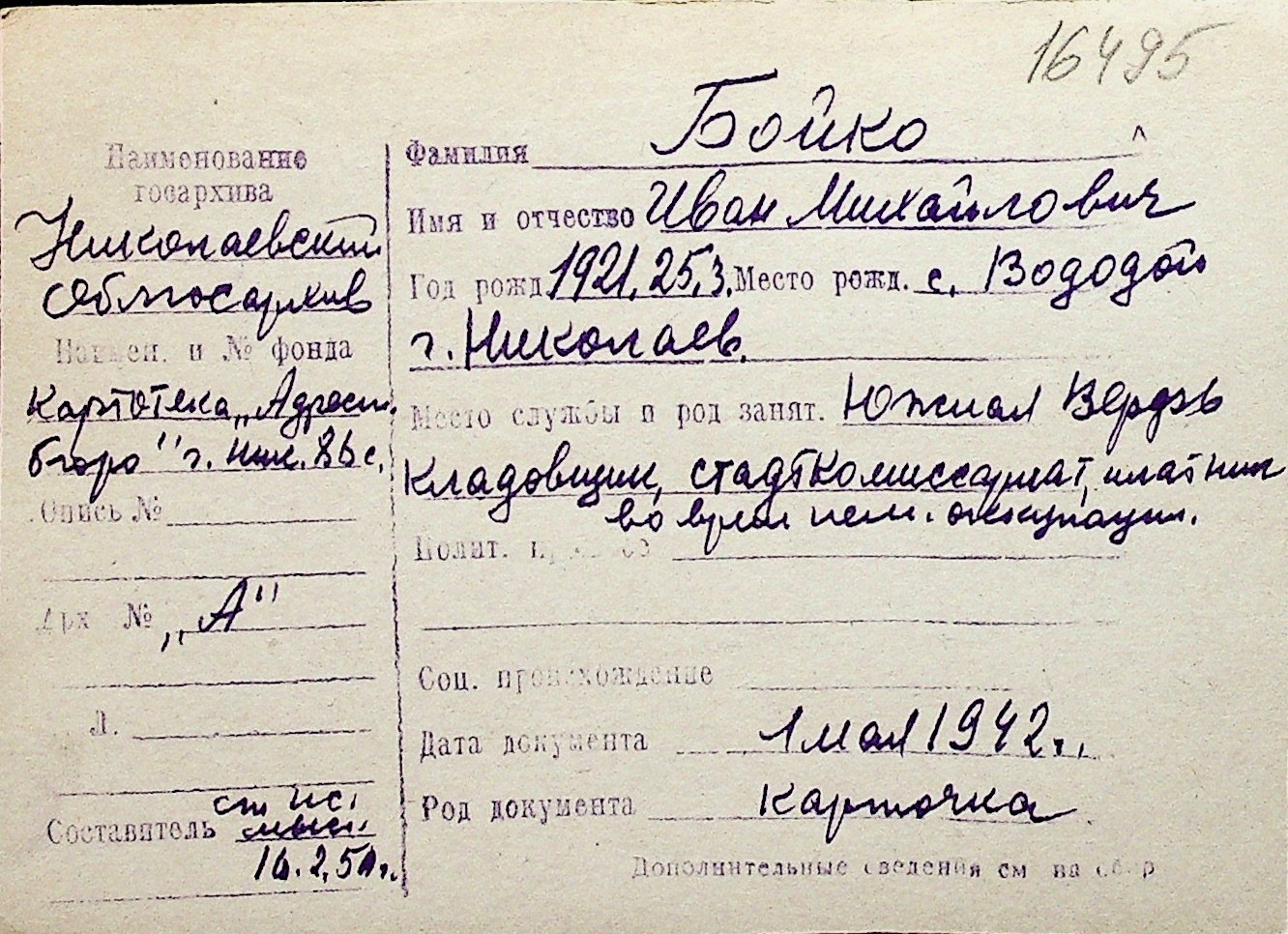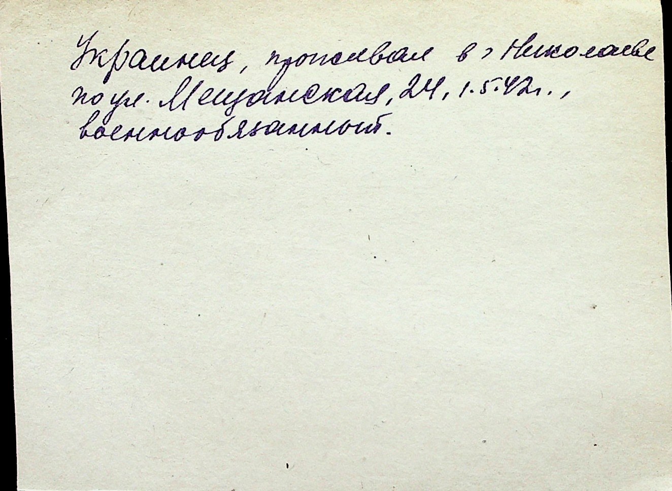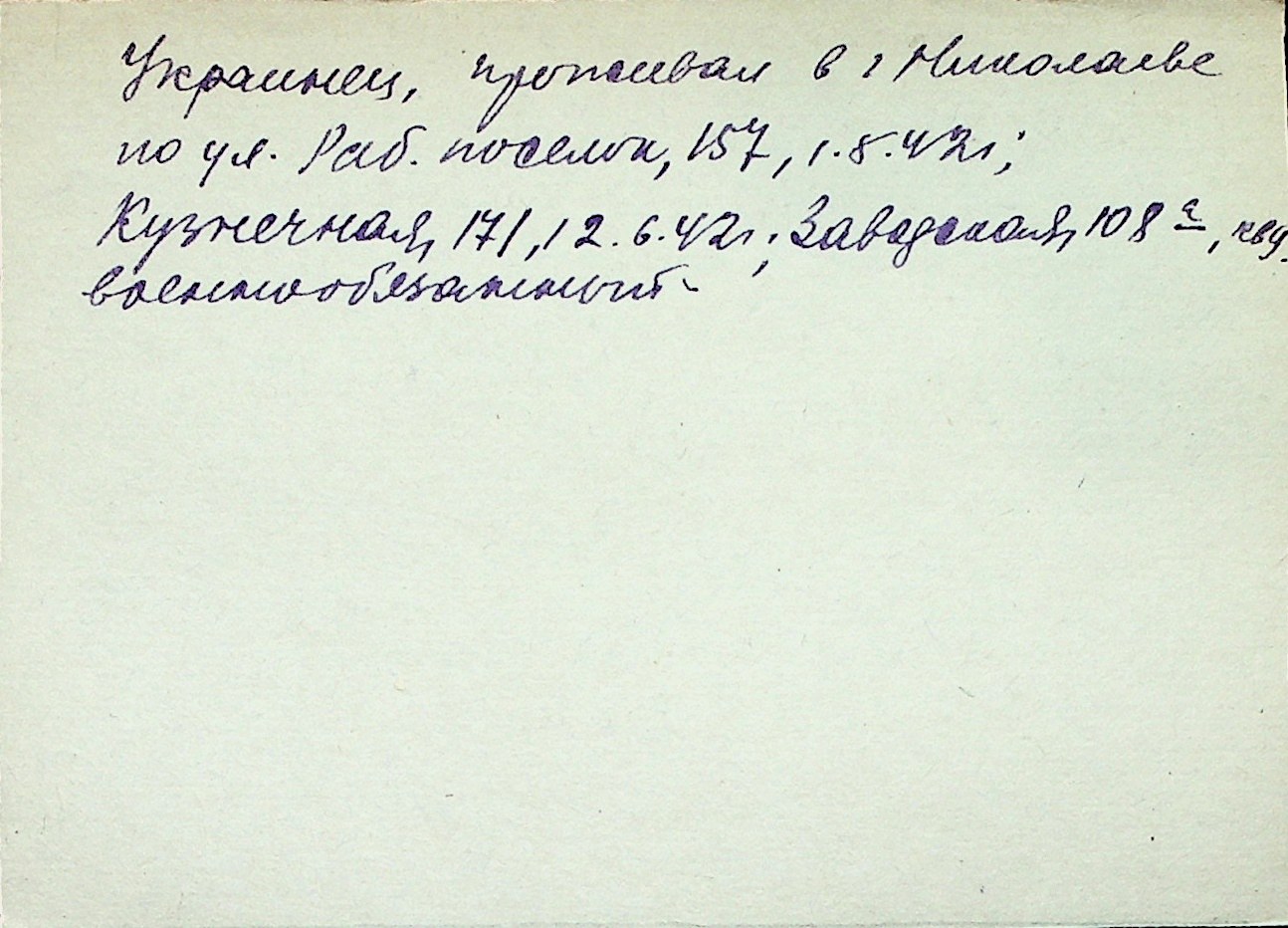◦ ◦ Перелік карток на осіб, які мешкали у м. Миколаїв у період окупації 1941–1944 років