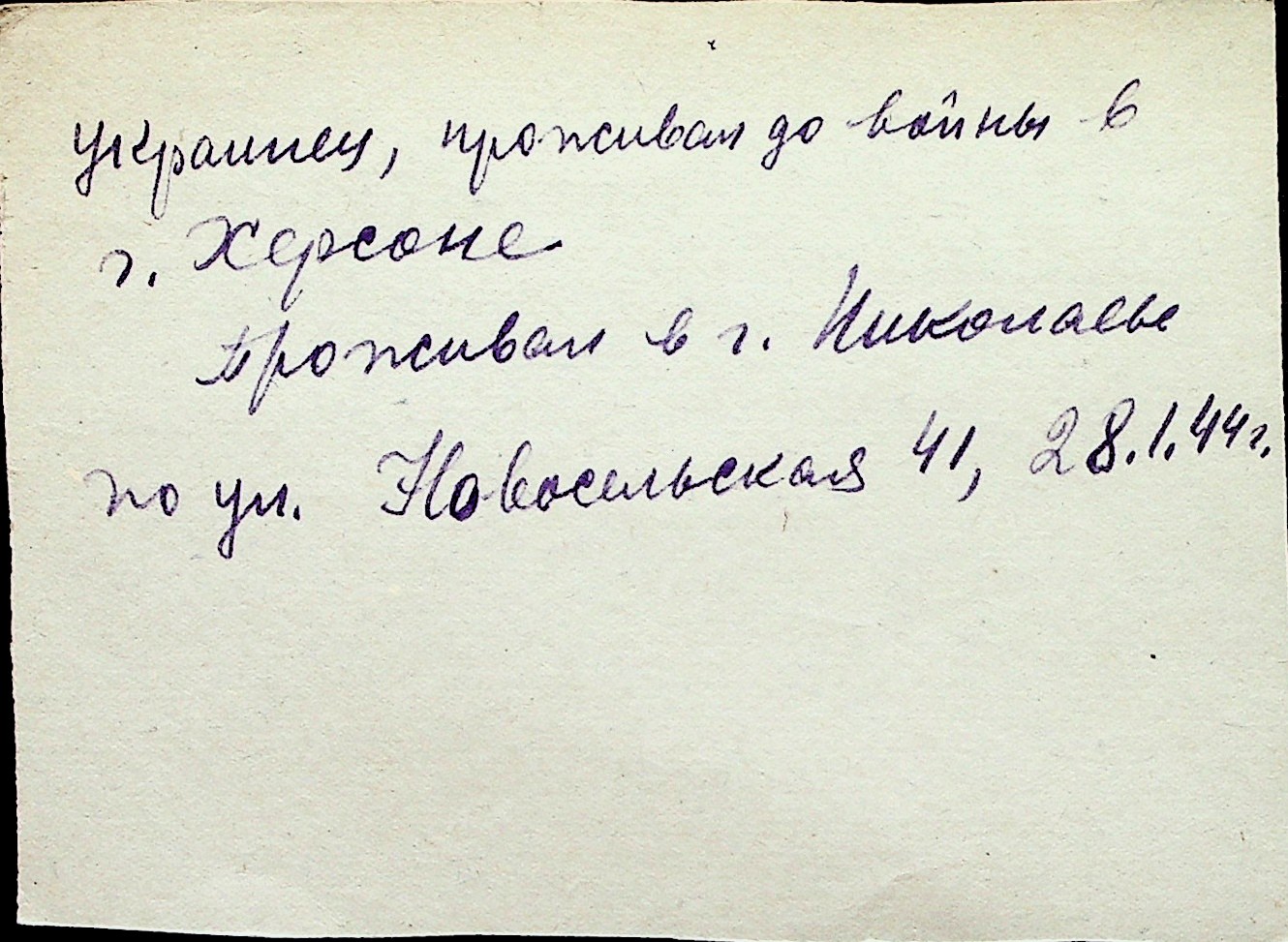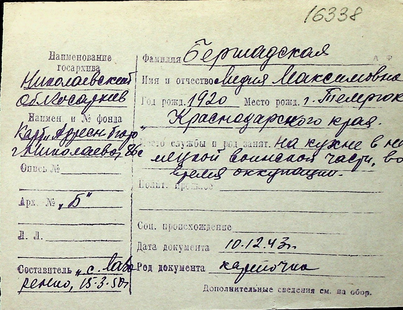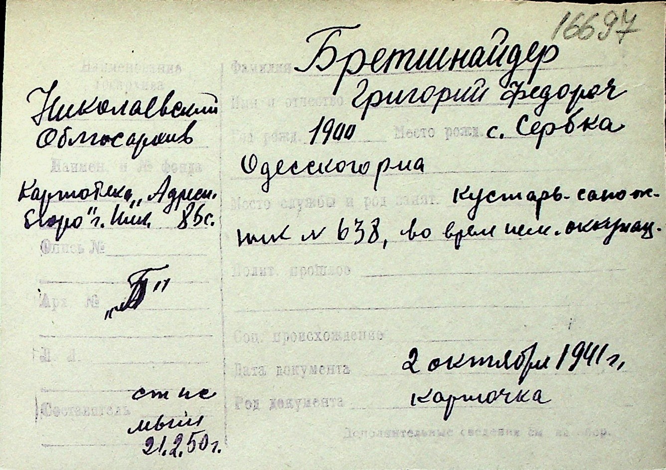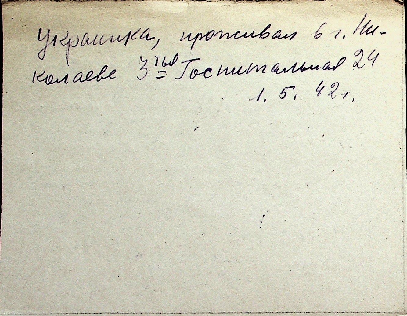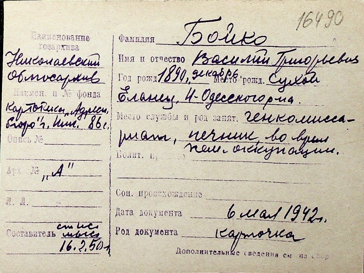 ◦ ◦ Перелік карток на осіб, які мешкали у м. Миколаїв у період окупації 1941–1944 років
