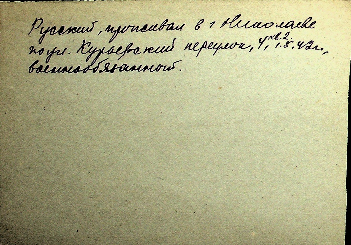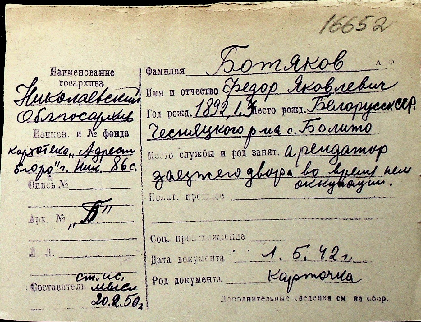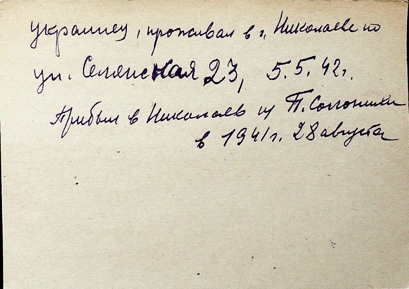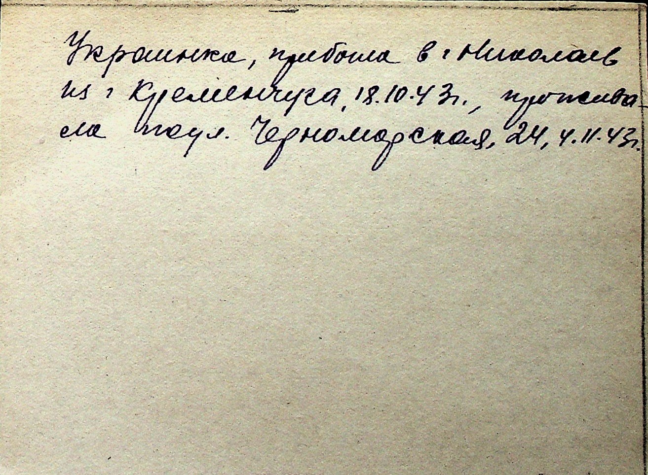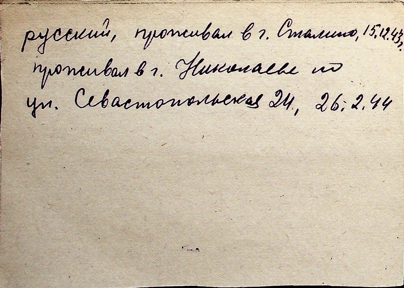 ◦ ◦ Перелік карток на осіб, які мешкали у м. Миколаїв у період окупації 1941–1944 років