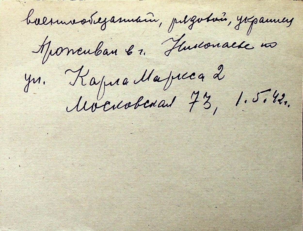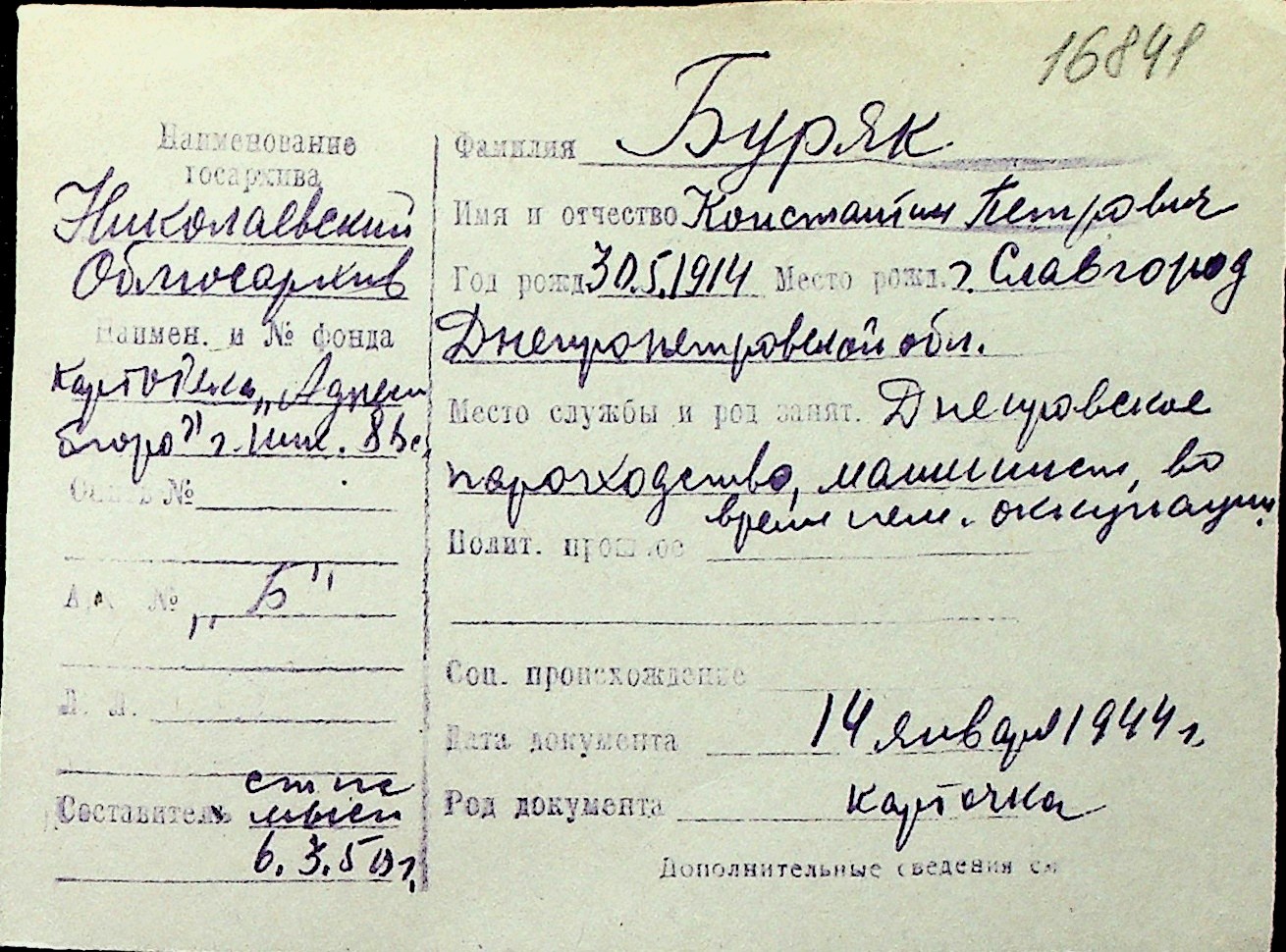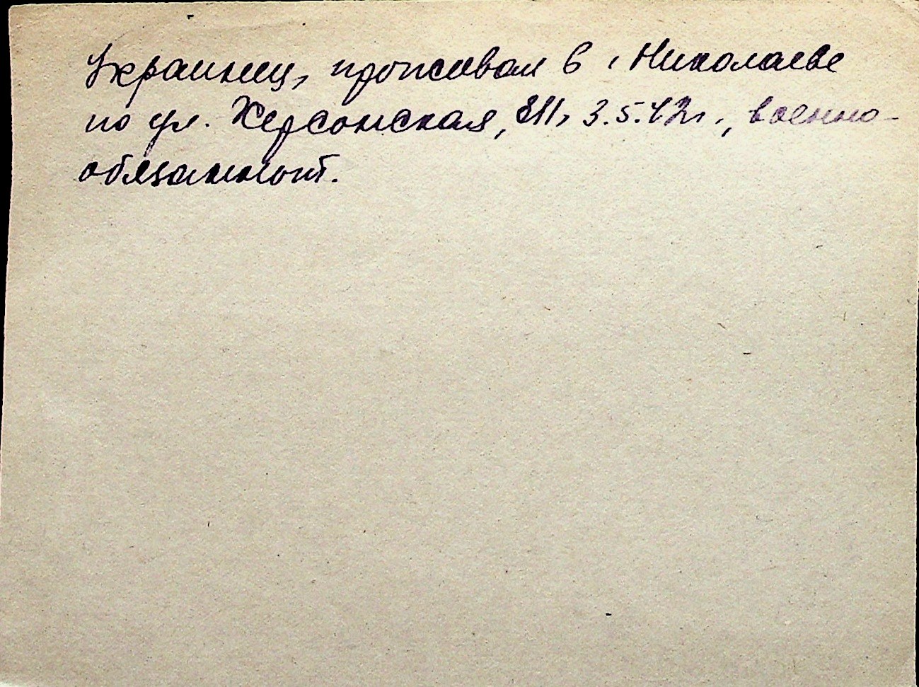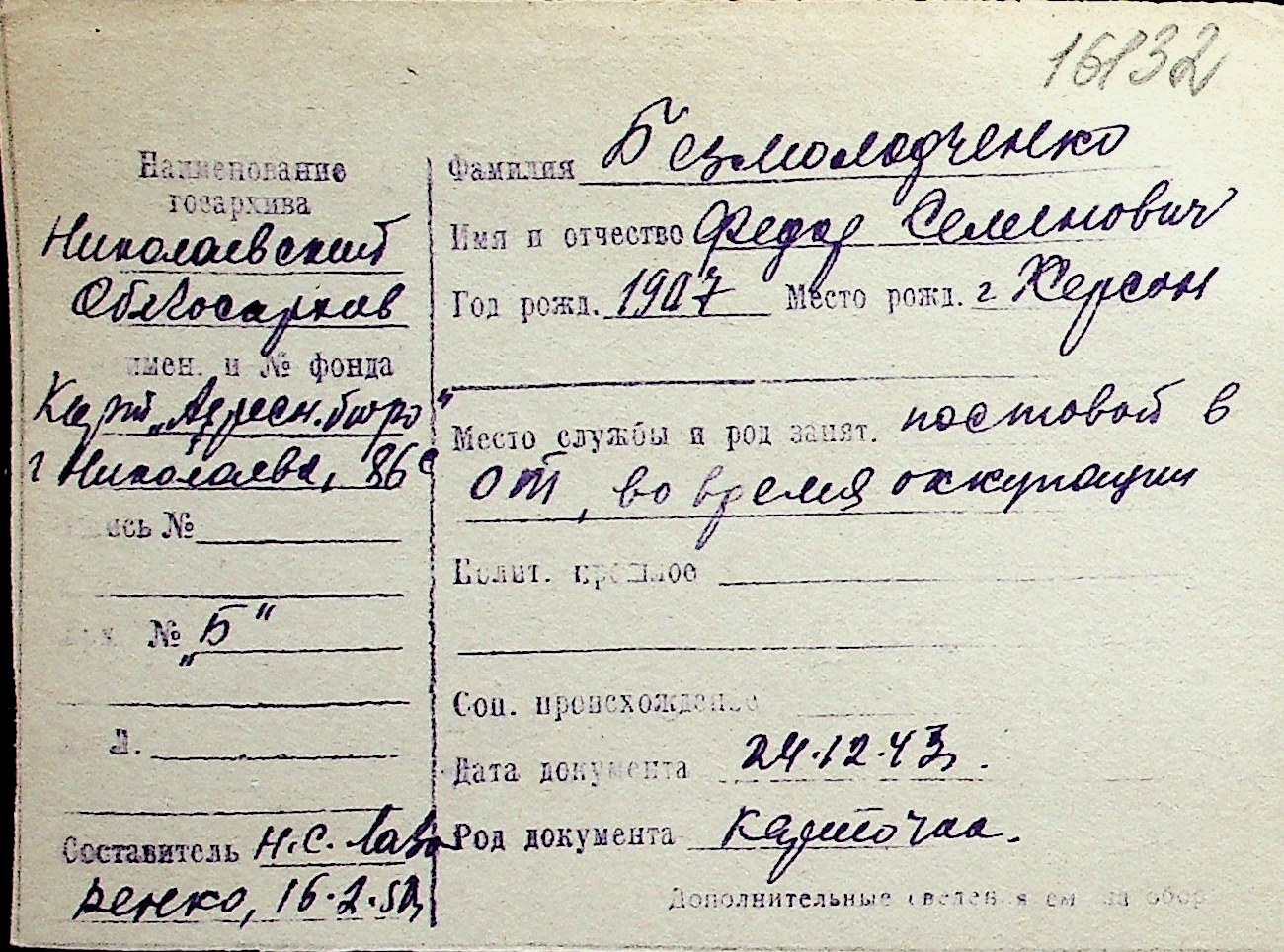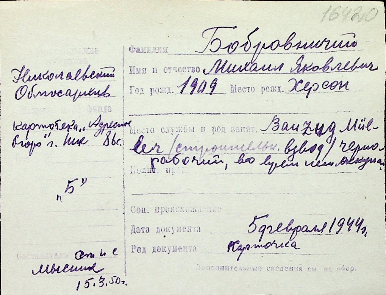 ◦ ◦ Перелік карток на осіб, які мешкали у м. Миколаїв у період окупації 1941–1944 років