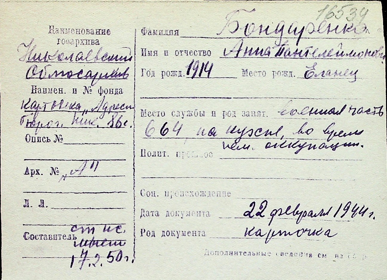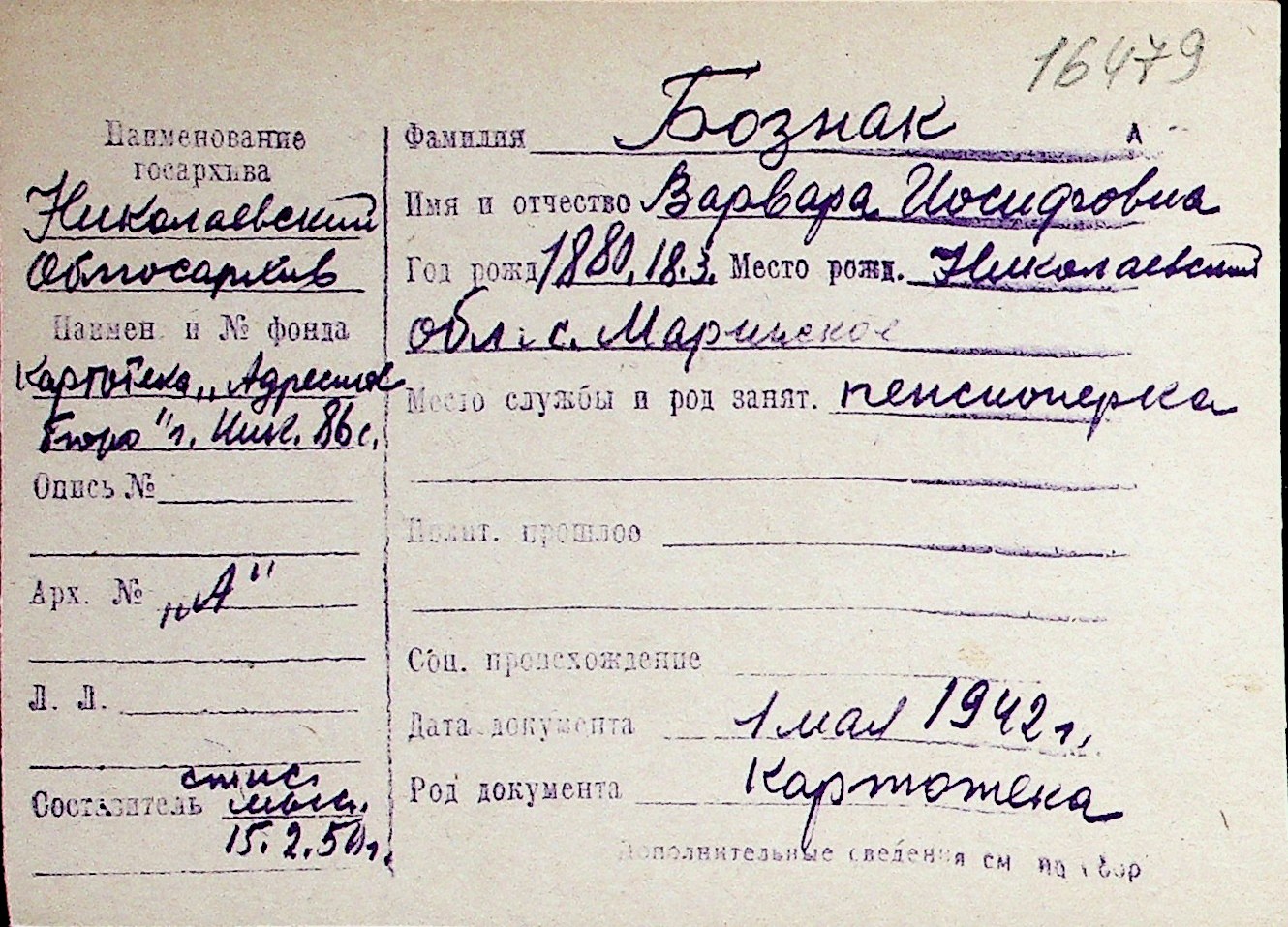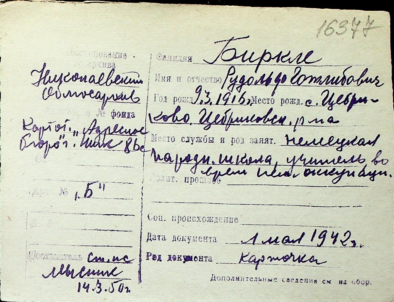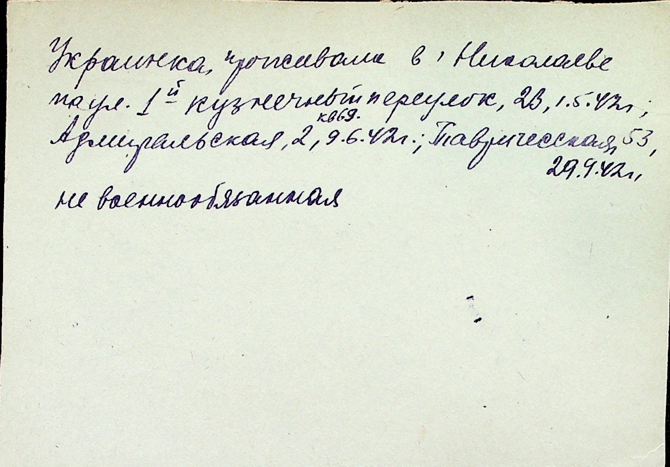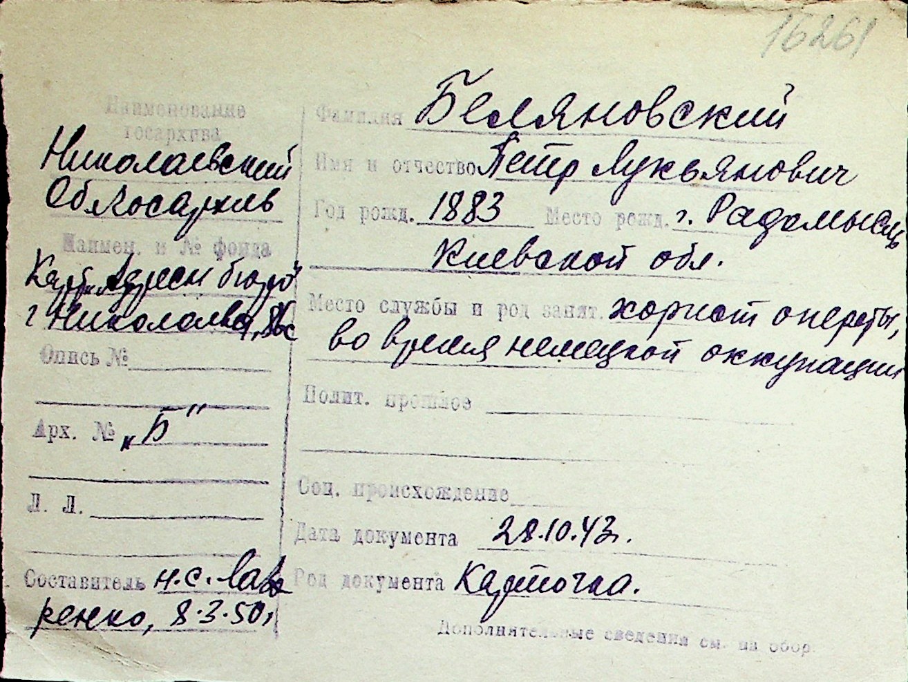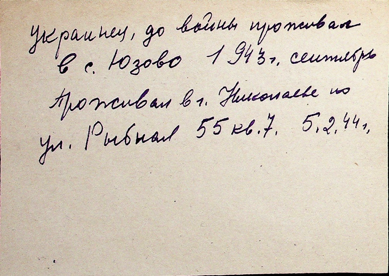 ◦ ◦ Перелік карток на осіб, які мешкали у м. Миколаїв у період окупації 1941–1944 років