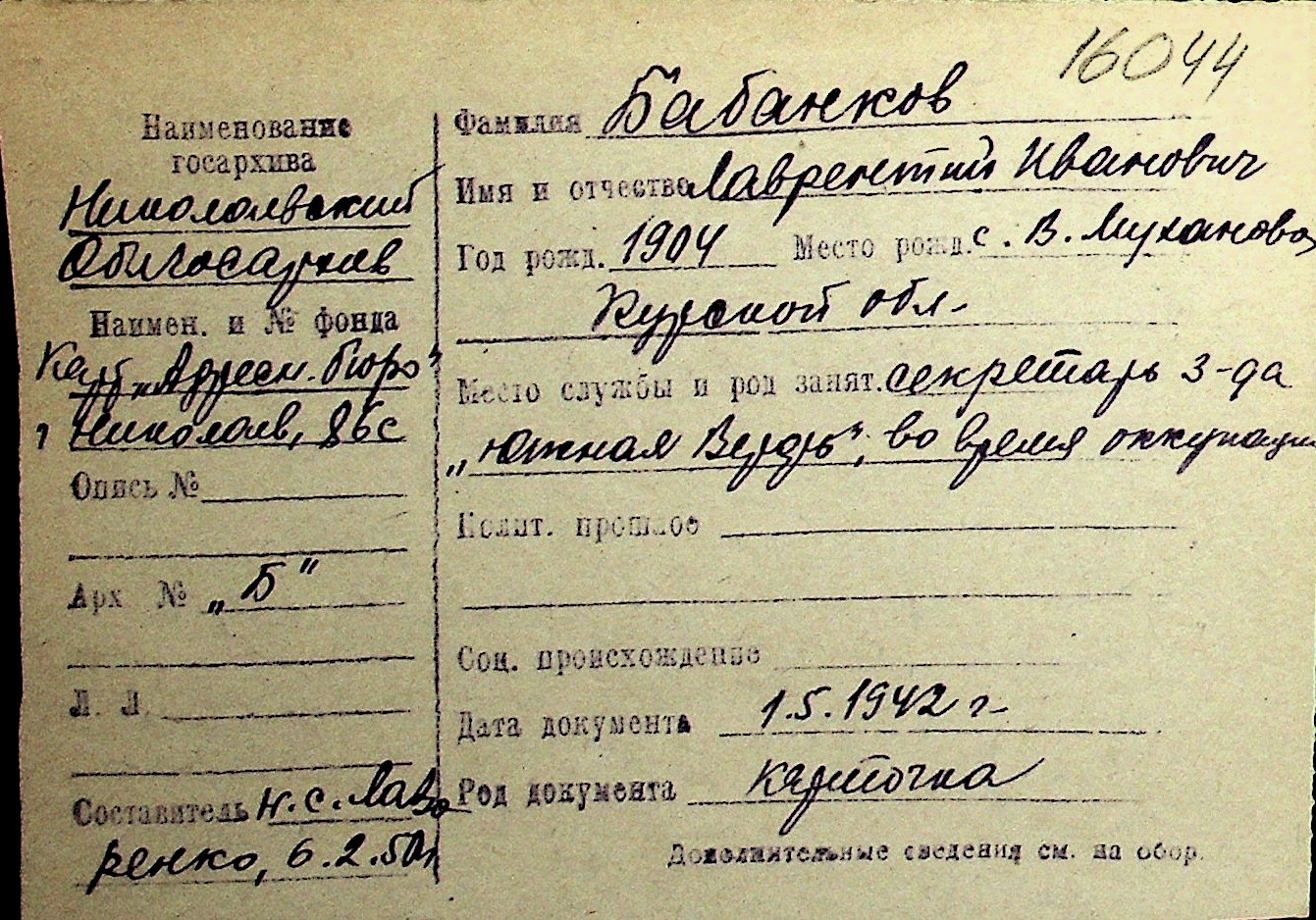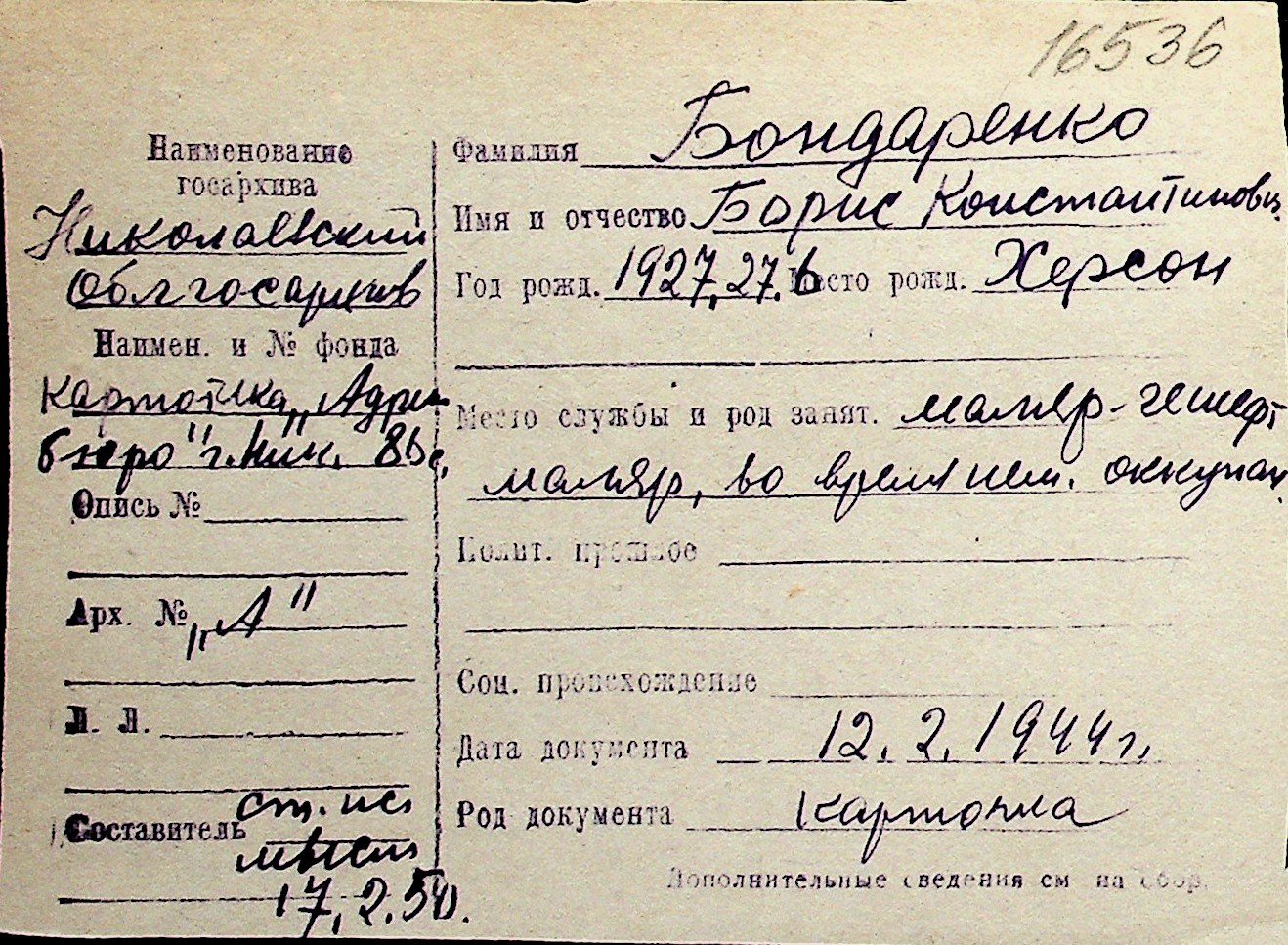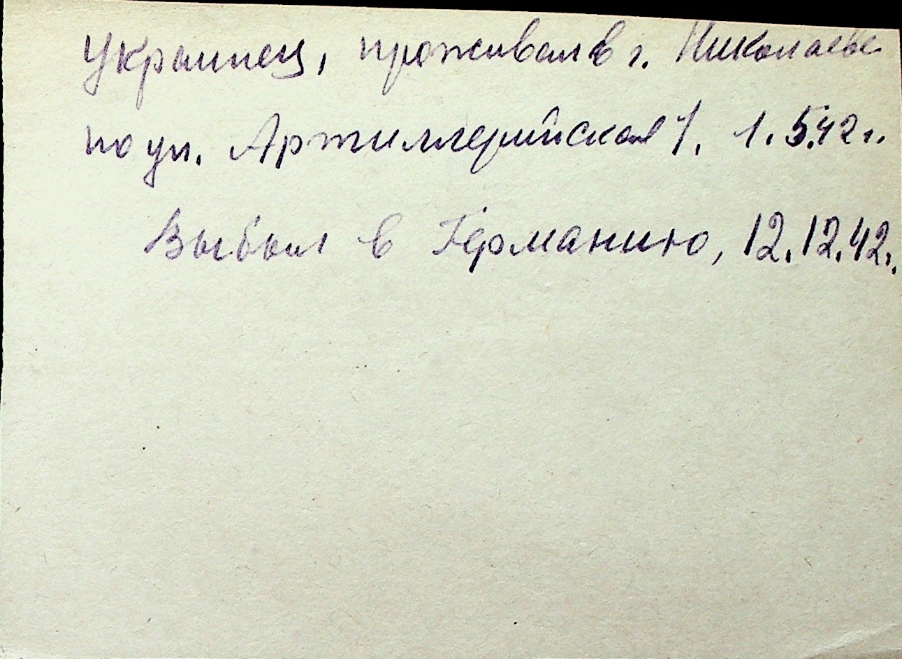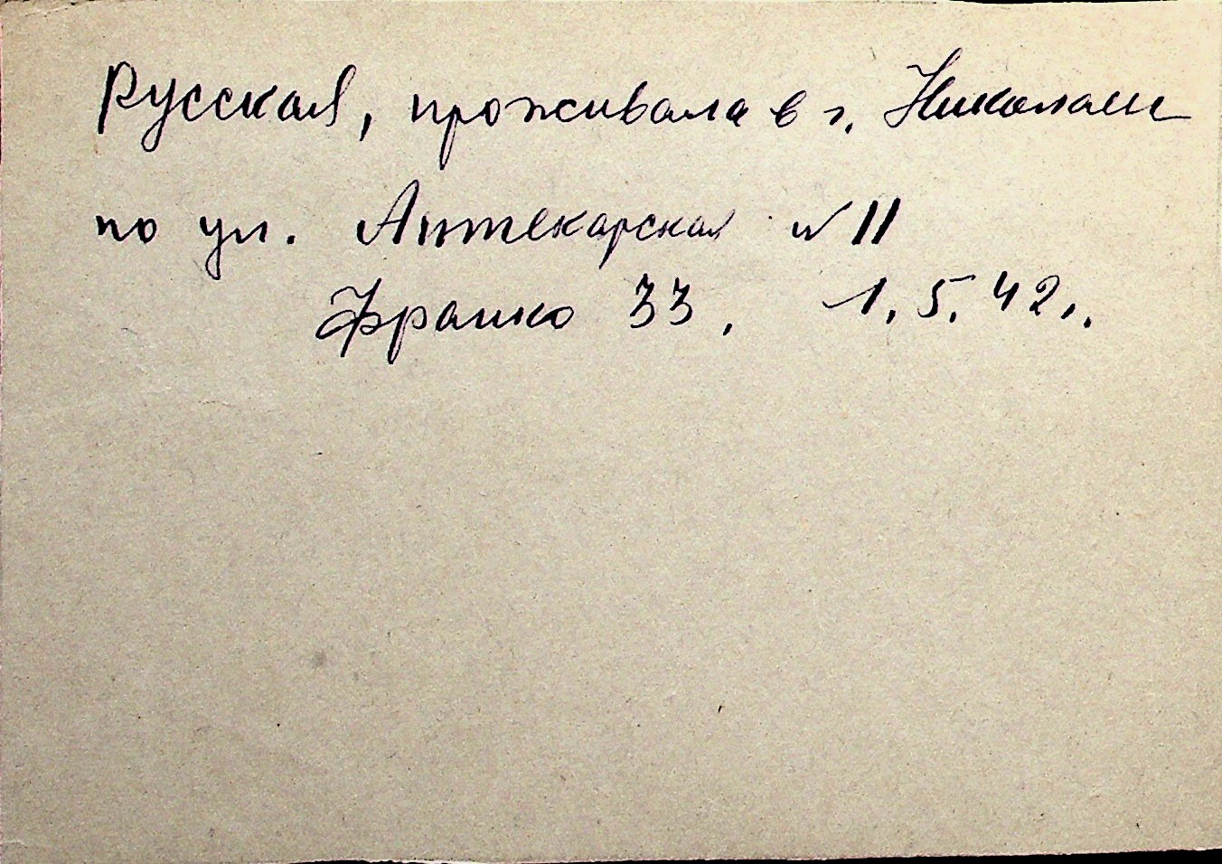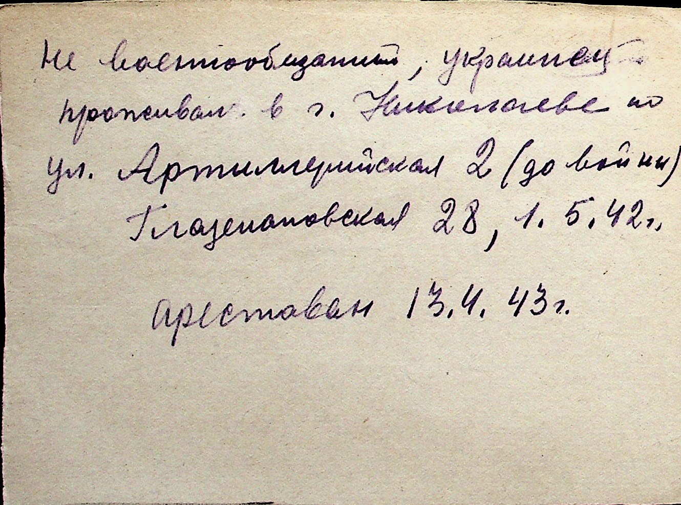 ◦ ◦ Перелік карток на осіб, які мешкали у м. Миколаїв у період окупації 1941–1944 років