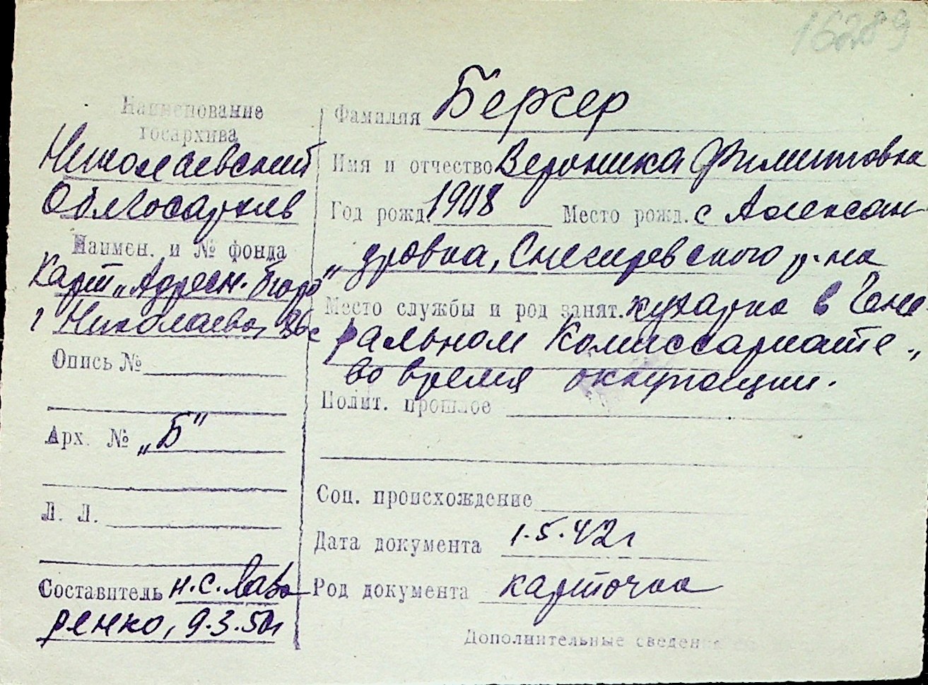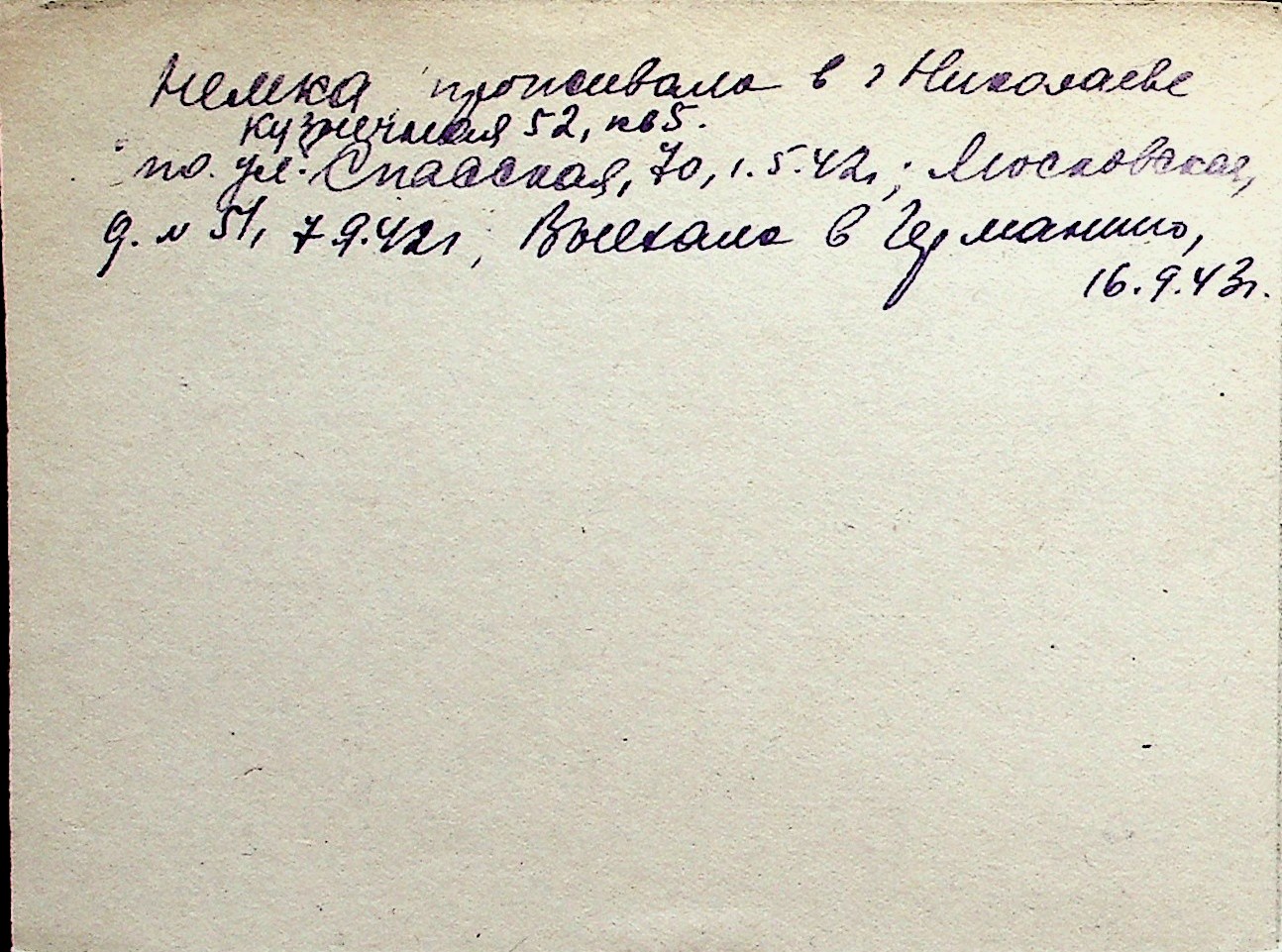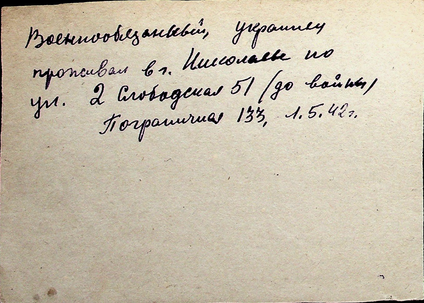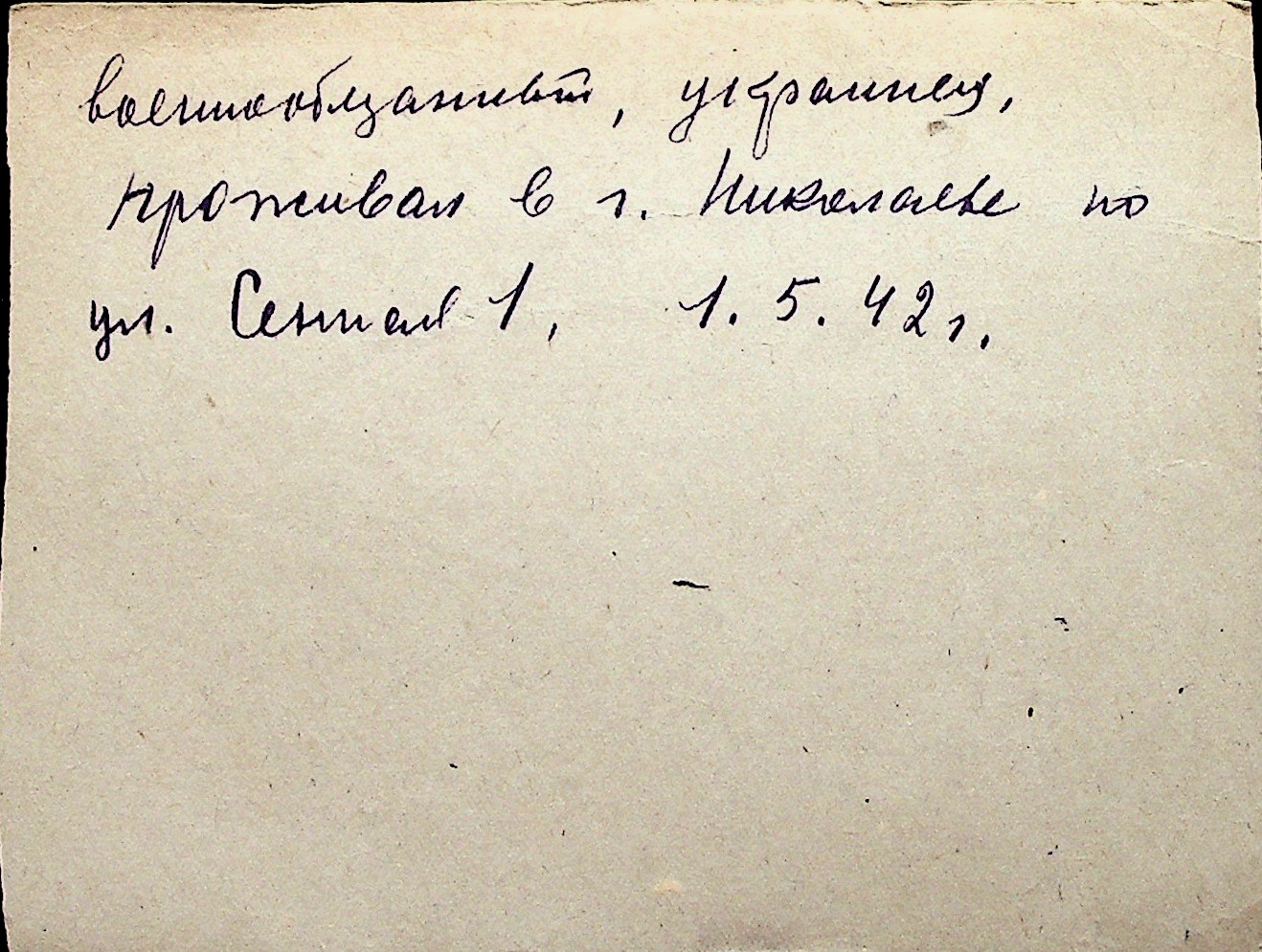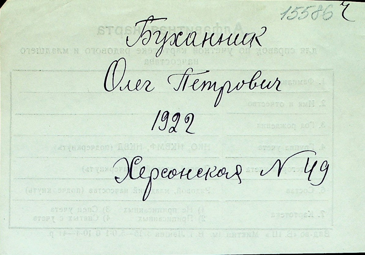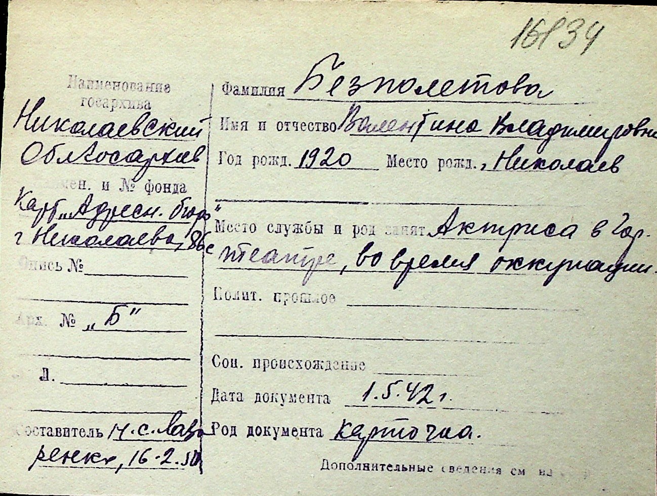 ◦ ◦ Перелік карток на осіб, які мешкали у м. Миколаїв у період окупації 1941–1944 років