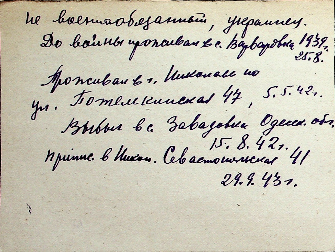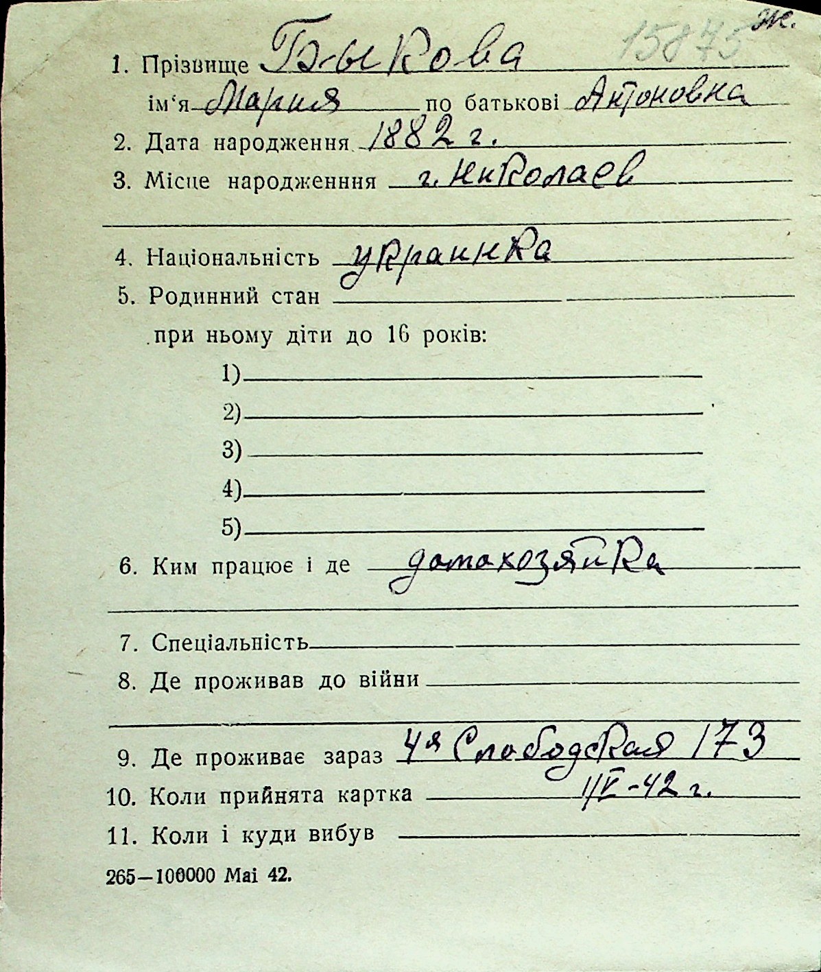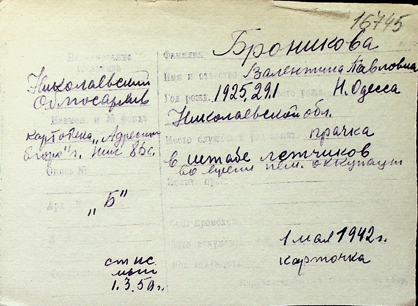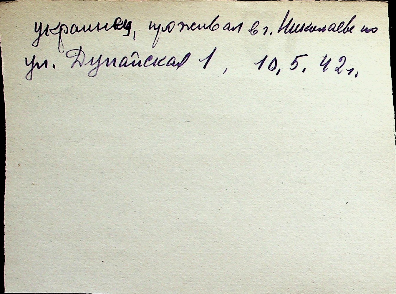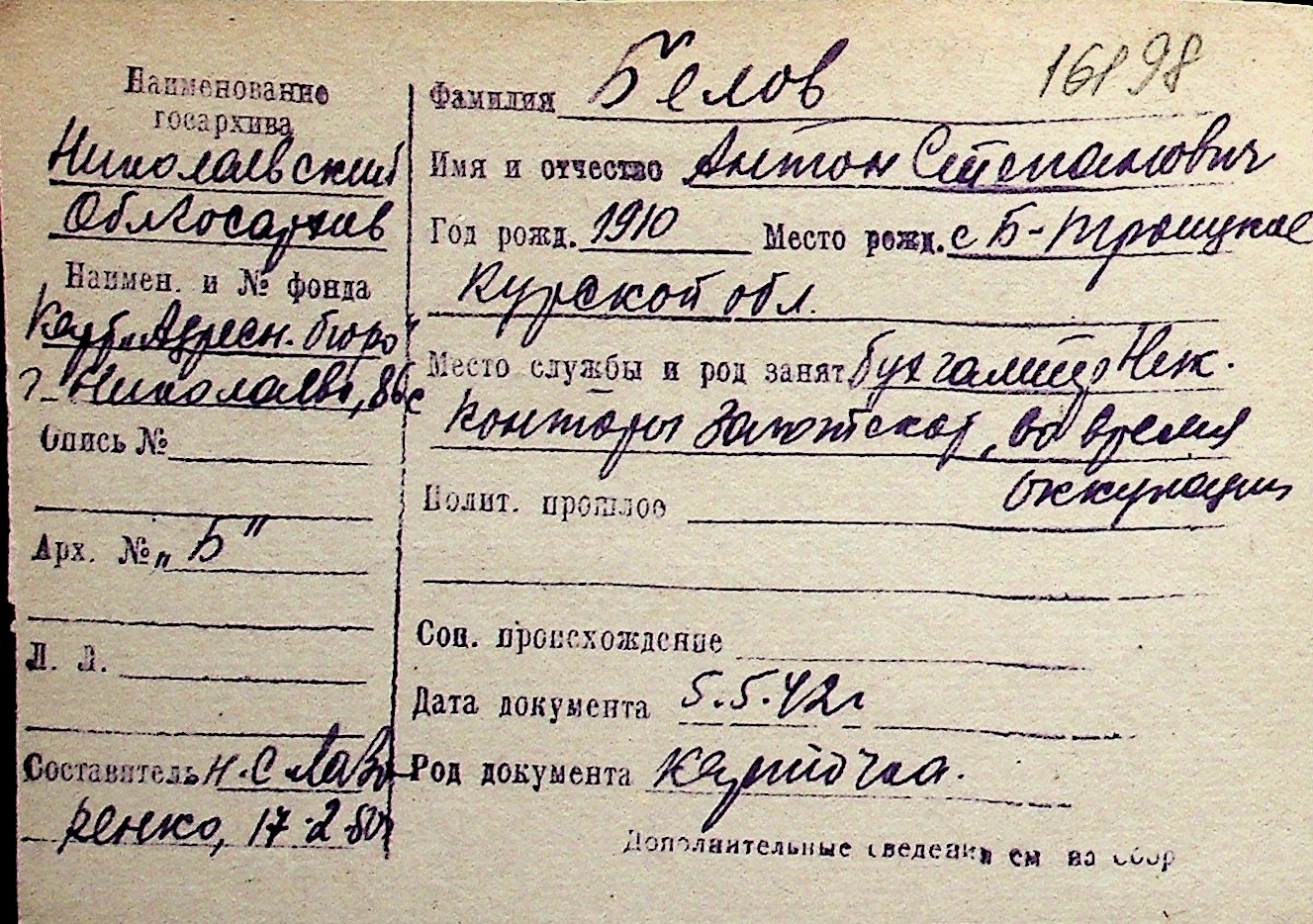◦ ◦ Перелік карток на осіб, які мешкали у м. Миколаїв у період окупації 1941–1944 років