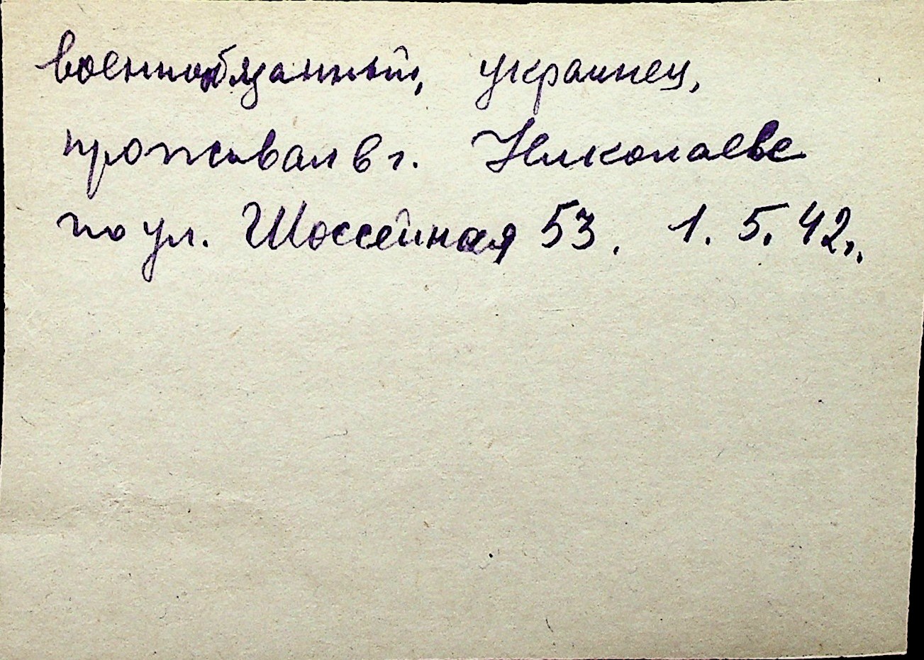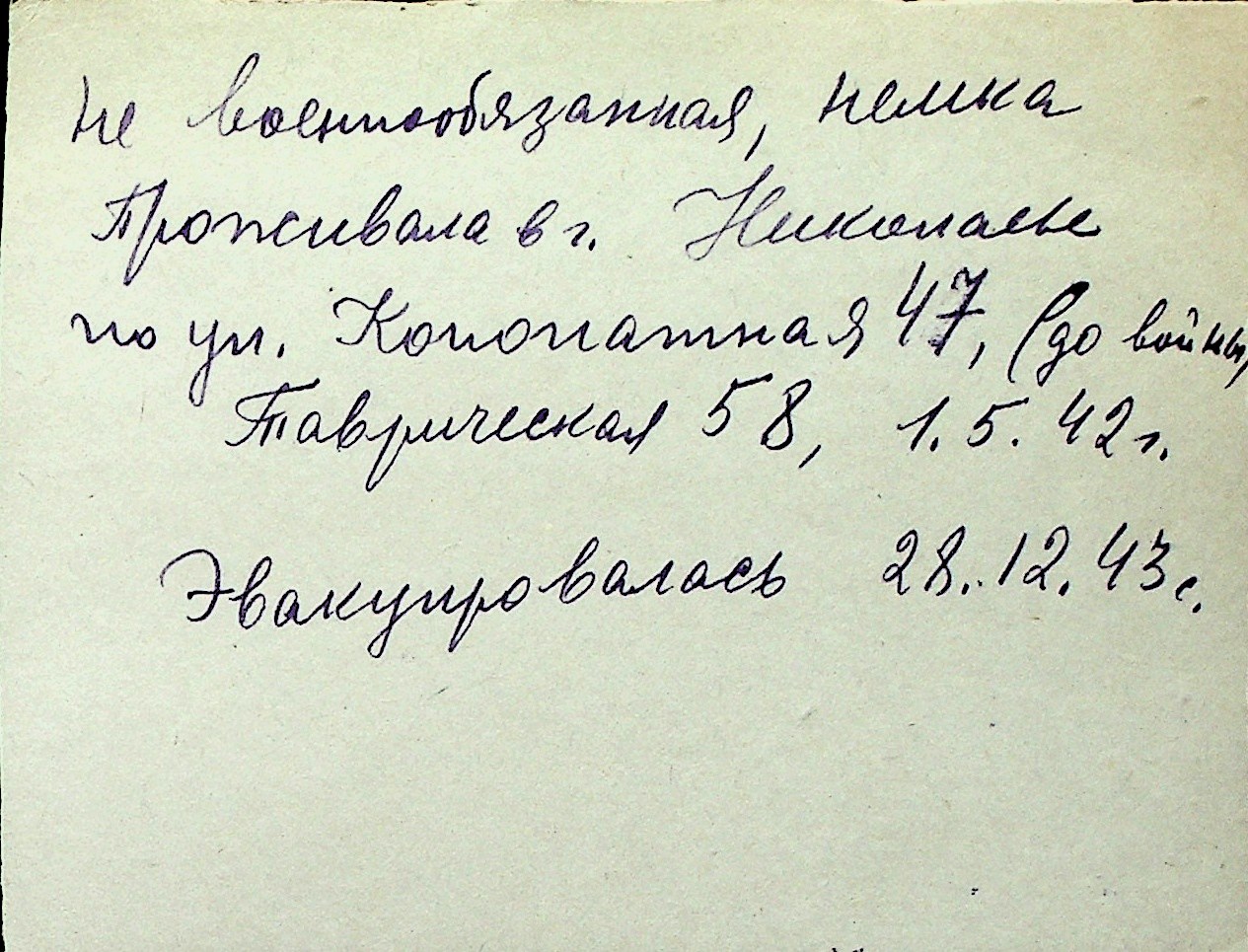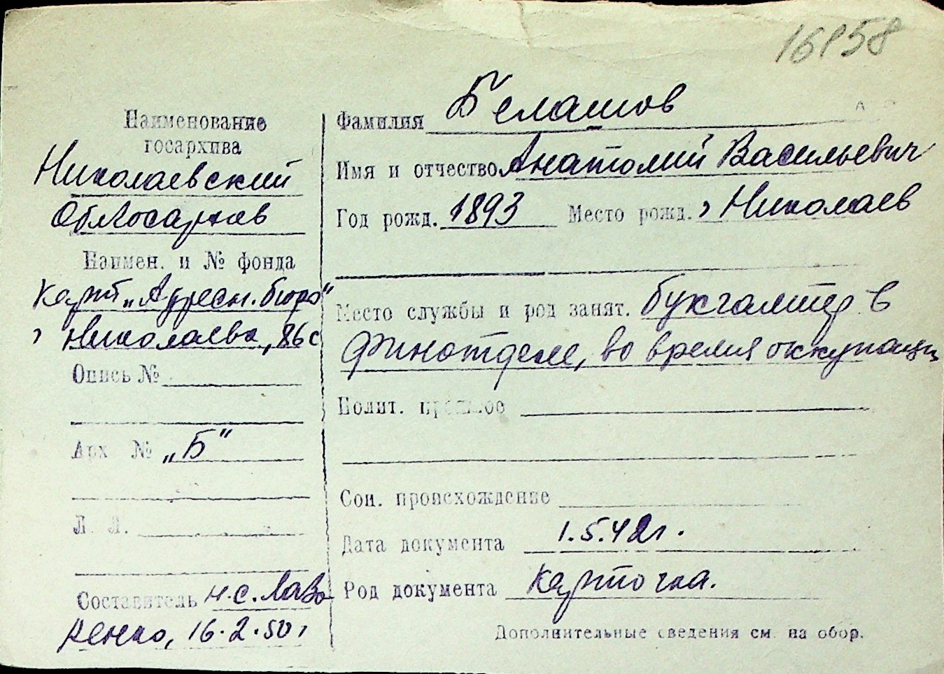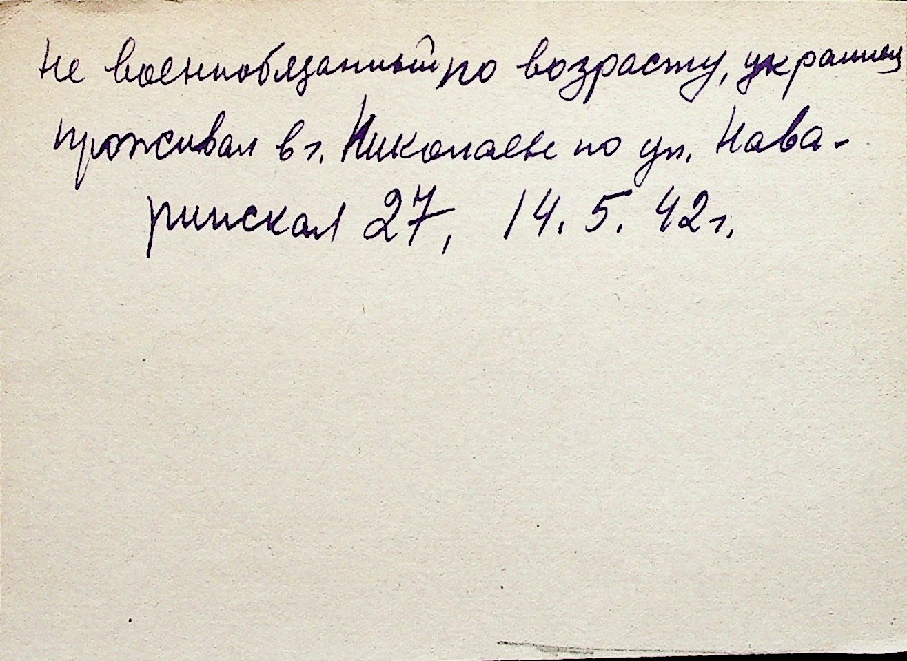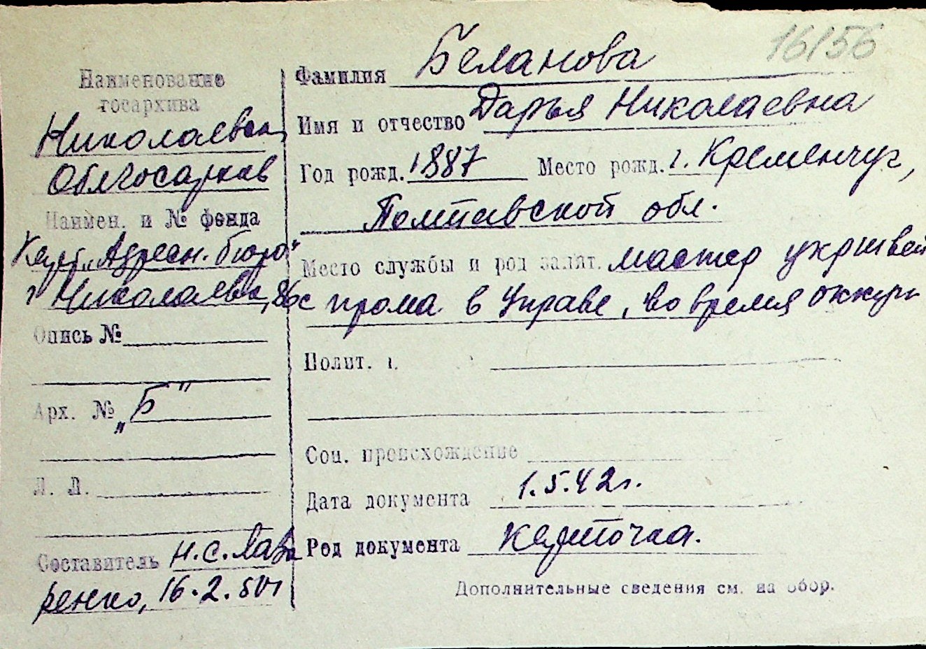 ◦ ◦ Перелік карток на осіб, які мешкали у м. Миколаїв у період окупації 1941–1944 років