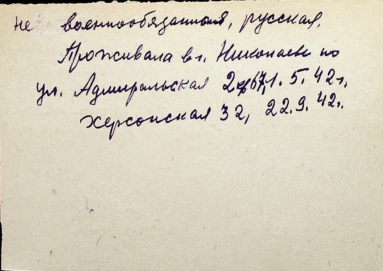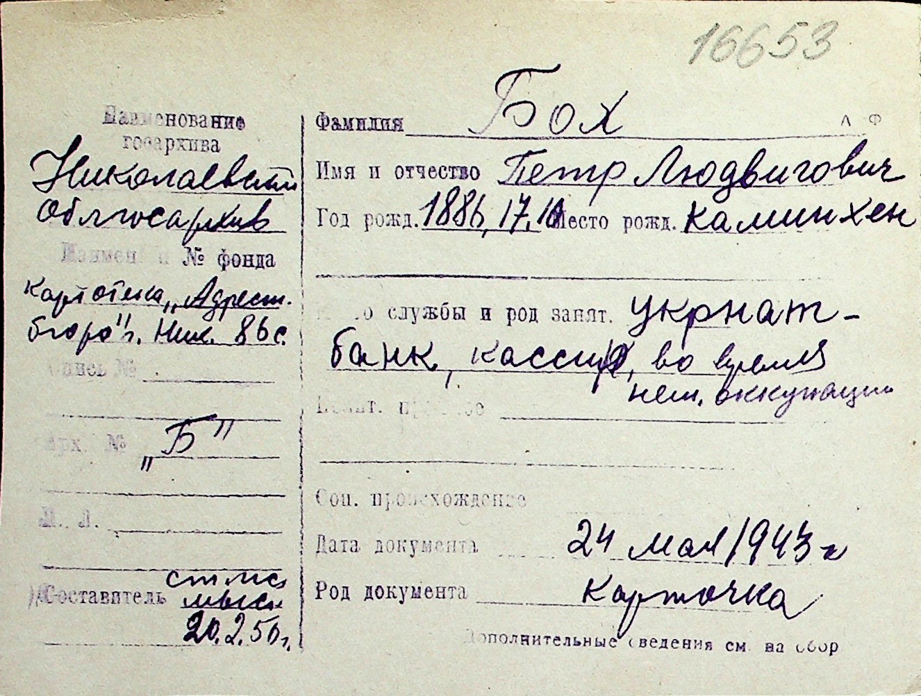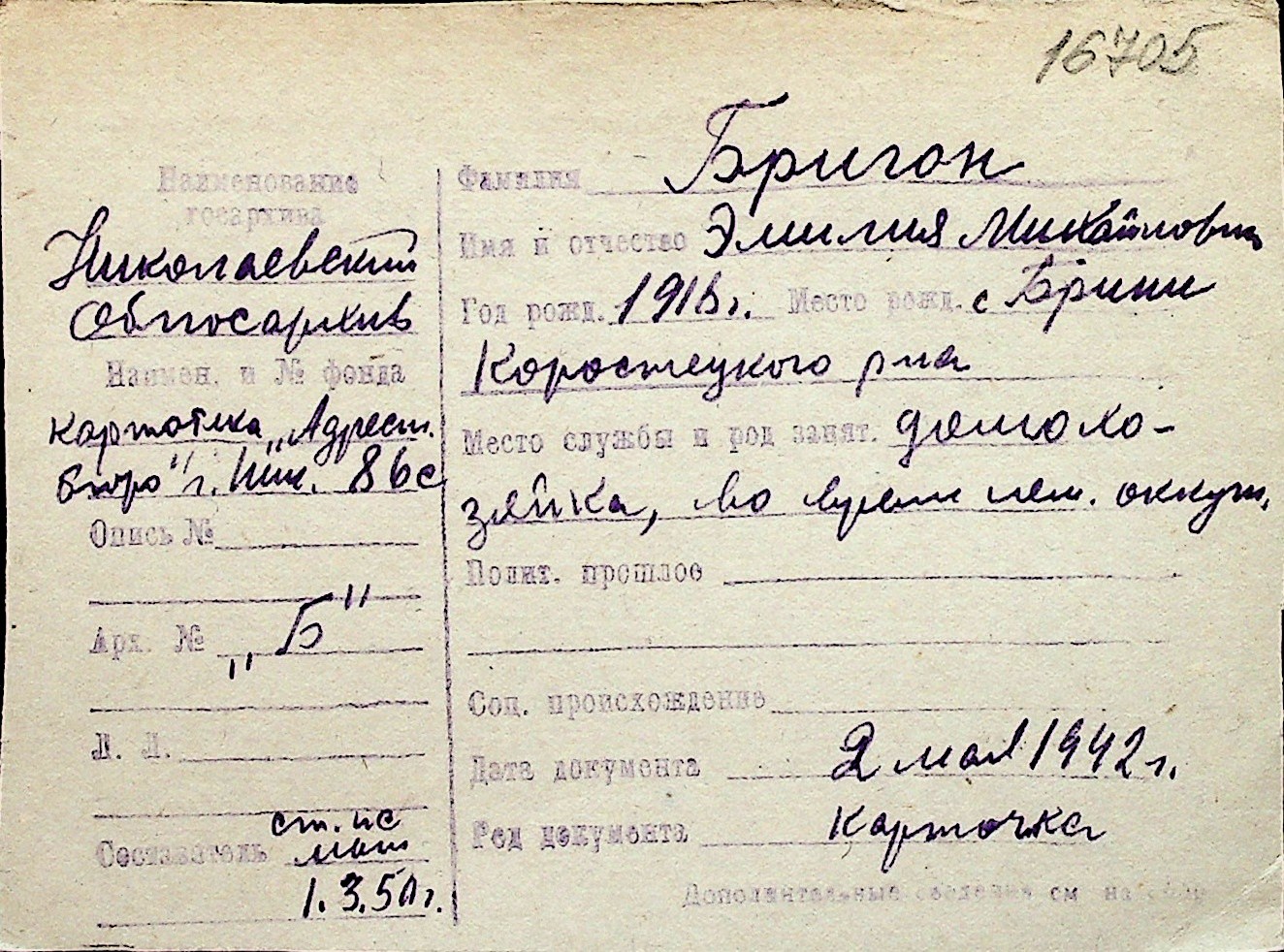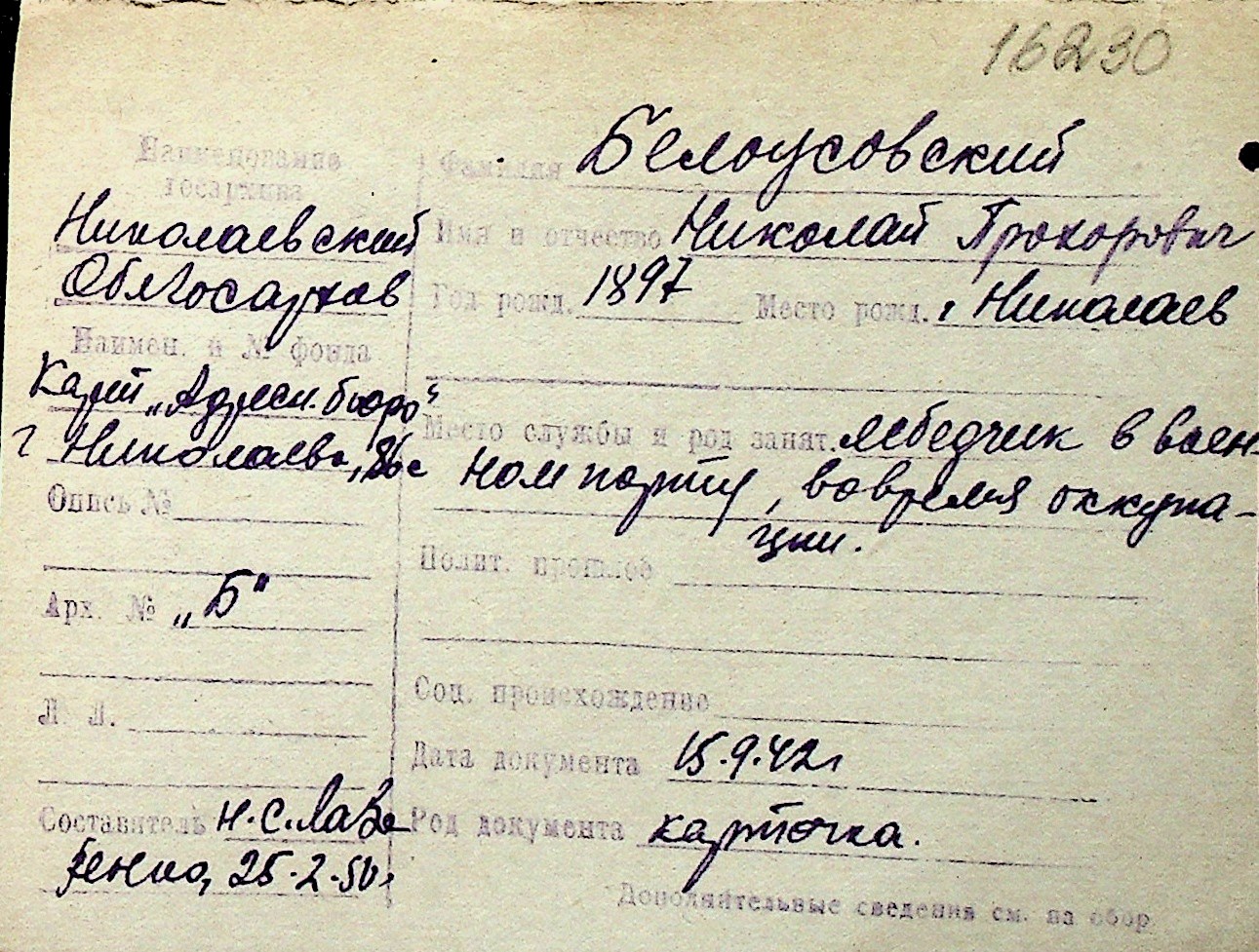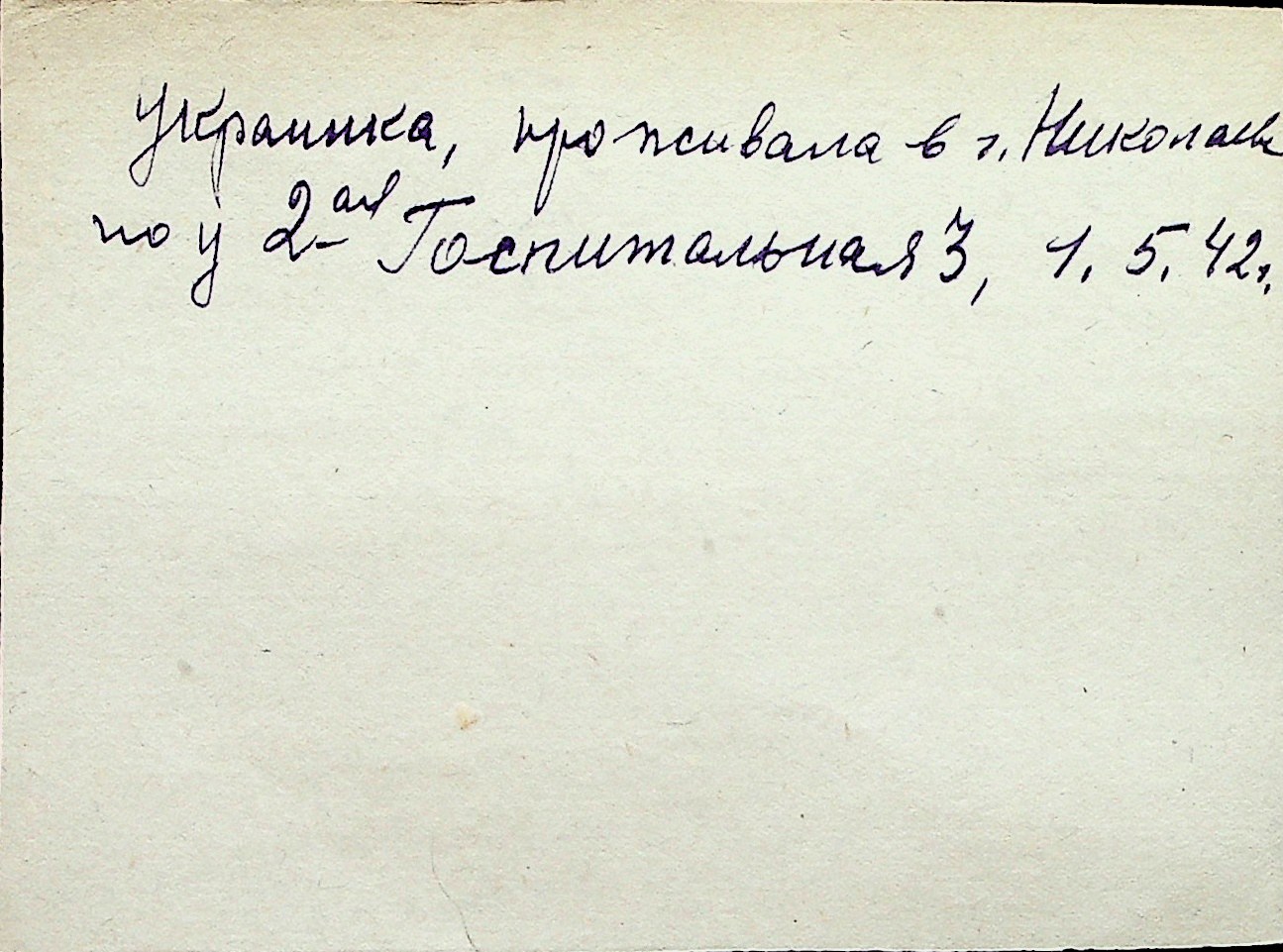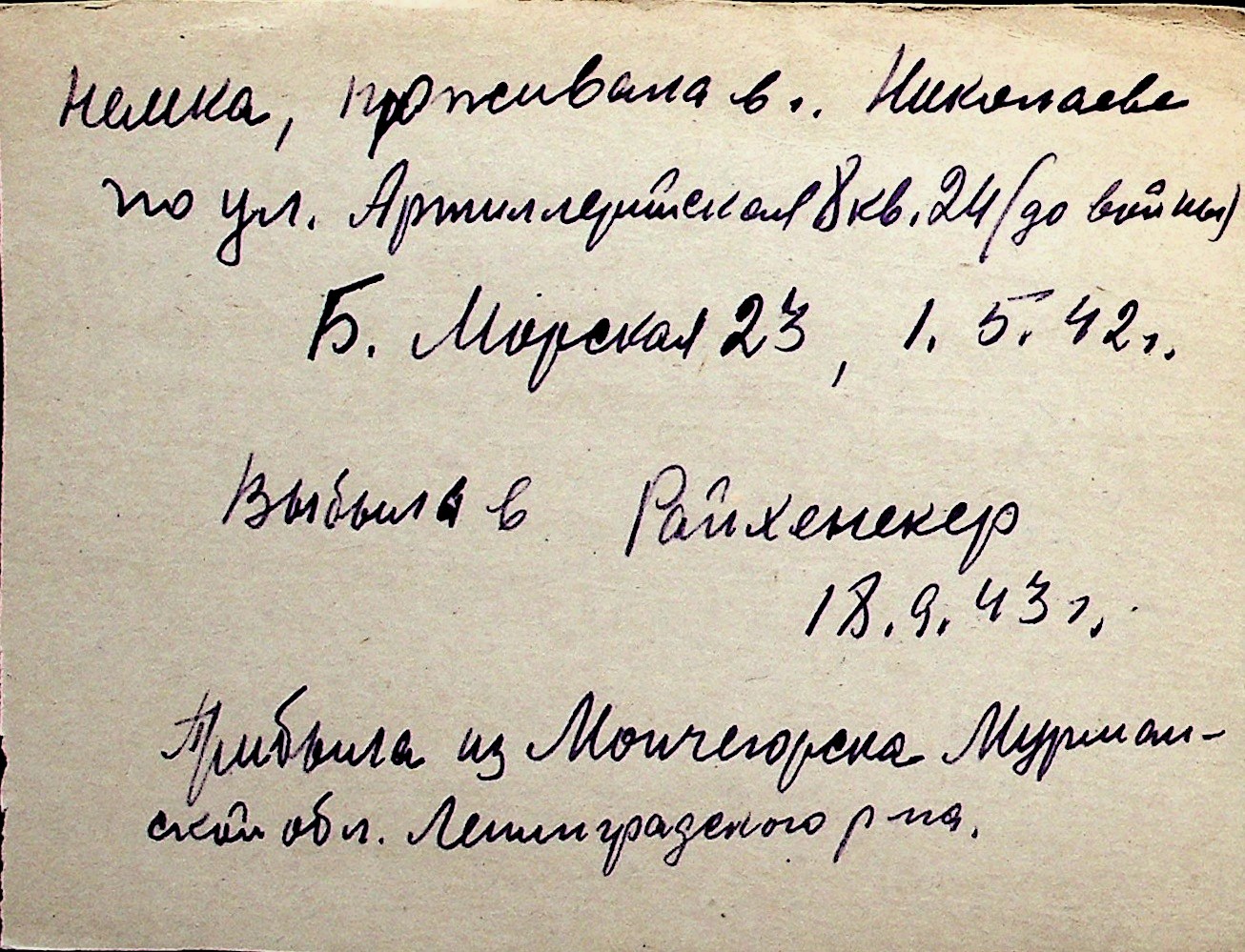 ◦ ◦ Перелік карток на осіб, які мешкали у м. Миколаїв у період окупації 1941–1944 років