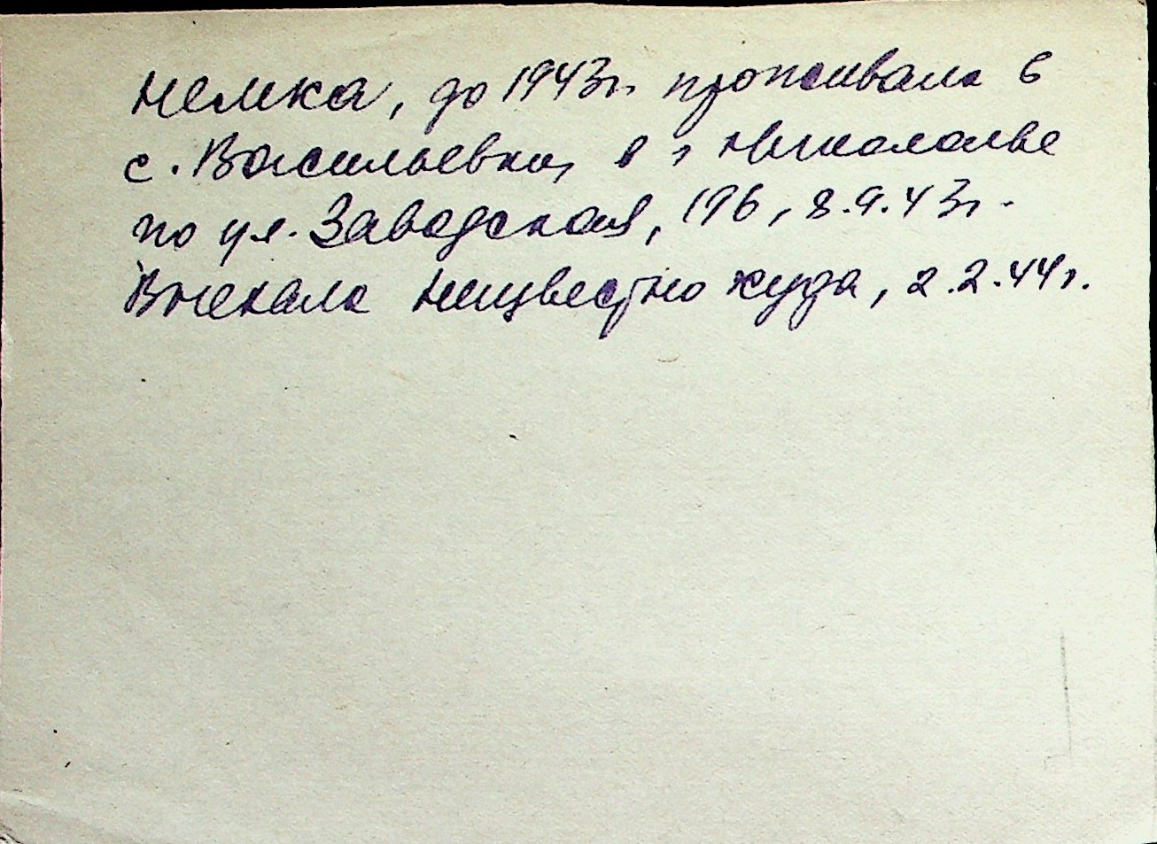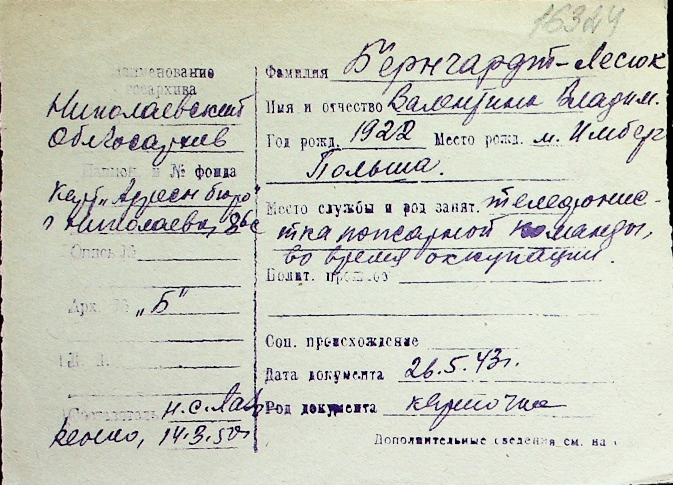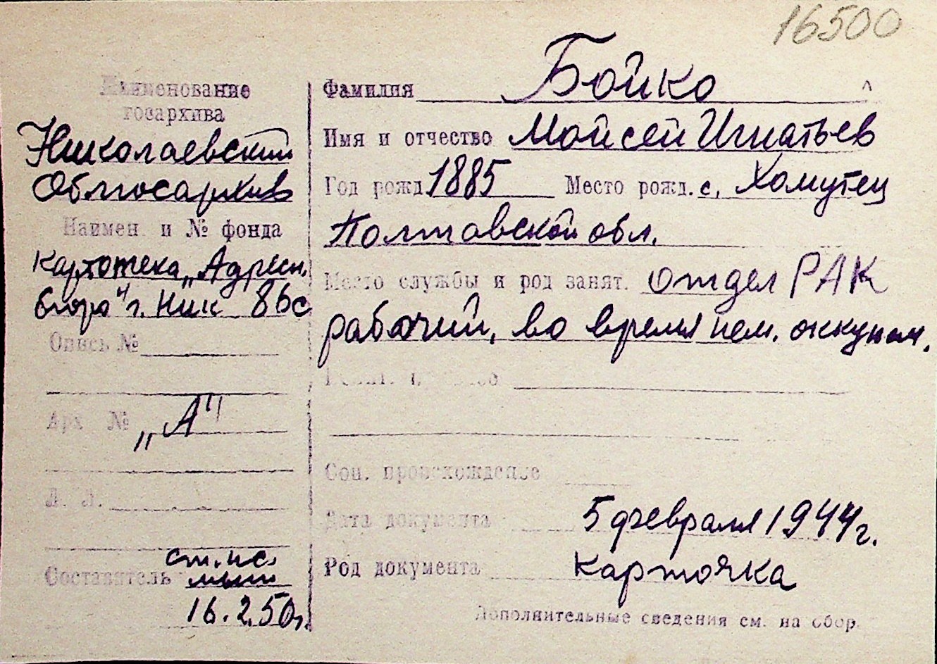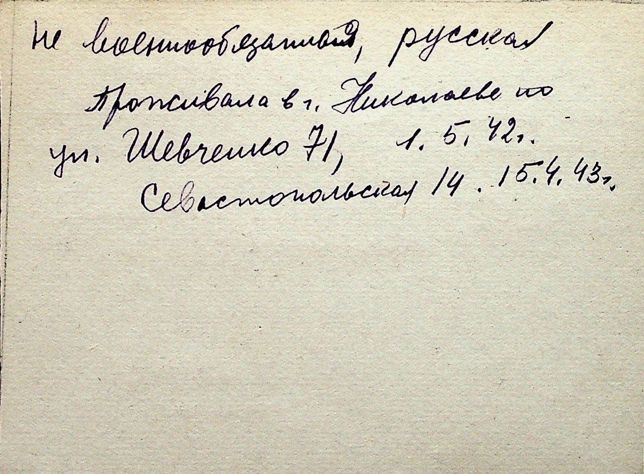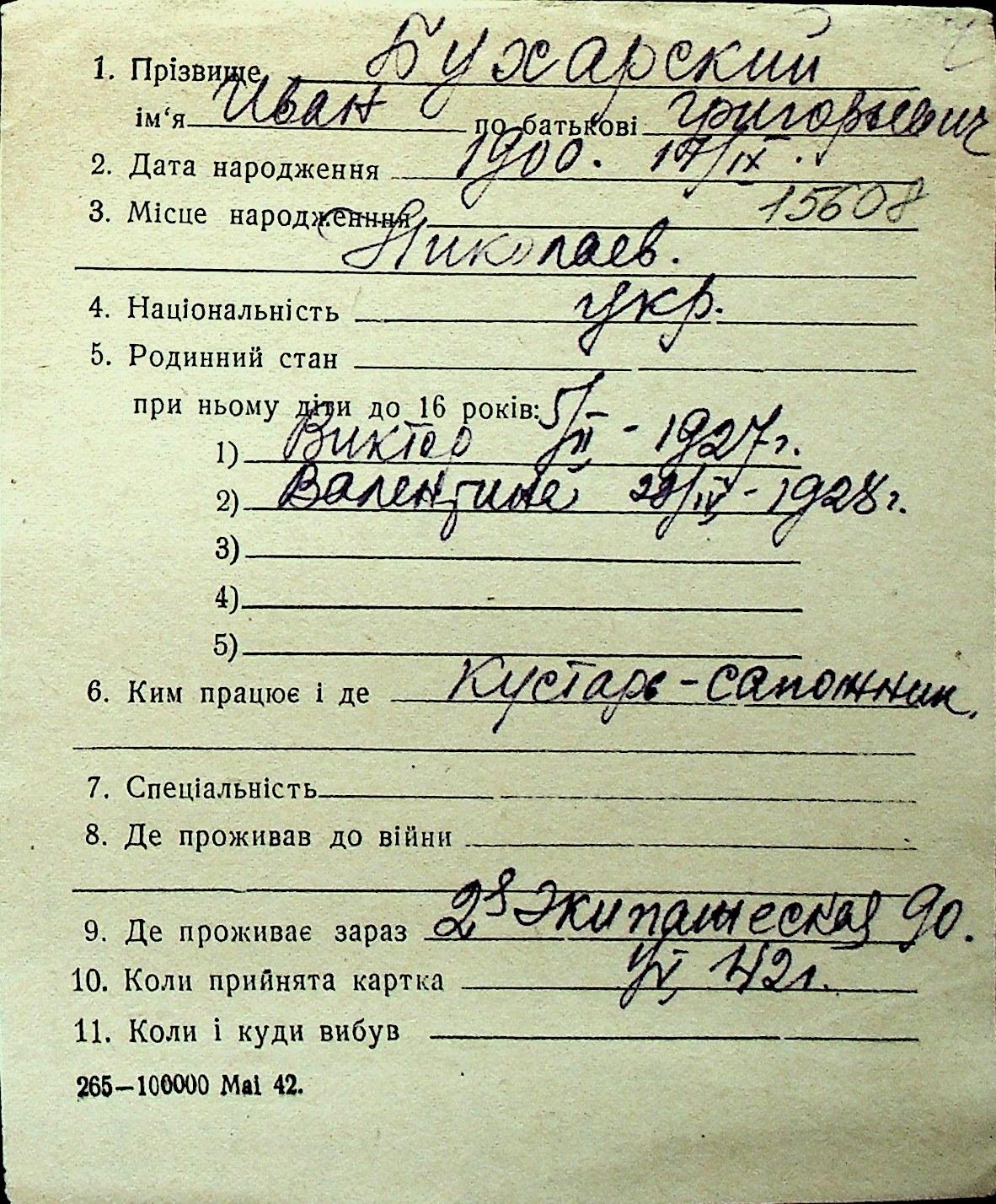 ◦ ◦ Перелік карток на осіб, які мешкали у м. Миколаїв у період окупації 1941–1944 років
